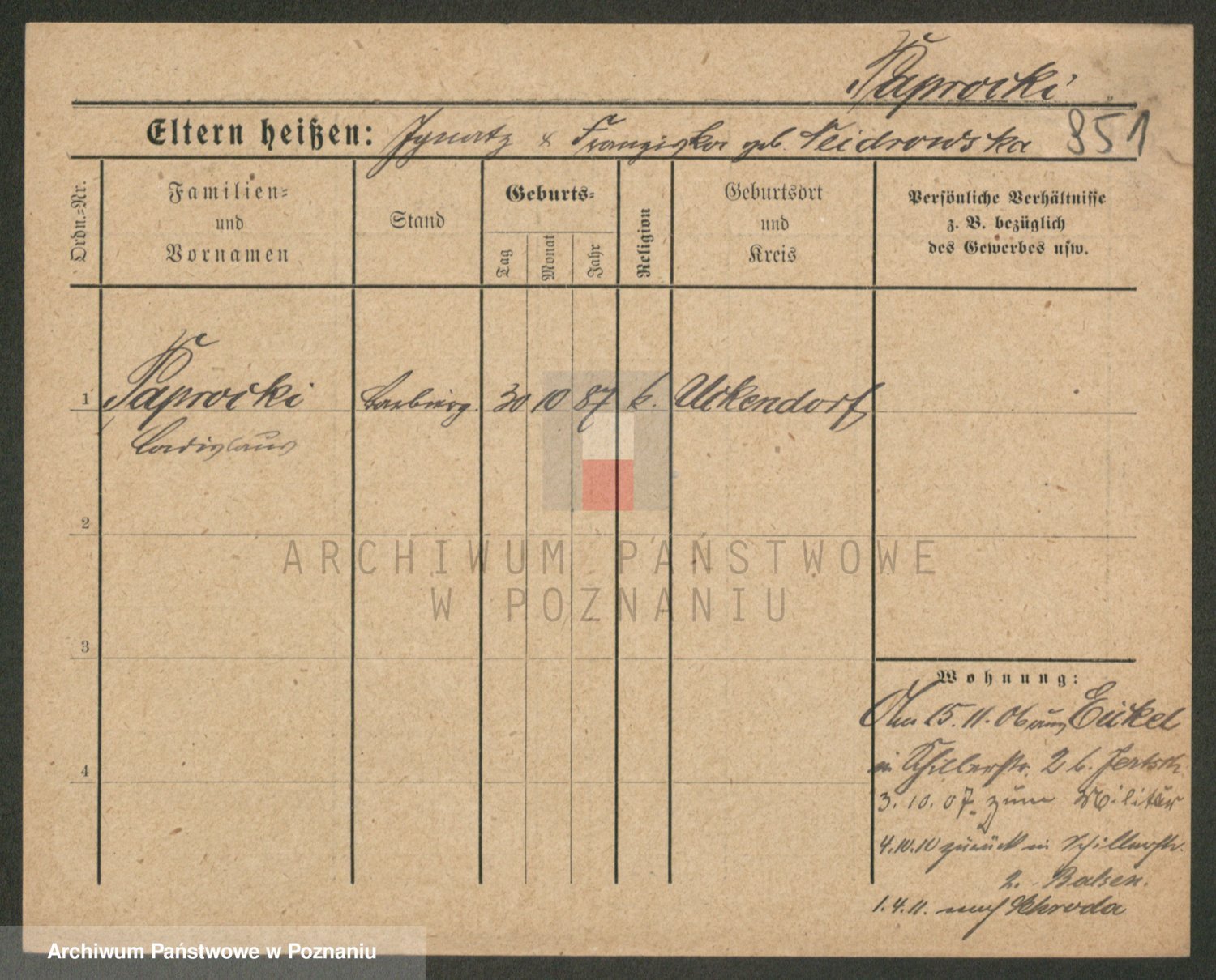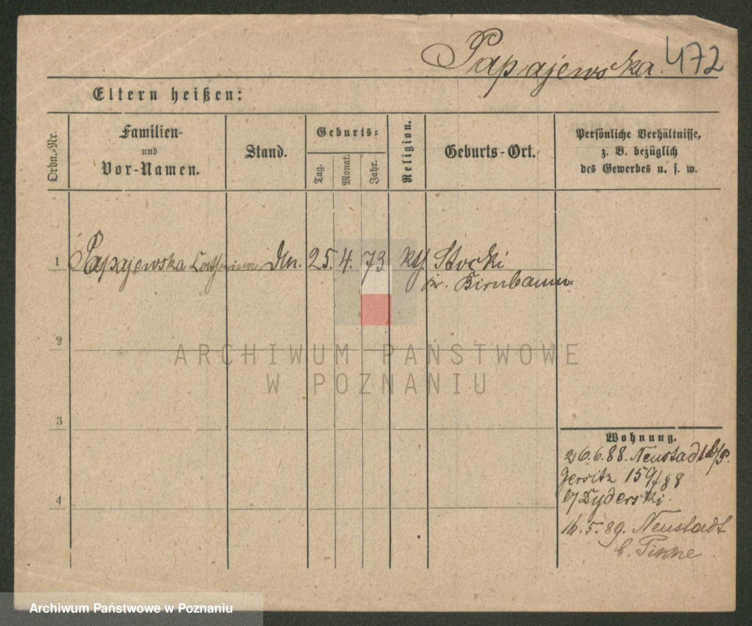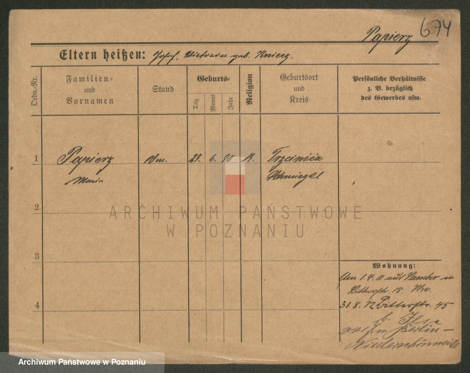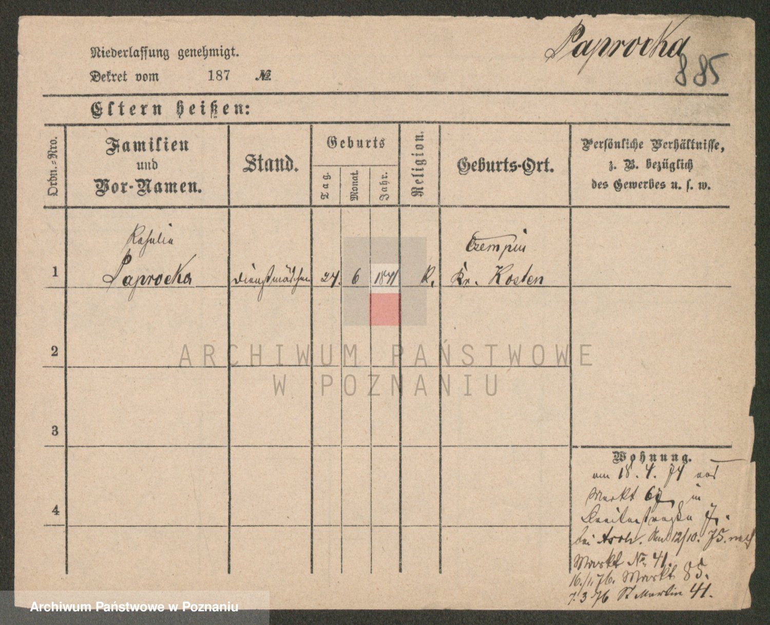 Paprocka von, Bronislawa