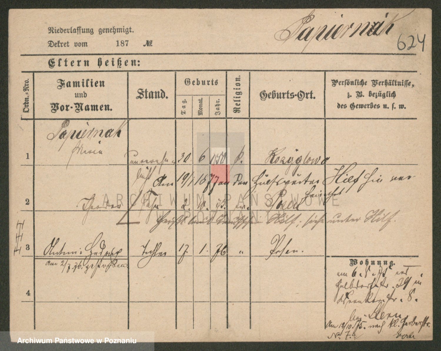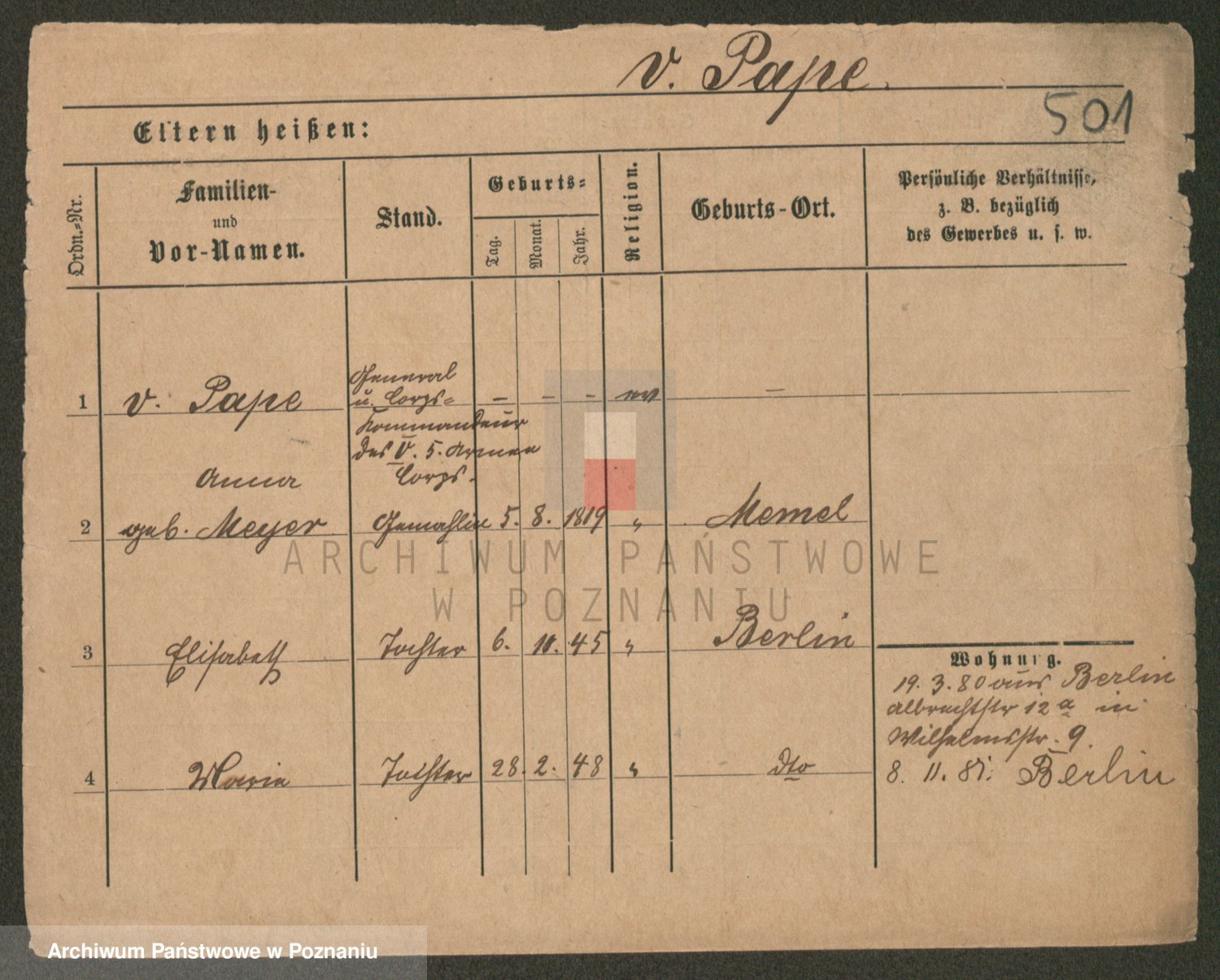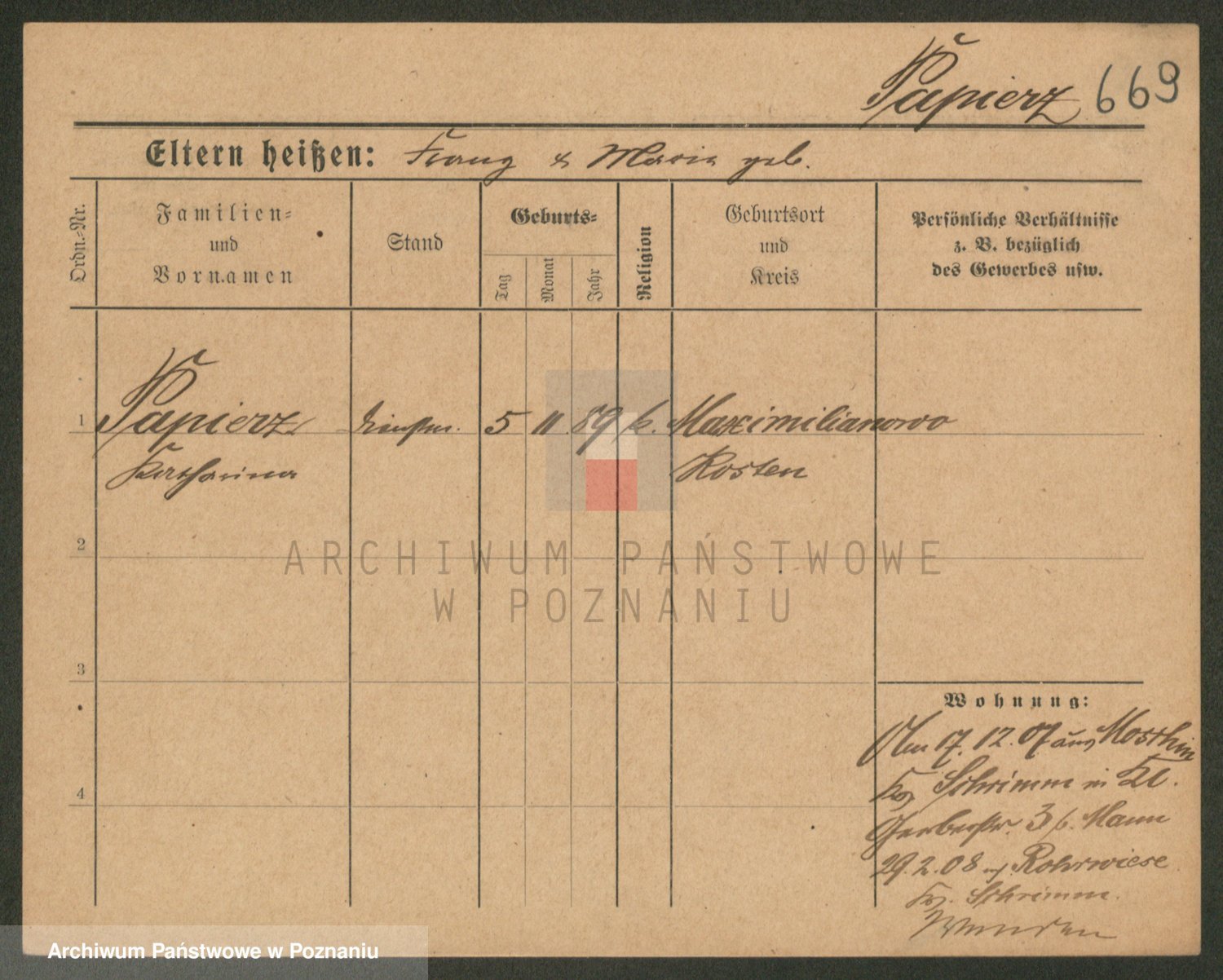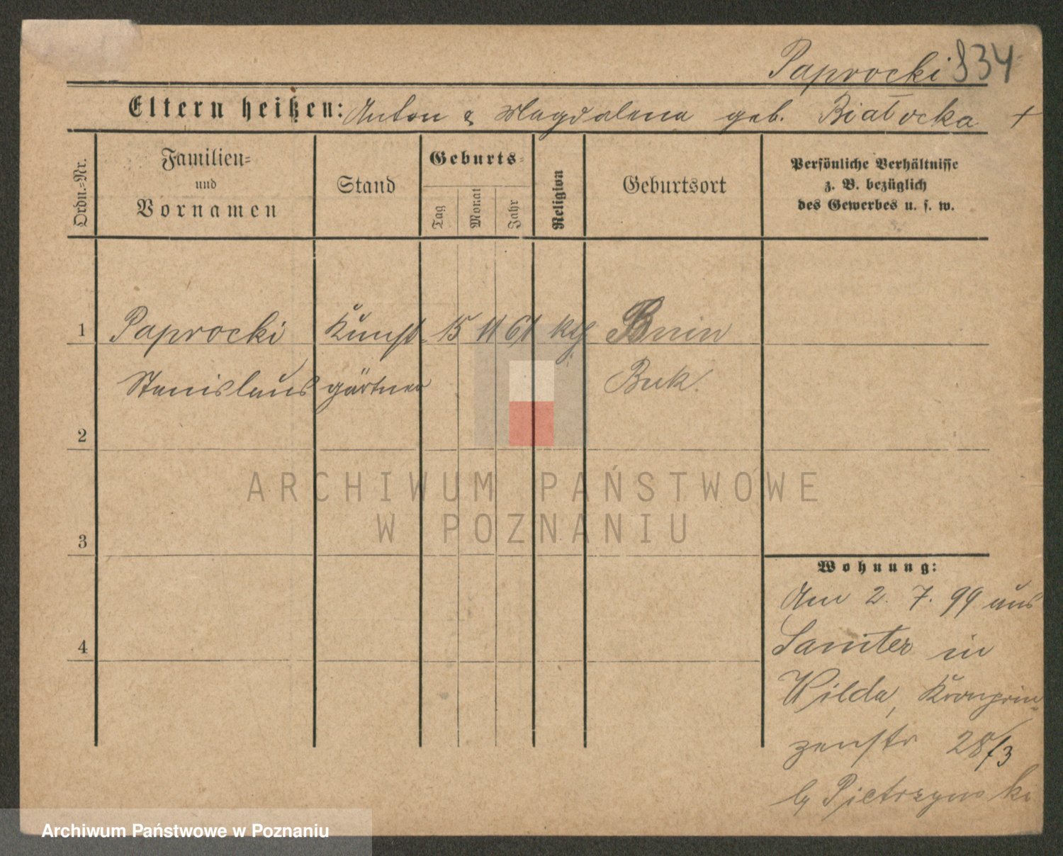 Paprocka von, Bronislawa