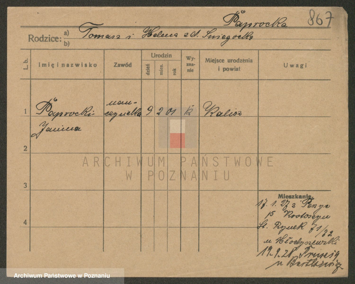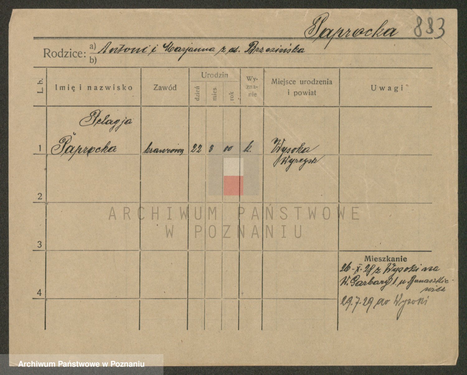 Paprocka, Seweryna