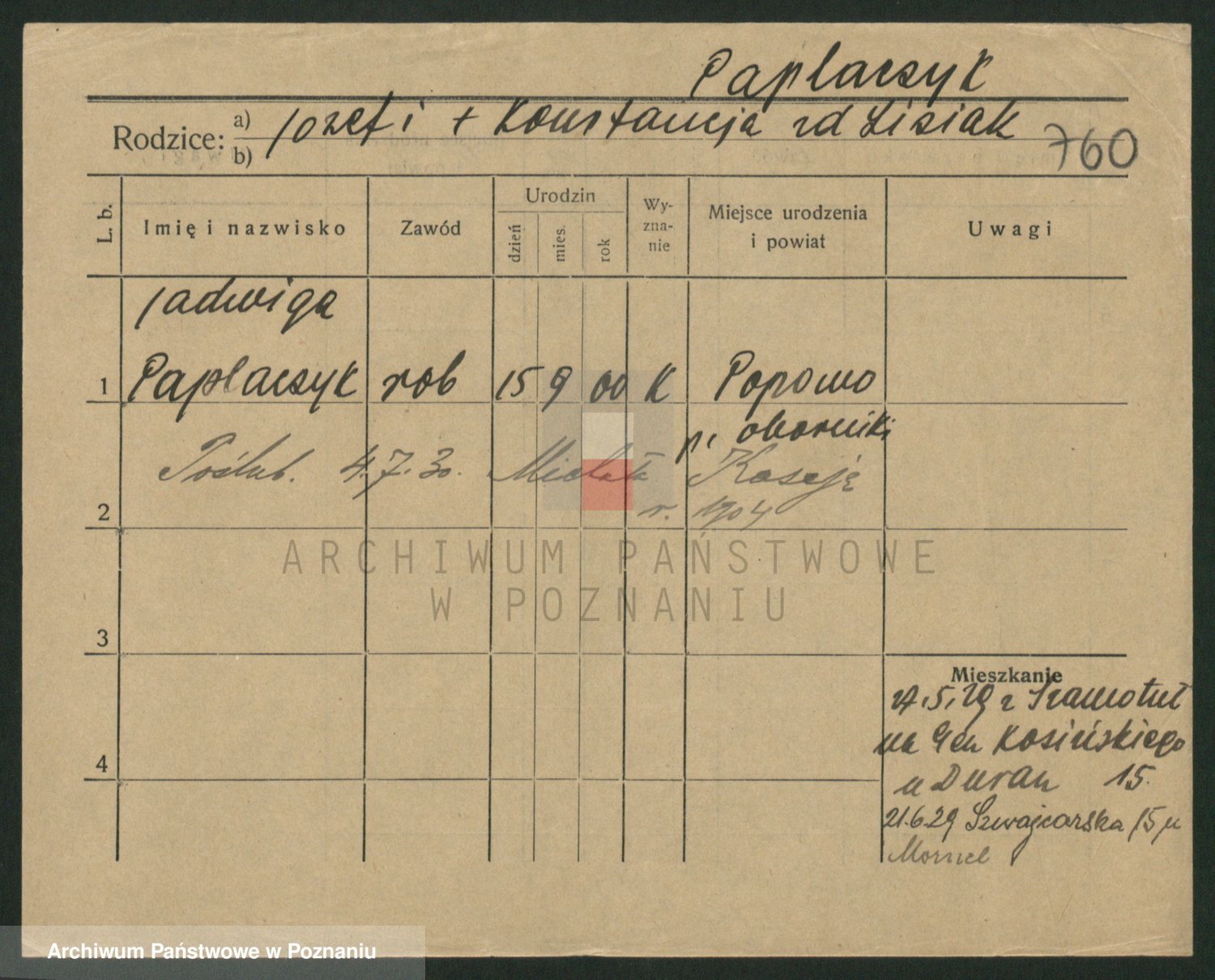 Paprocka, Jadwiga