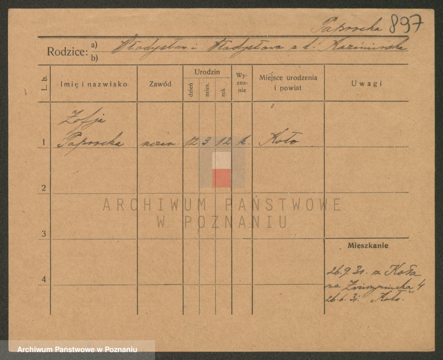 Paprocka, Zofja