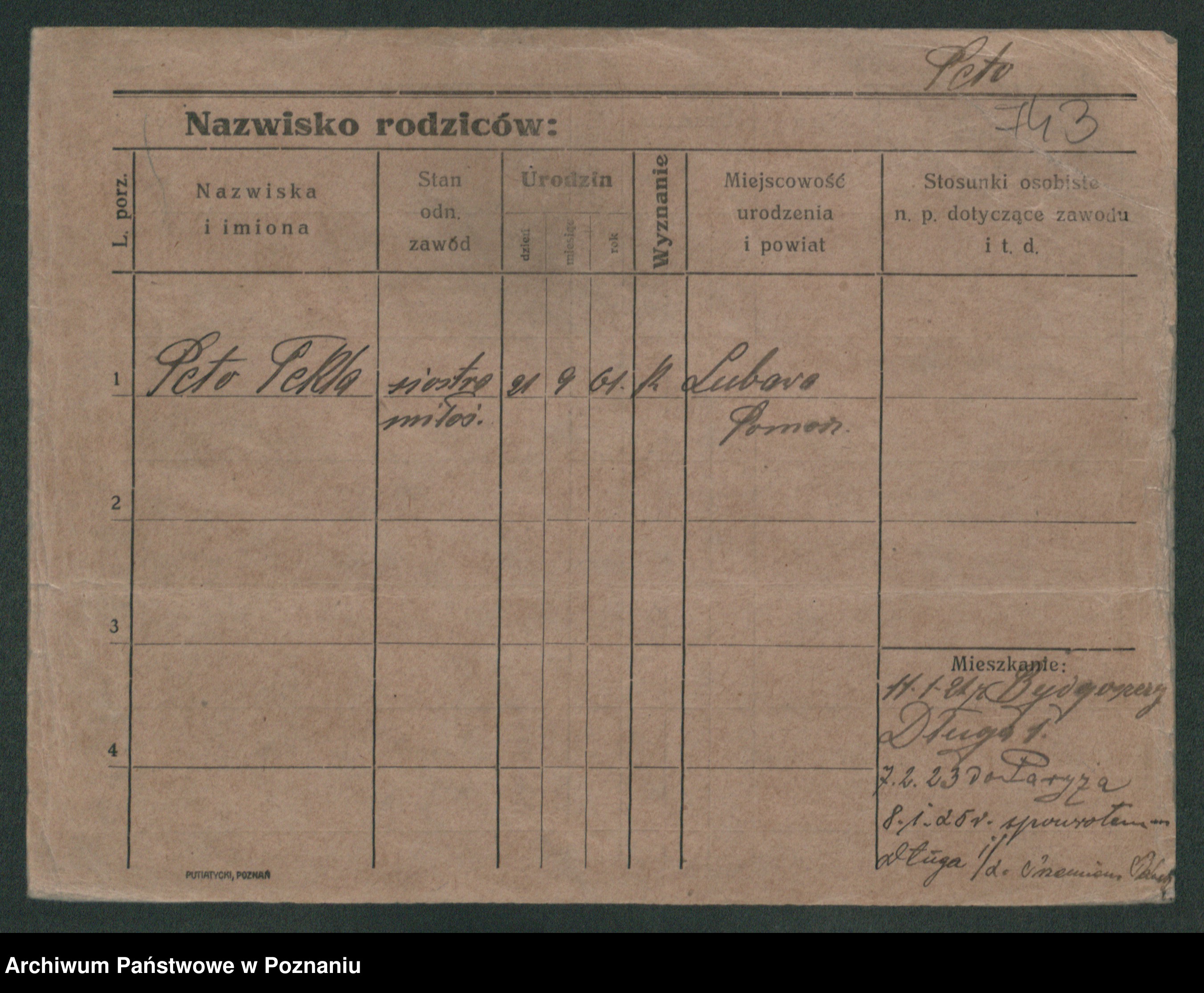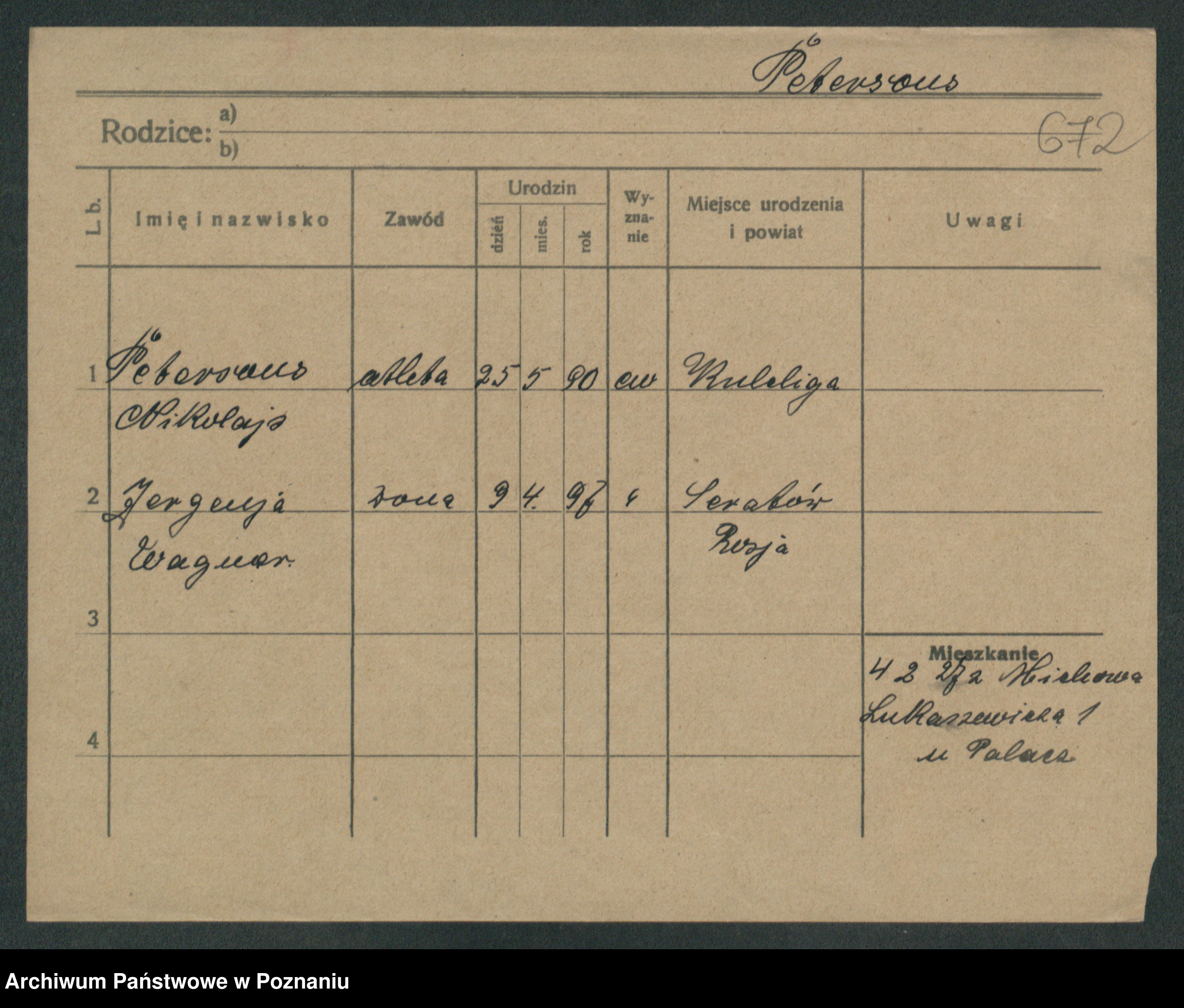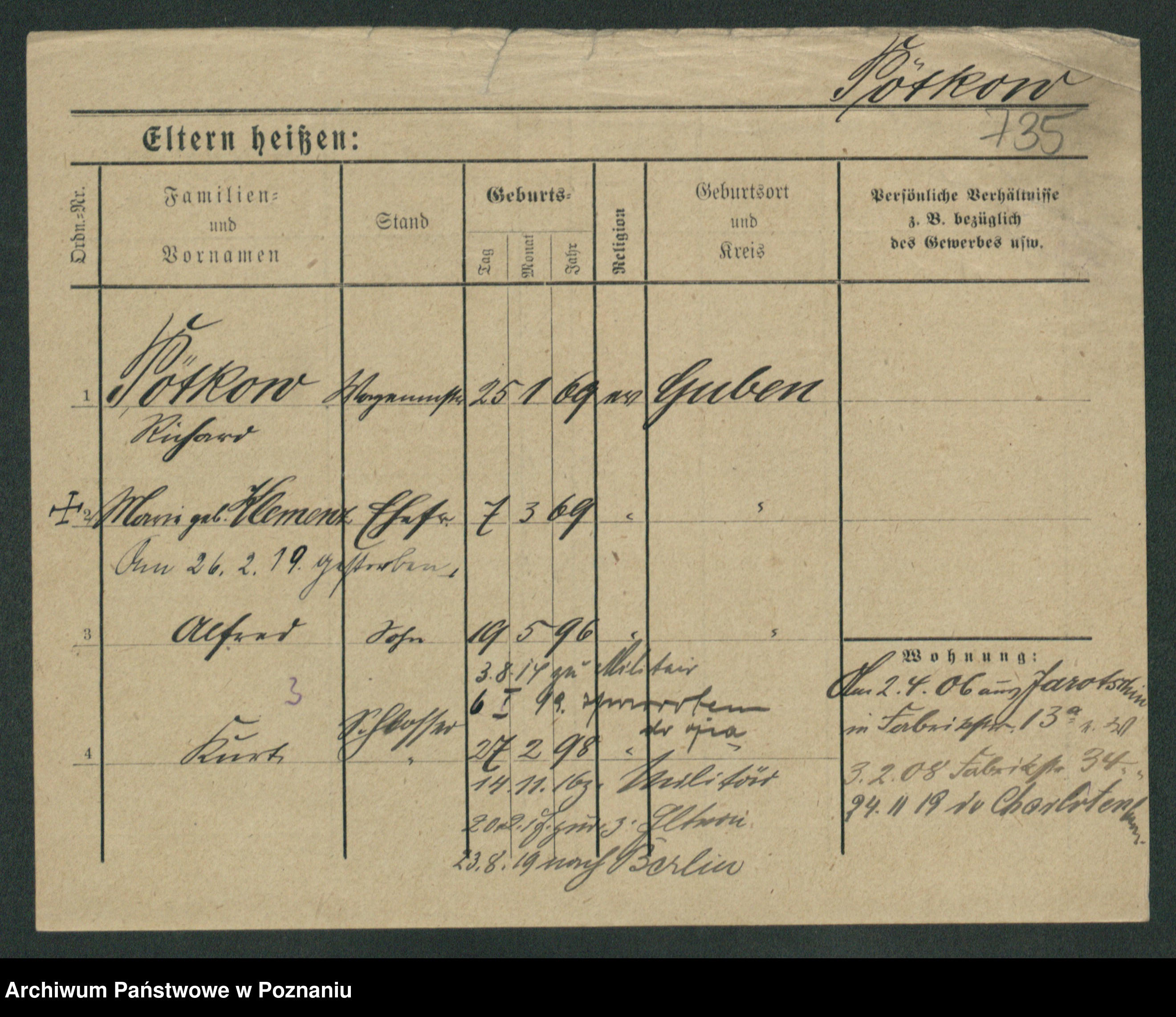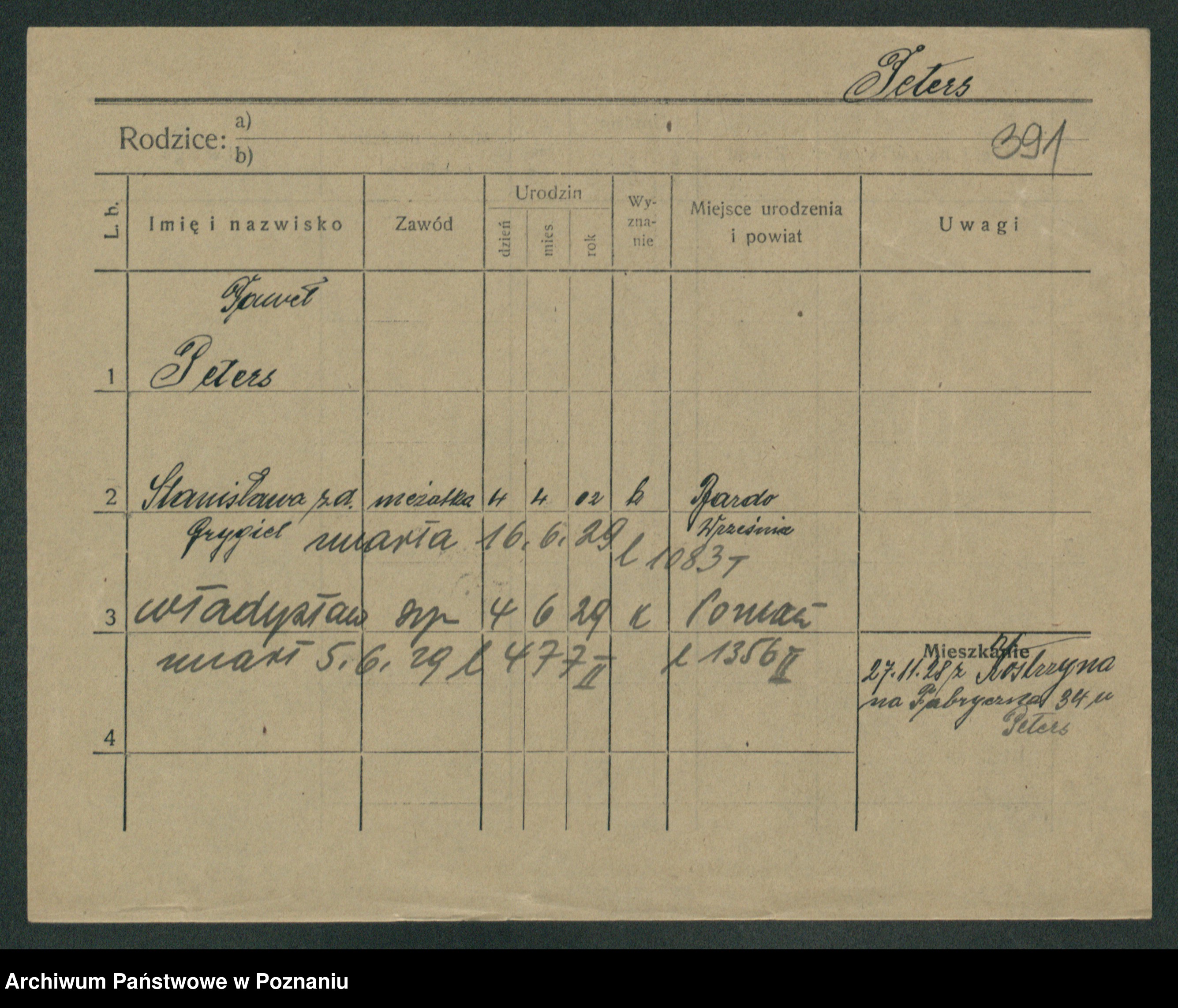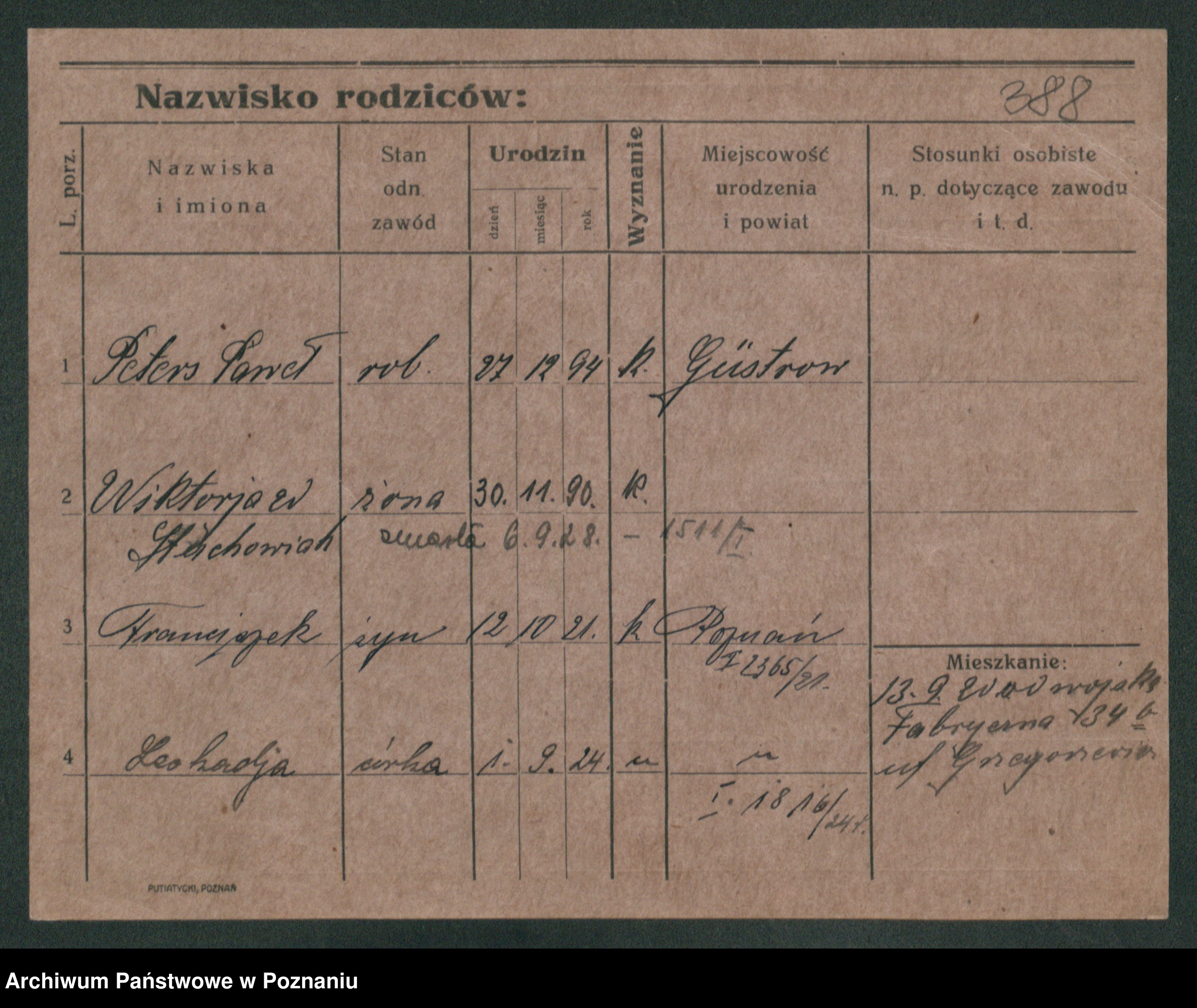 Podgląd karty osobowej dostępny jest po kliknięciu na nazwisko lub ikonkę karty. Można dokonywać powiększenia (ikony na górze) lub przechodzić między kolejnymi skanami (strzałki po bokach).