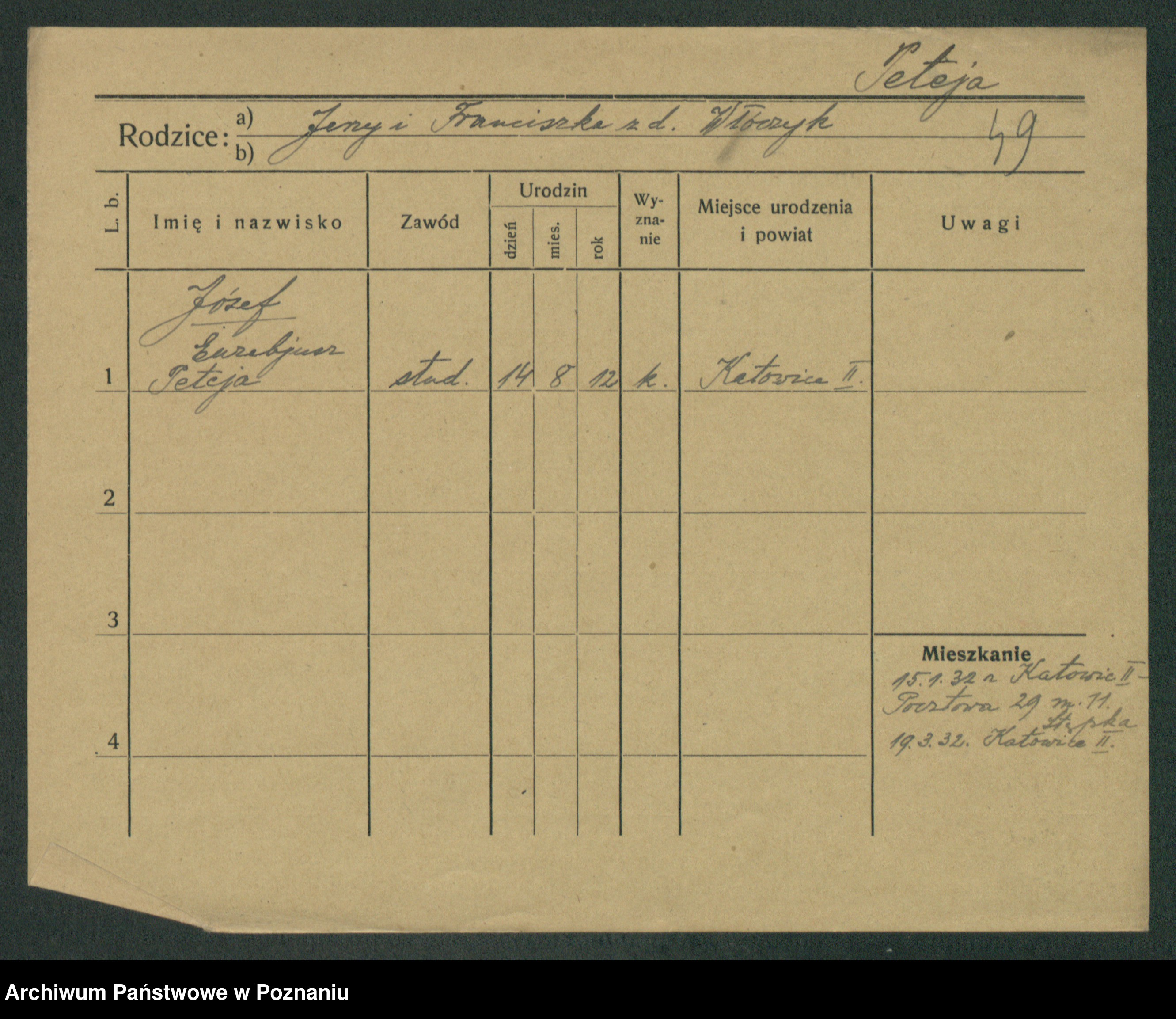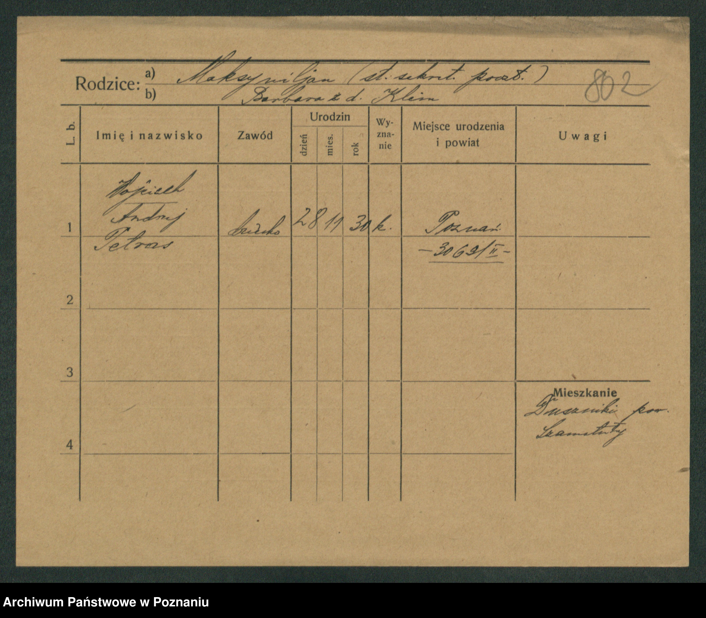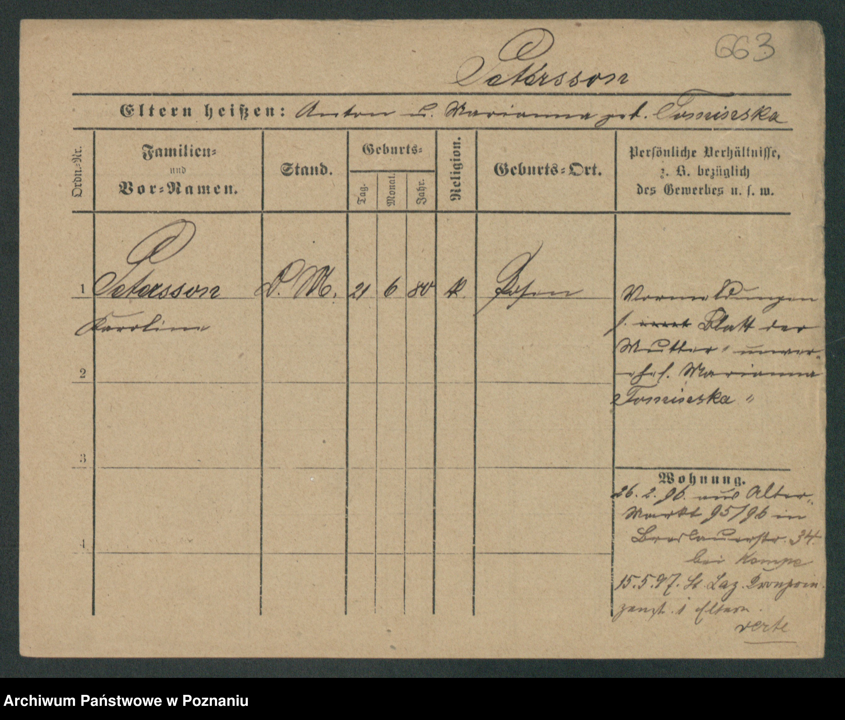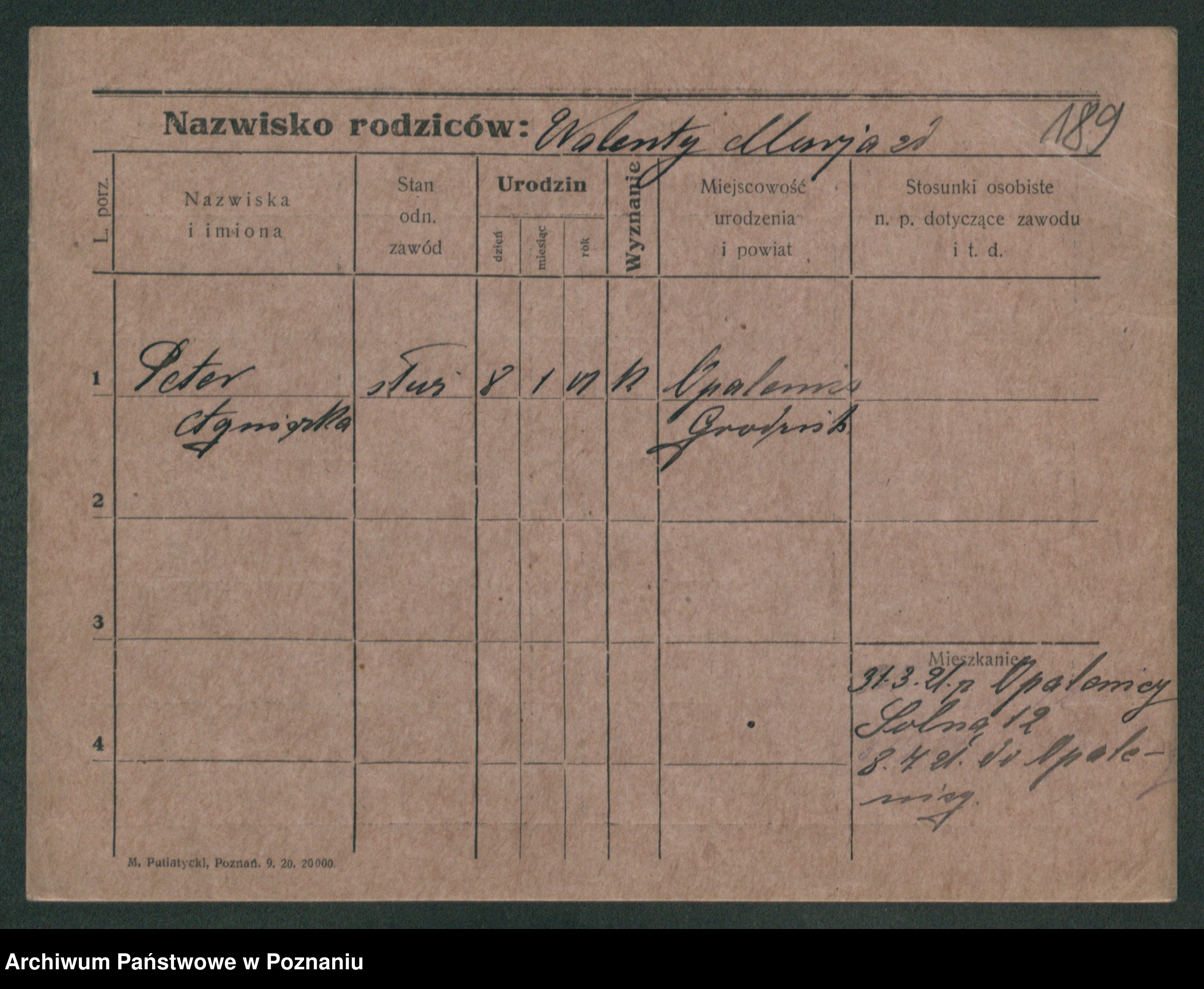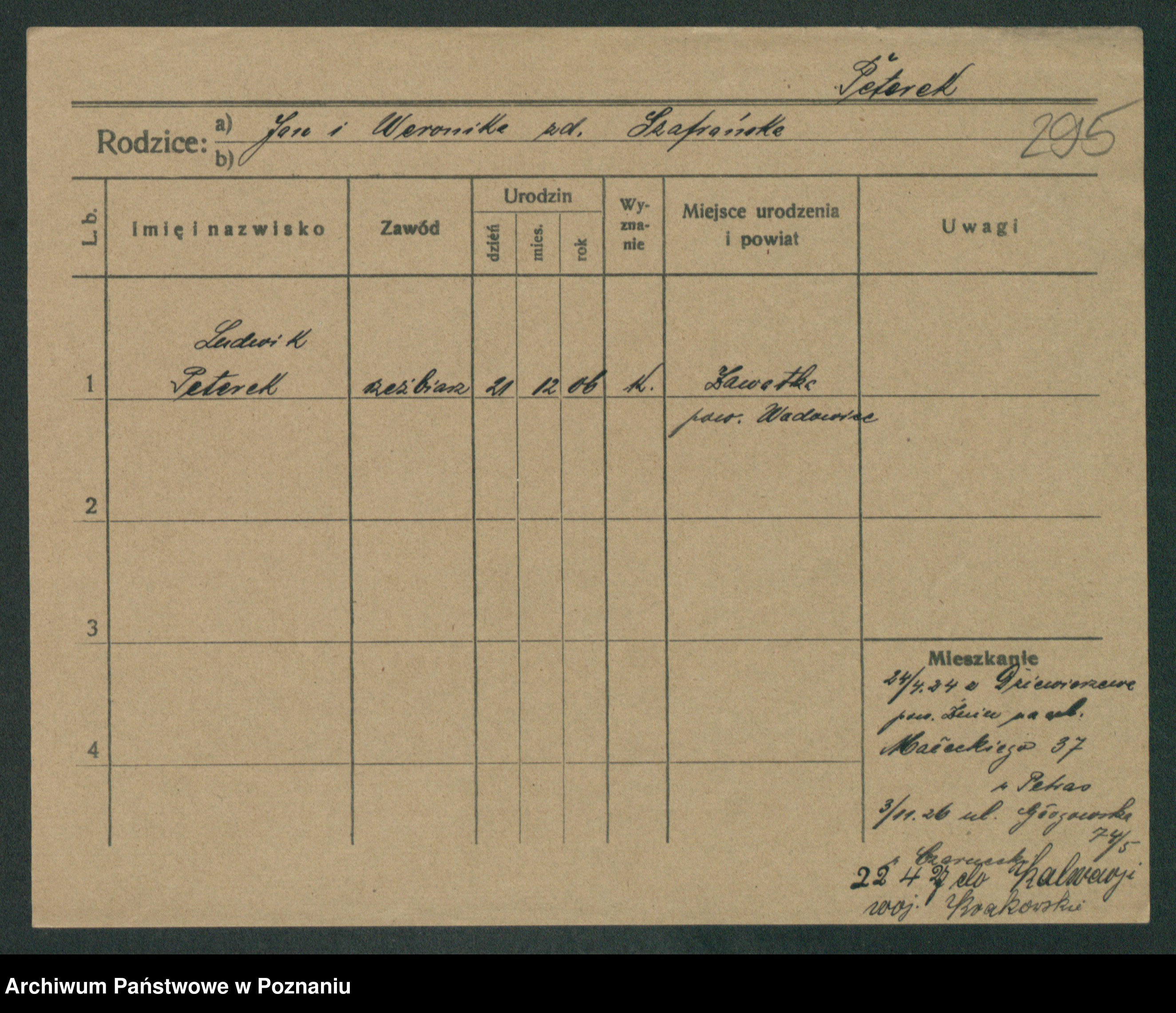Podgląd karty osobowej dostępny jest po kliknięciu na nazwisko lub ikonkę karty. Można dokonywać powiększenia (ikony na górze) lub przechodzić między kolejnymi skanami (strzałki po bokach).