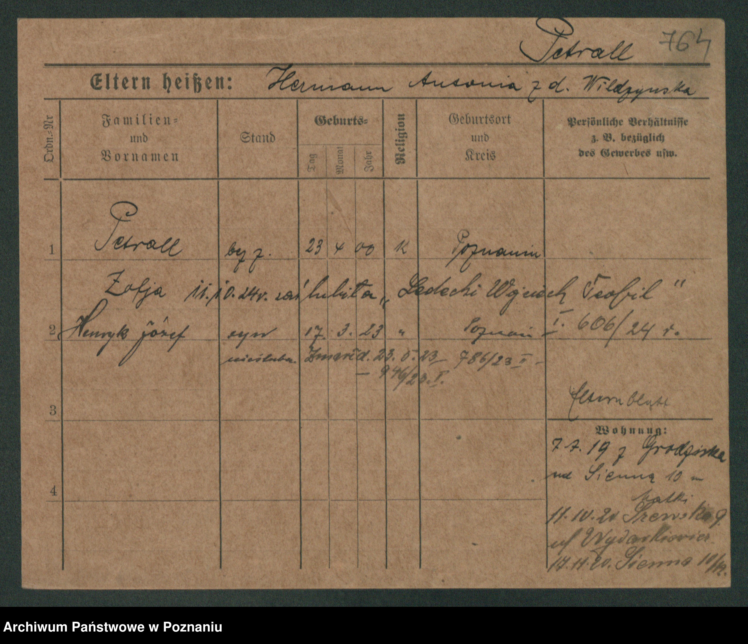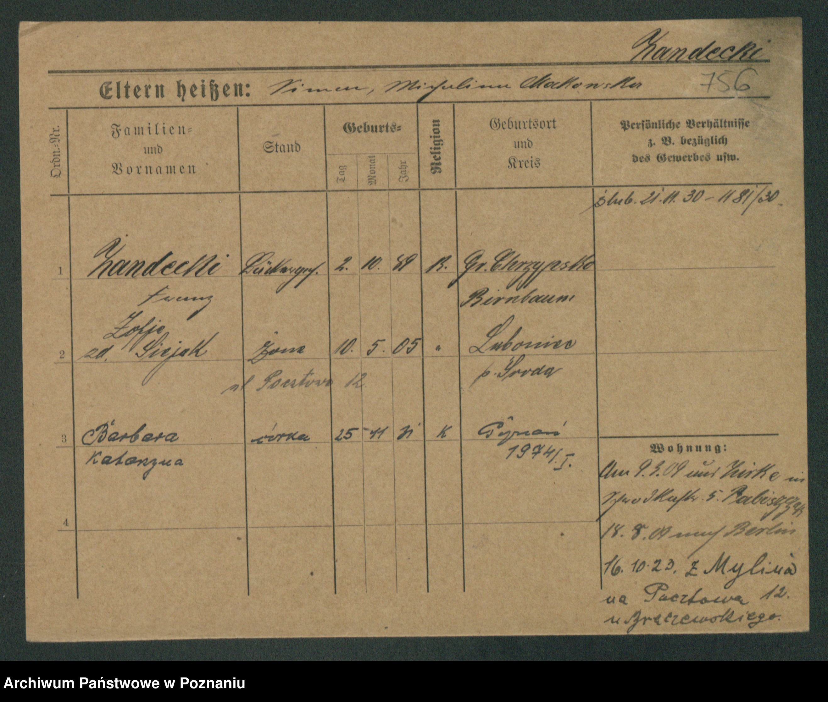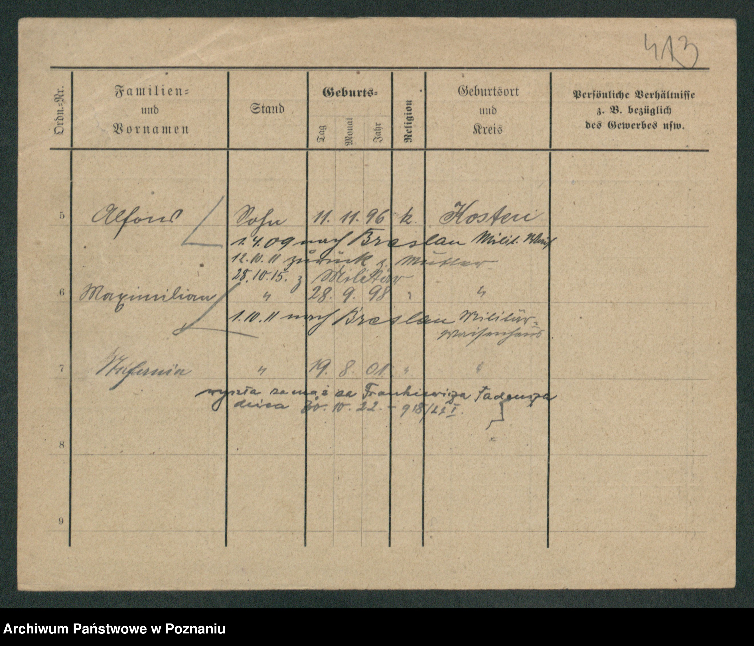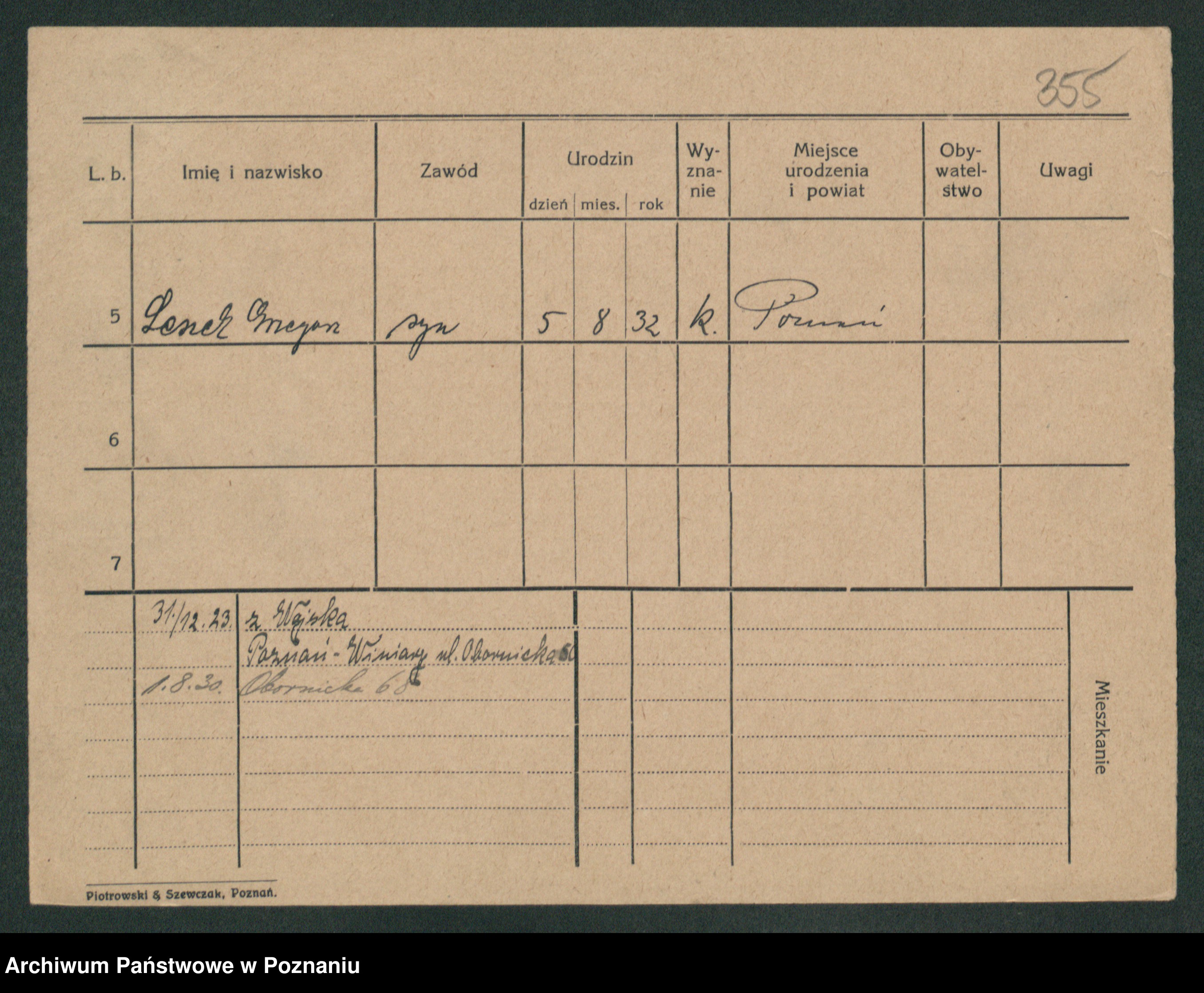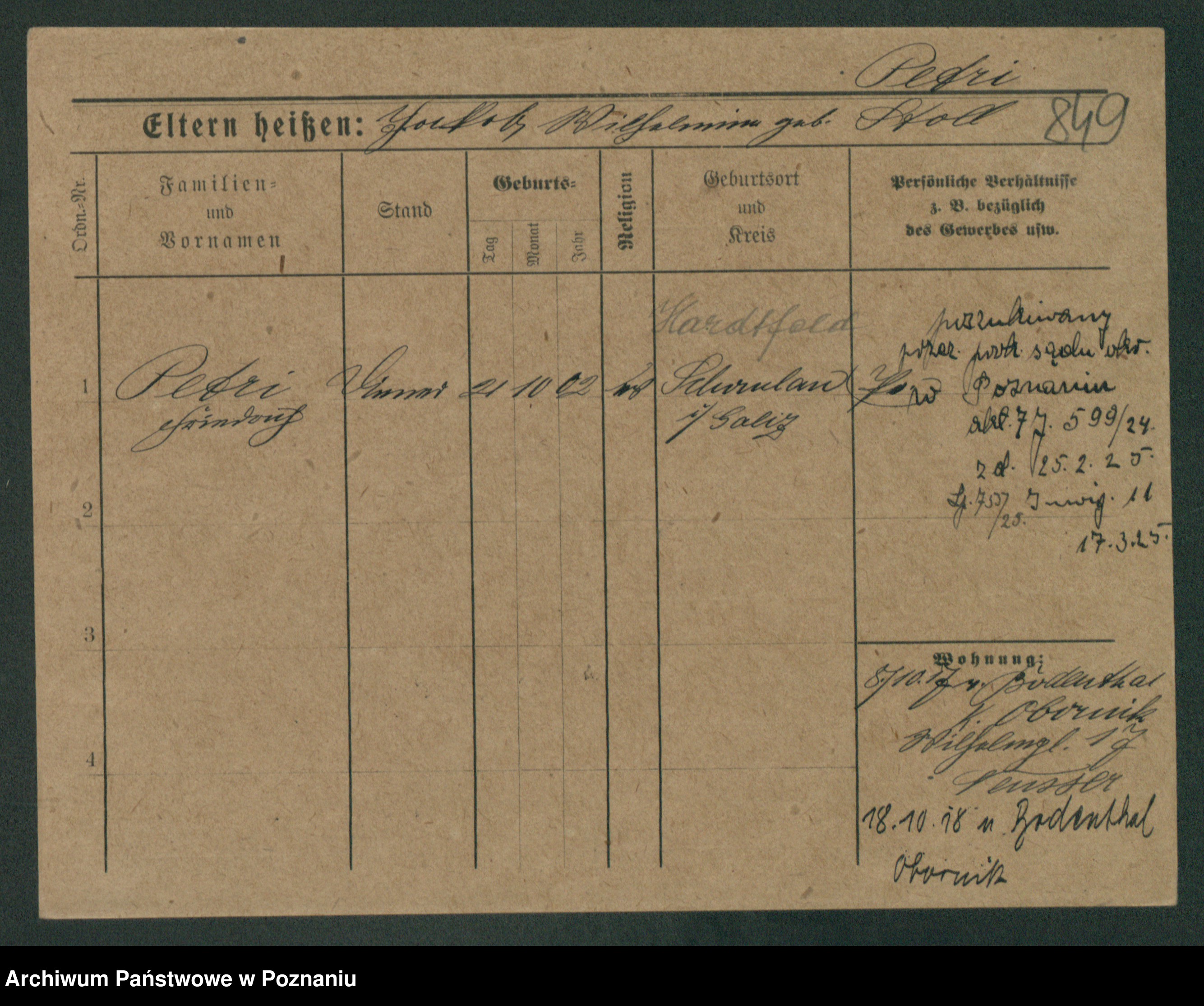 Podgląd karty osobowej dostępny jest po kliknięciu na nazwisko lub ikonkę karty. Można dokonywać powiększenia (ikony na górze) lub przechodzić między kolejnymi skanami (strzałki po bokach).