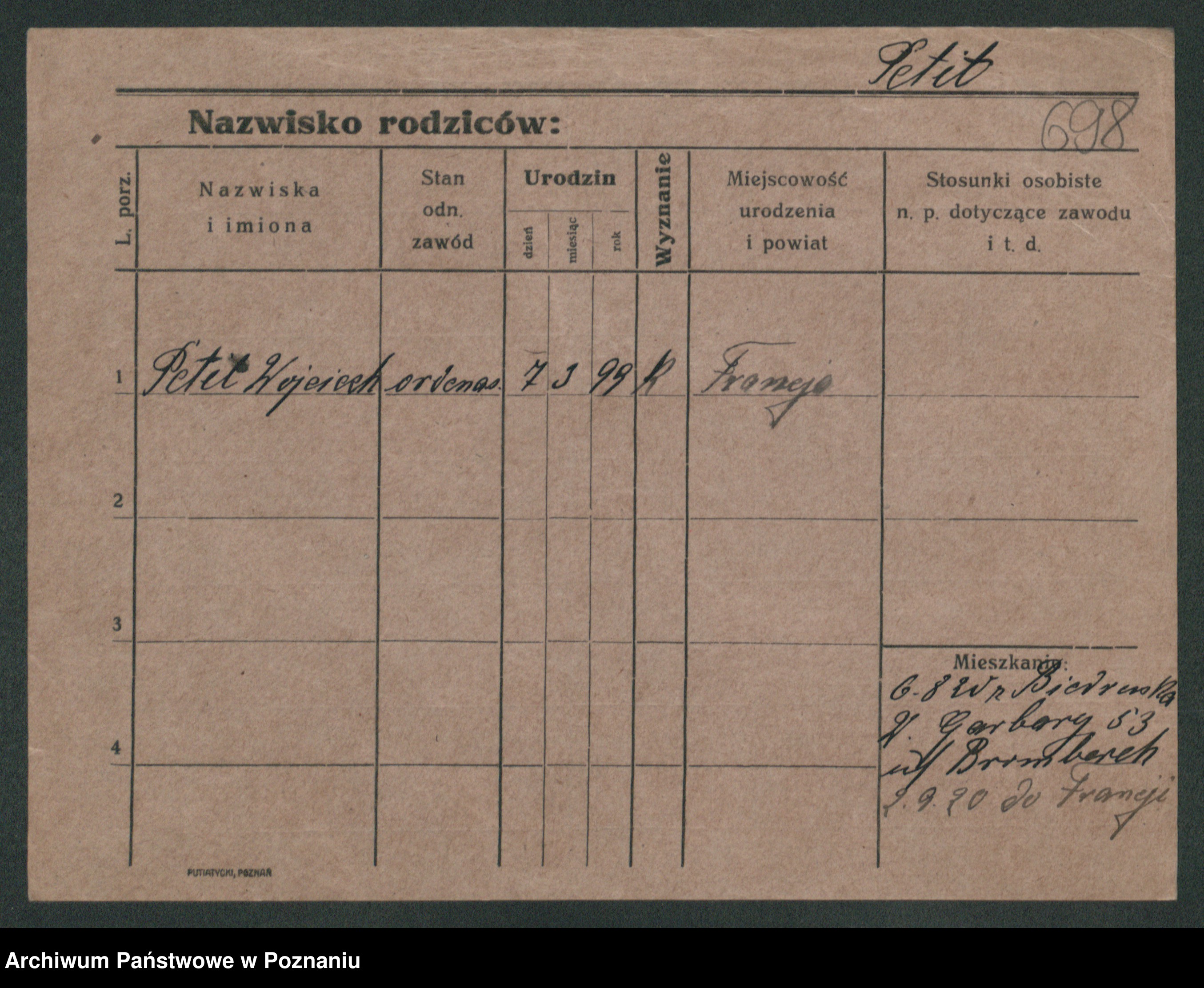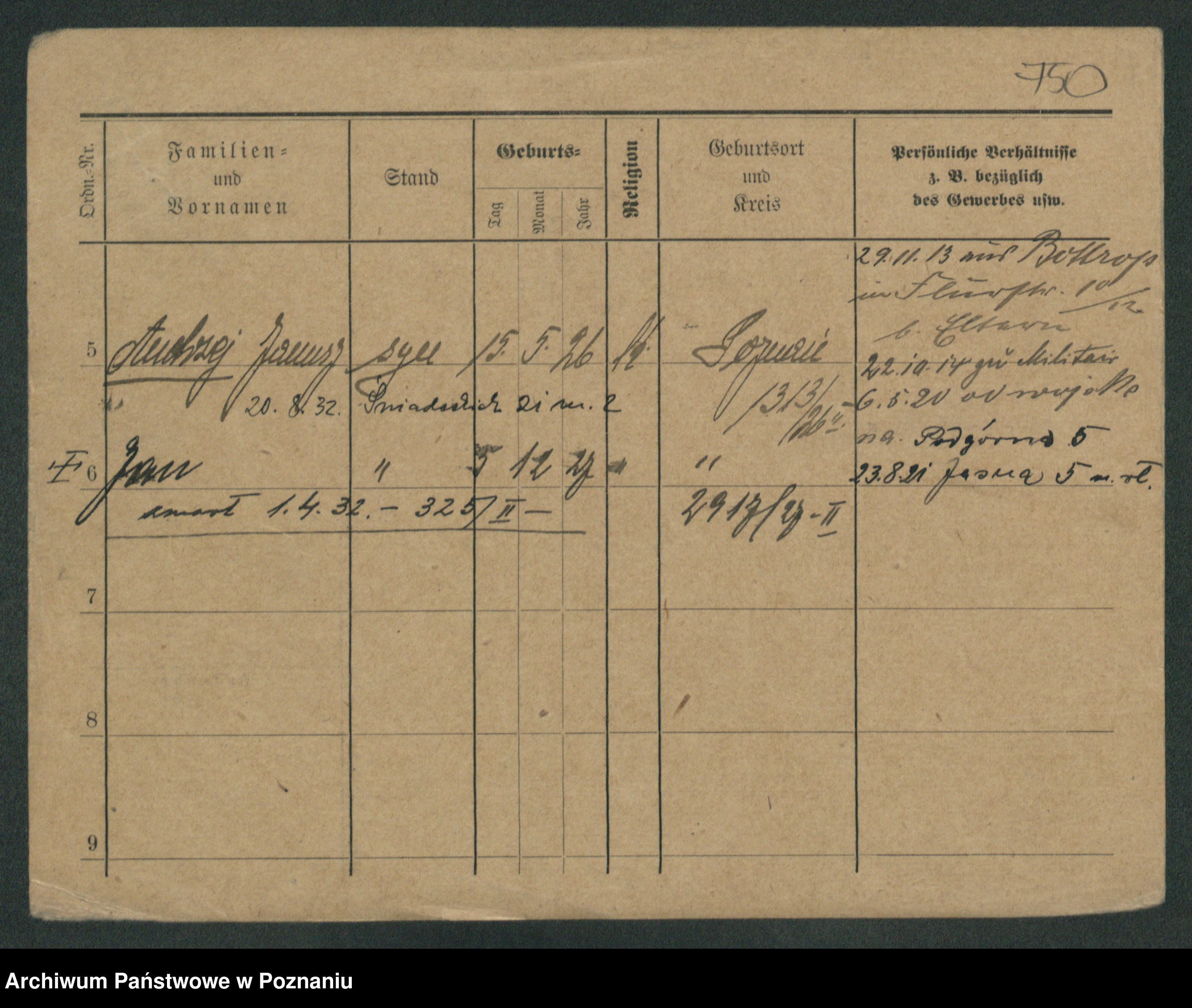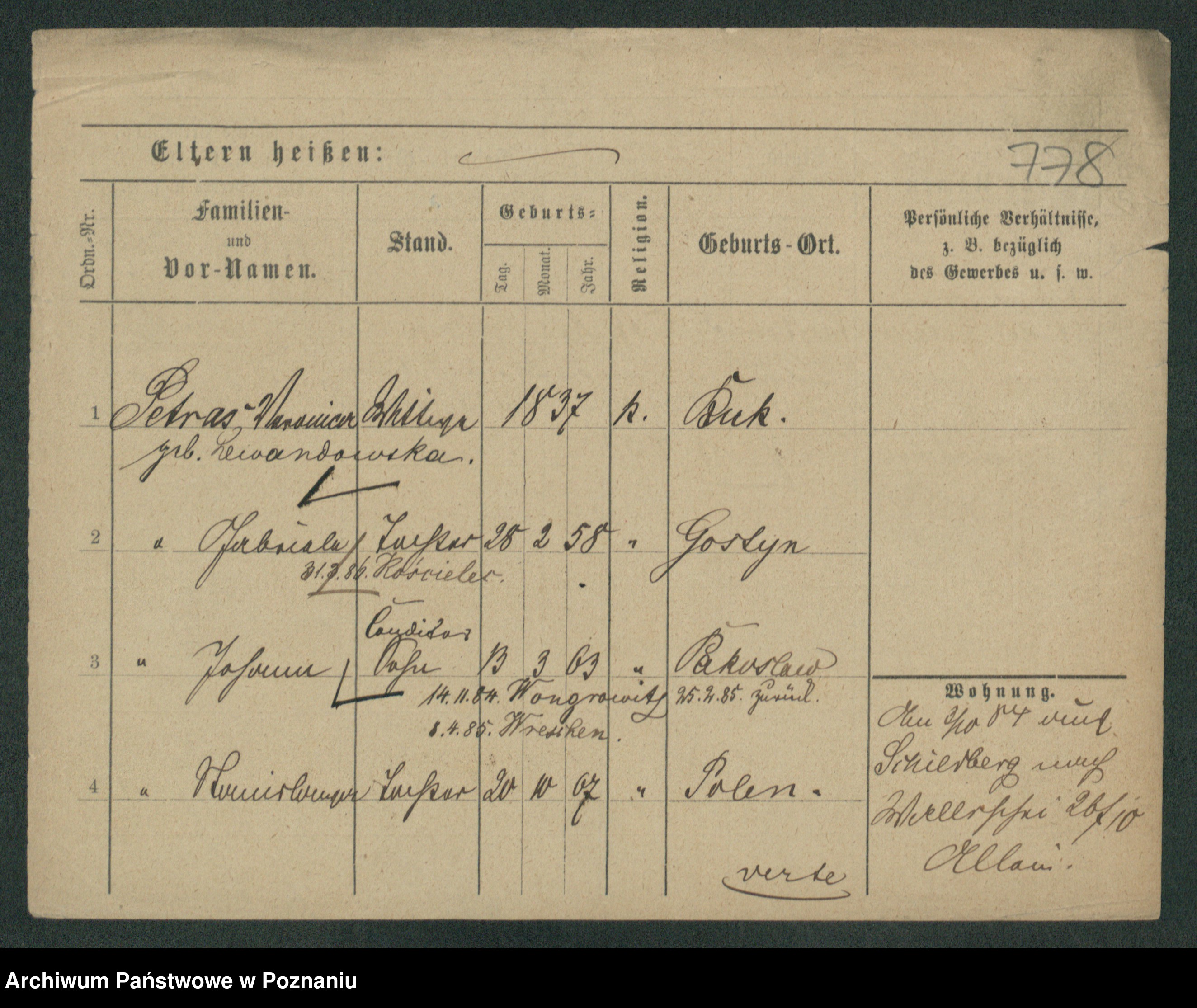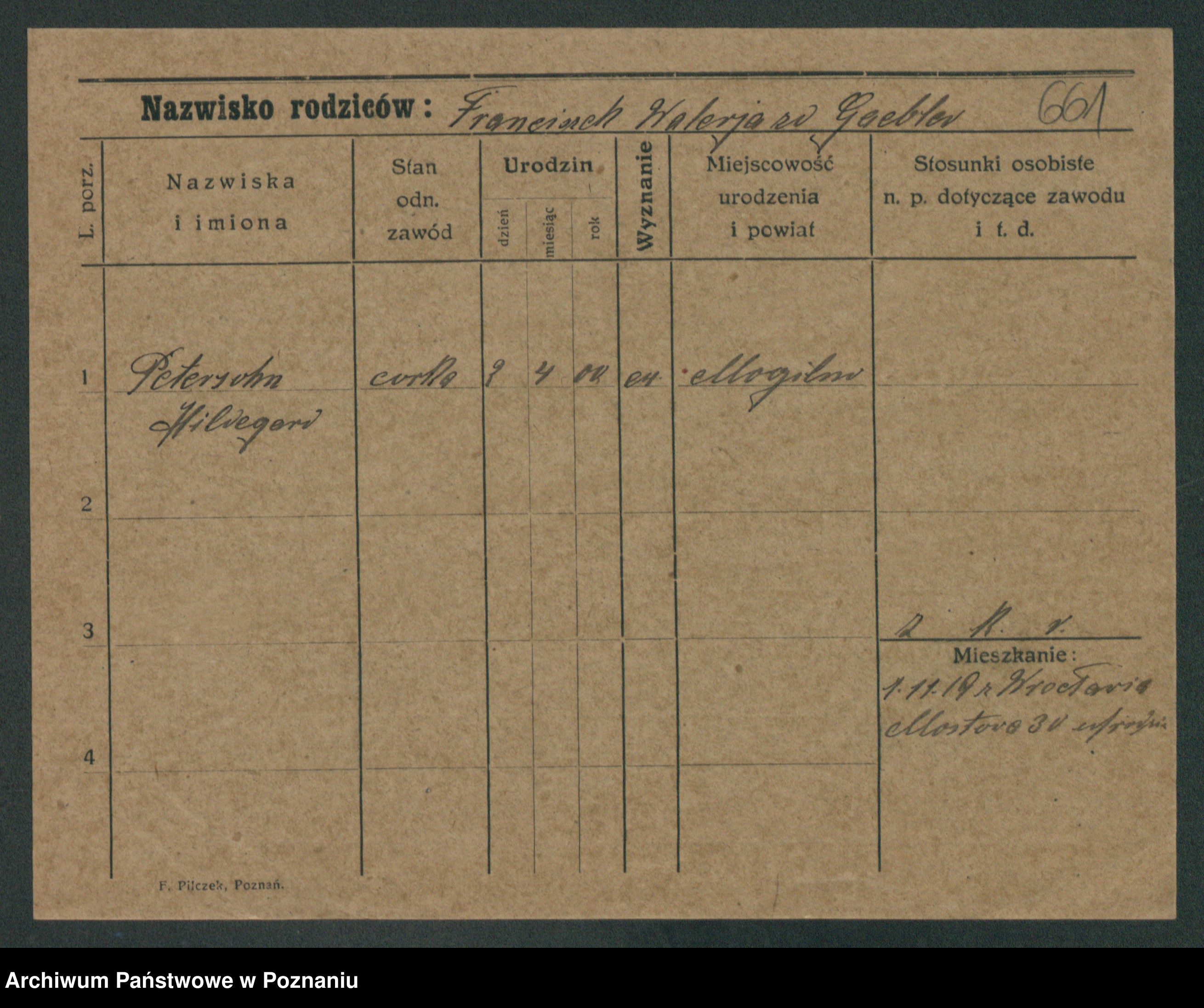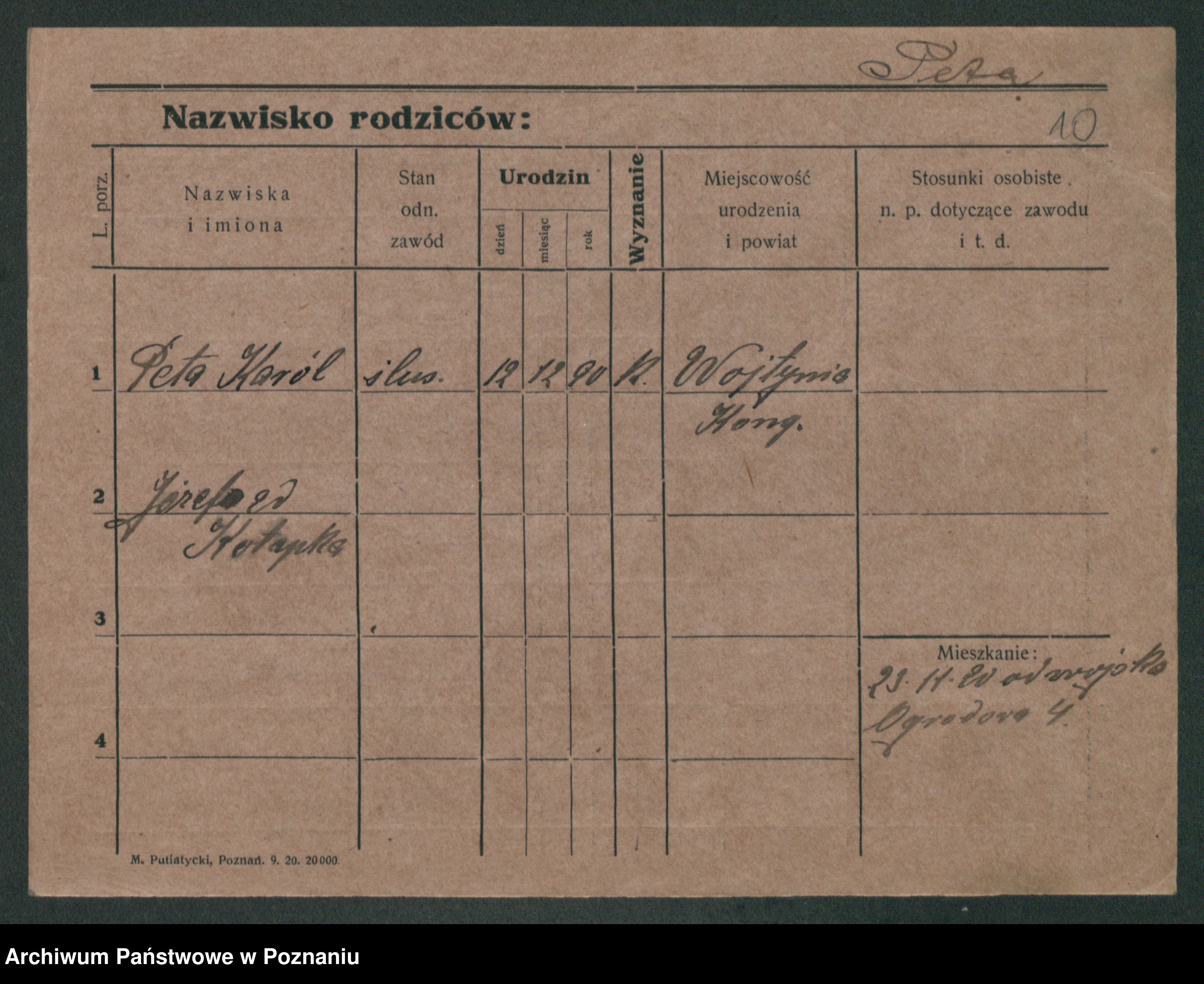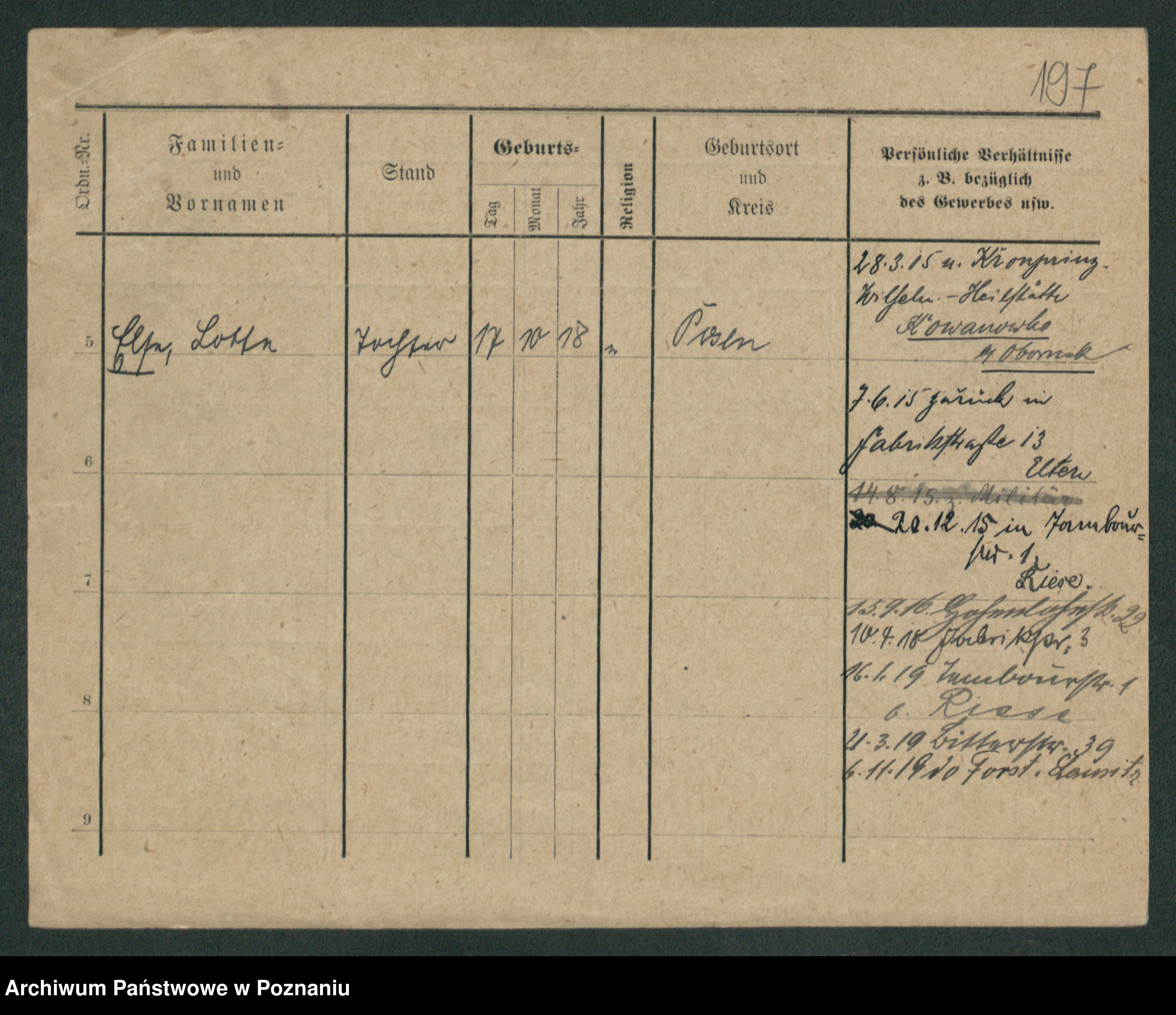 Podgląd karty osobowej dostępny jest po kliknięciu na nazwisko lub ikonkę karty. Można dokonywać powiększenia (ikony na górze) lub przechodzić między kolejnymi skanami (strzałki po bokach).
