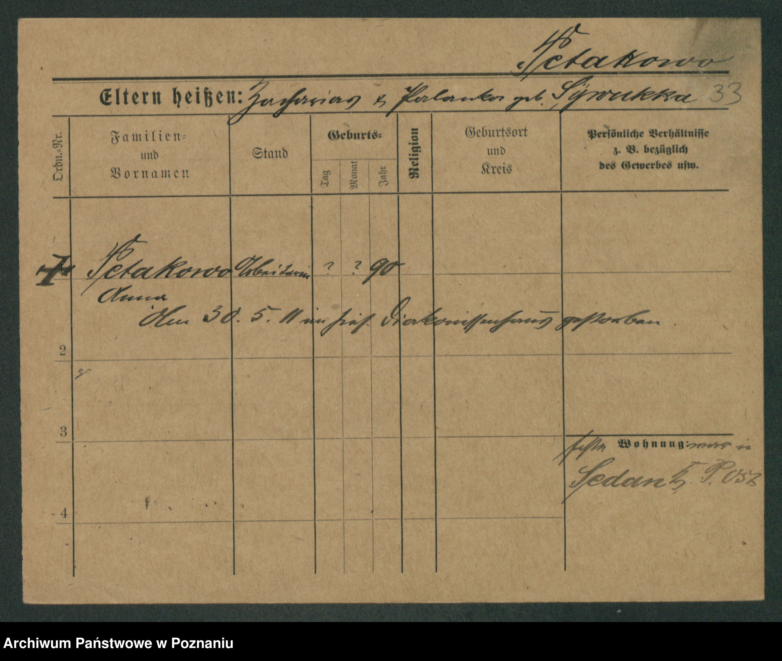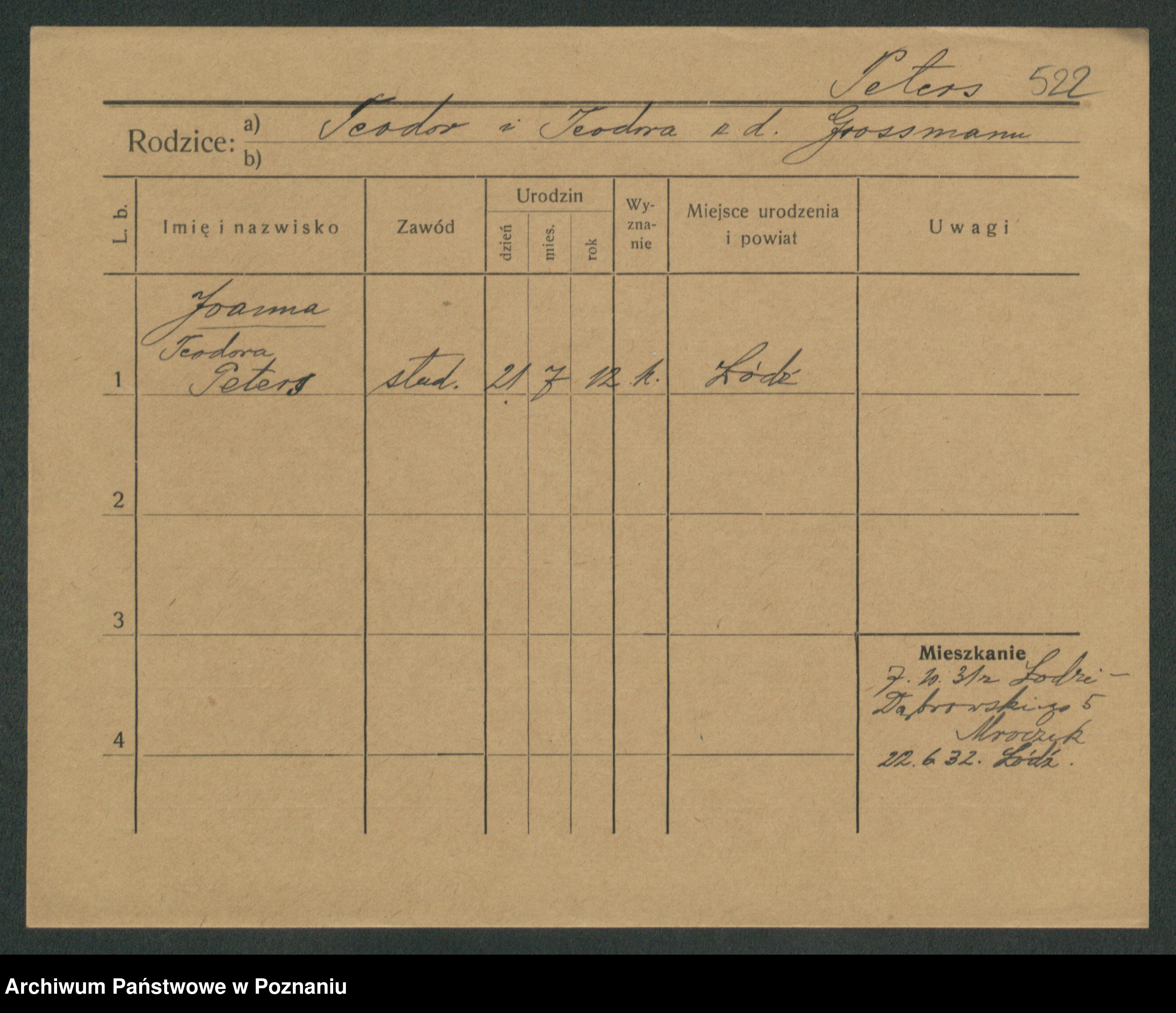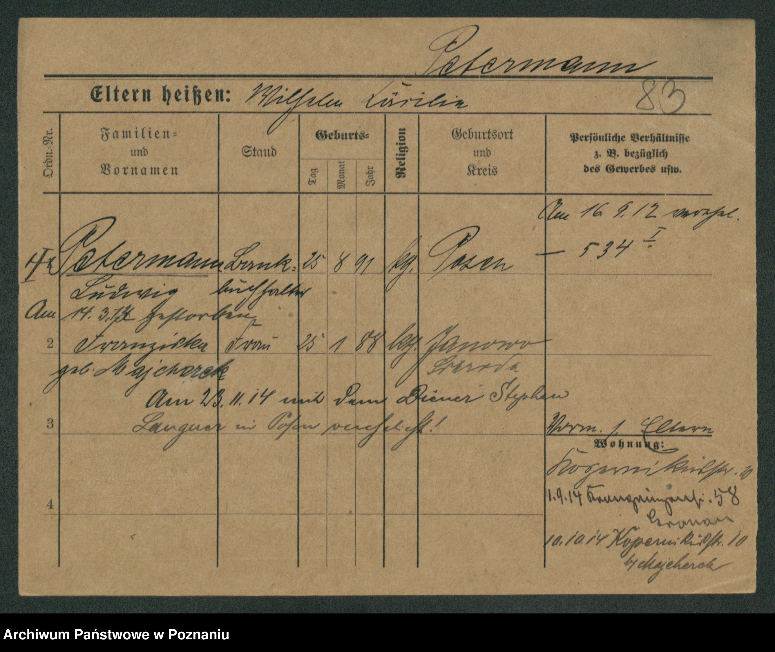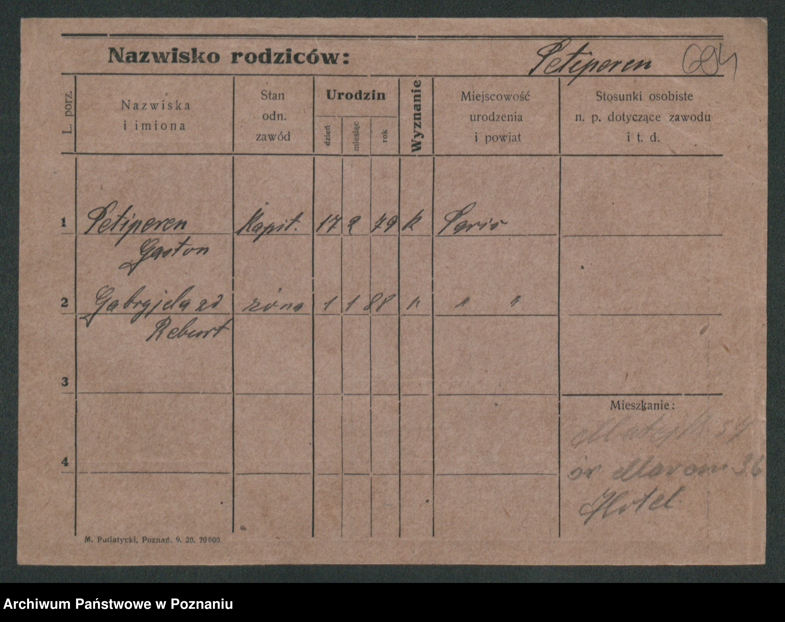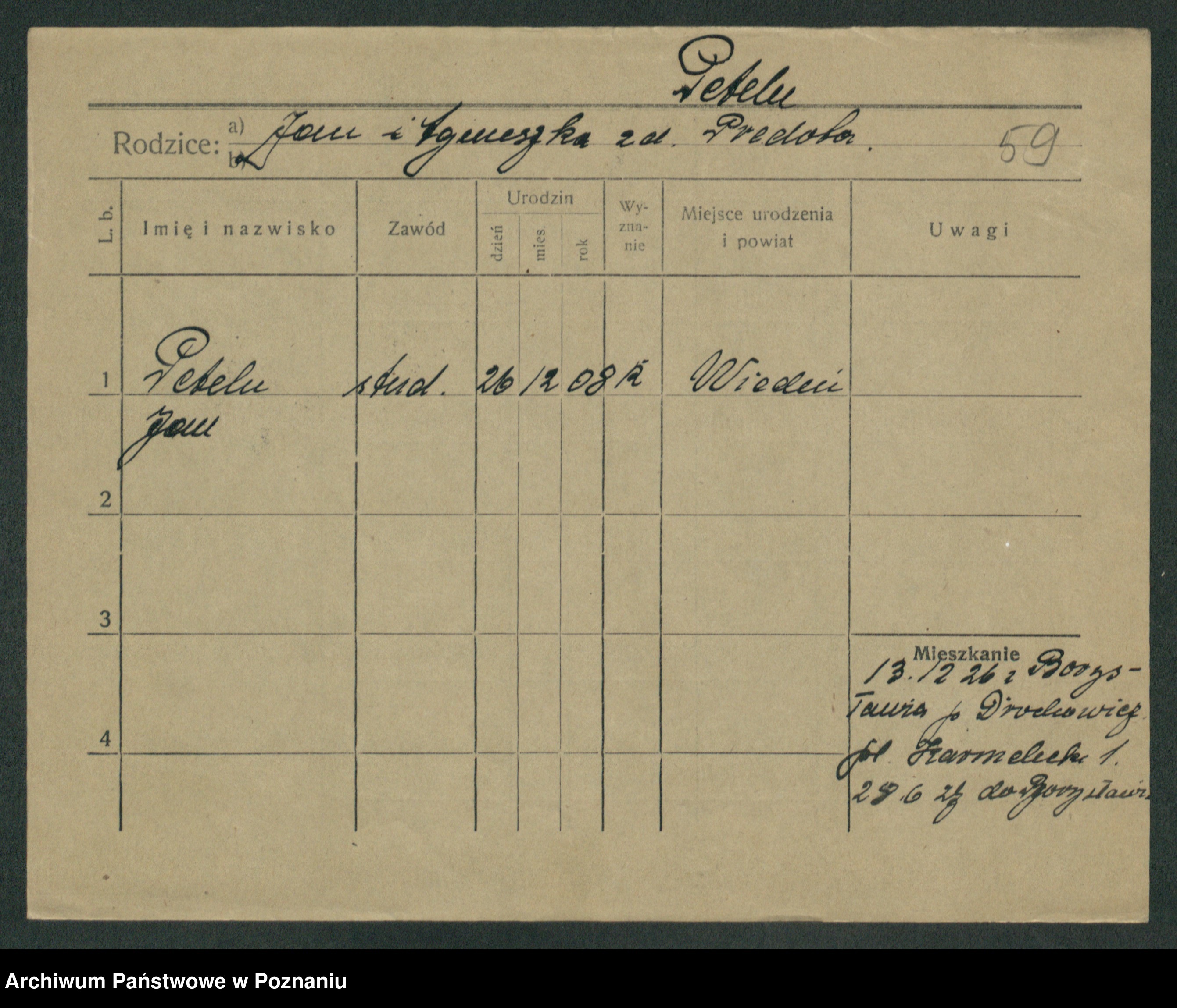 Podgląd karty osobowej dostępny jest po kliknięciu na nazwisko lub ikonkę karty. Można dokonywać powiększenia (ikony na górze) lub przechodzić między kolejnymi skanami (strzałki po bokach).