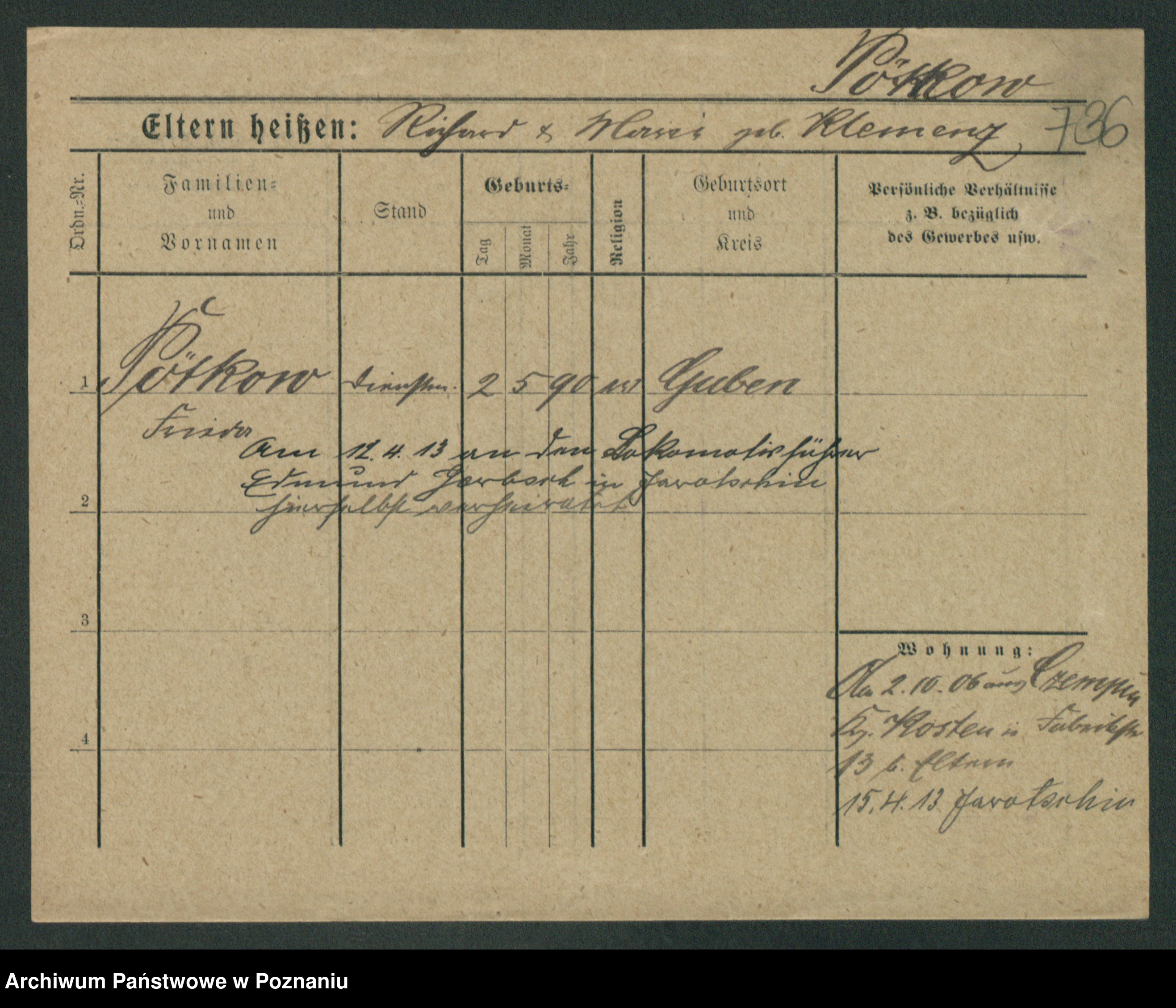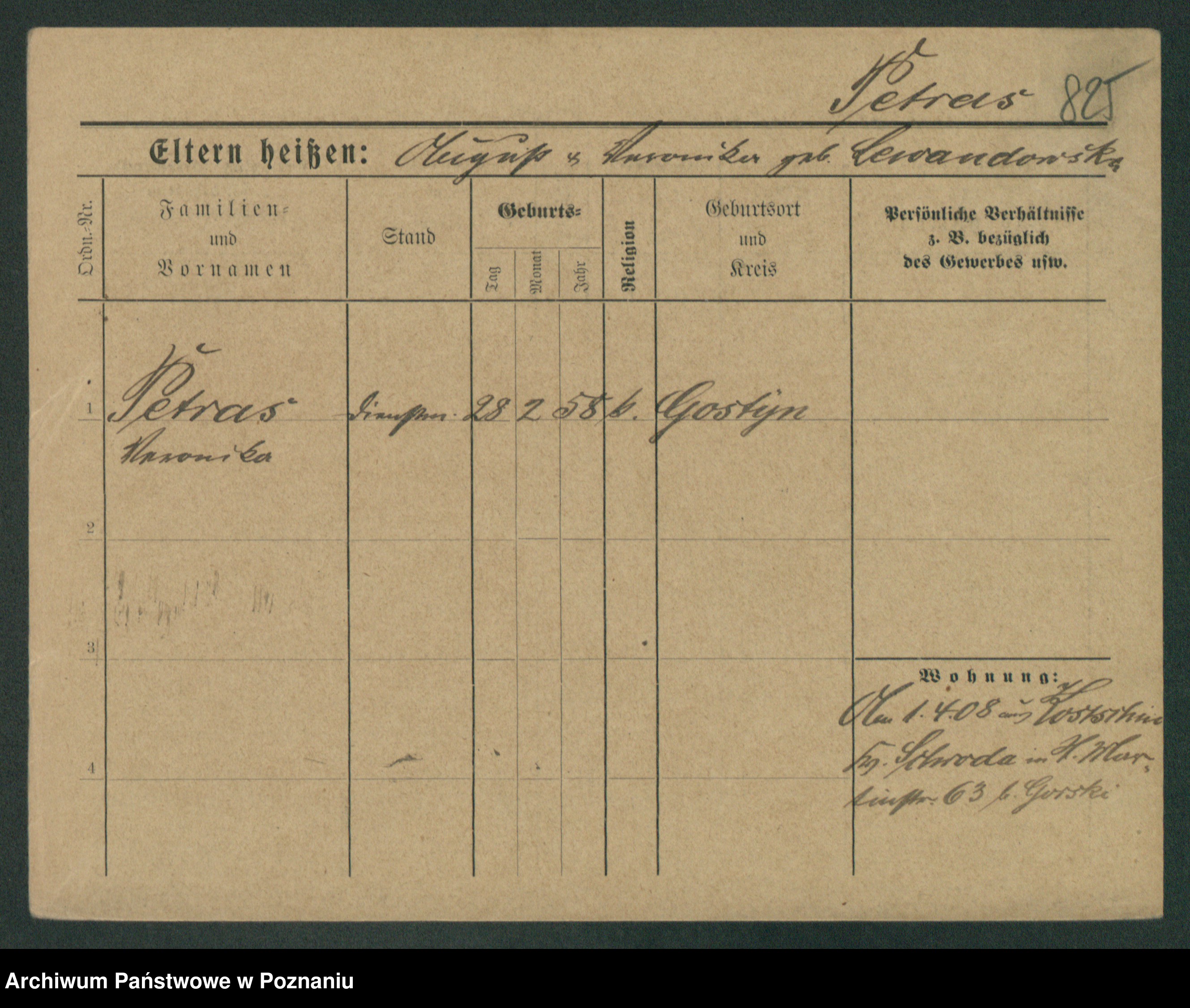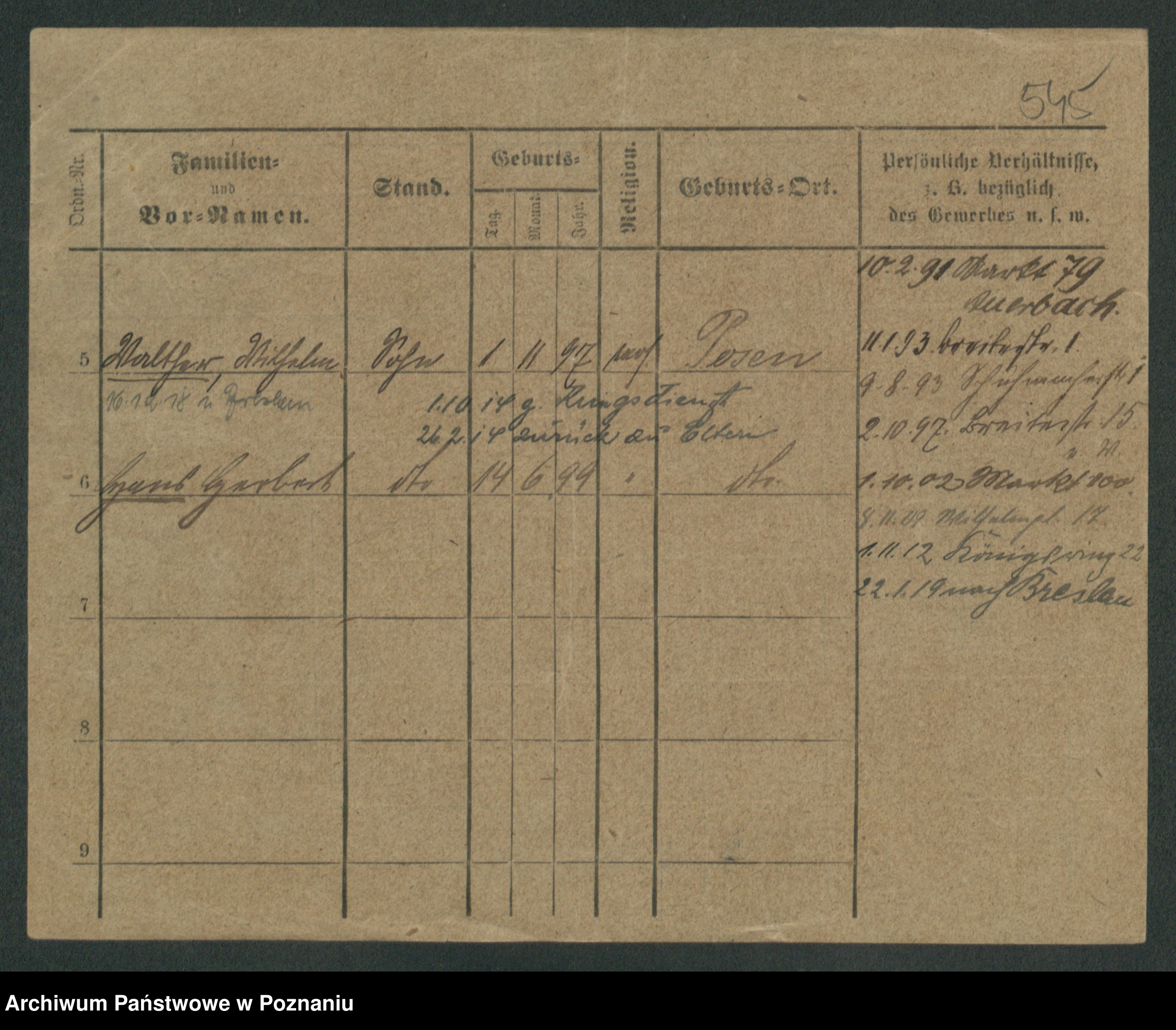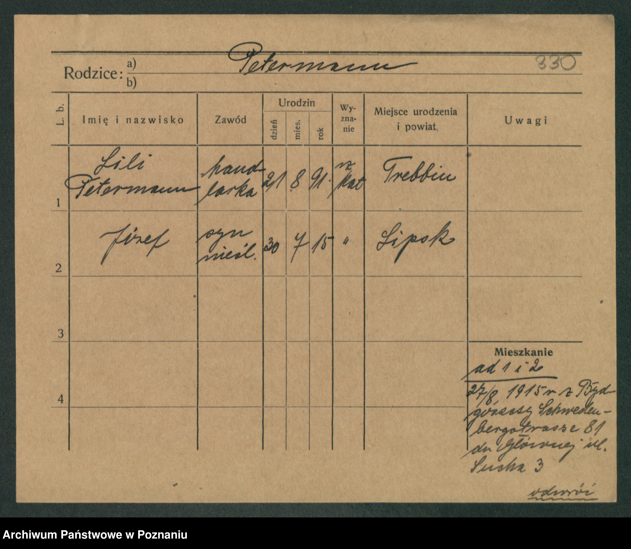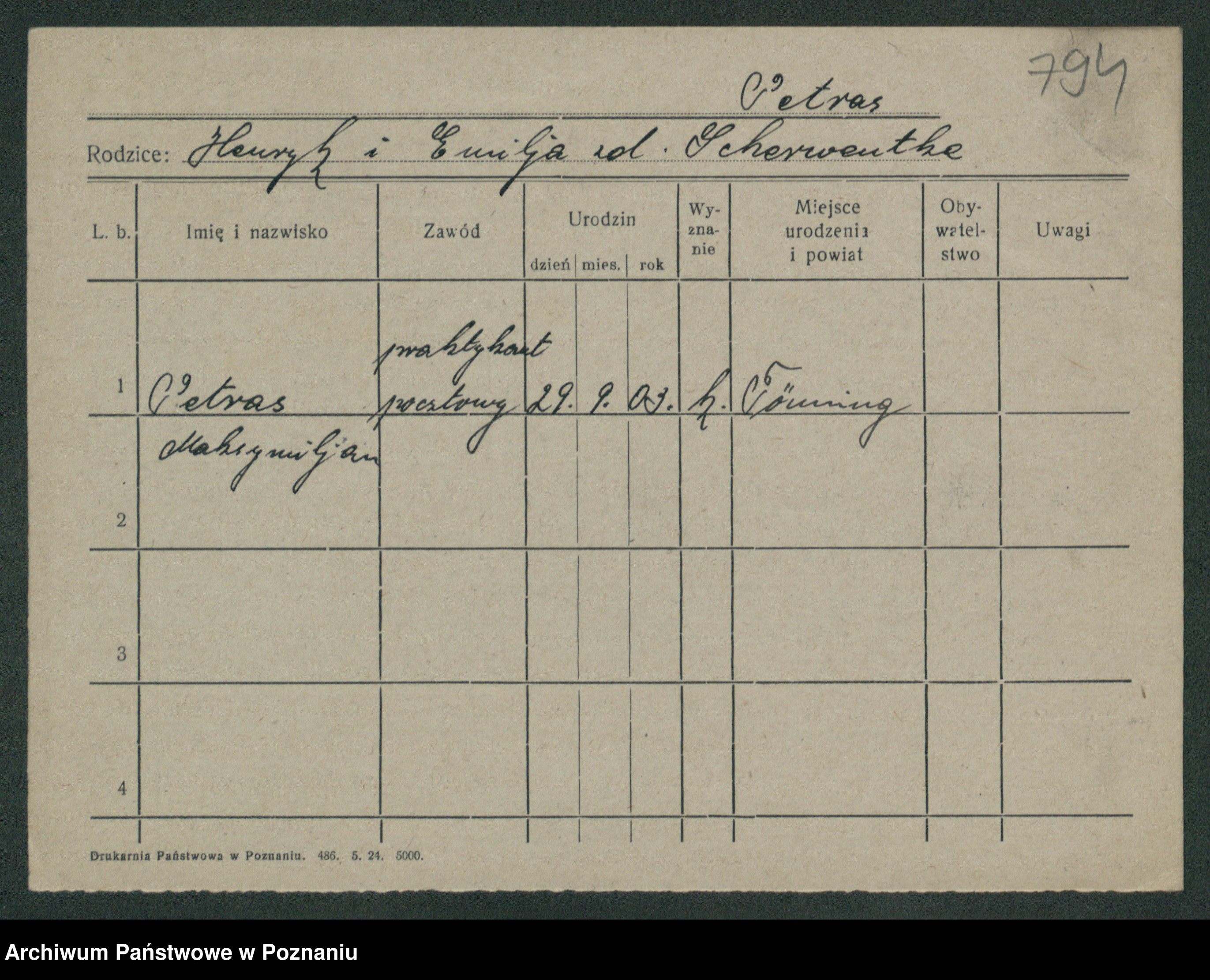 Podgląd karty osobowej dostępny jest po kliknięciu na nazwisko lub ikonkę karty. Można dokonywać powiększenia (ikony na górze) lub przechodzić między kolejnymi skanami (strzałki po bokach).