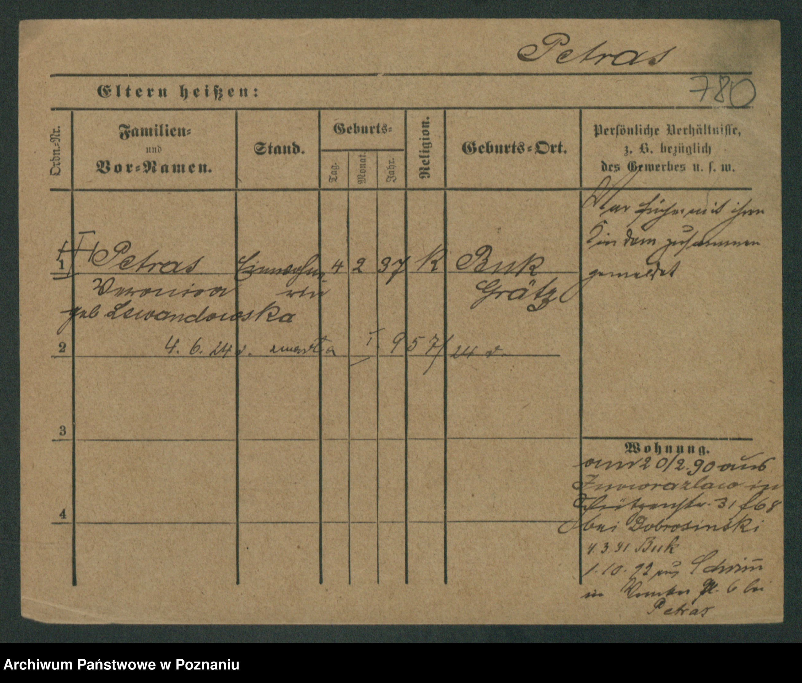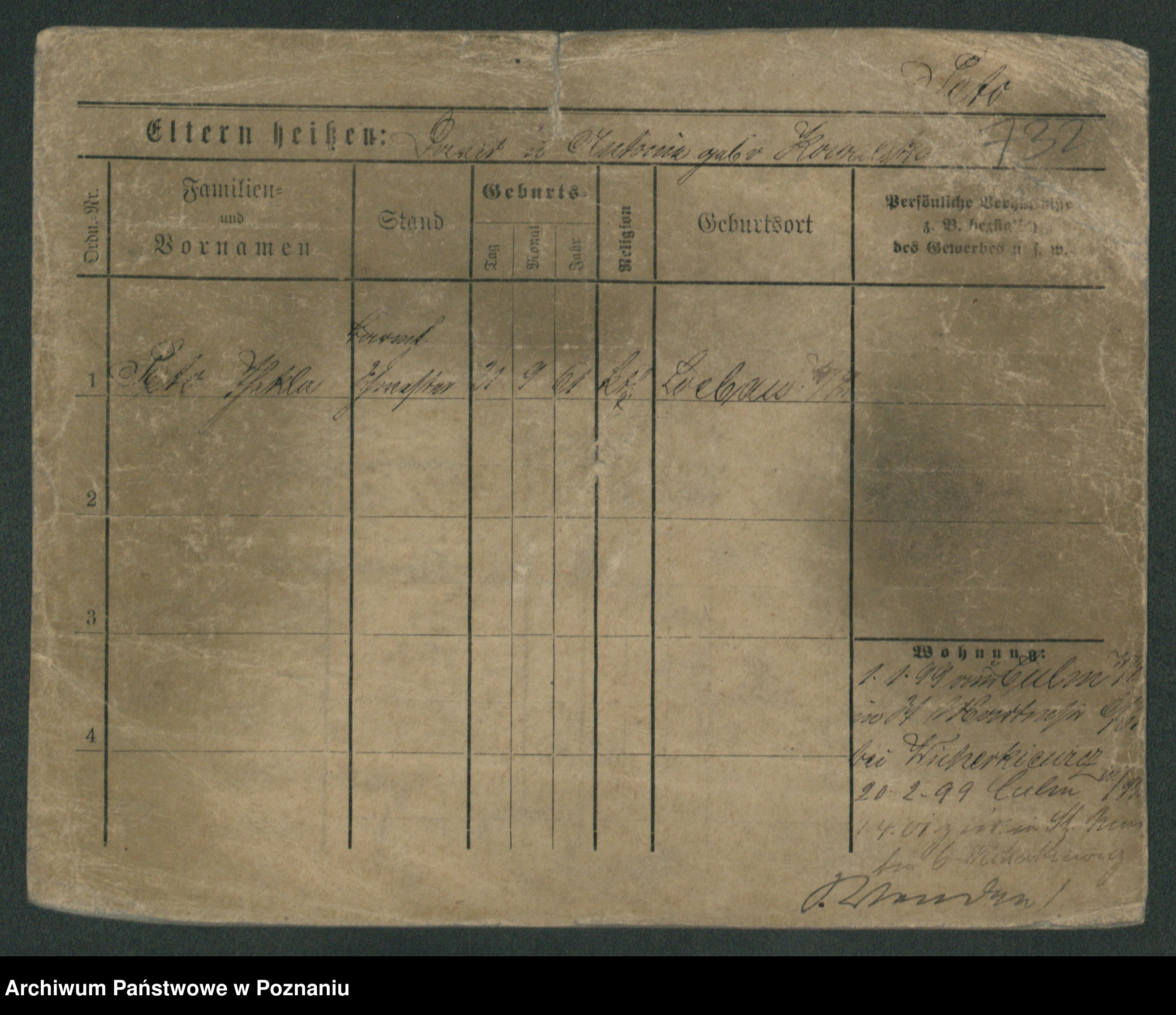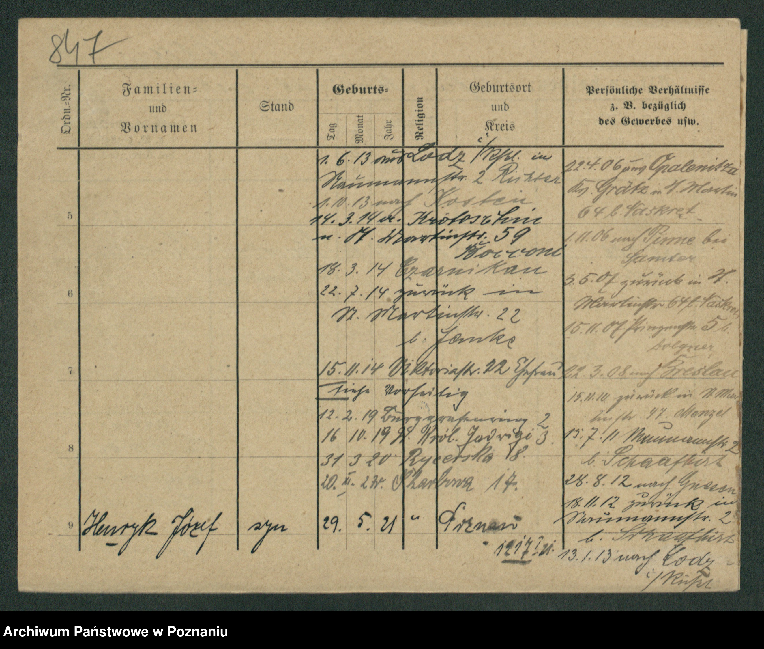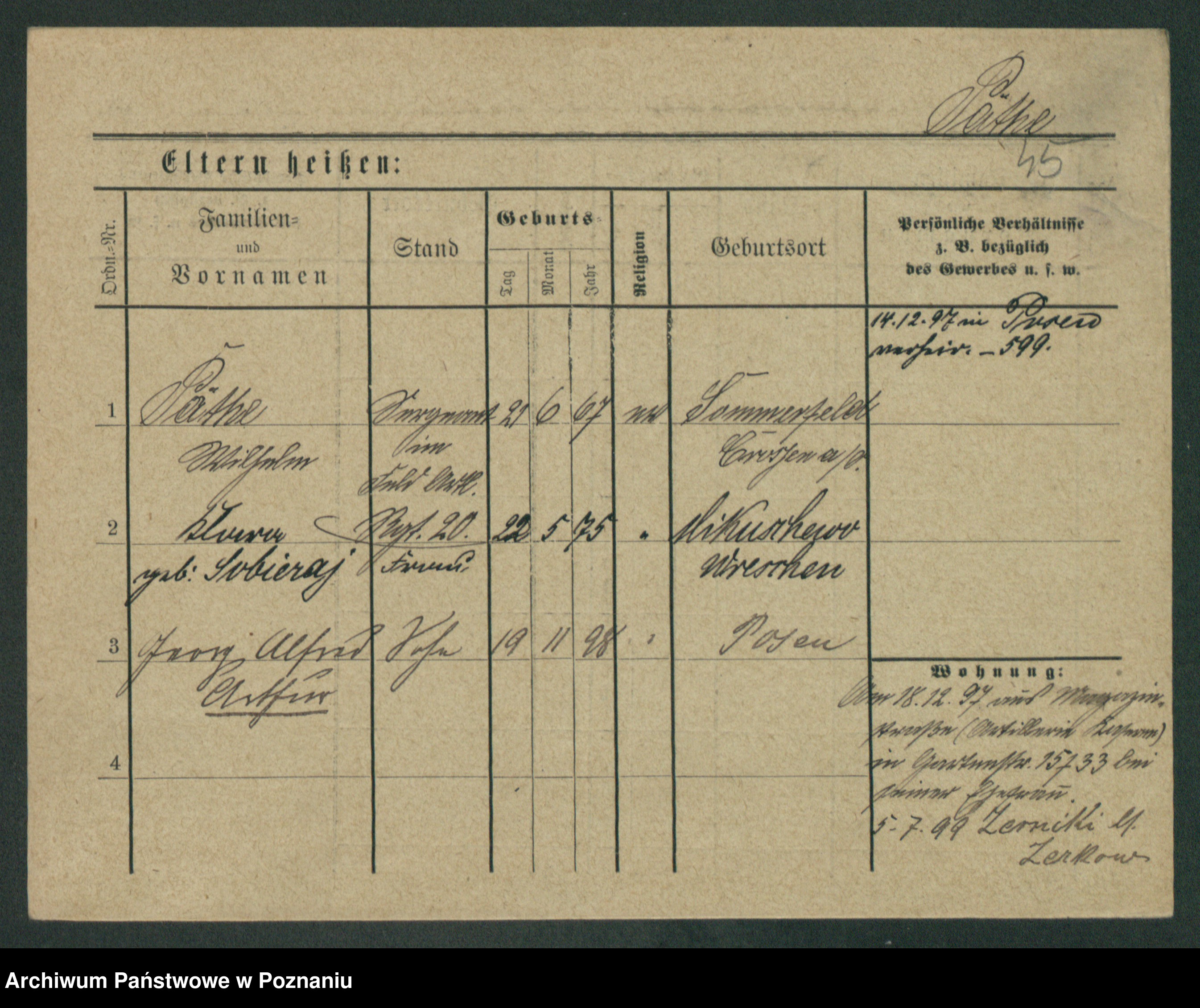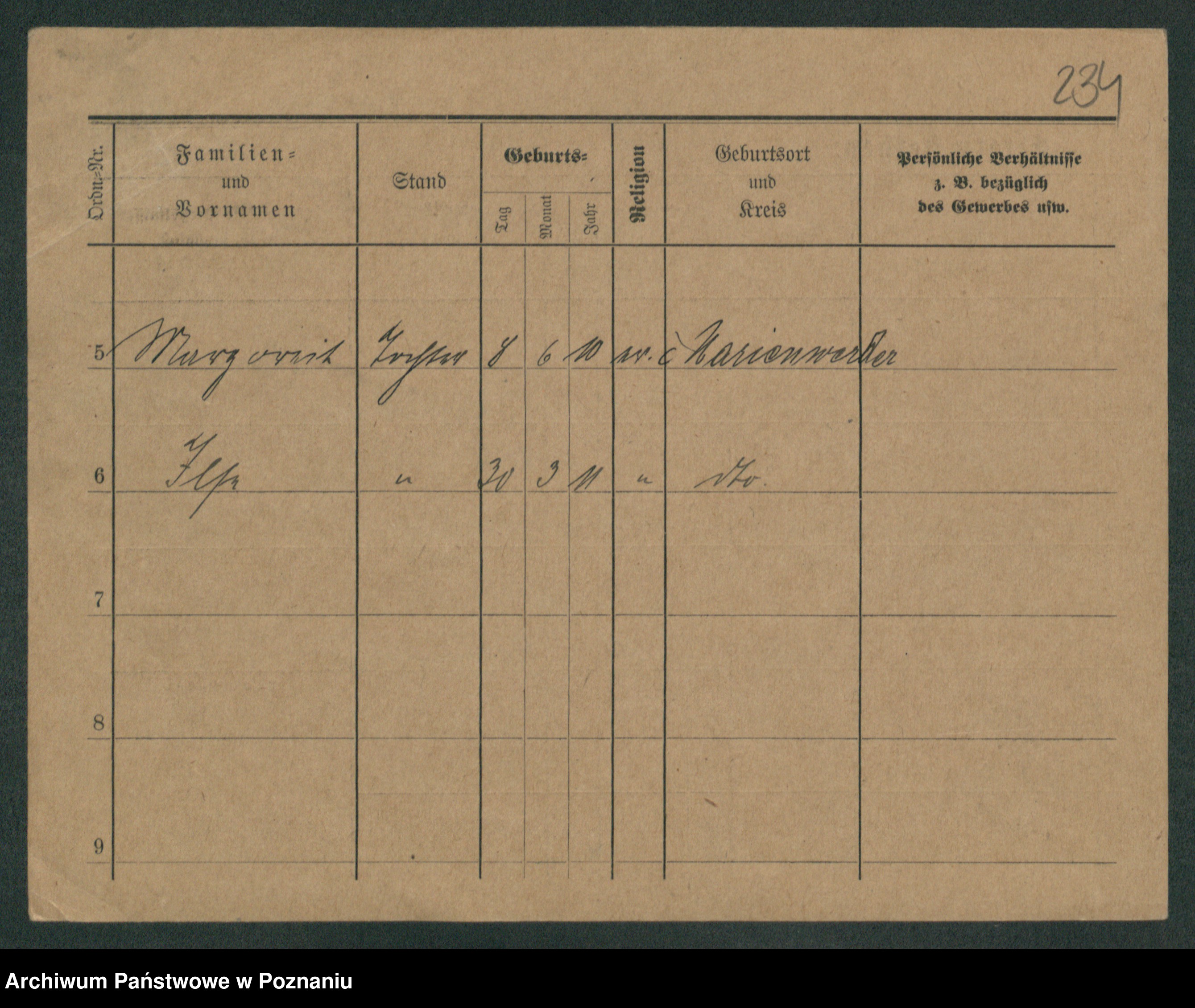 Podgląd karty osobowej dostępny jest po kliknięciu na nazwisko lub ikonkę karty. Można dokonywać powiększenia (ikony na górze) lub przechodzić między kolejnymi skanami (strzałki po bokach).
