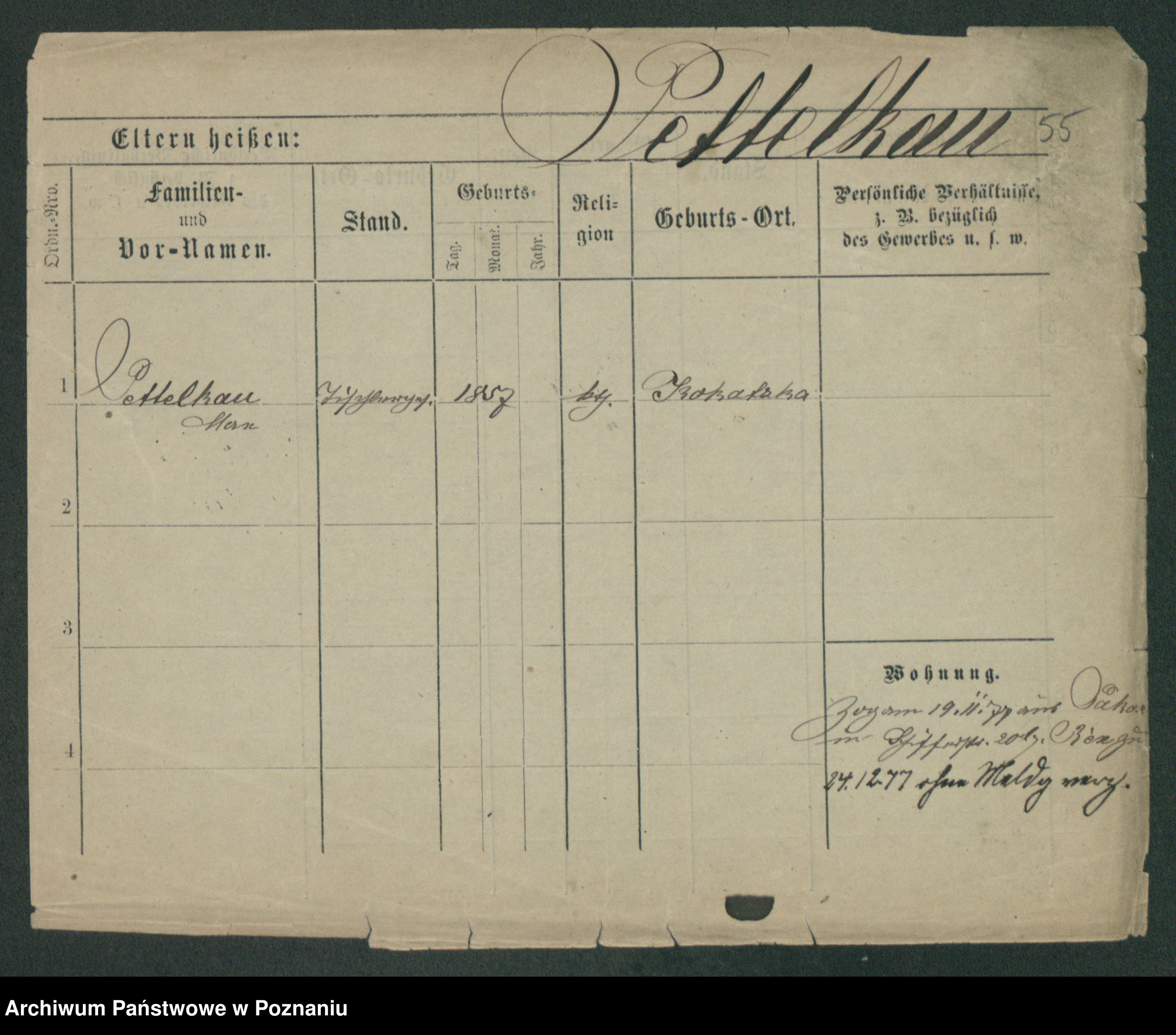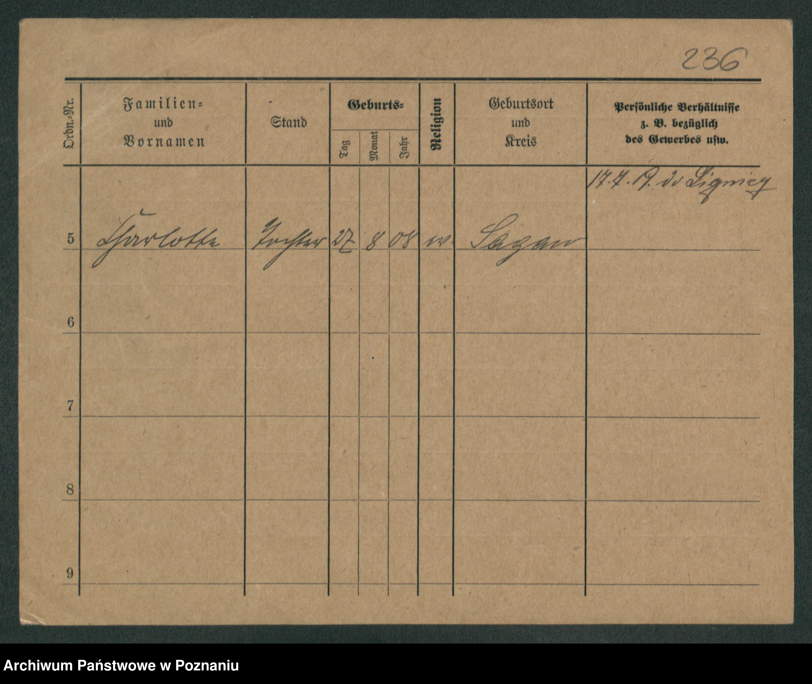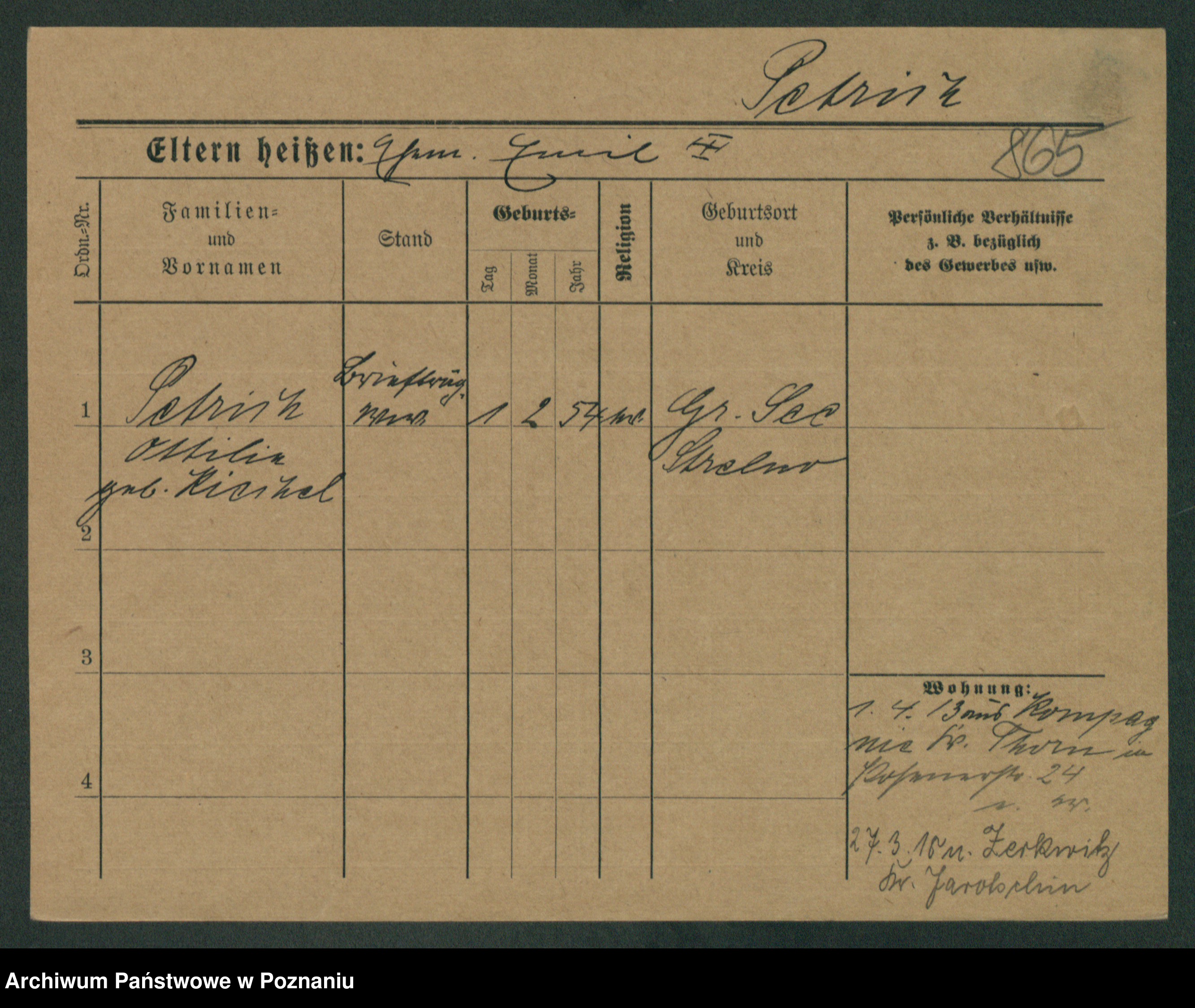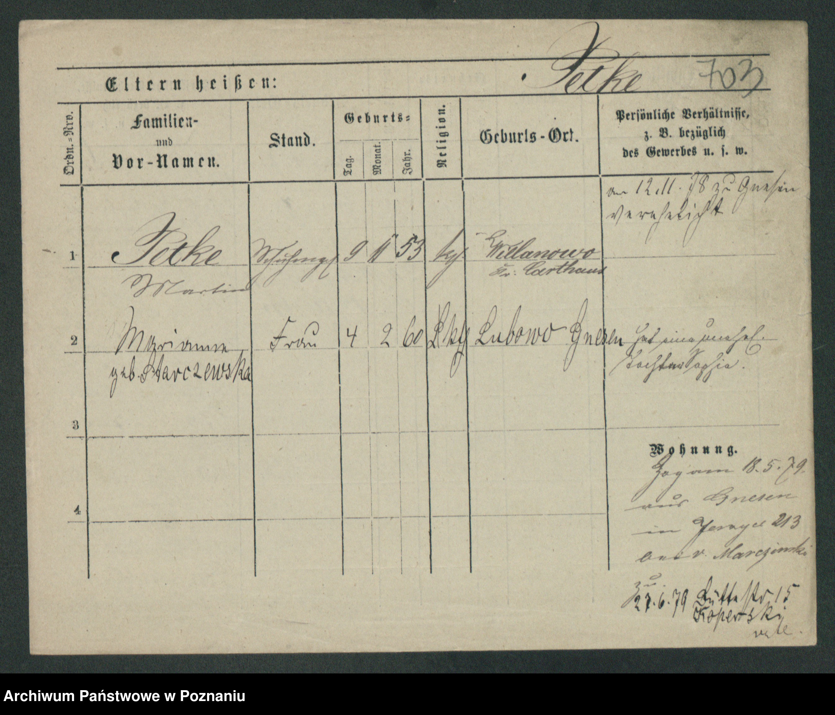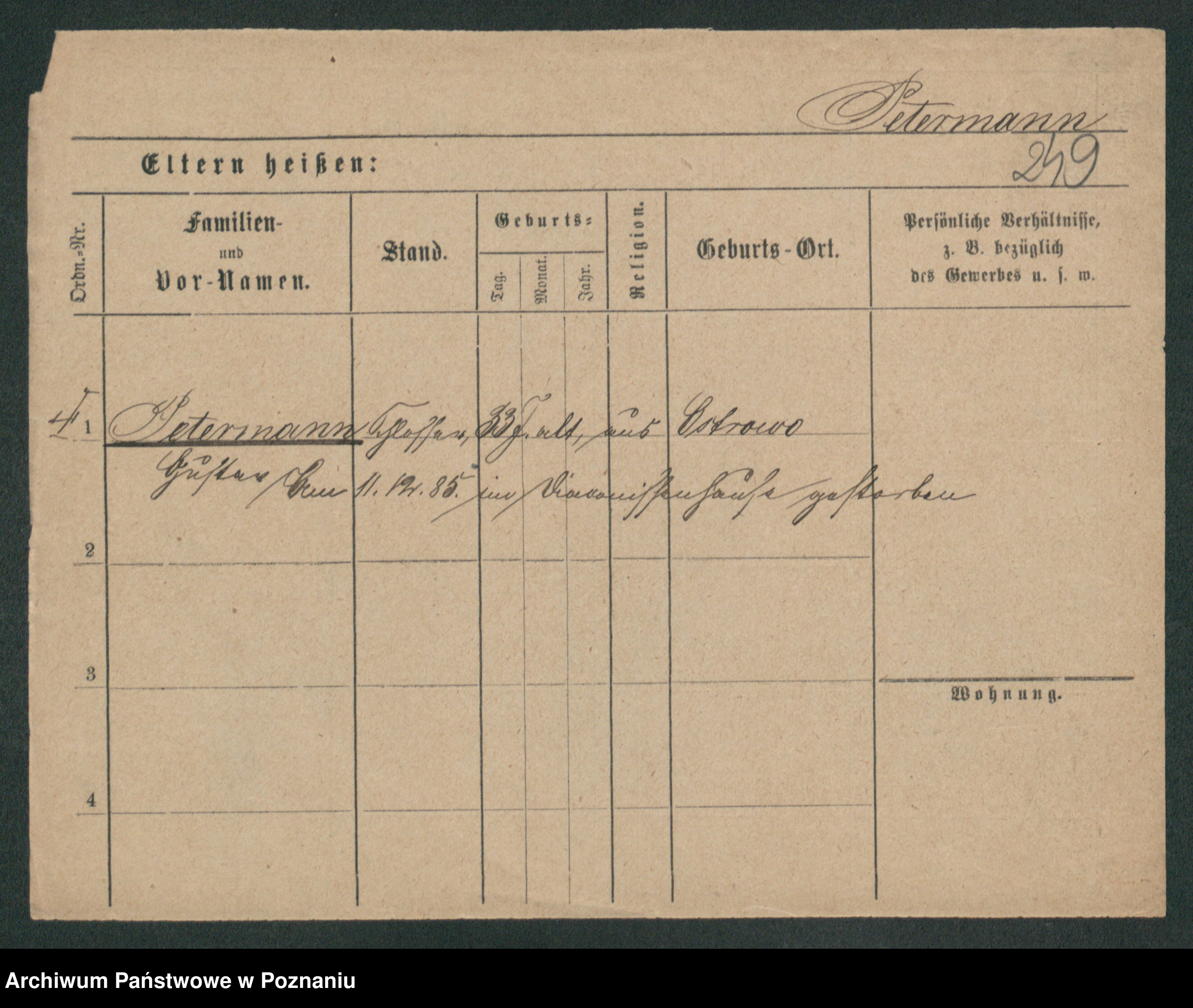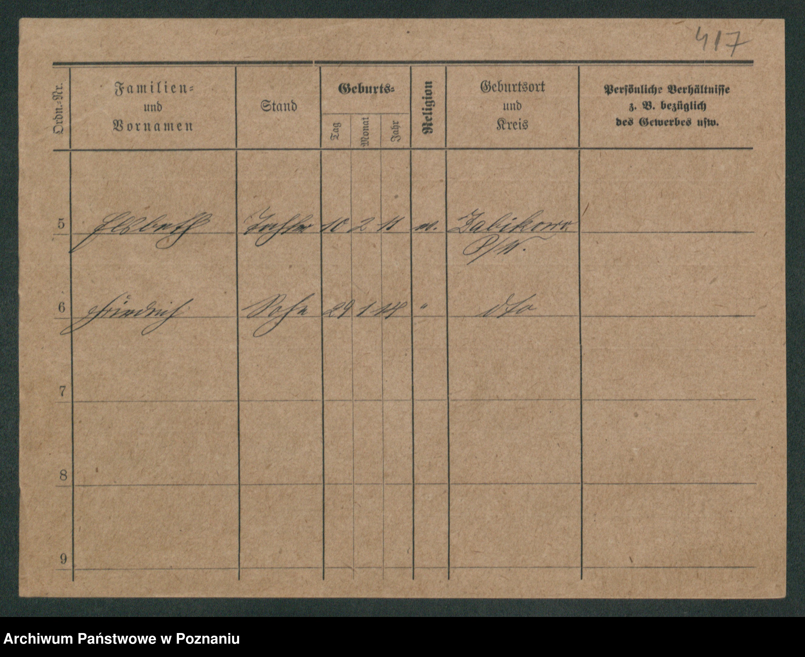 Podgląd karty osobowej dostępny jest po kliknięciu na nazwisko lub ikonkę karty. Można dokonywać powiększenia (ikony na górze) lub przechodzić między kolejnymi skanami (strzałki po bokach).