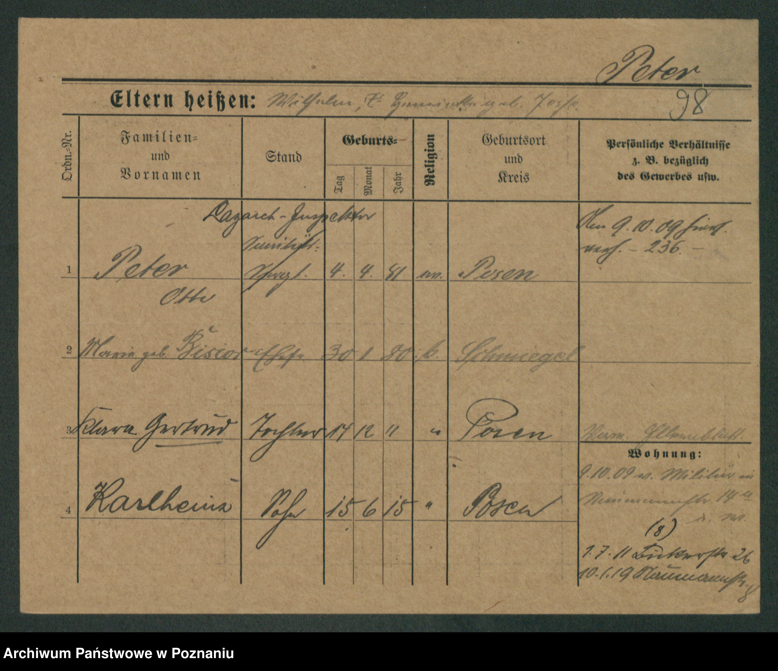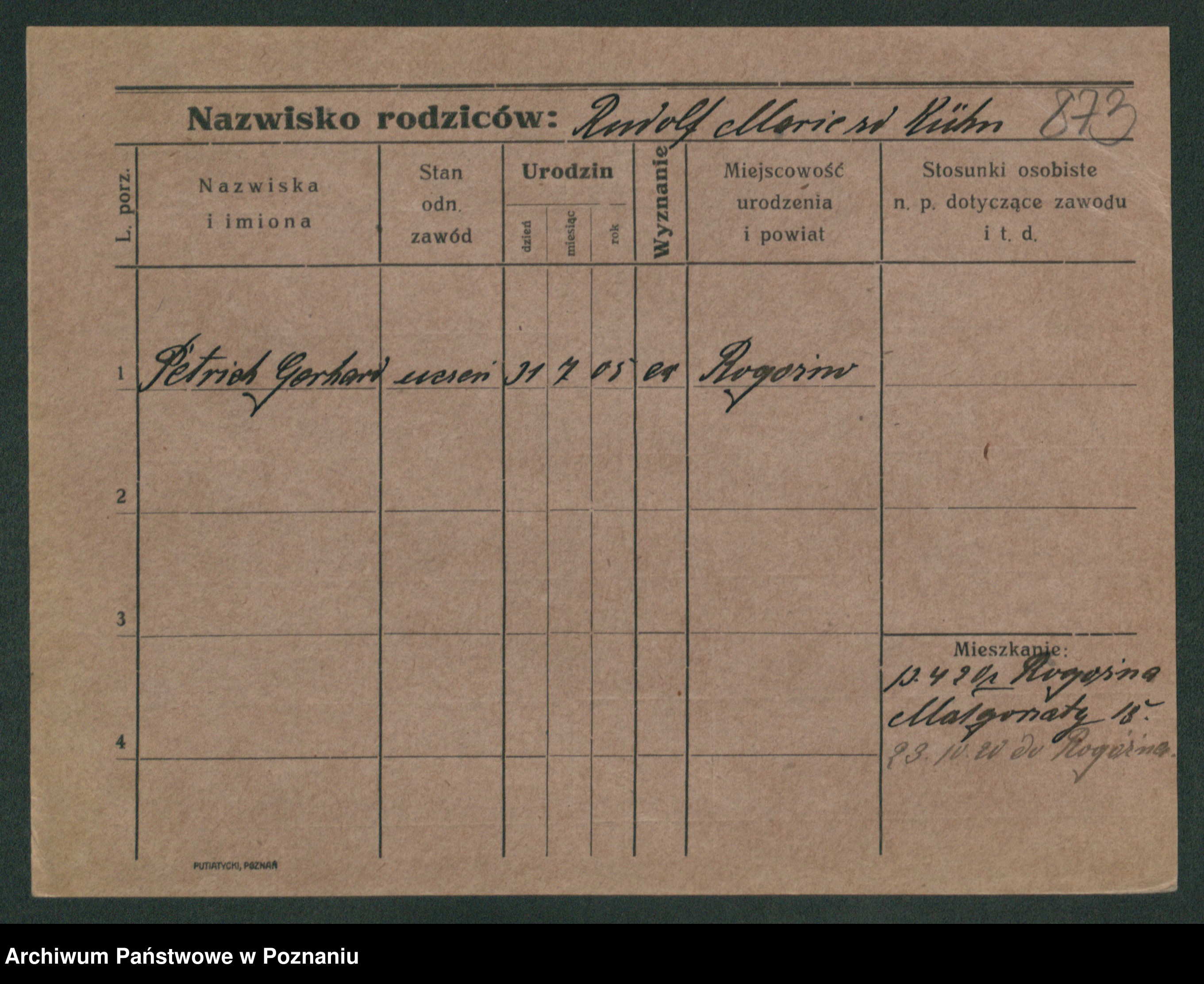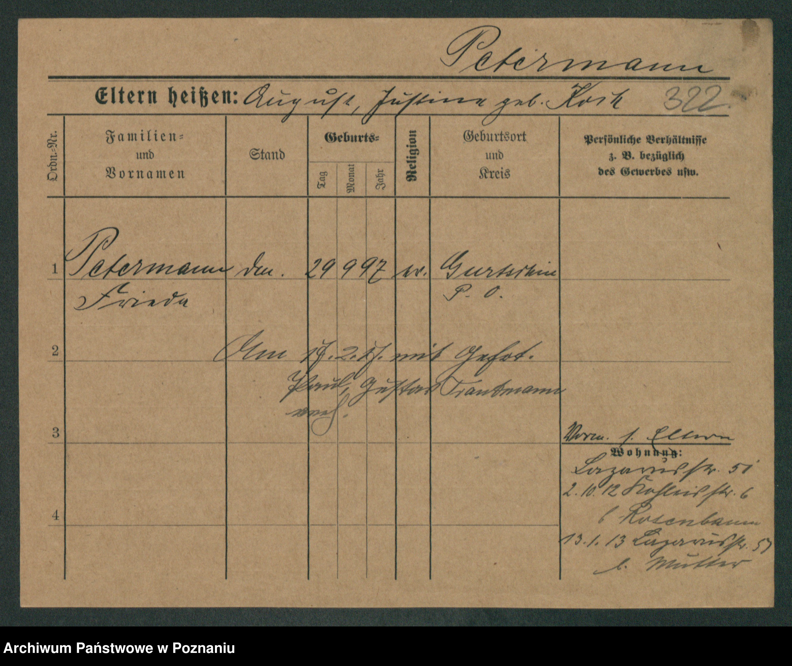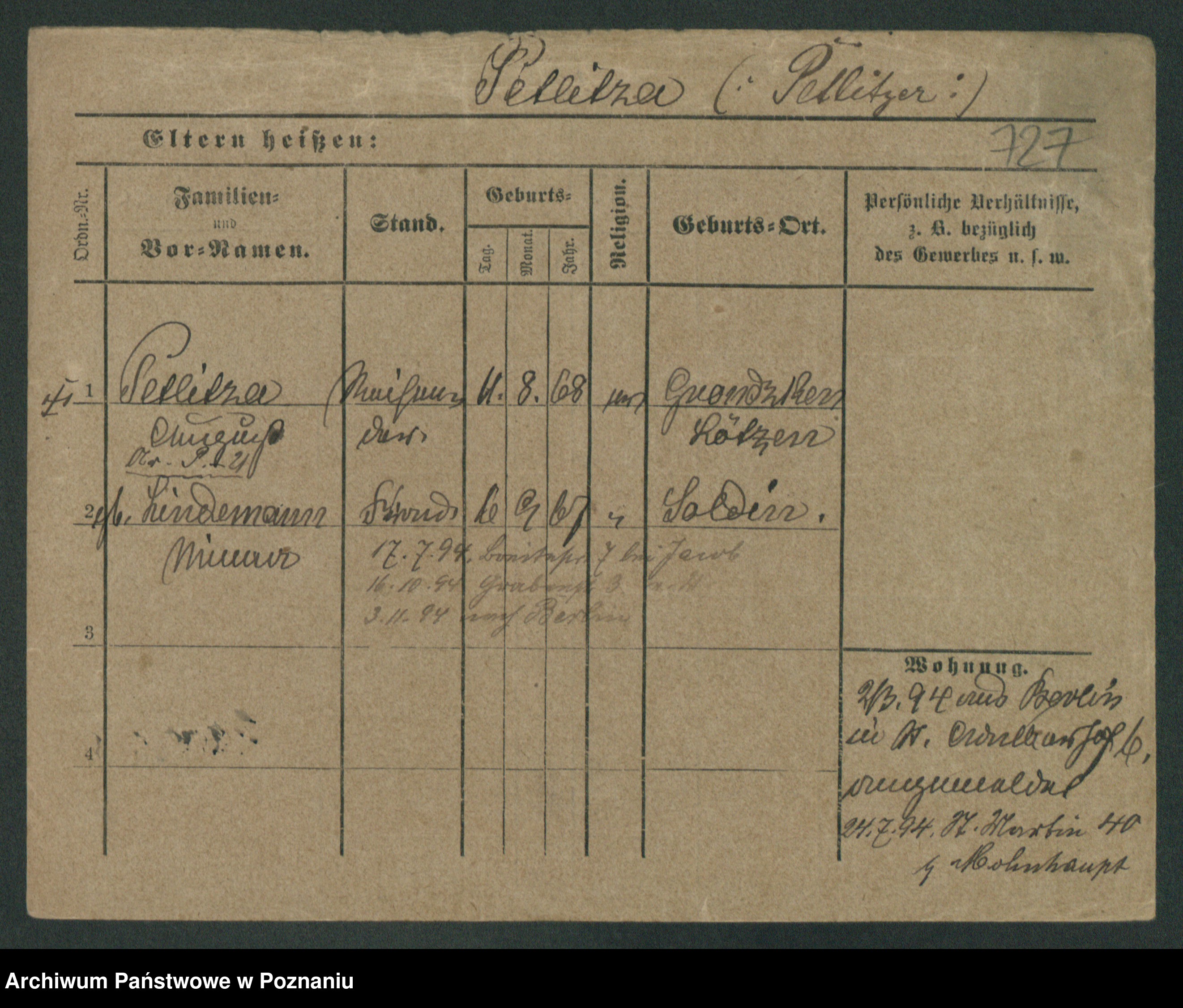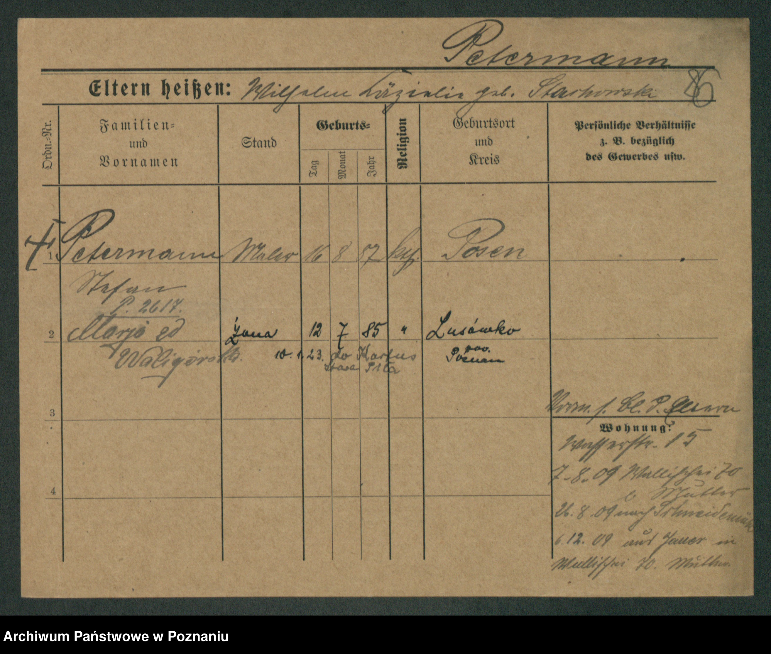 Podgląd karty osobowej dostępny jest po kliknięciu na nazwisko lub ikonkę karty. Można dokonywać powiększenia (ikony na górze) lub przechodzić między kolejnymi skanami (strzałki po bokach).