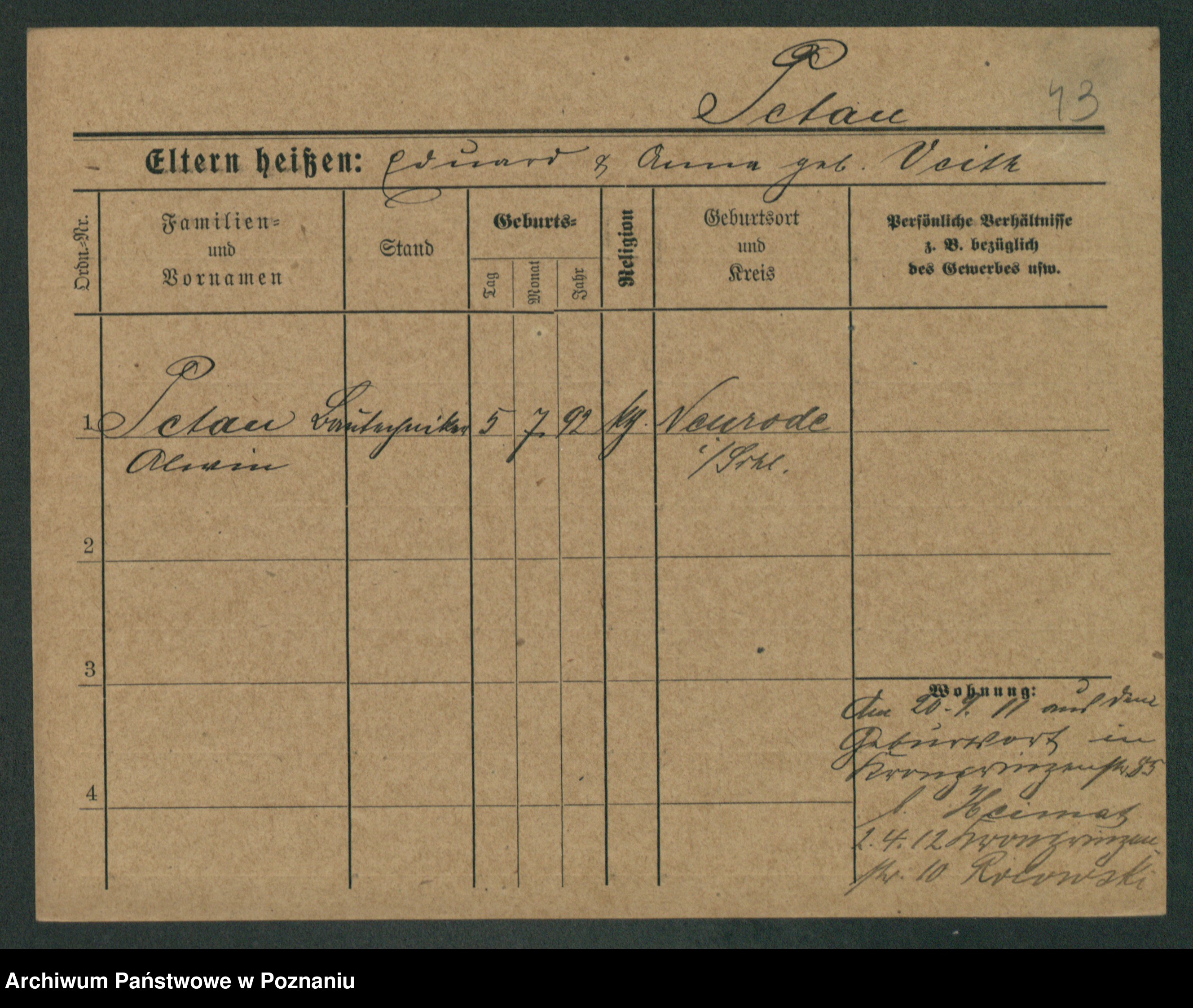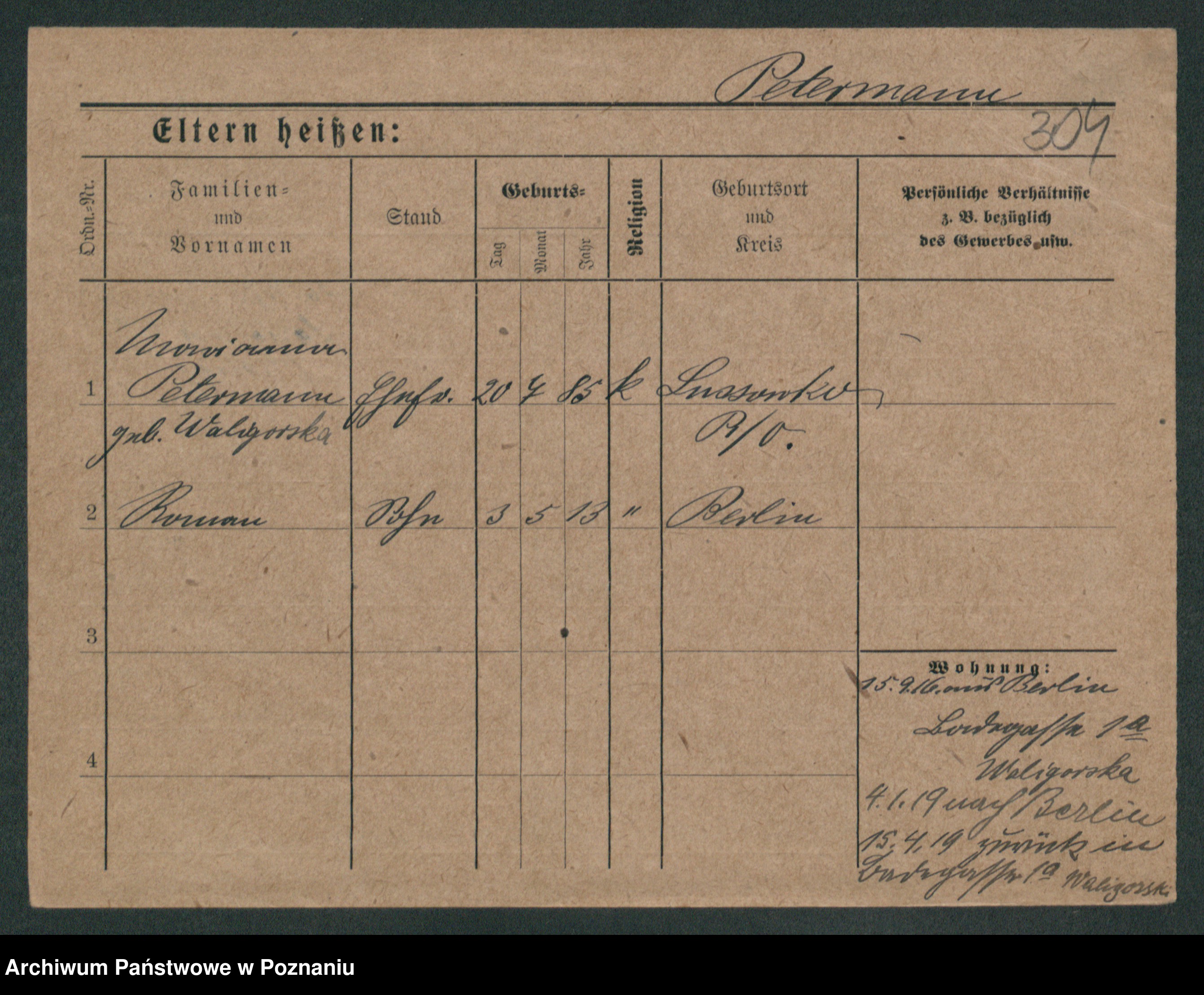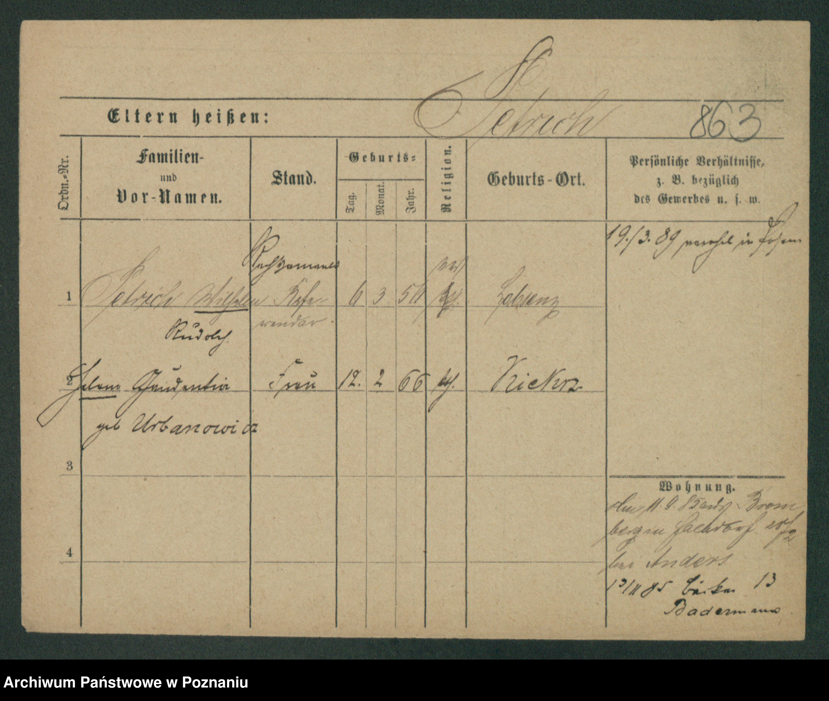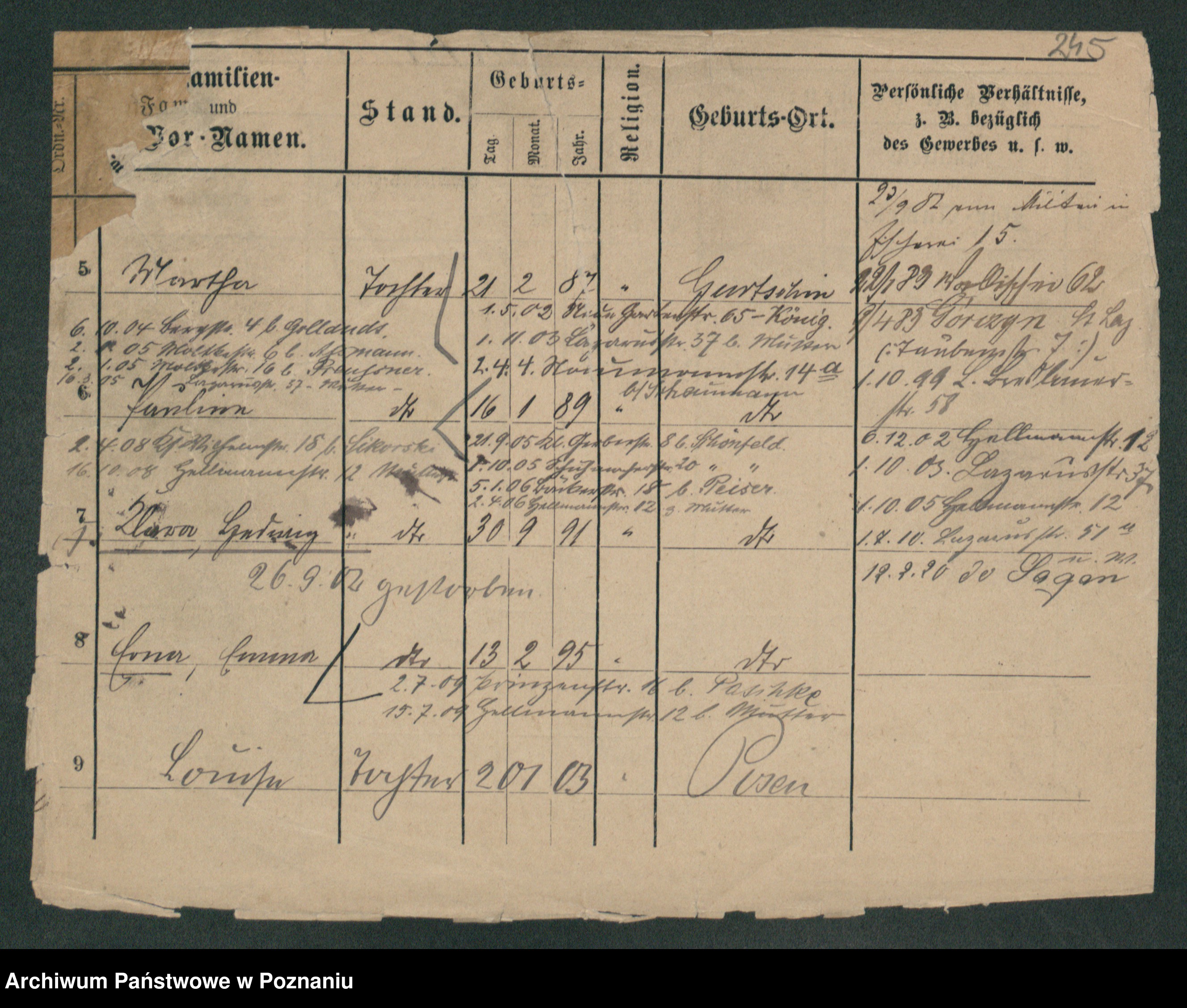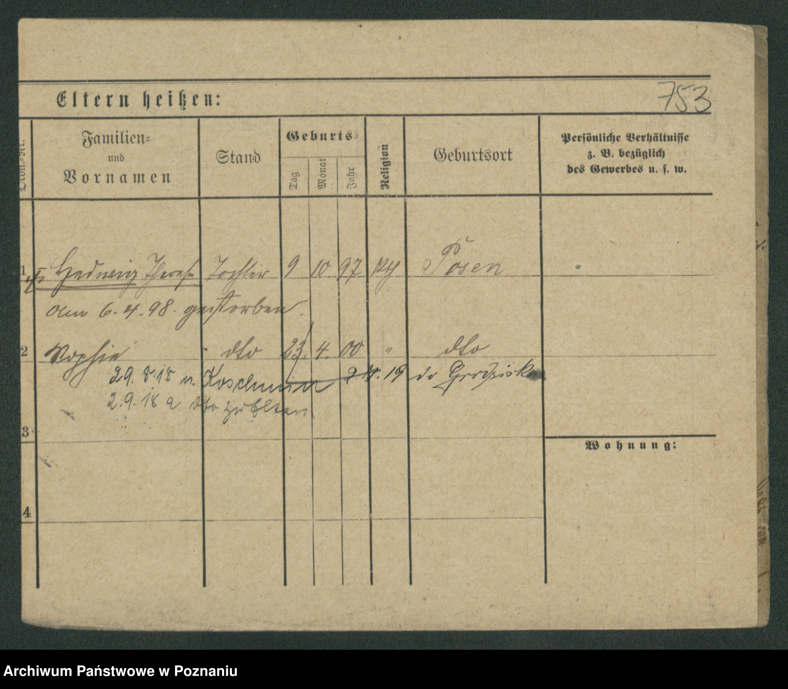 Podgląd karty osobowej dostępny jest po kliknięciu na nazwisko lub ikonkę karty. Można dokonywać powiększenia (ikony na górze) lub przechodzić między kolejnymi skanami (strzałki po bokach).