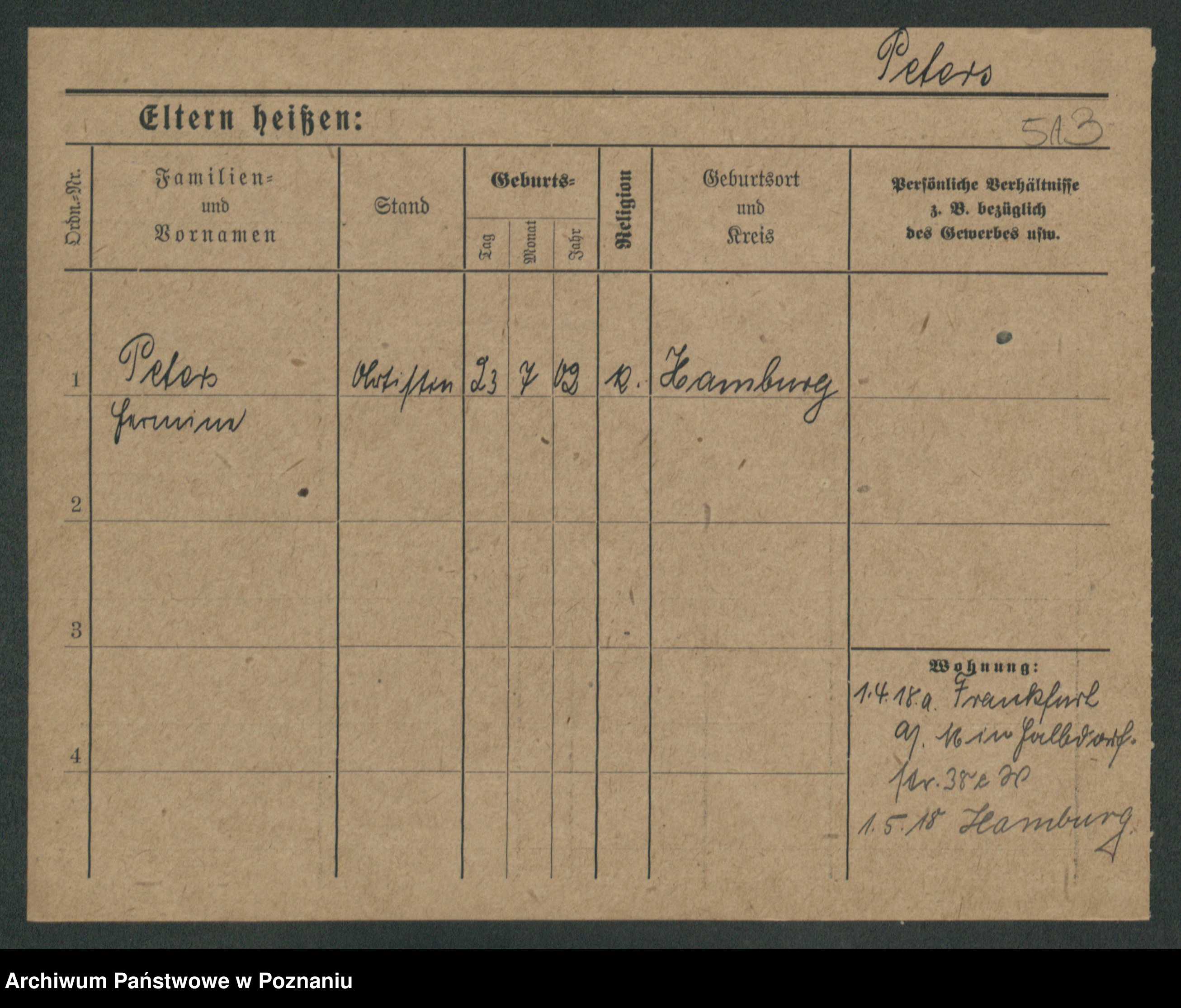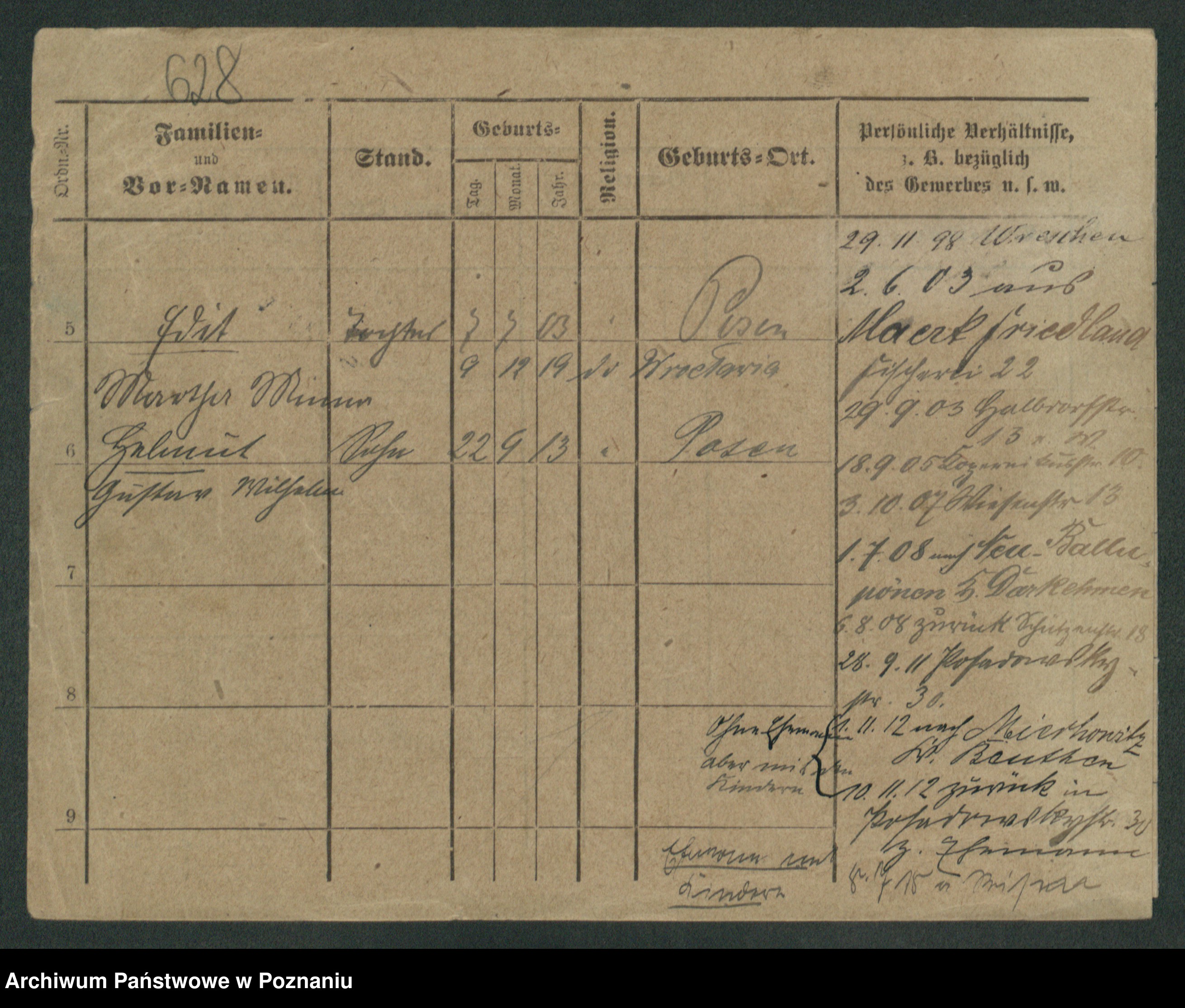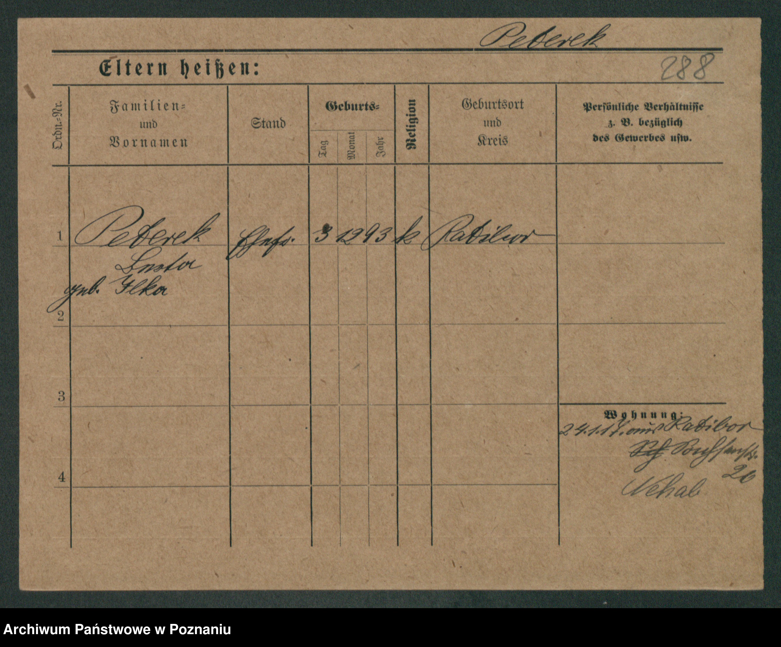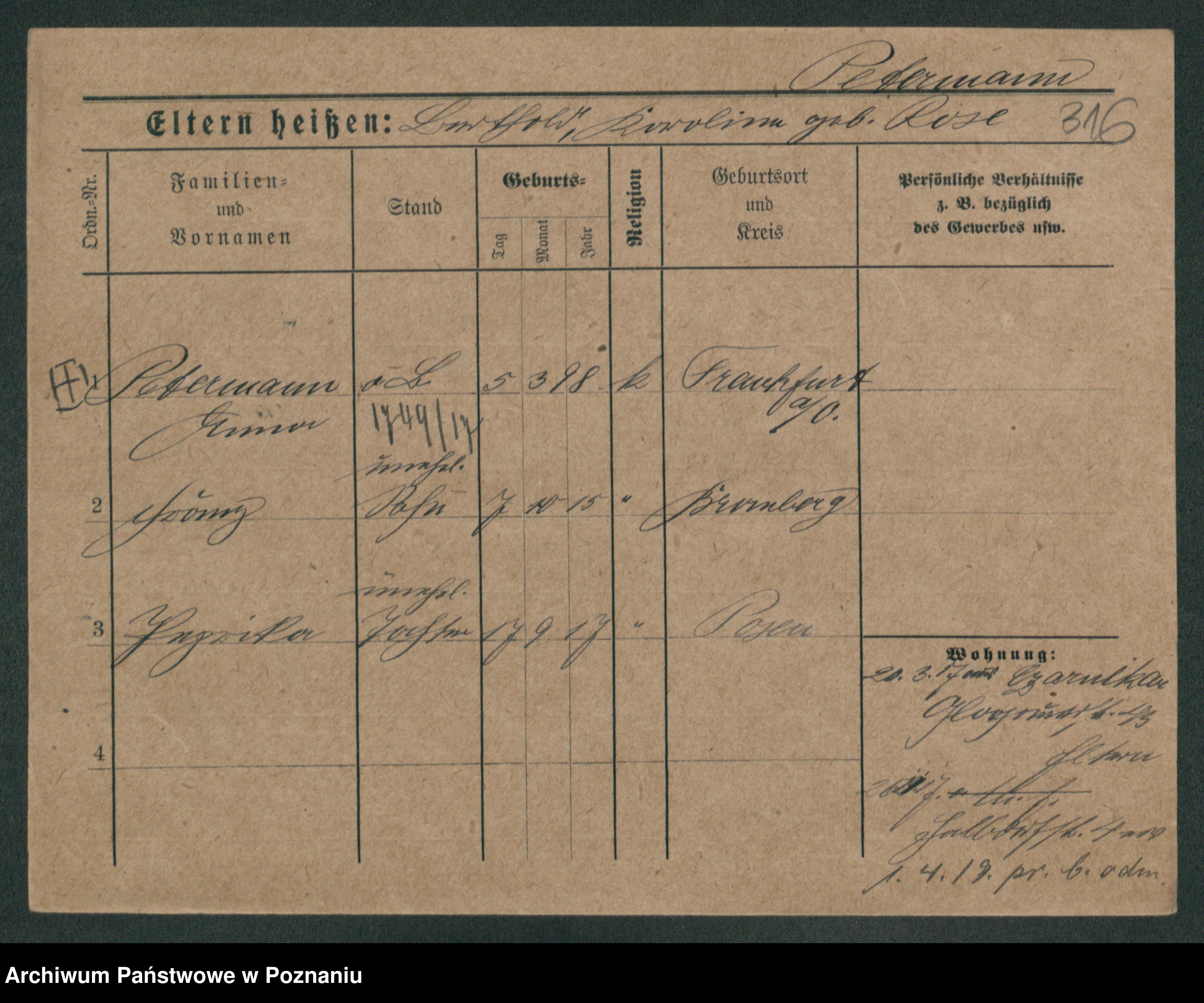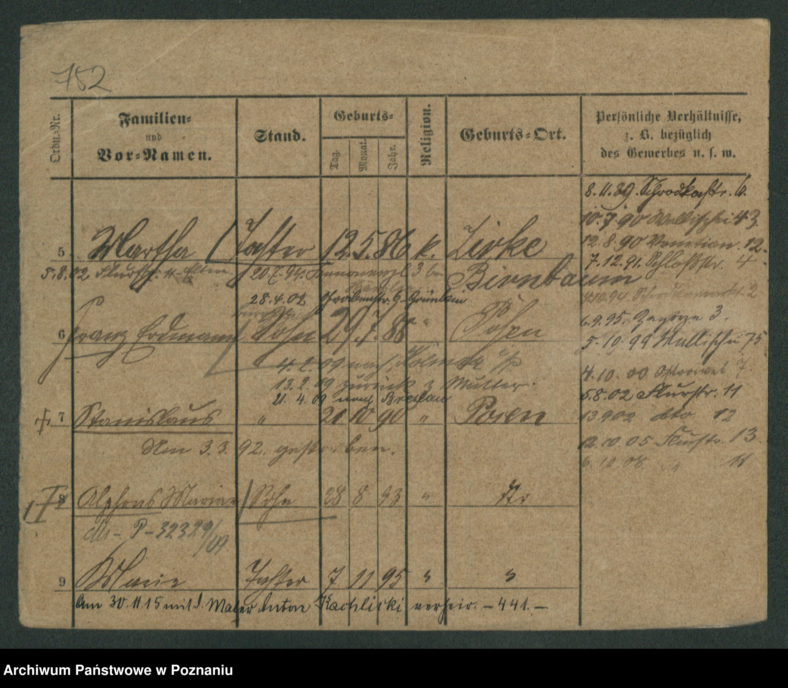 Podgląd karty osobowej dostępny jest po kliknięciu na nazwisko lub ikonkę karty. Można dokonywać powiększenia (ikony na górze) lub przechodzić między kolejnymi skanami (strzałki po bokach).