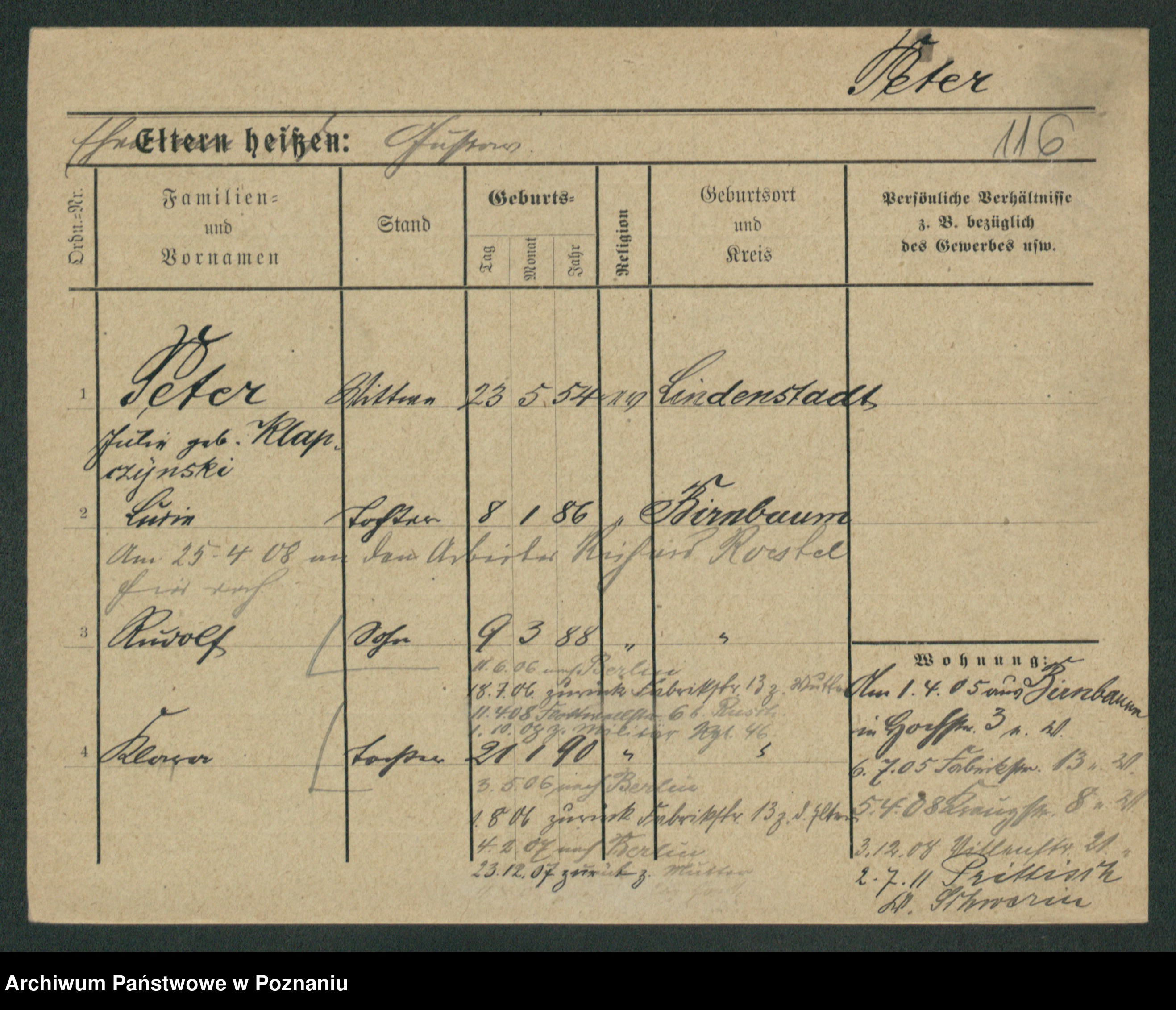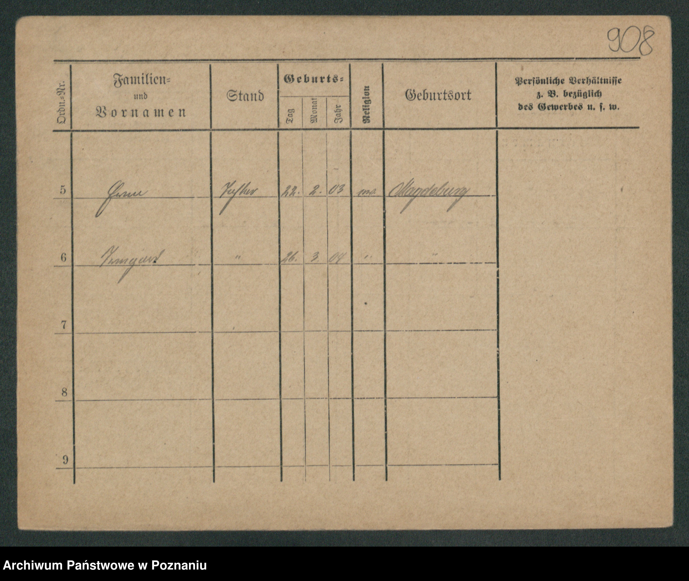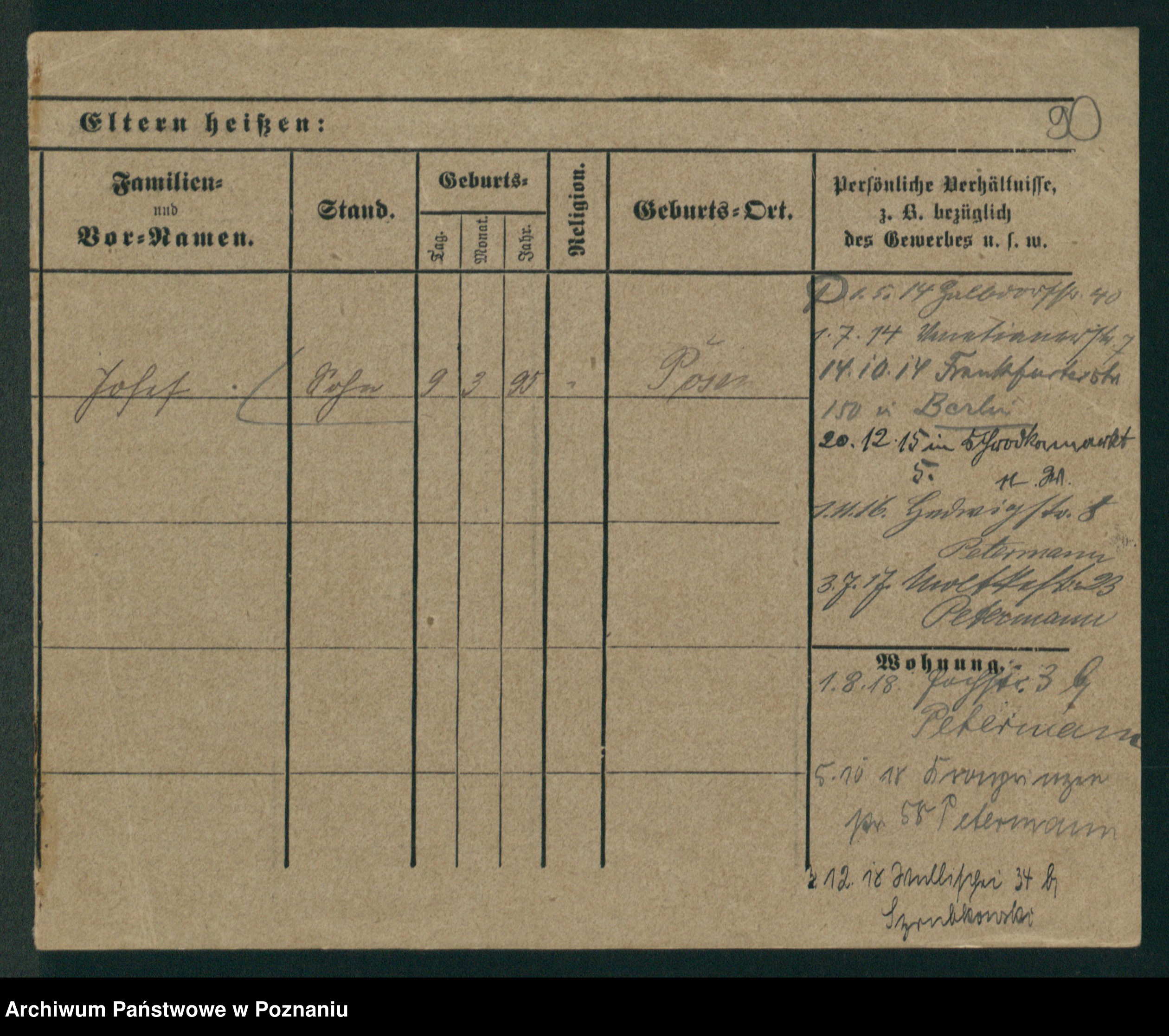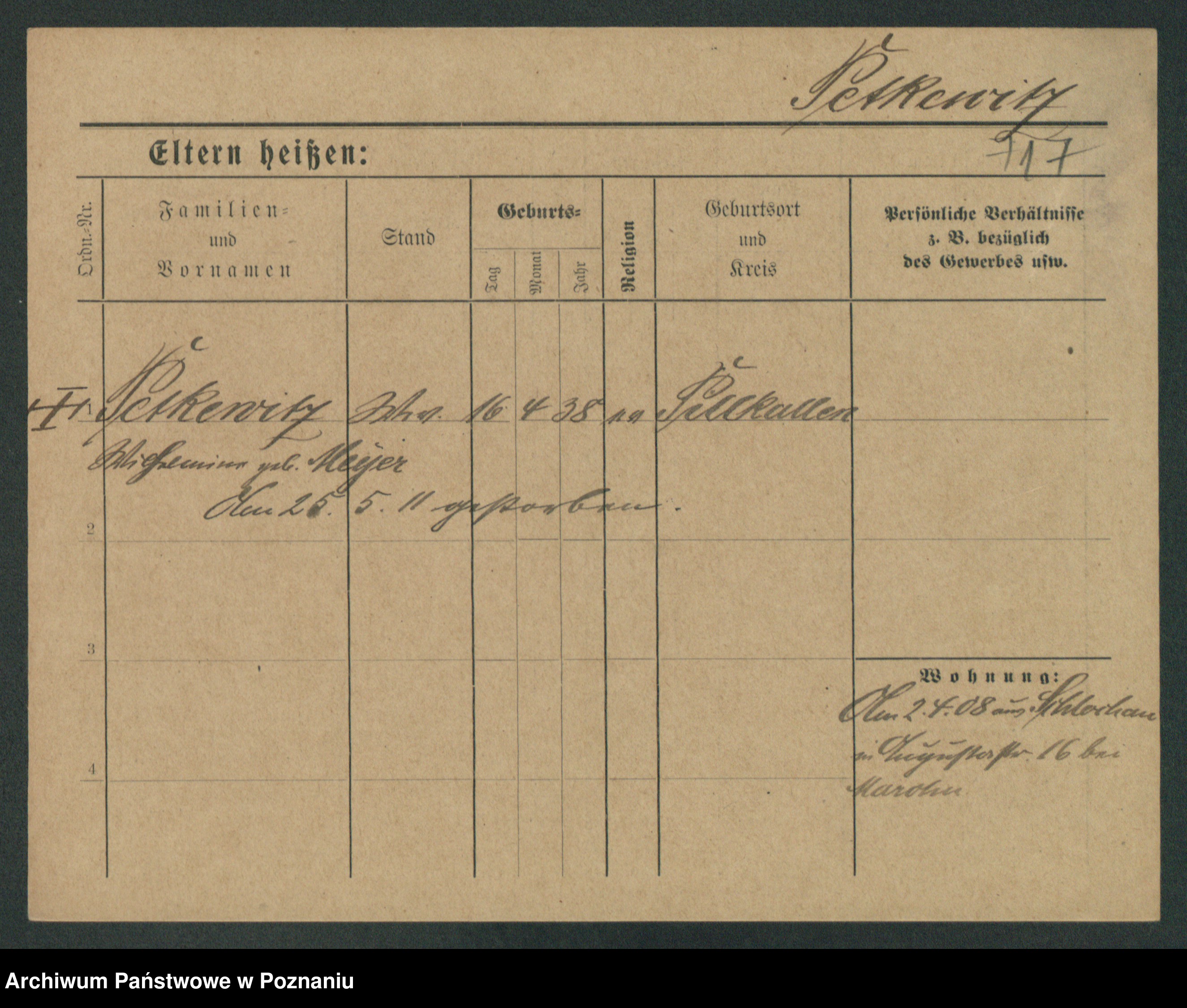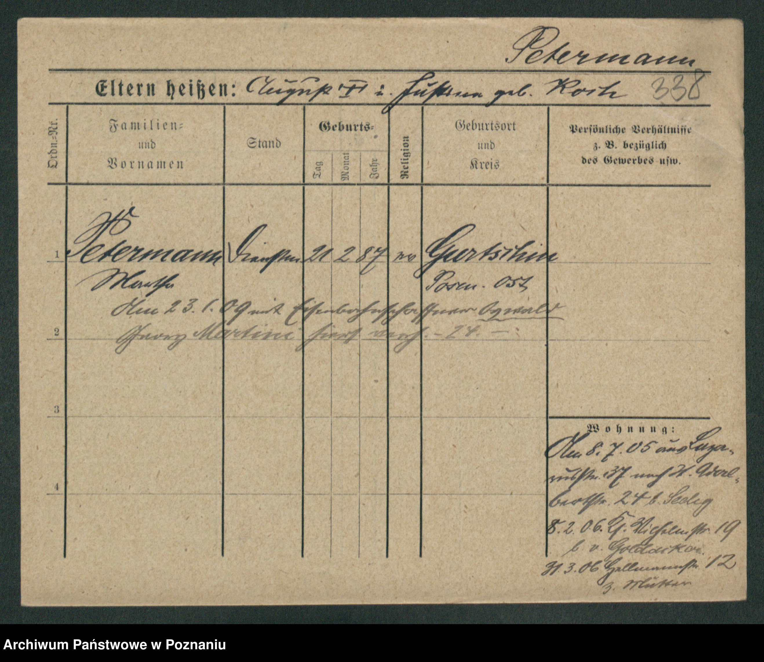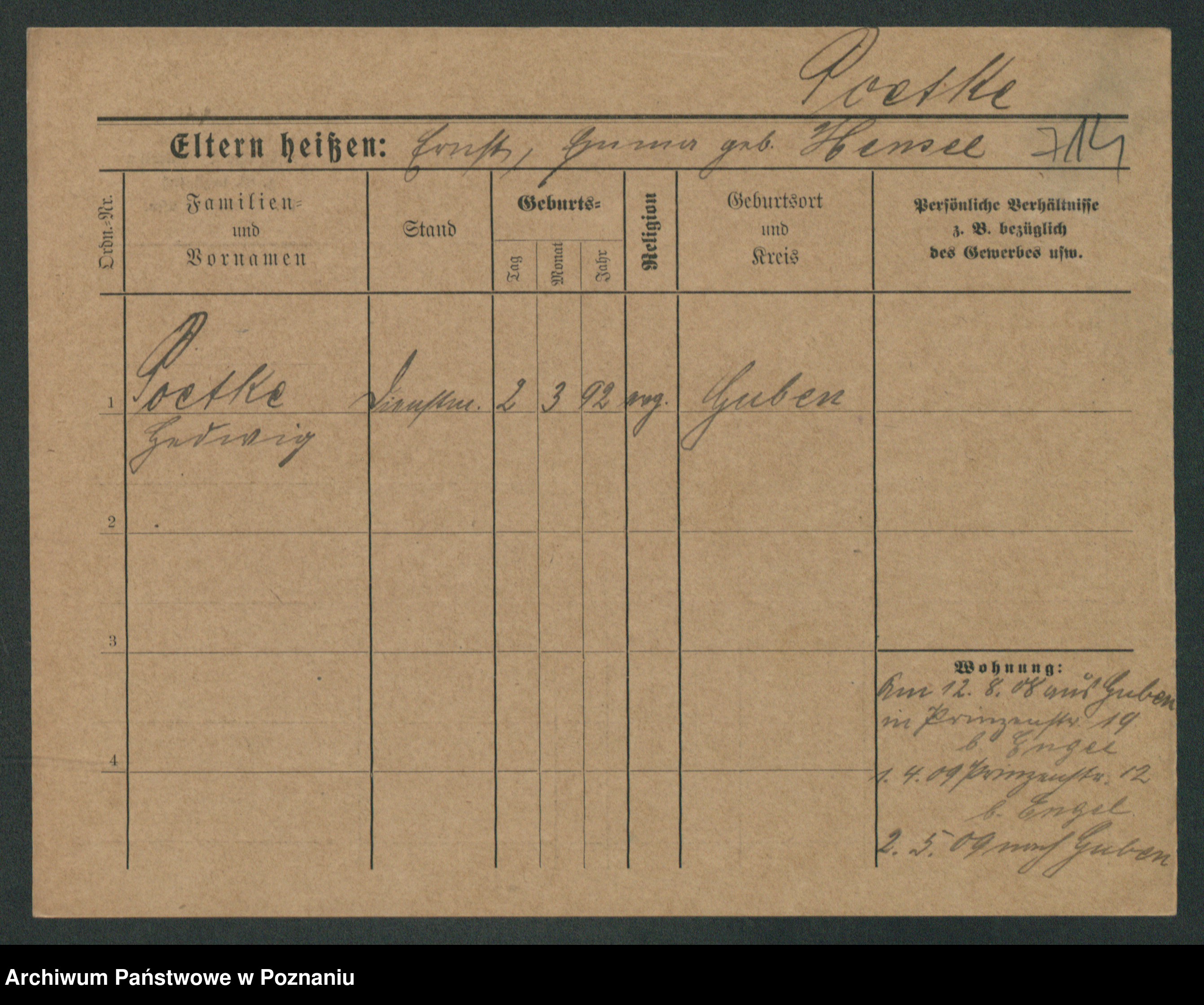 Podgląd karty osobowej dostępny jest po kliknięciu na nazwisko lub ikonkę karty. Można dokonywać powiększenia (ikony na górze) lub przechodzić między kolejnymi skanami (strzałki po bokach).
