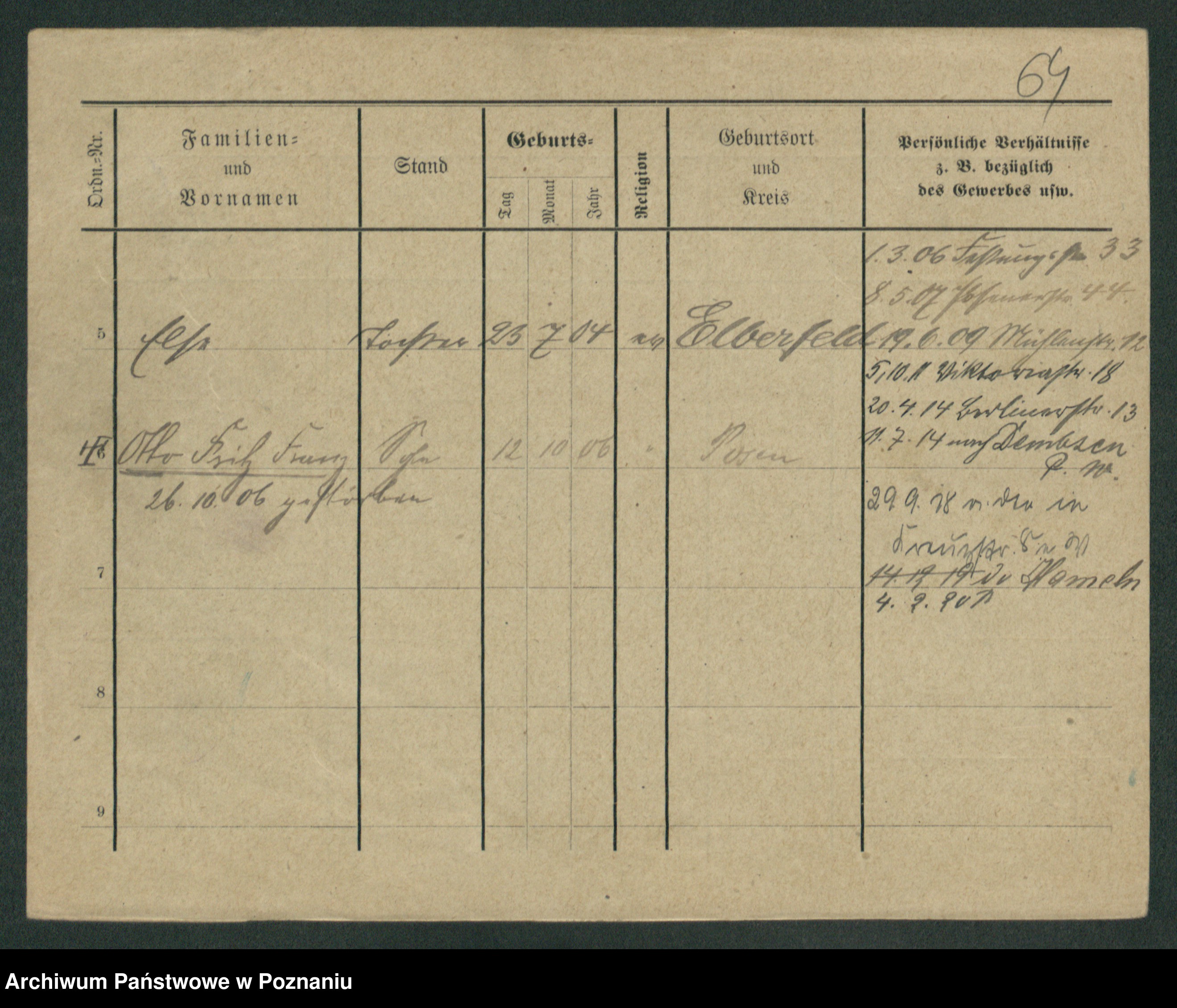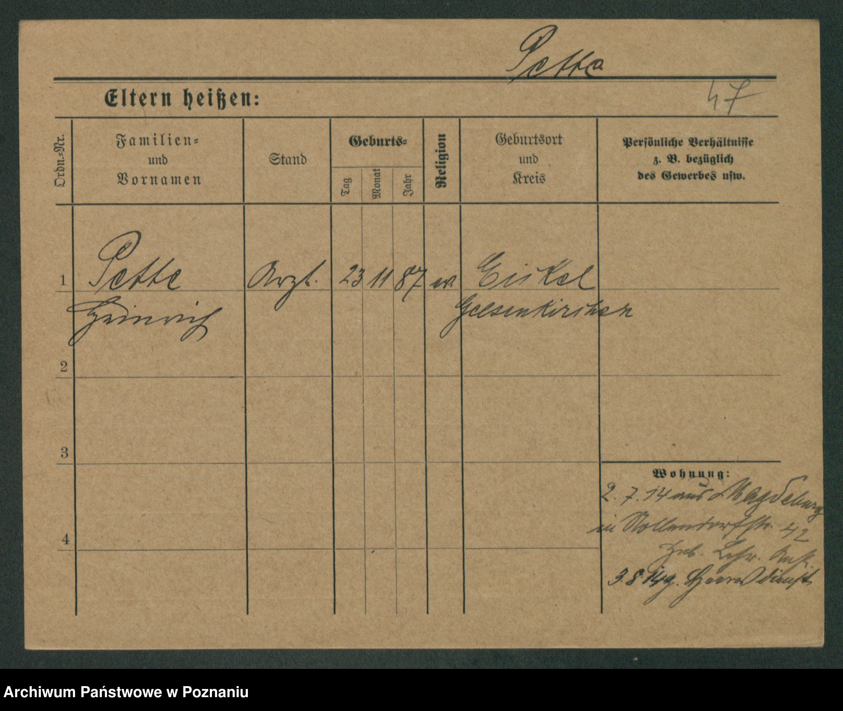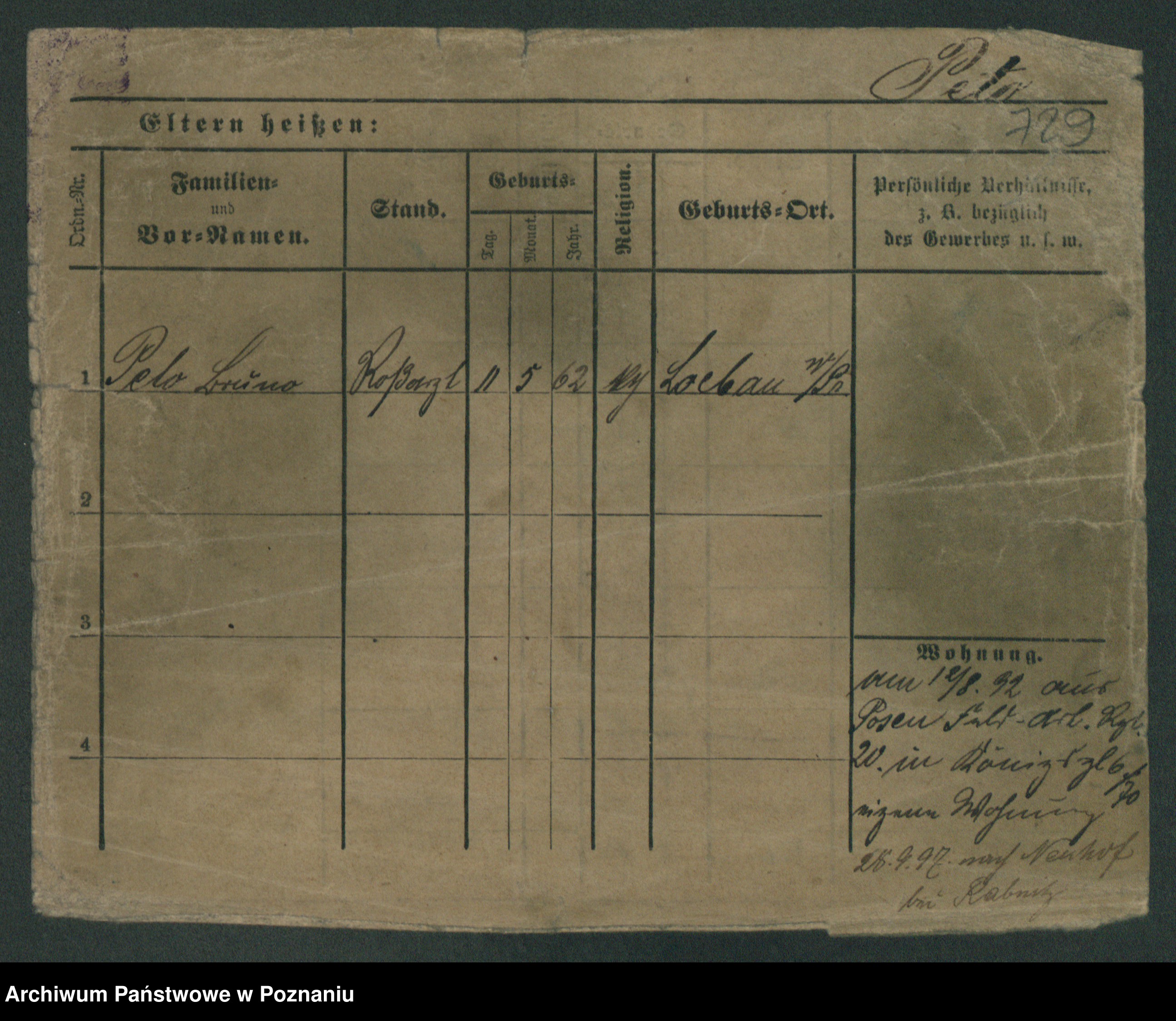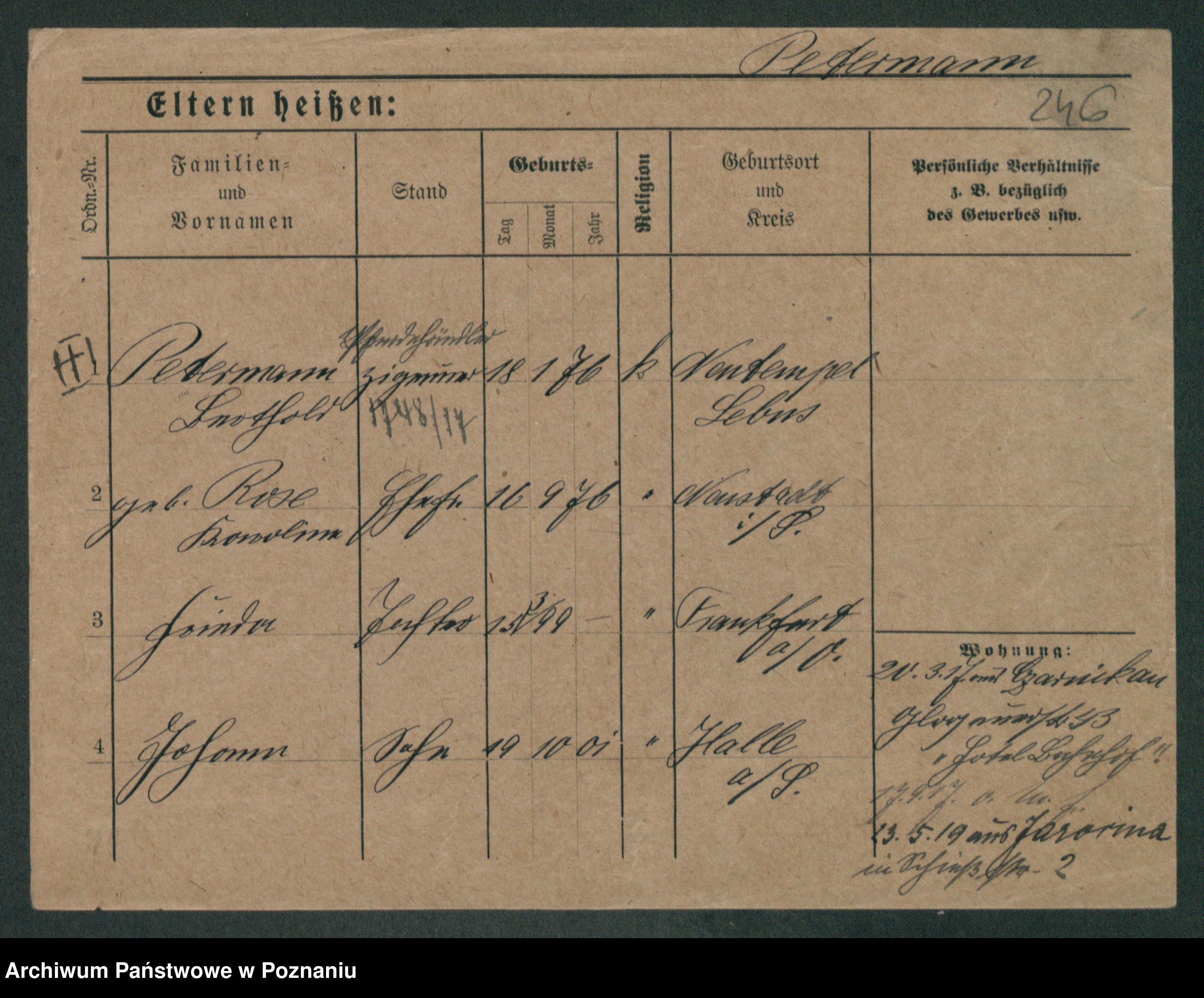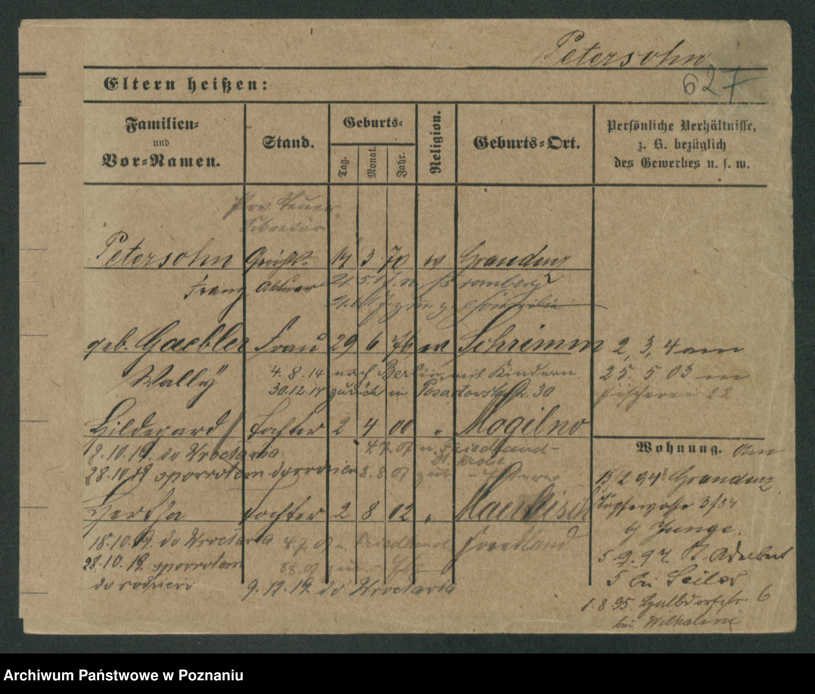 Podgląd karty osobowej dostępny jest po kliknięciu na nazwisko lub ikonkę karty. Można dokonywać powiększenia (ikony na górze) lub przechodzić między kolejnymi skanami (strzałki po bokach).