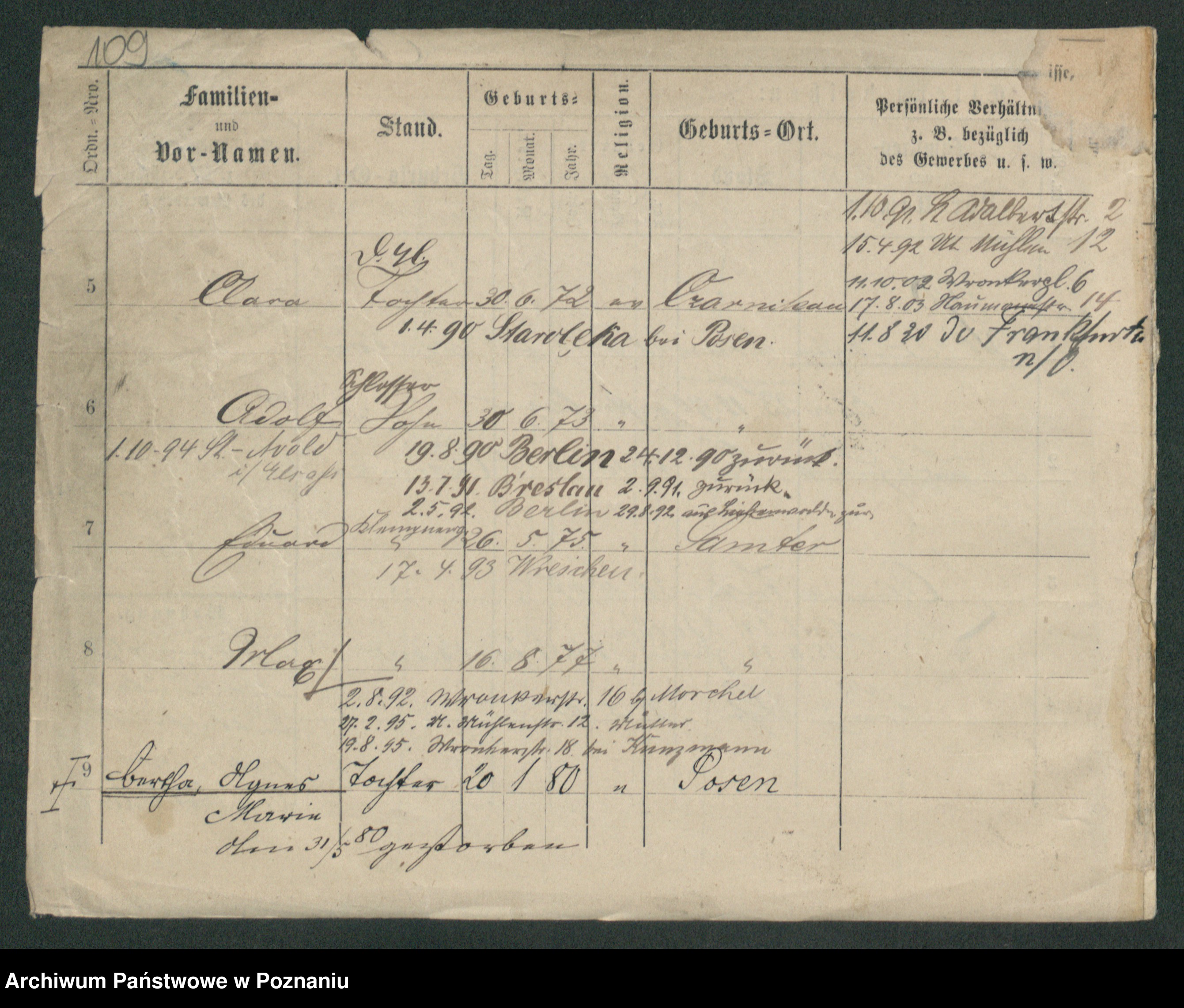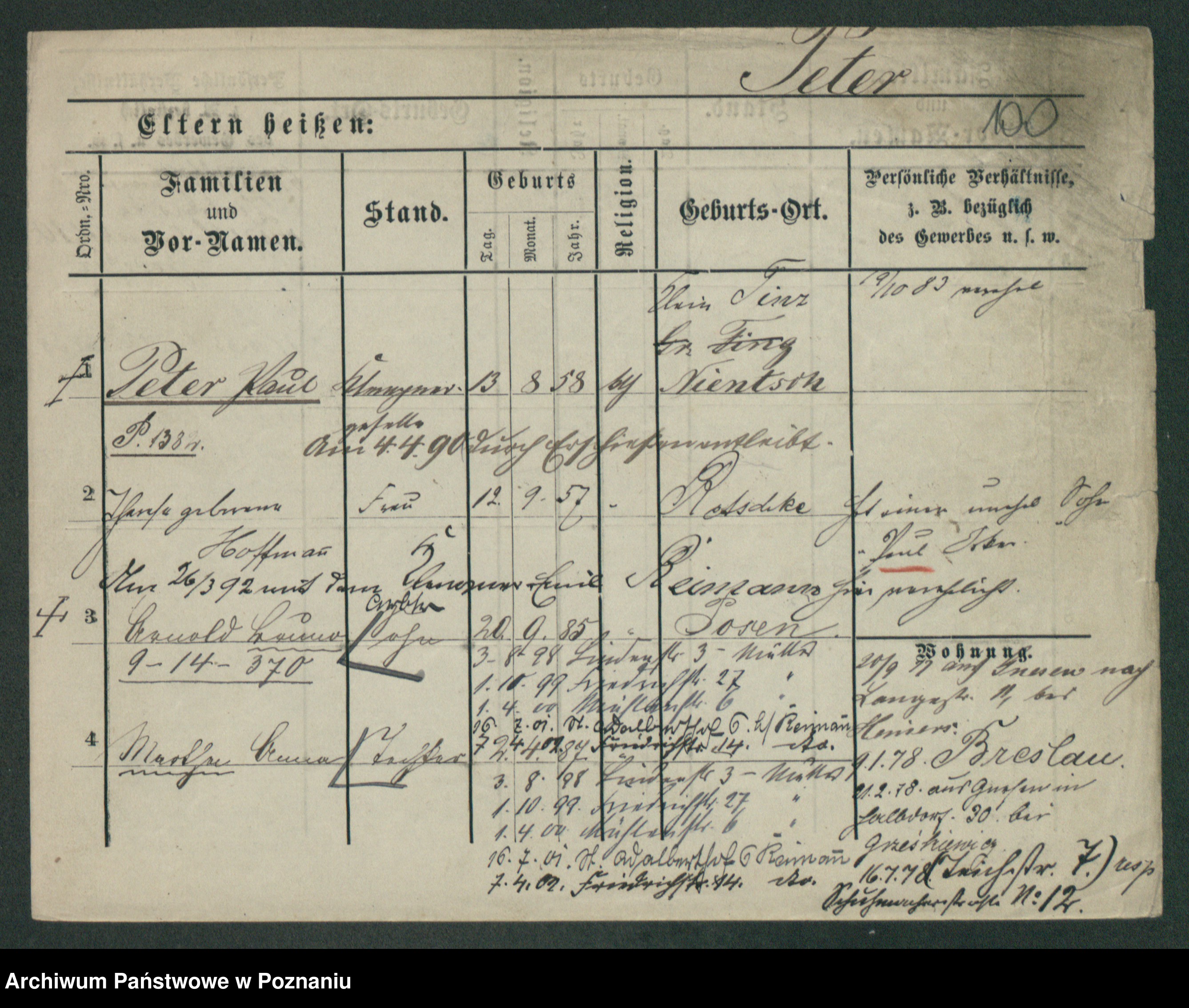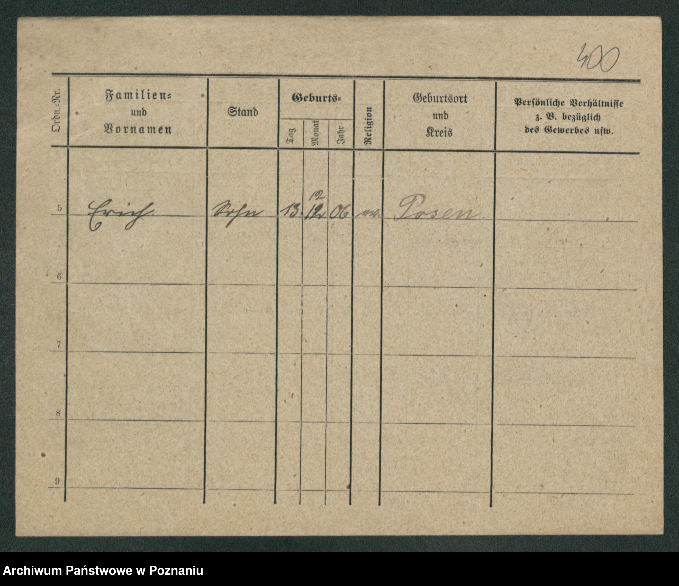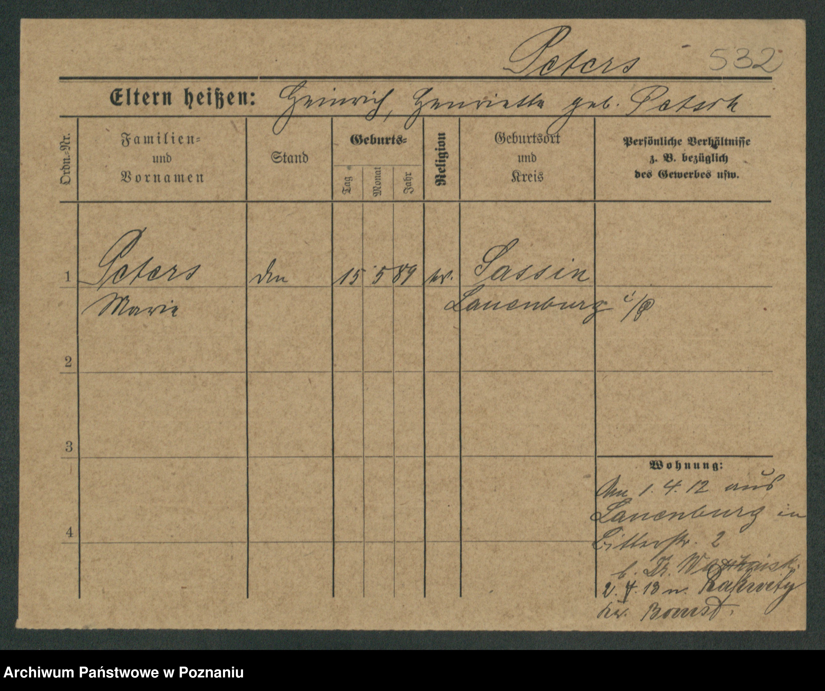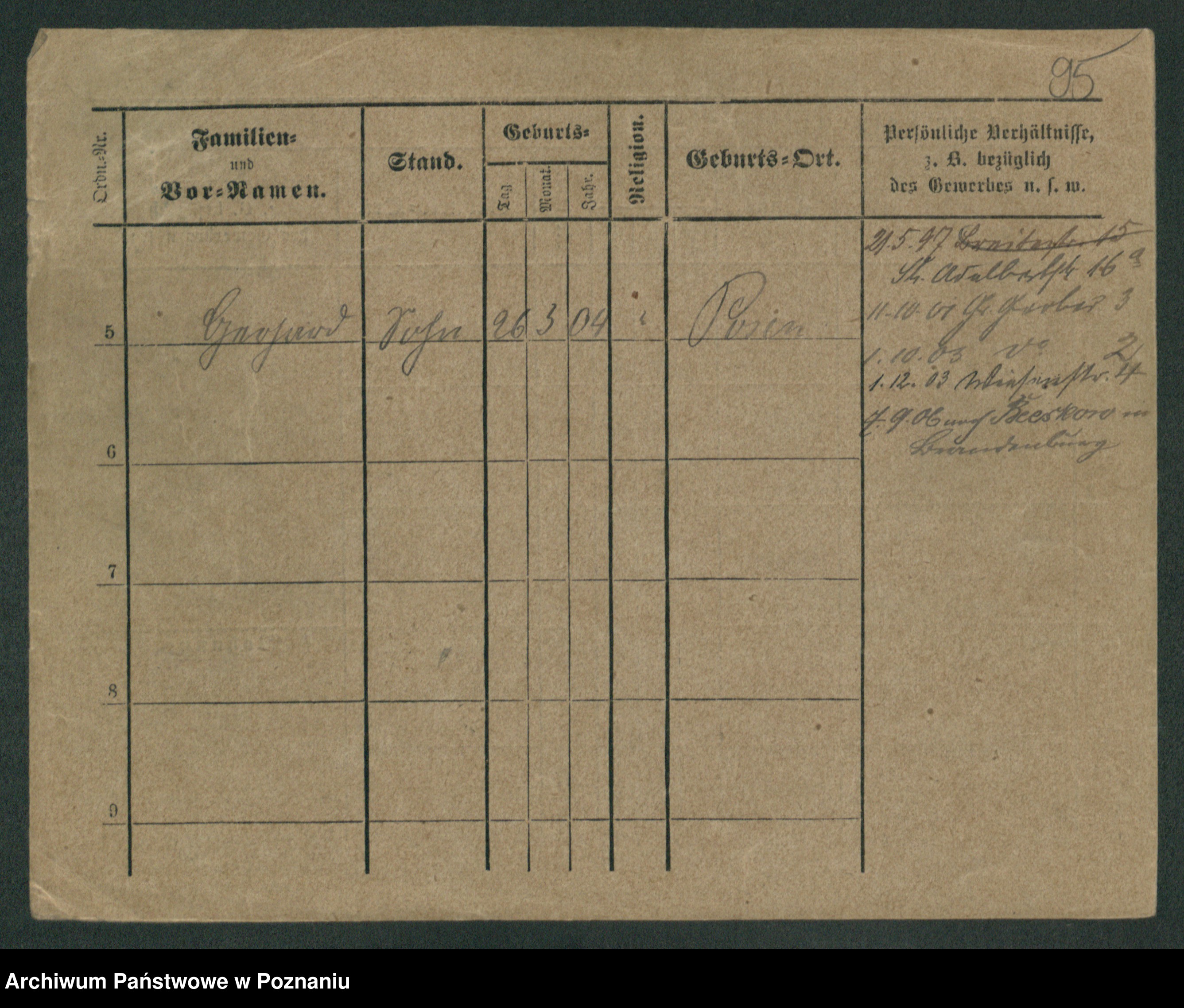 Podgląd karty osobowej dostępny jest po kliknięciu na nazwisko lub ikonkę karty. Można dokonywać powiększenia (ikony na górze) lub przechodzić między kolejnymi skanami (strzałki po bokach).