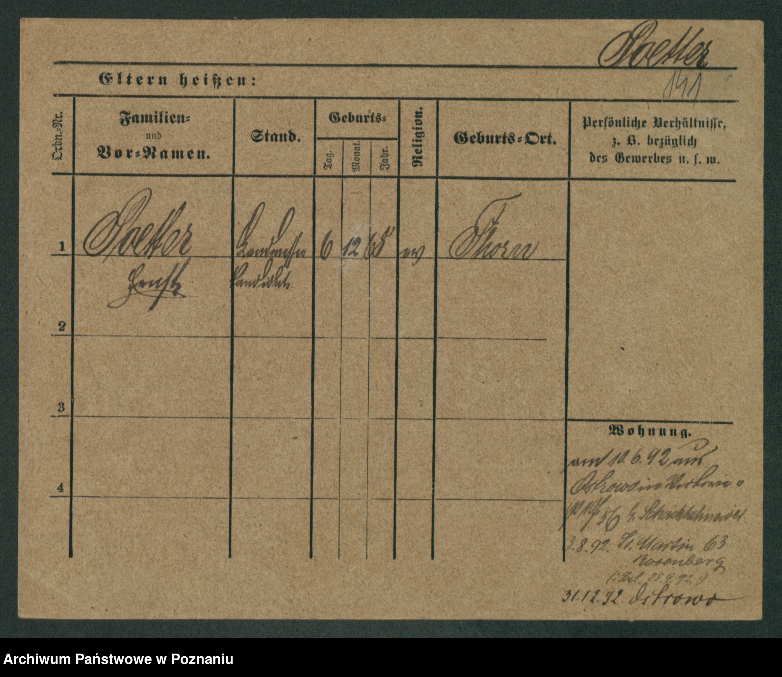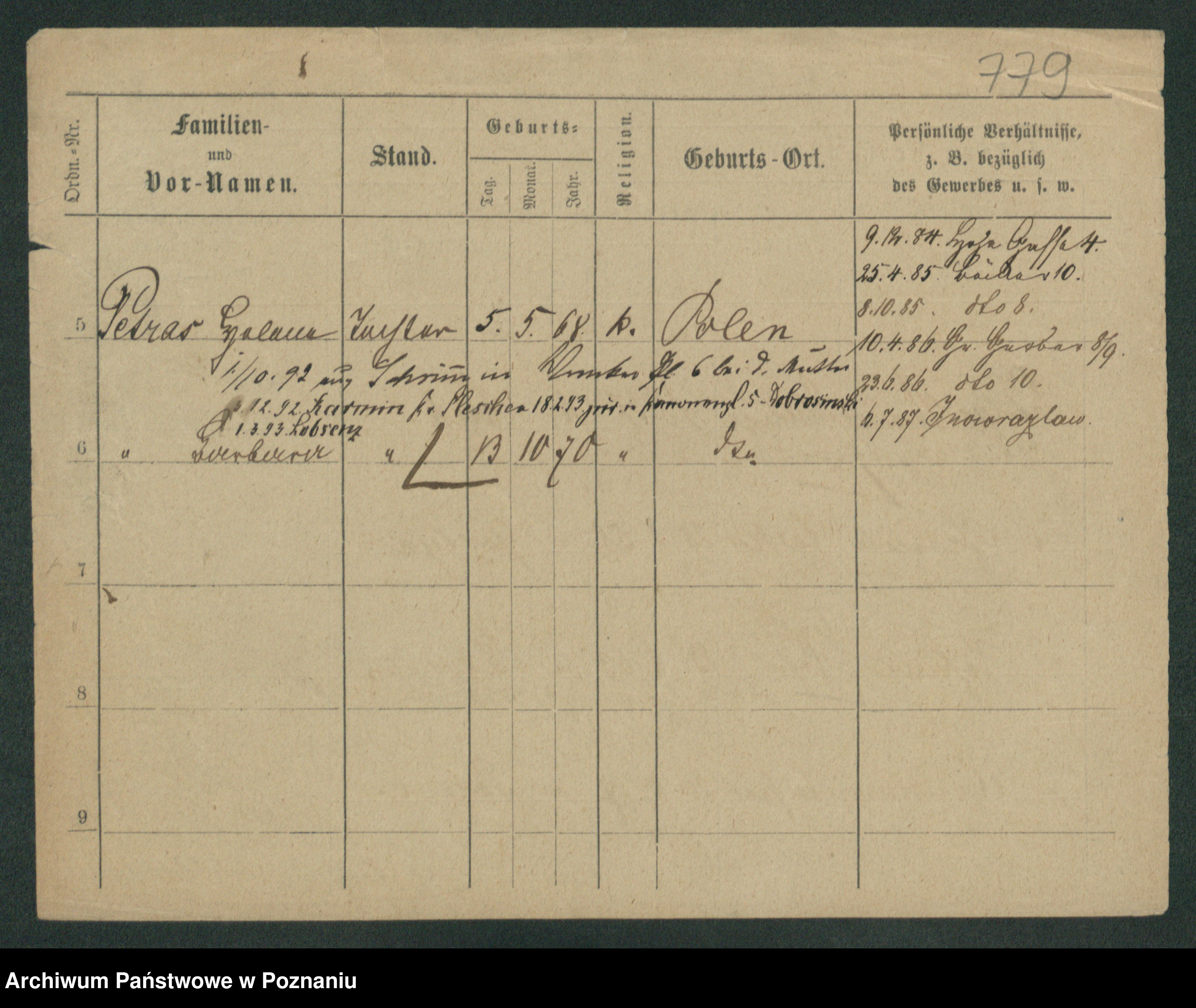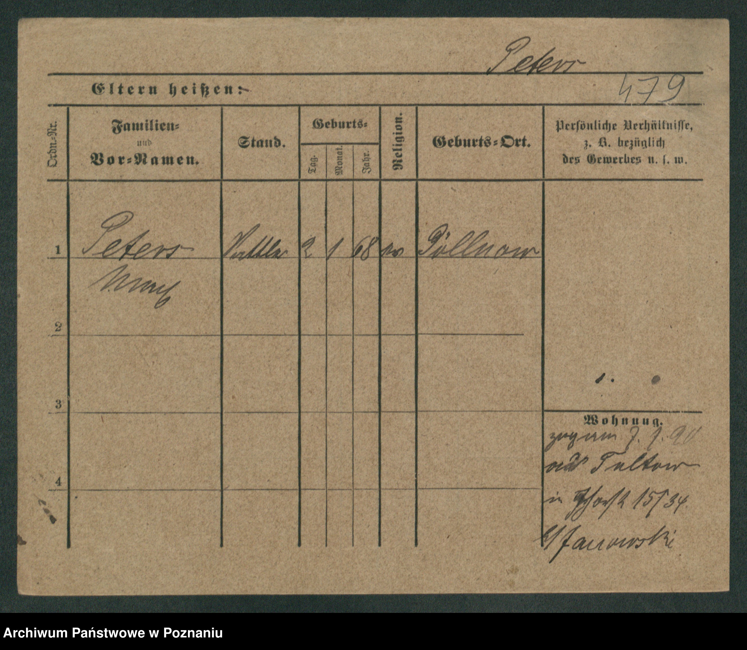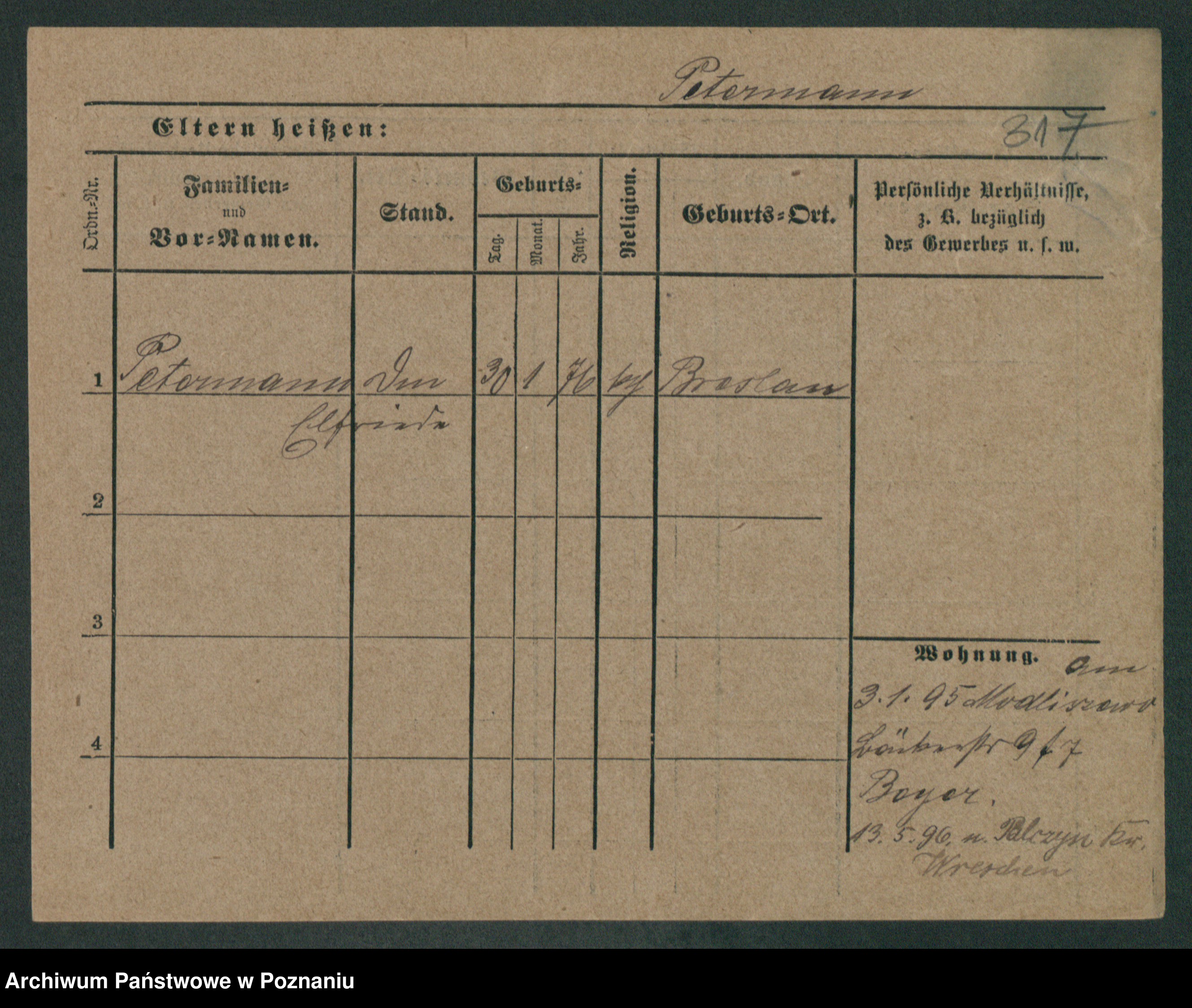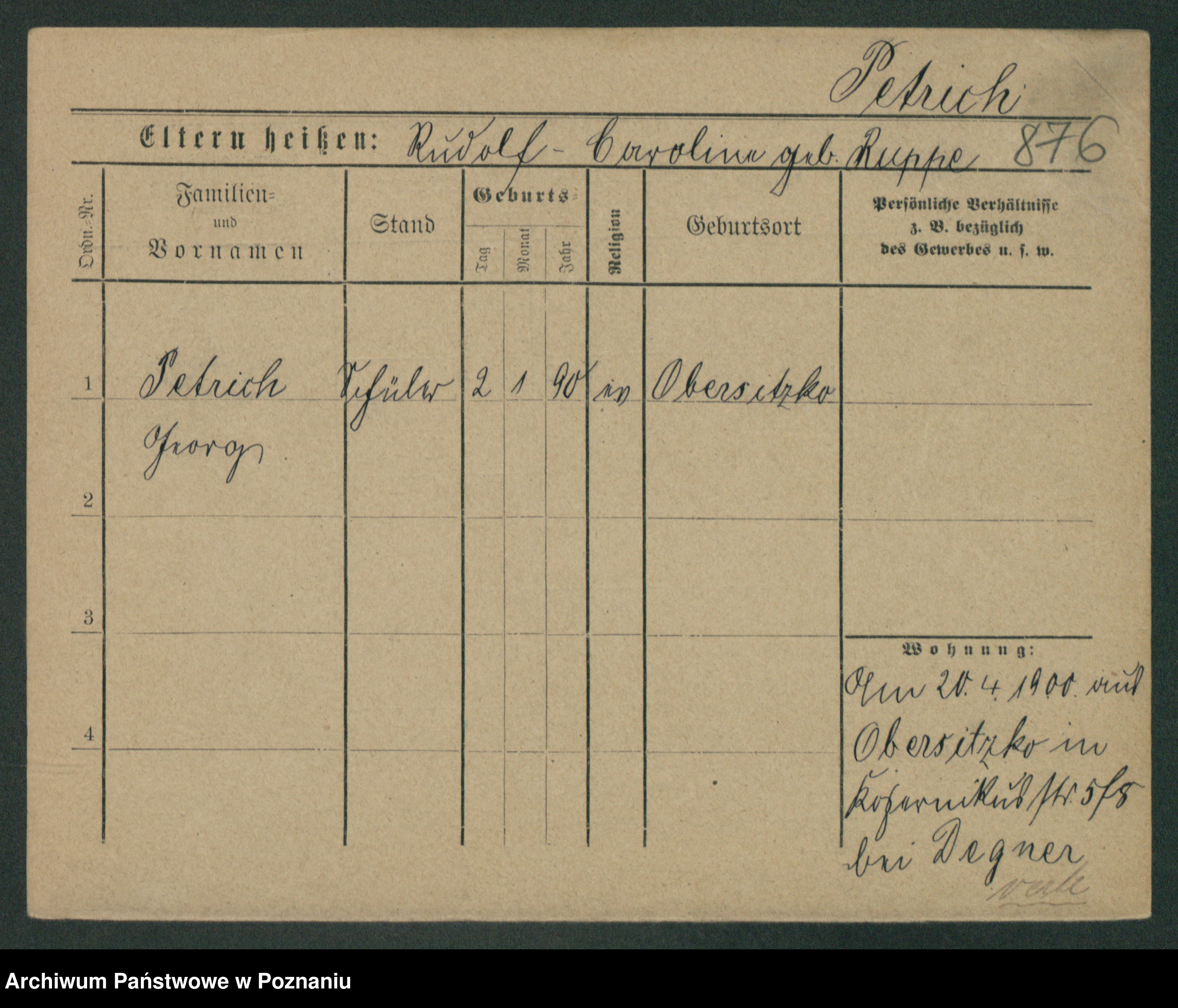 Podgląd karty osobowej dostępny jest po kliknięciu na nazwisko lub ikonkę karty. Można dokonywać powiększenia (ikony na górze) lub przechodzić między kolejnymi skanami (strzałki po bokach).