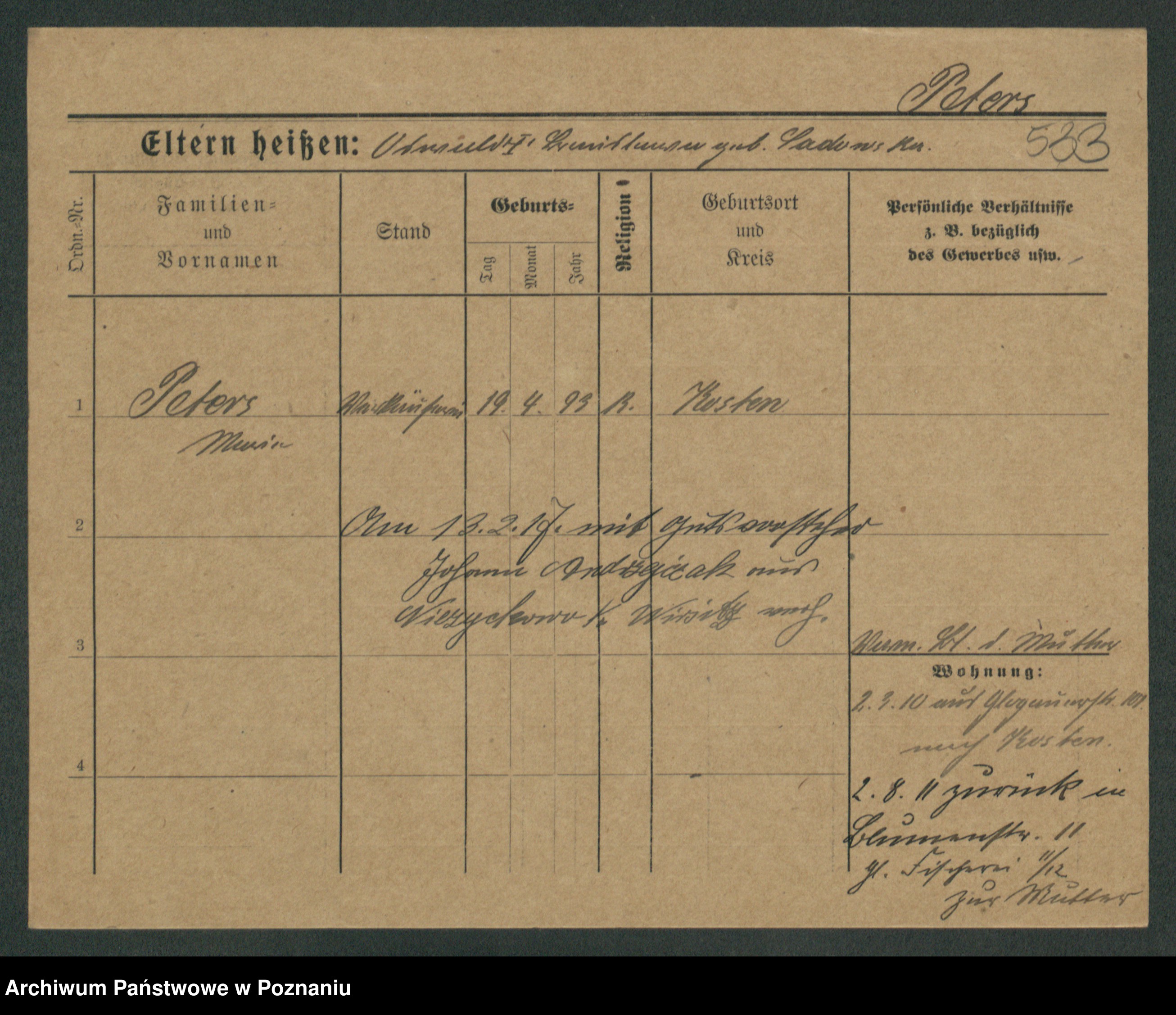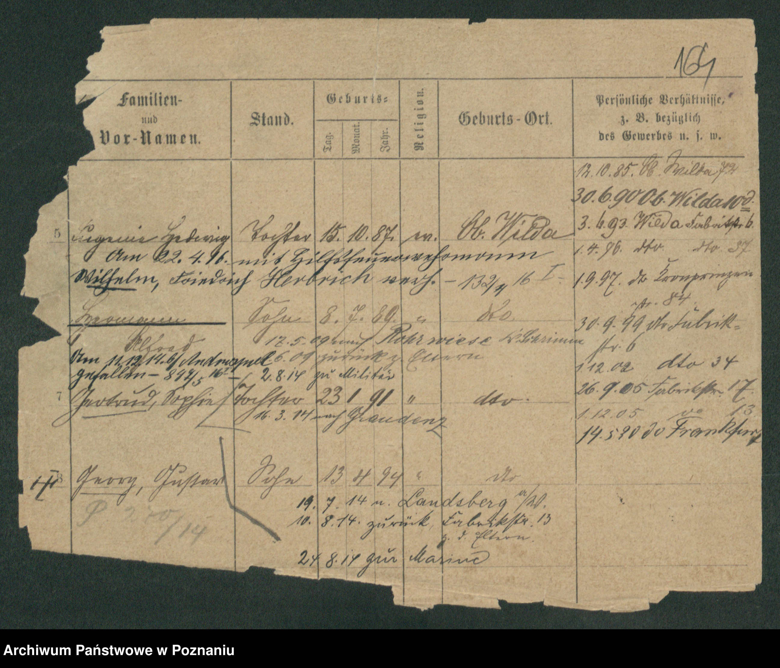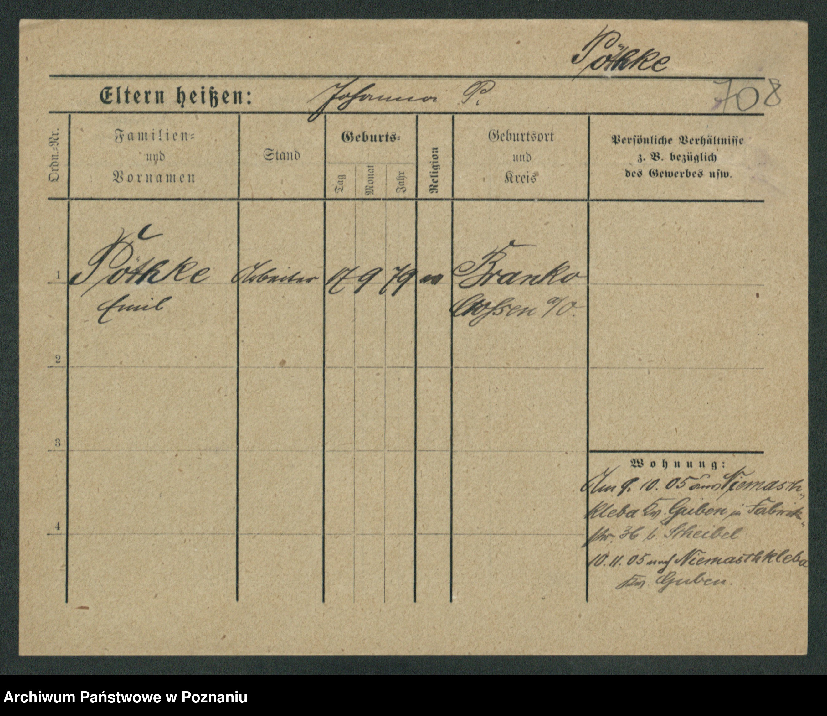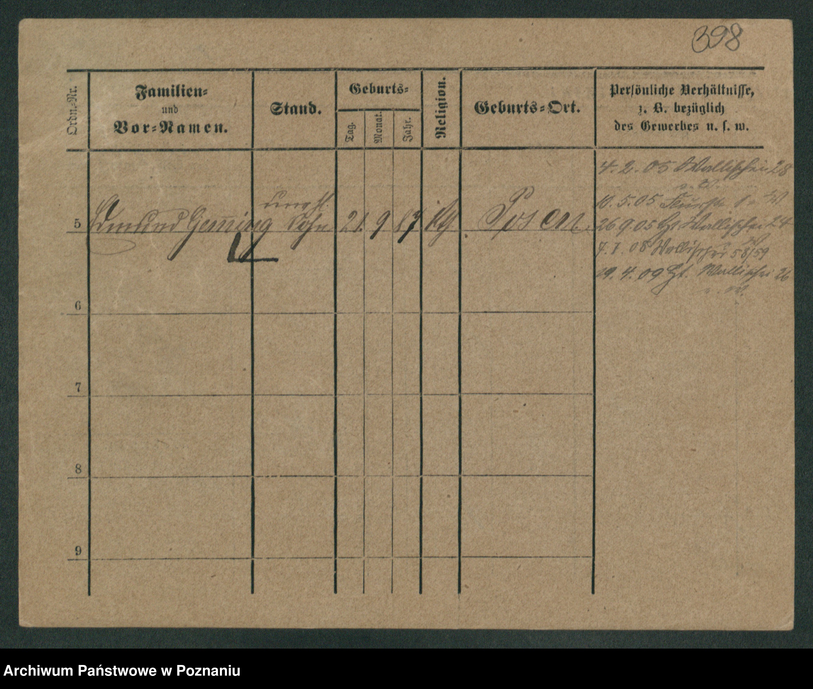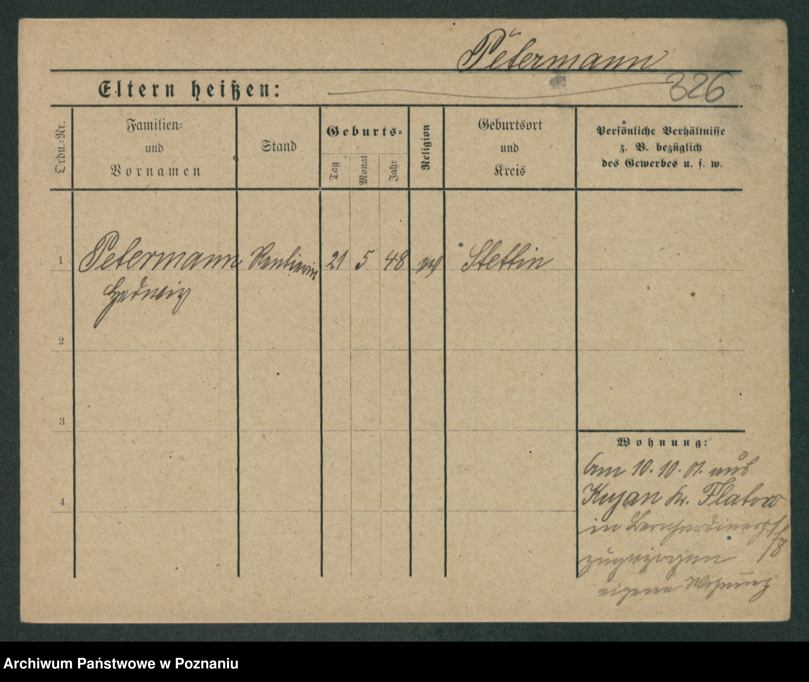 Podgląd karty osobowej dostępny jest po kliknięciu na nazwisko lub ikonkę karty. Można dokonywać powiększenia (ikony na górze) lub przechodzić między kolejnymi skanami (strzałki po bokach).