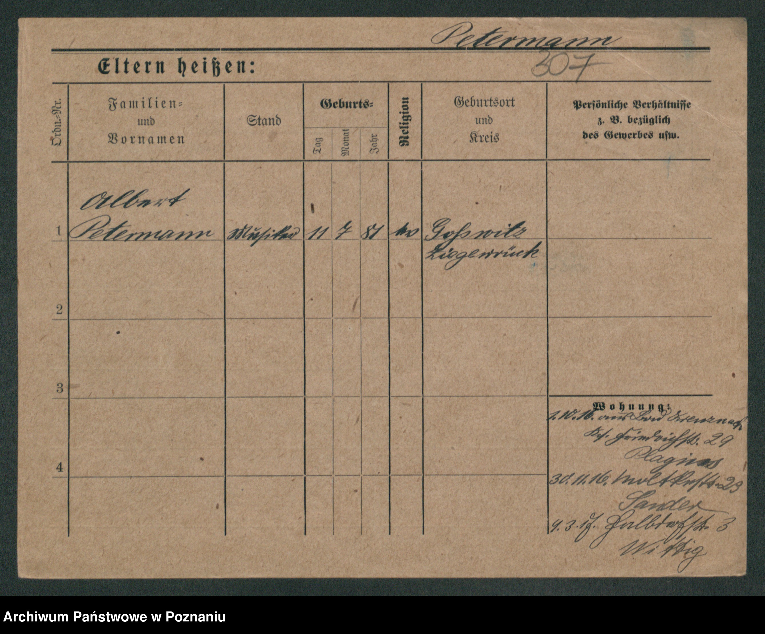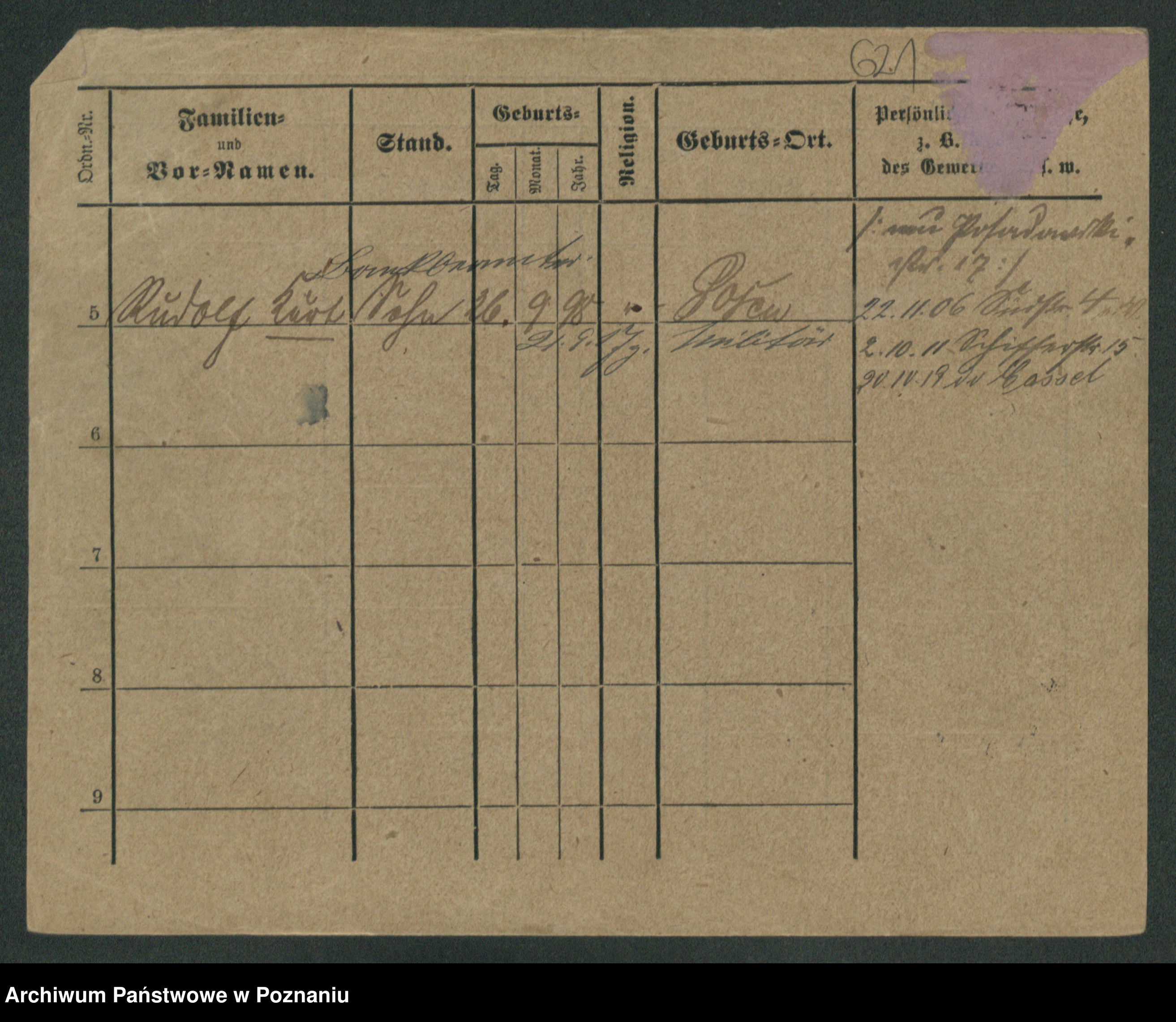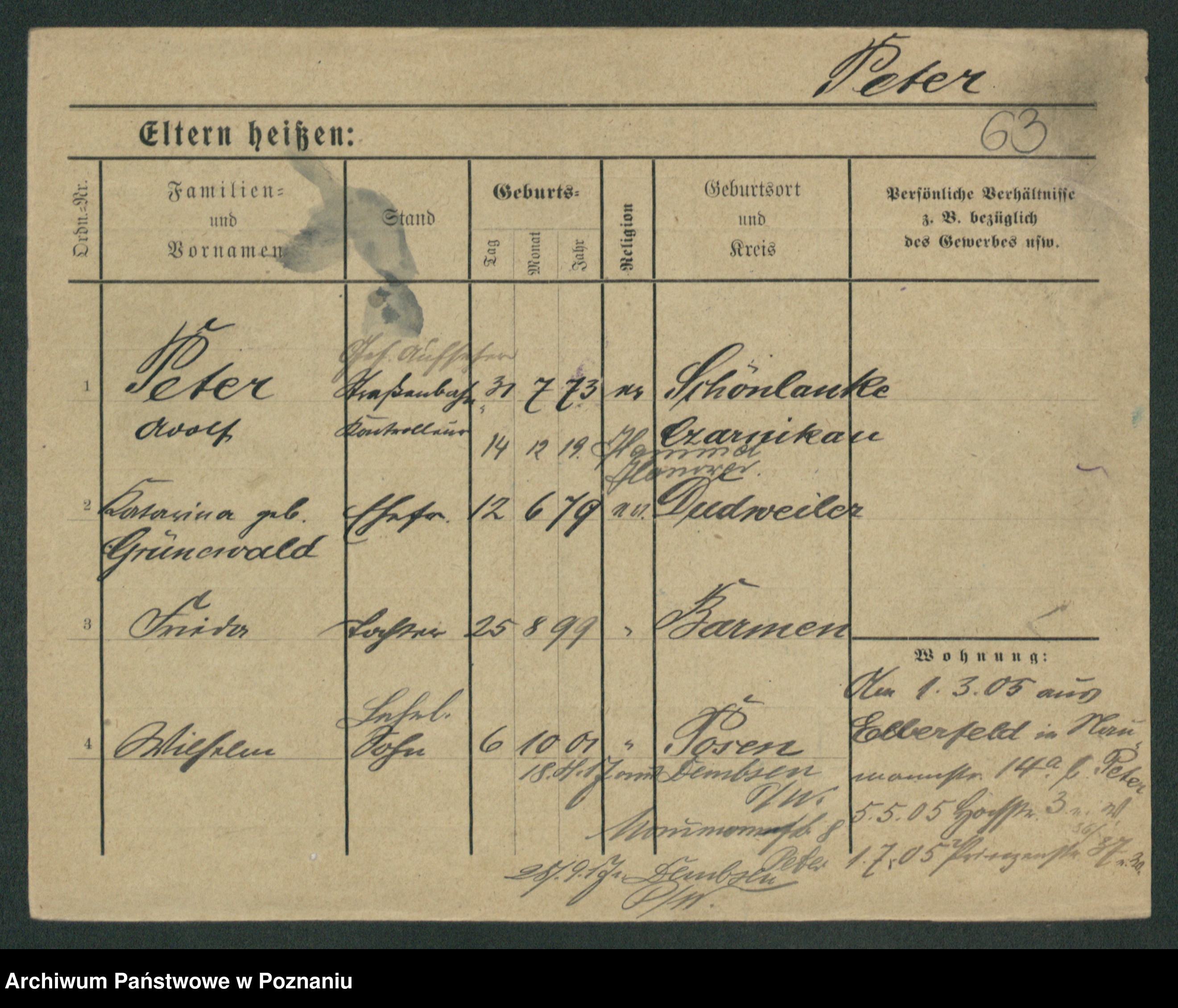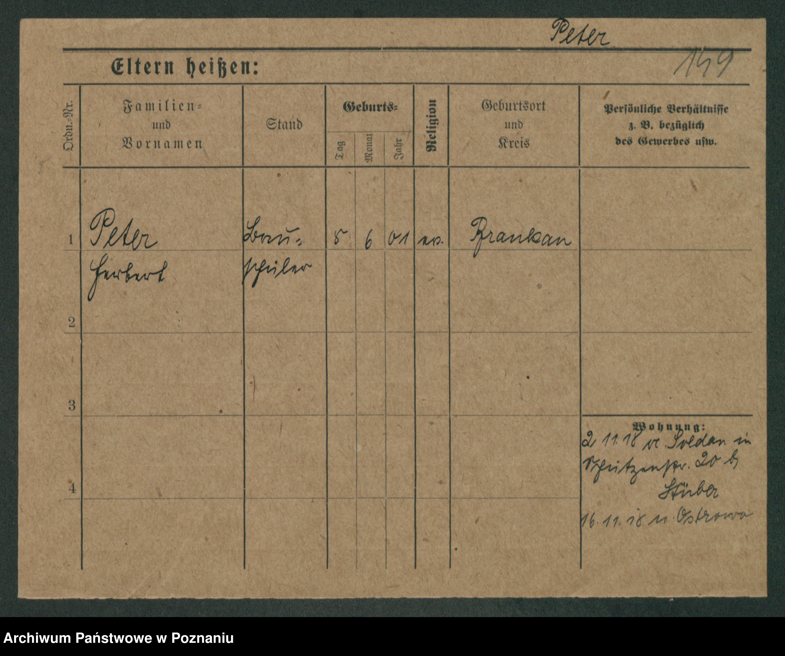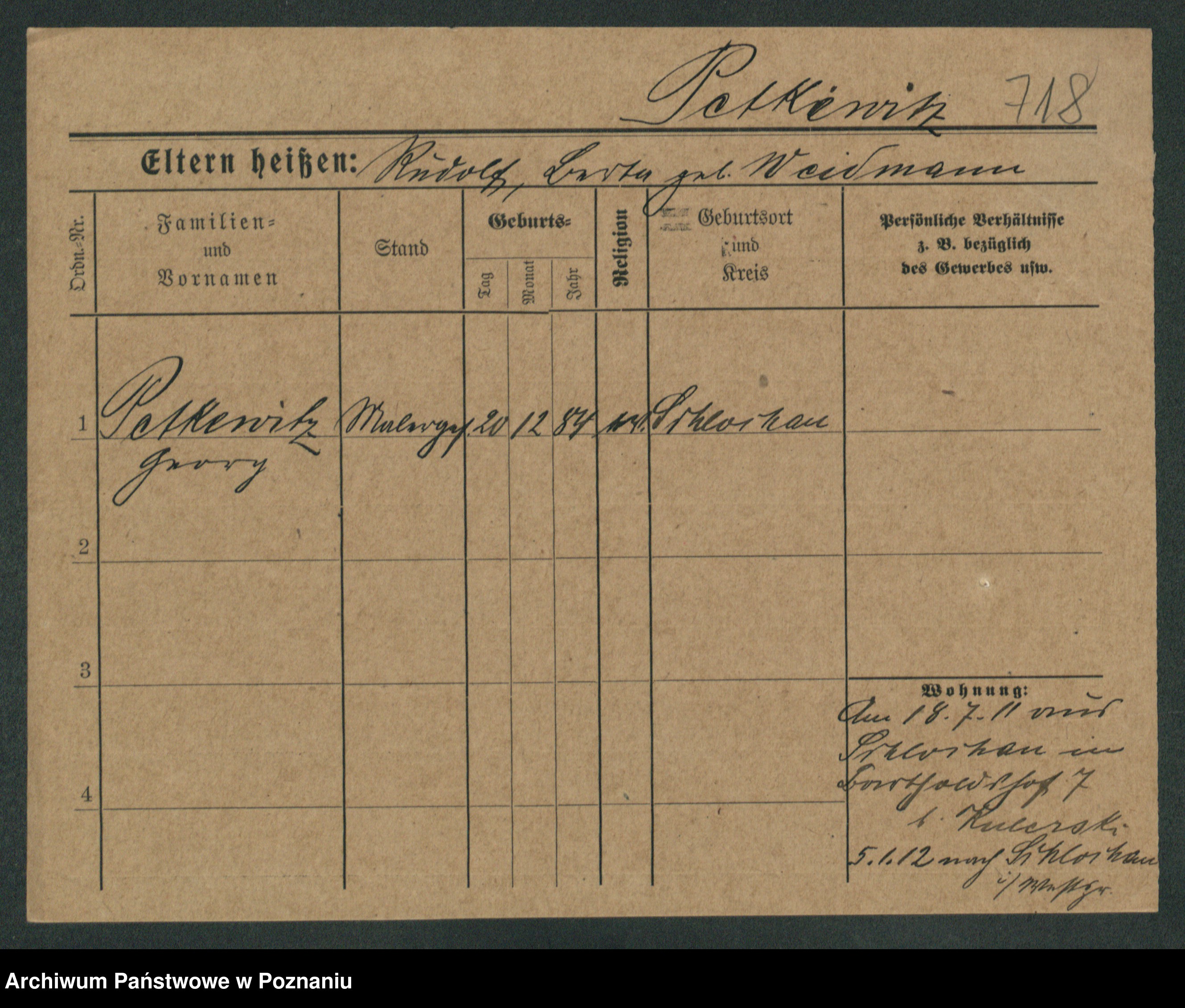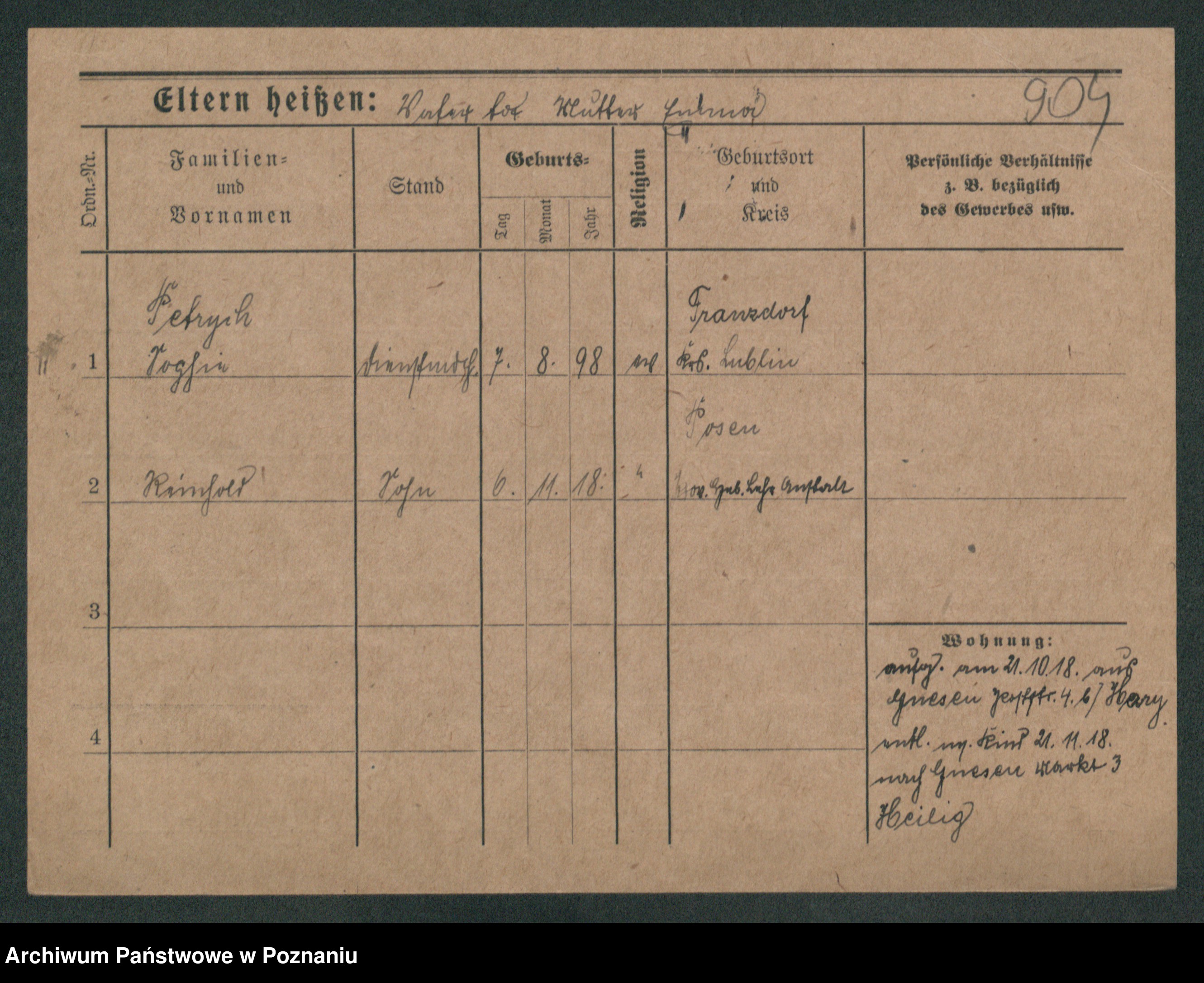 Podgląd karty osobowej dostępny jest po kliknięciu na nazwisko lub ikonkę karty. Można dokonywać powiększenia (ikony na górze) lub przechodzić między kolejnymi skanami (strzałki po bokach).
