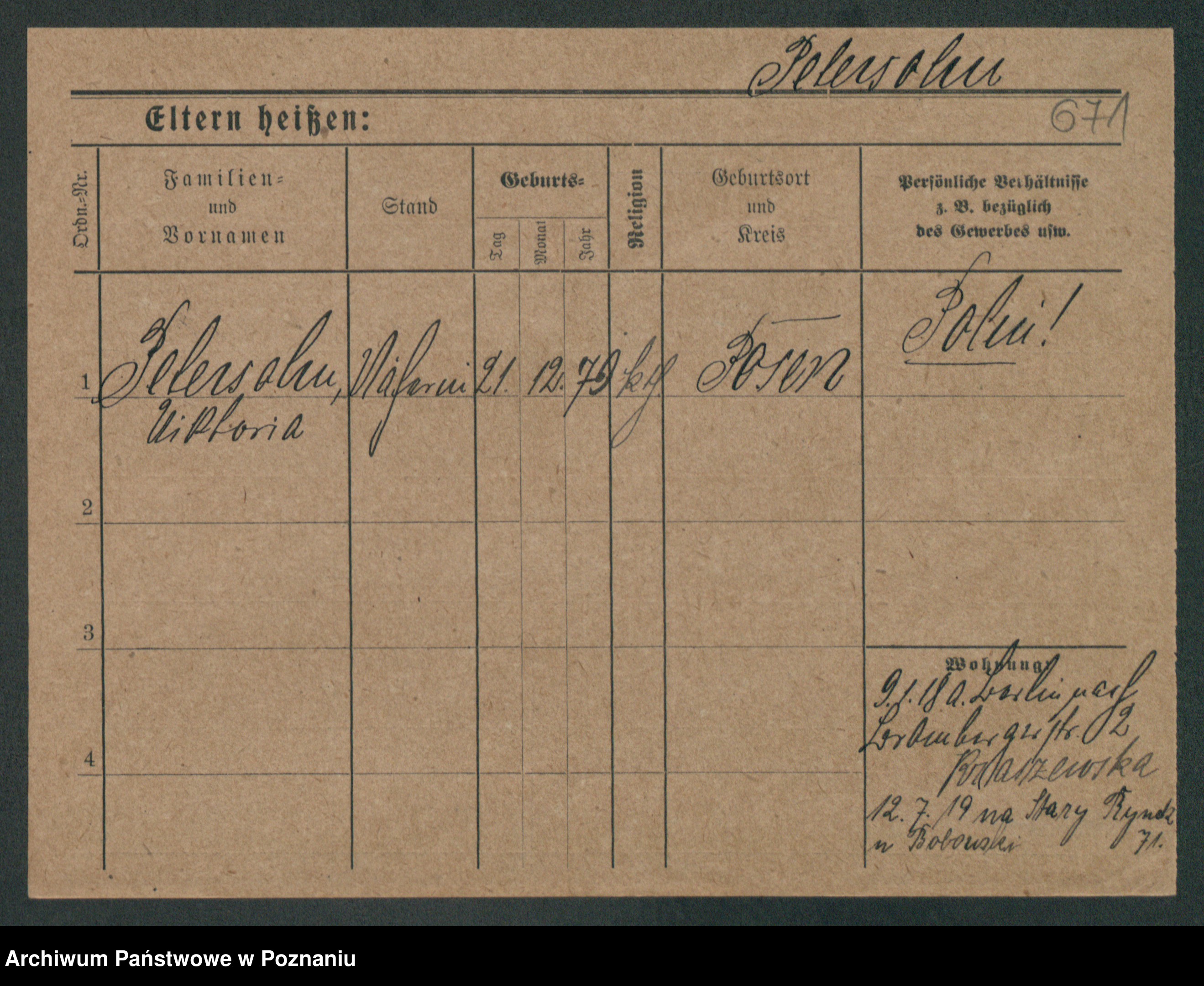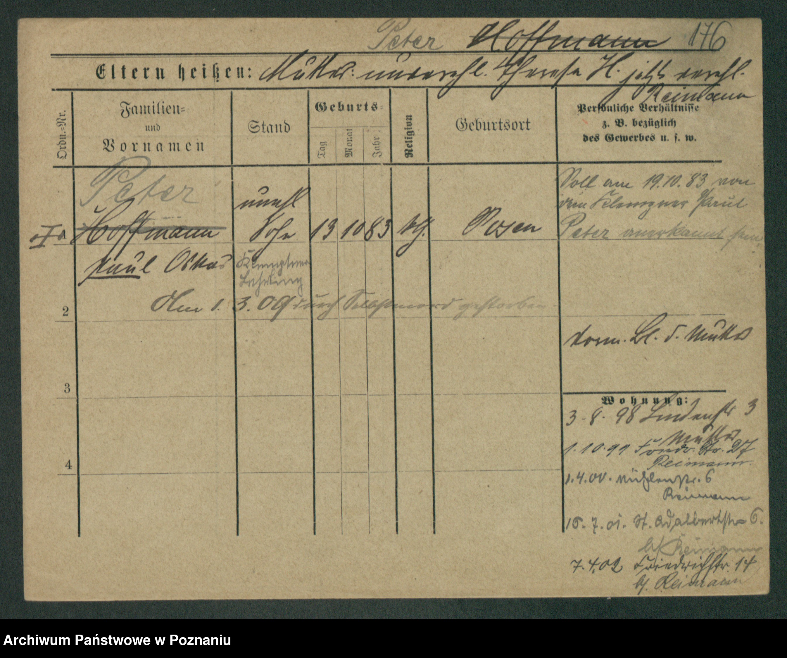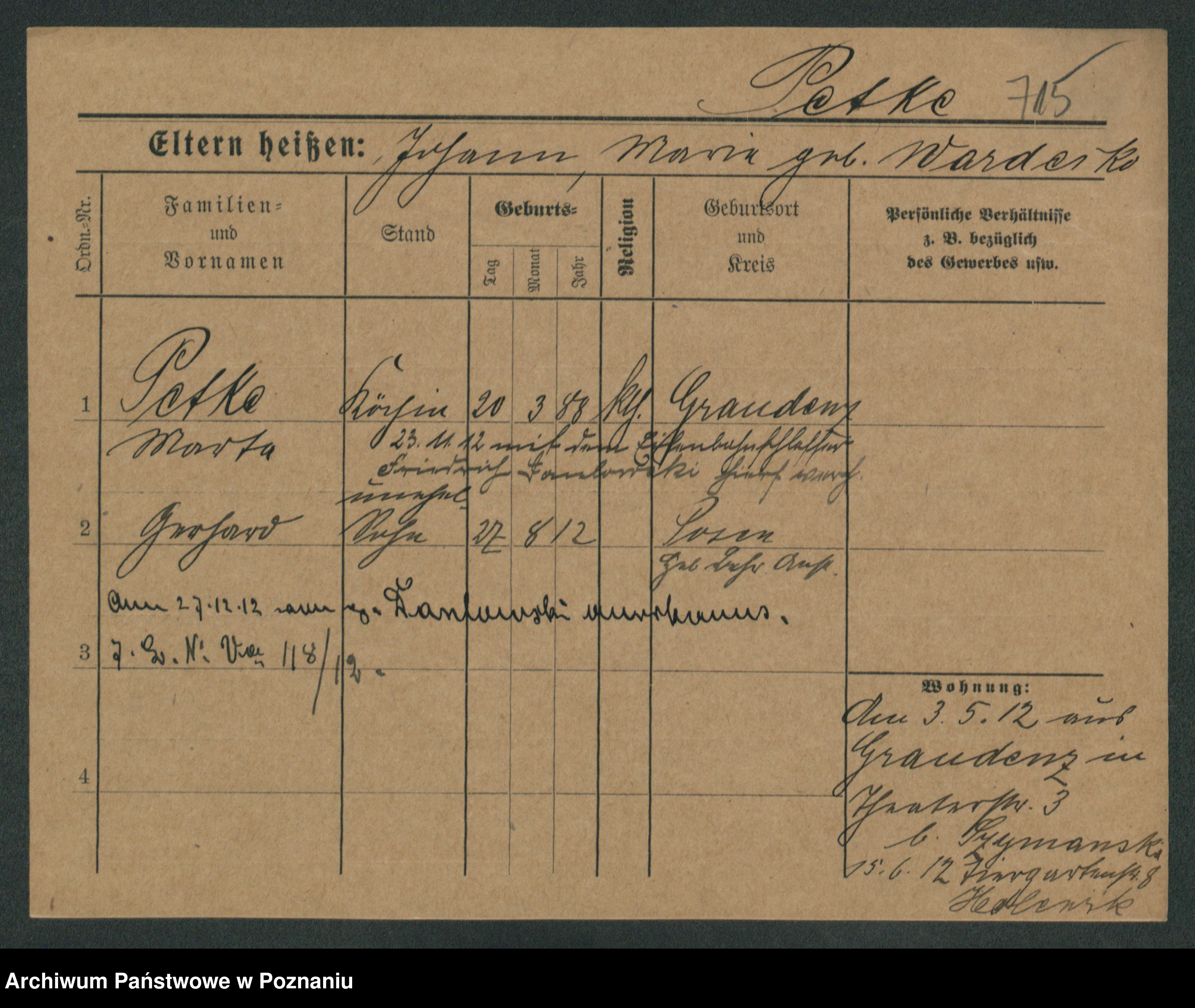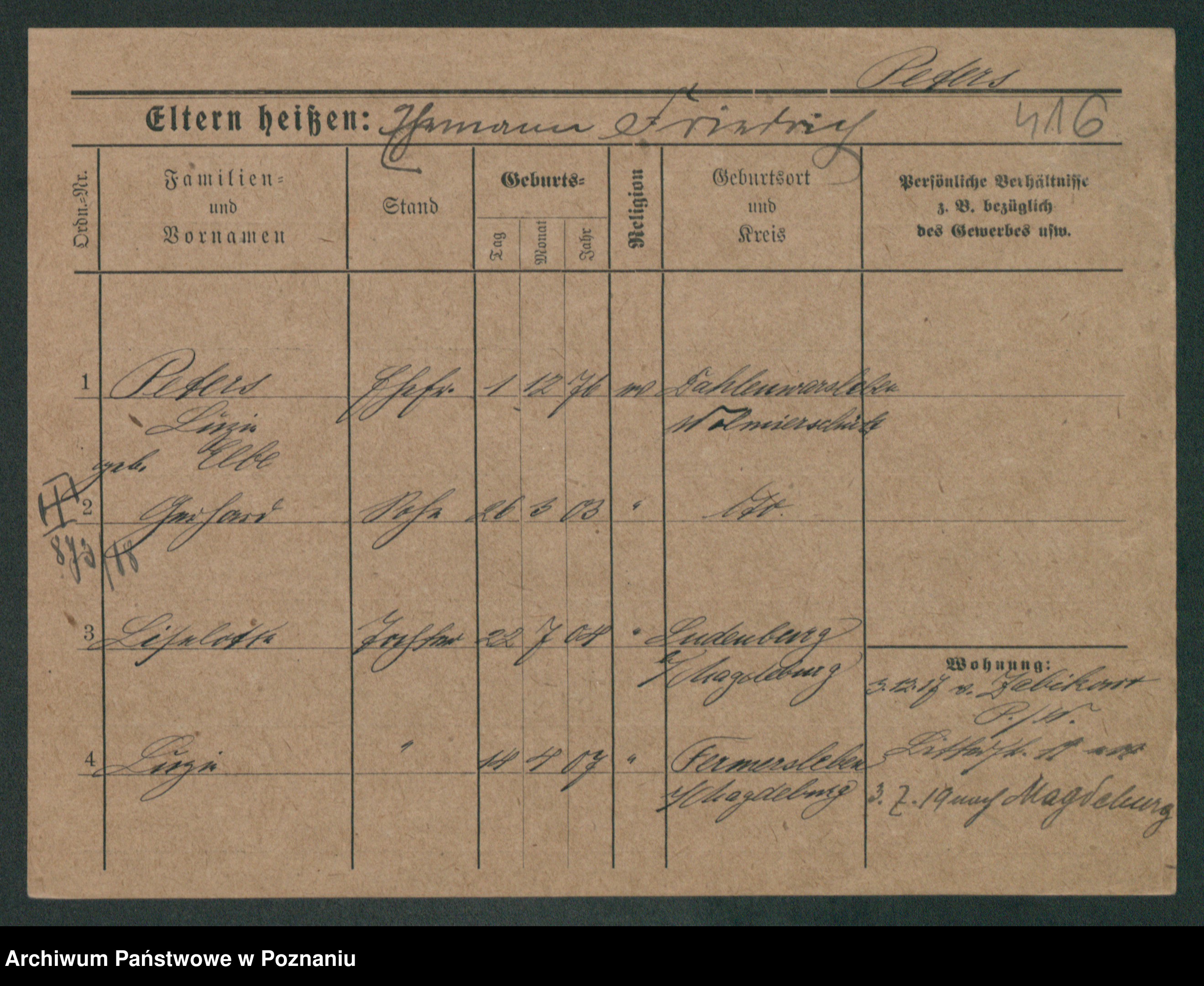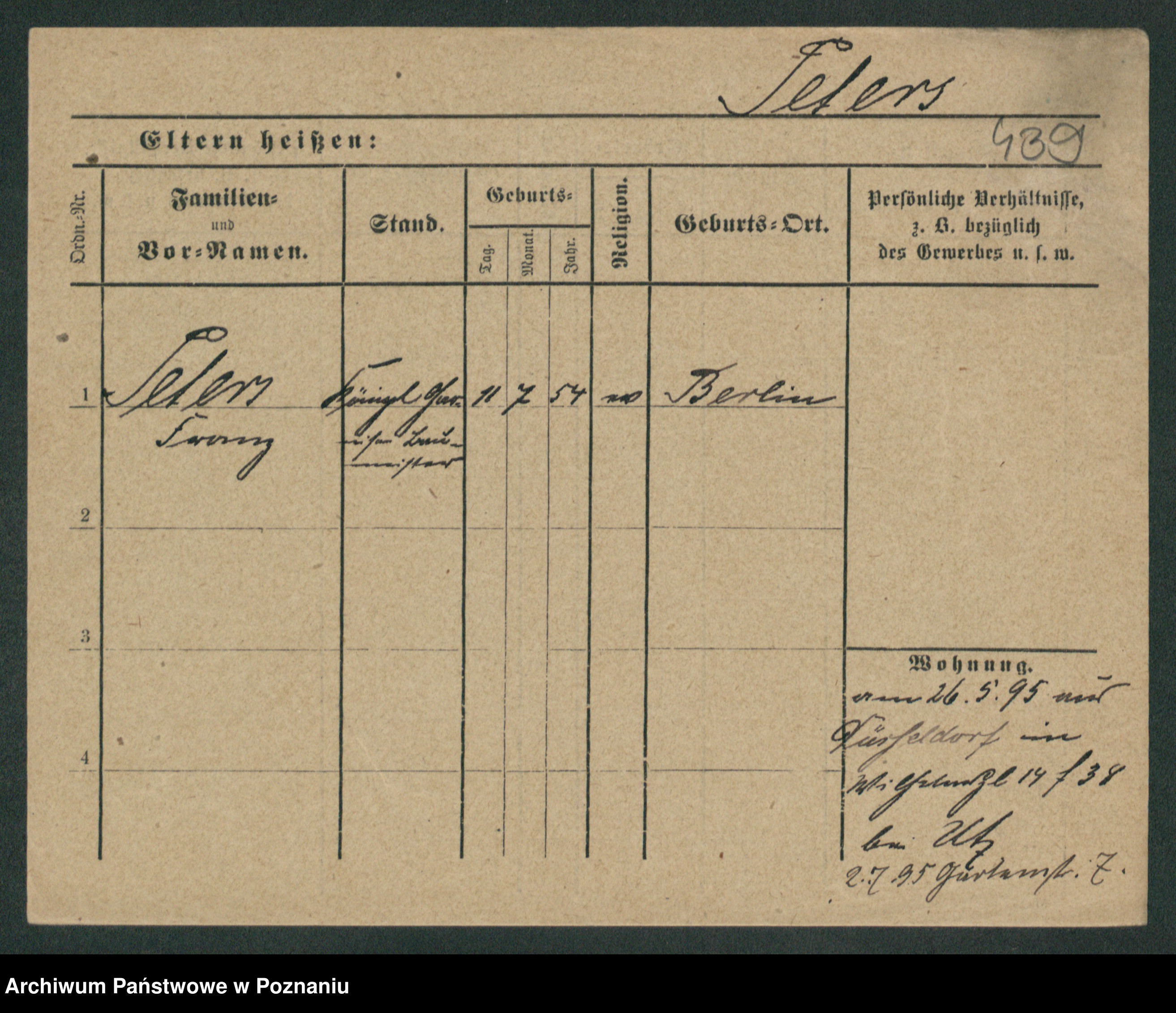 Podgląd karty osobowej dostępny jest po kliknięciu na nazwisko lub ikonkę karty. Można dokonywać powiększenia (ikony na górze) lub przechodzić między kolejnymi skanami (strzałki po bokach).