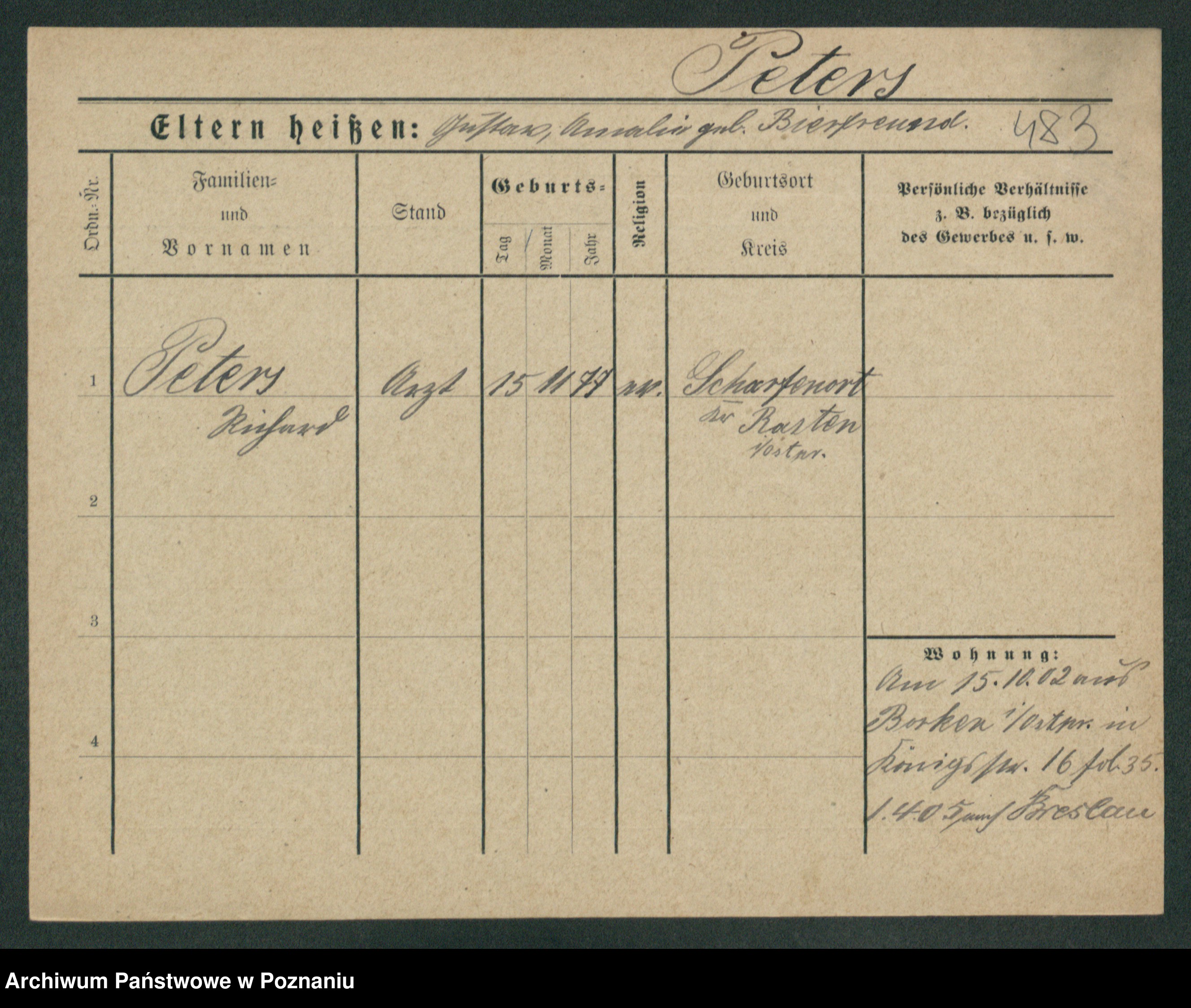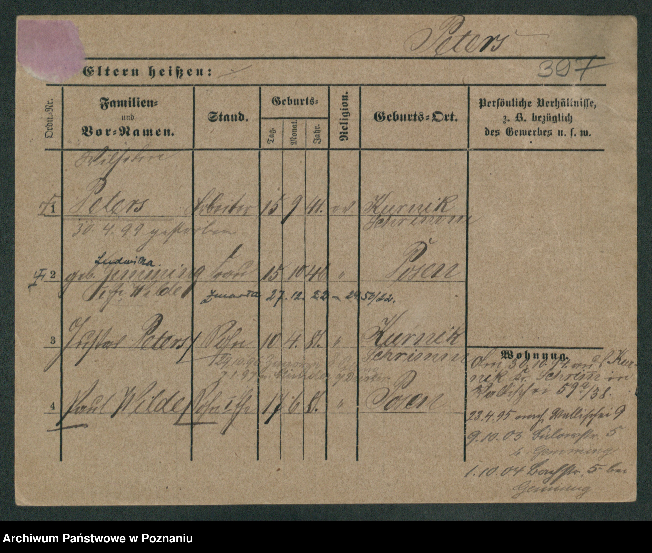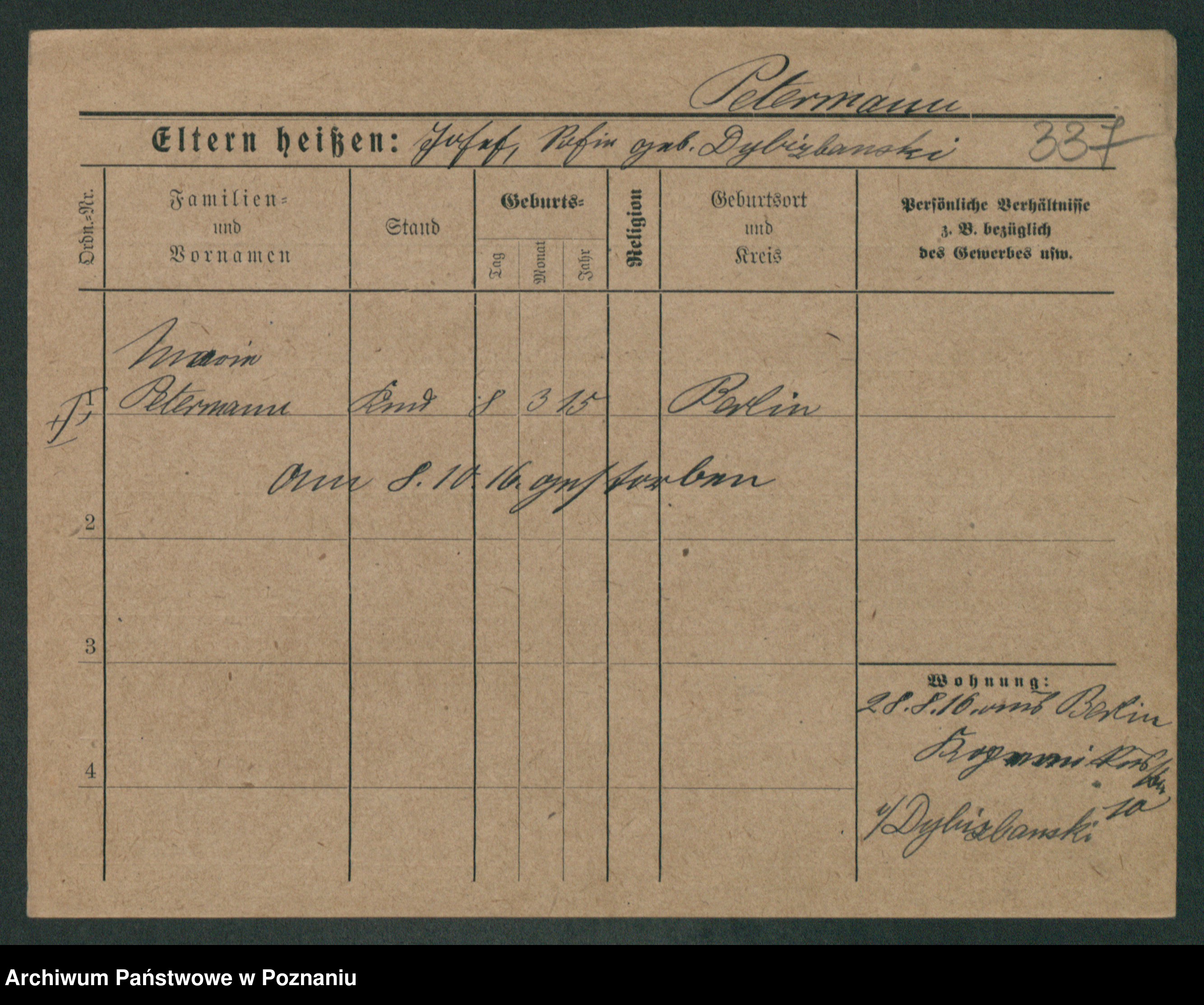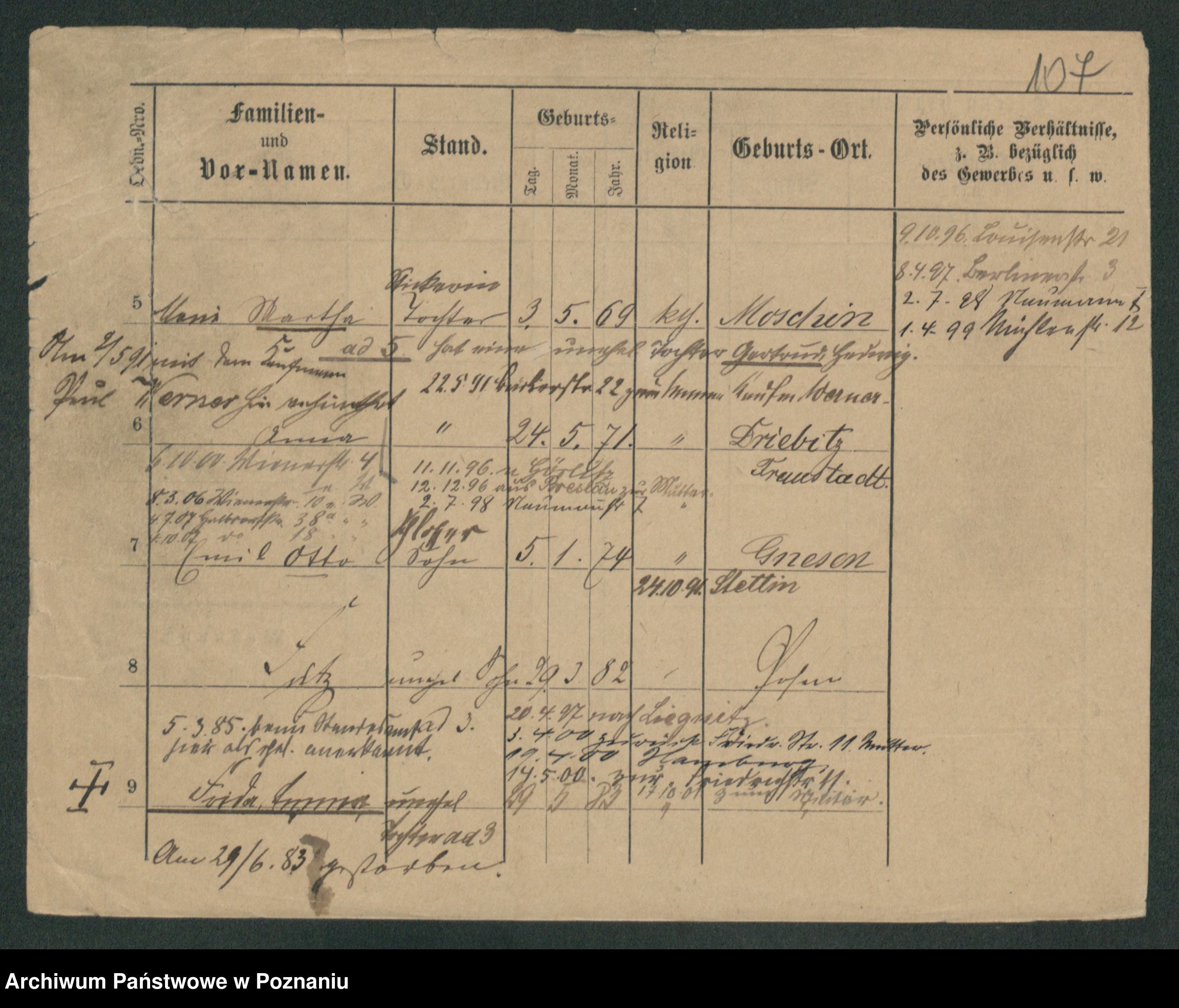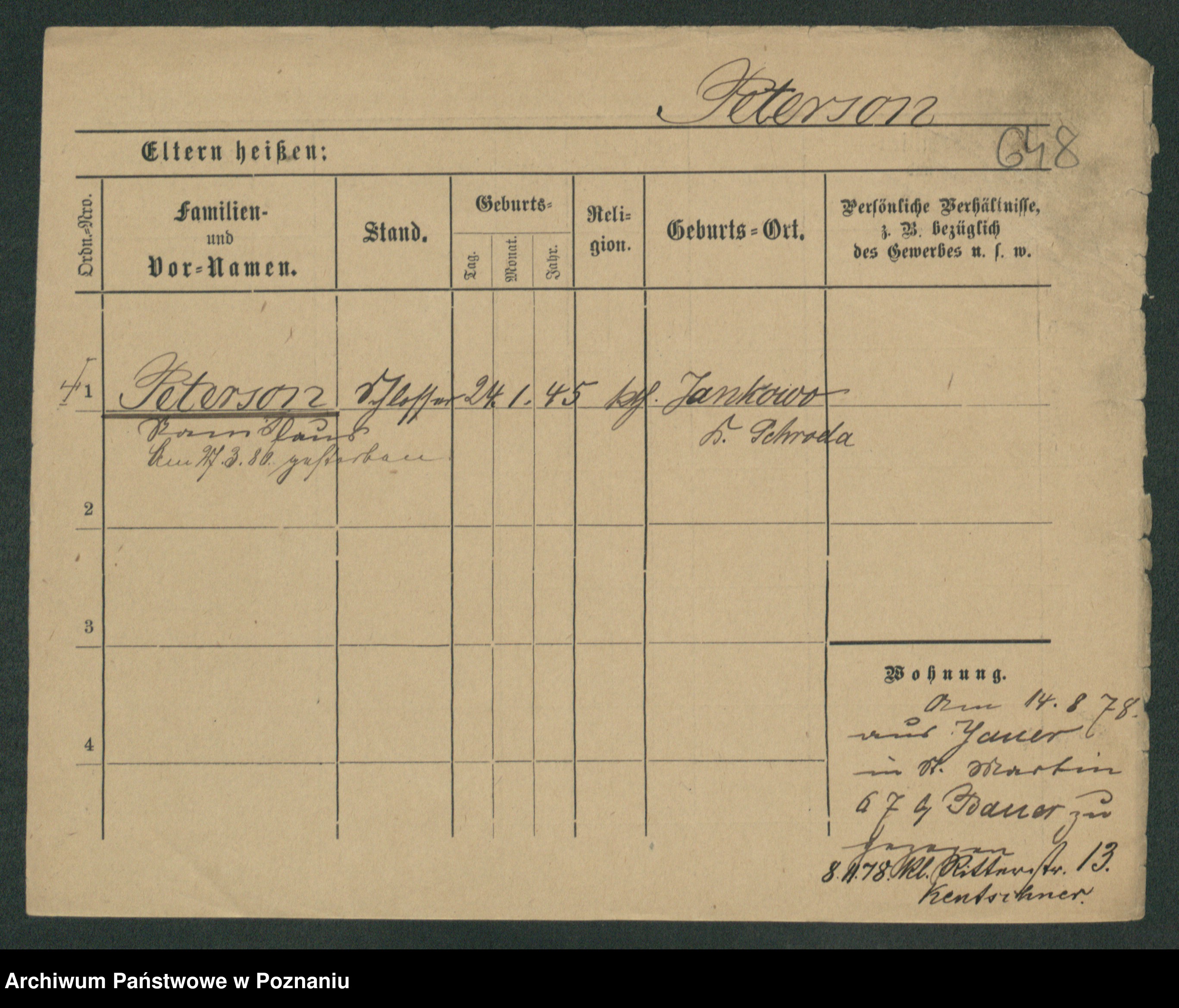 Podgląd karty osobowej dostępny jest po kliknięciu na nazwisko lub ikonkę karty. Można dokonywać powiększenia (ikony na górze) lub przechodzić między kolejnymi skanami (strzałki po bokach).