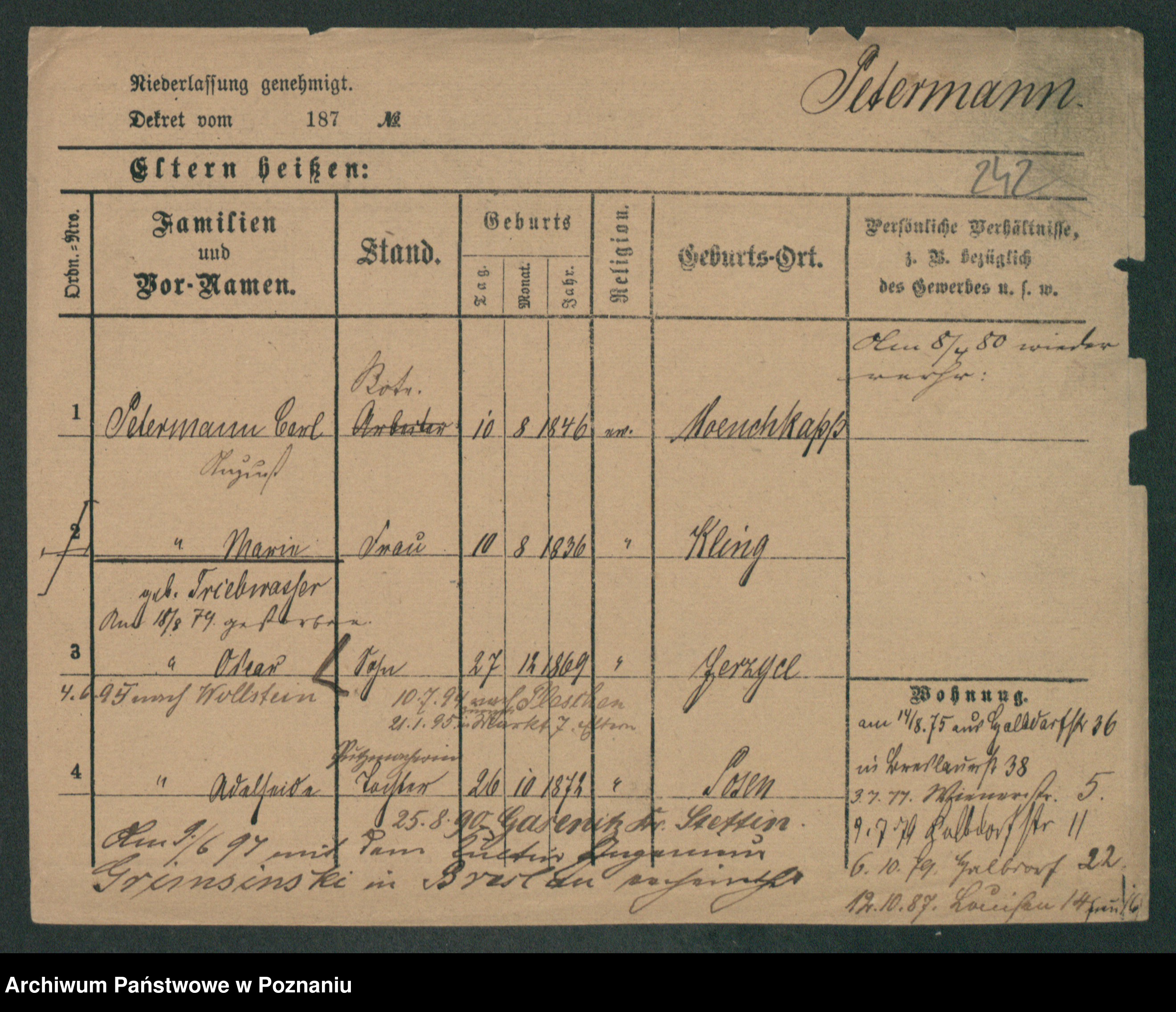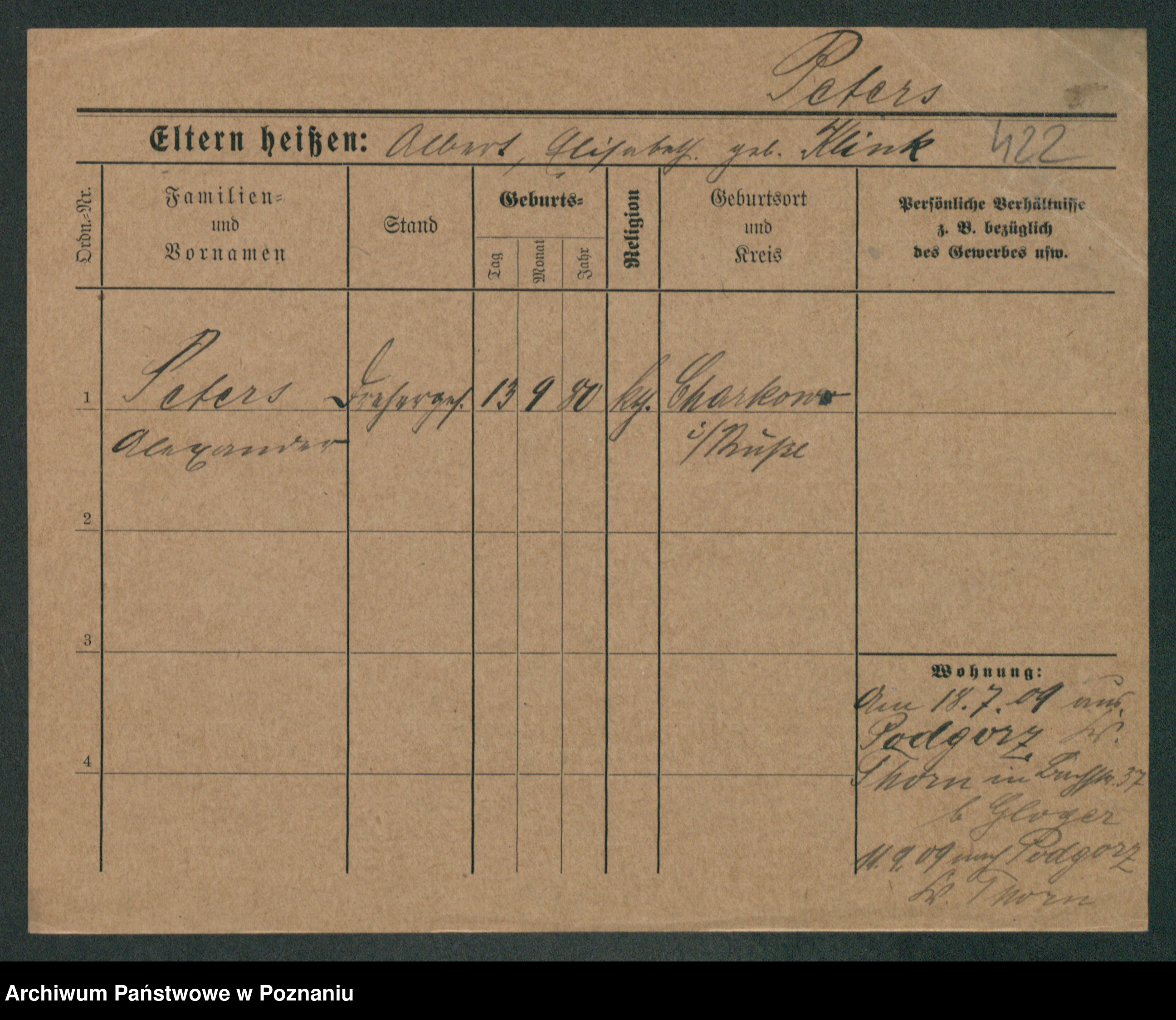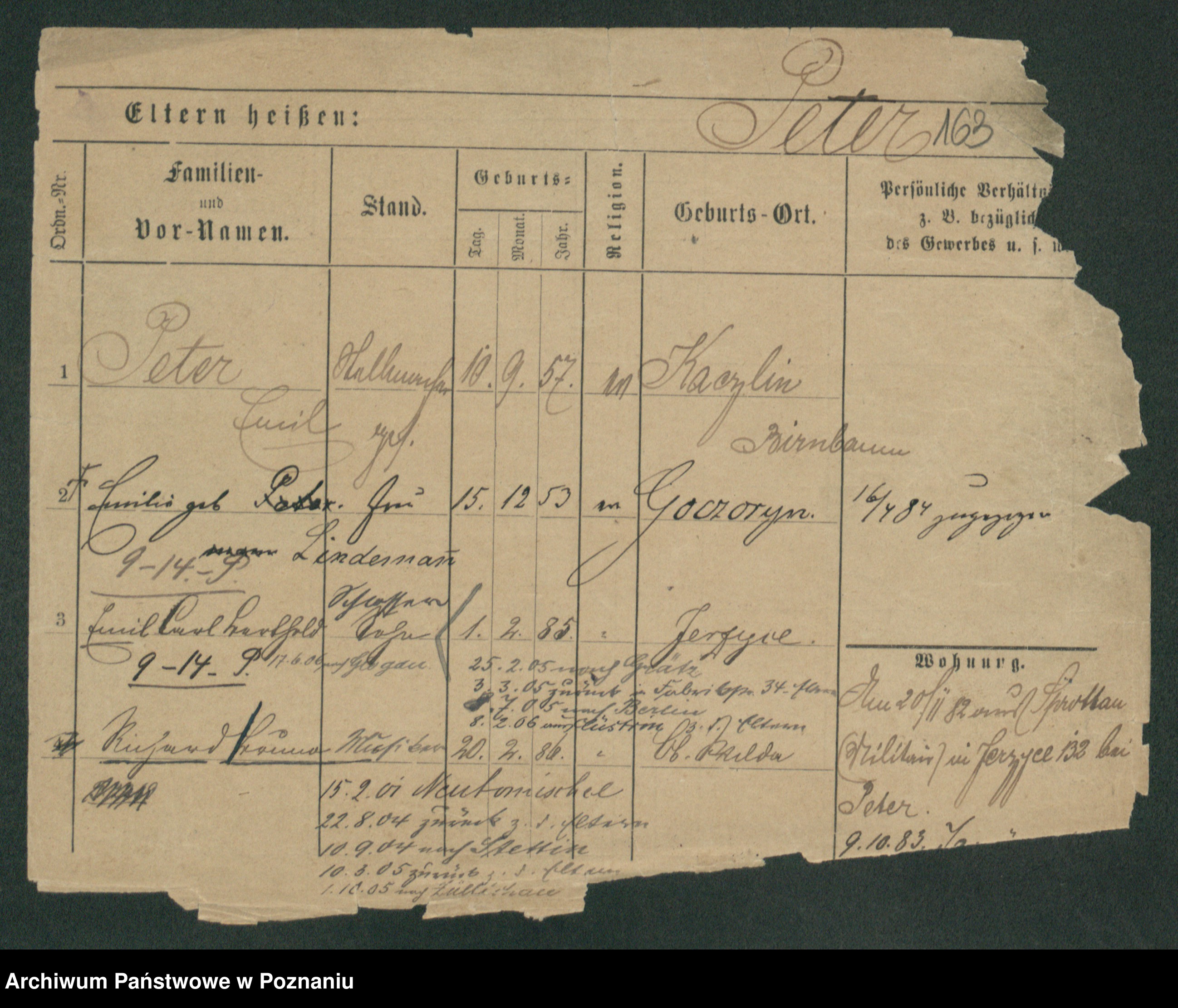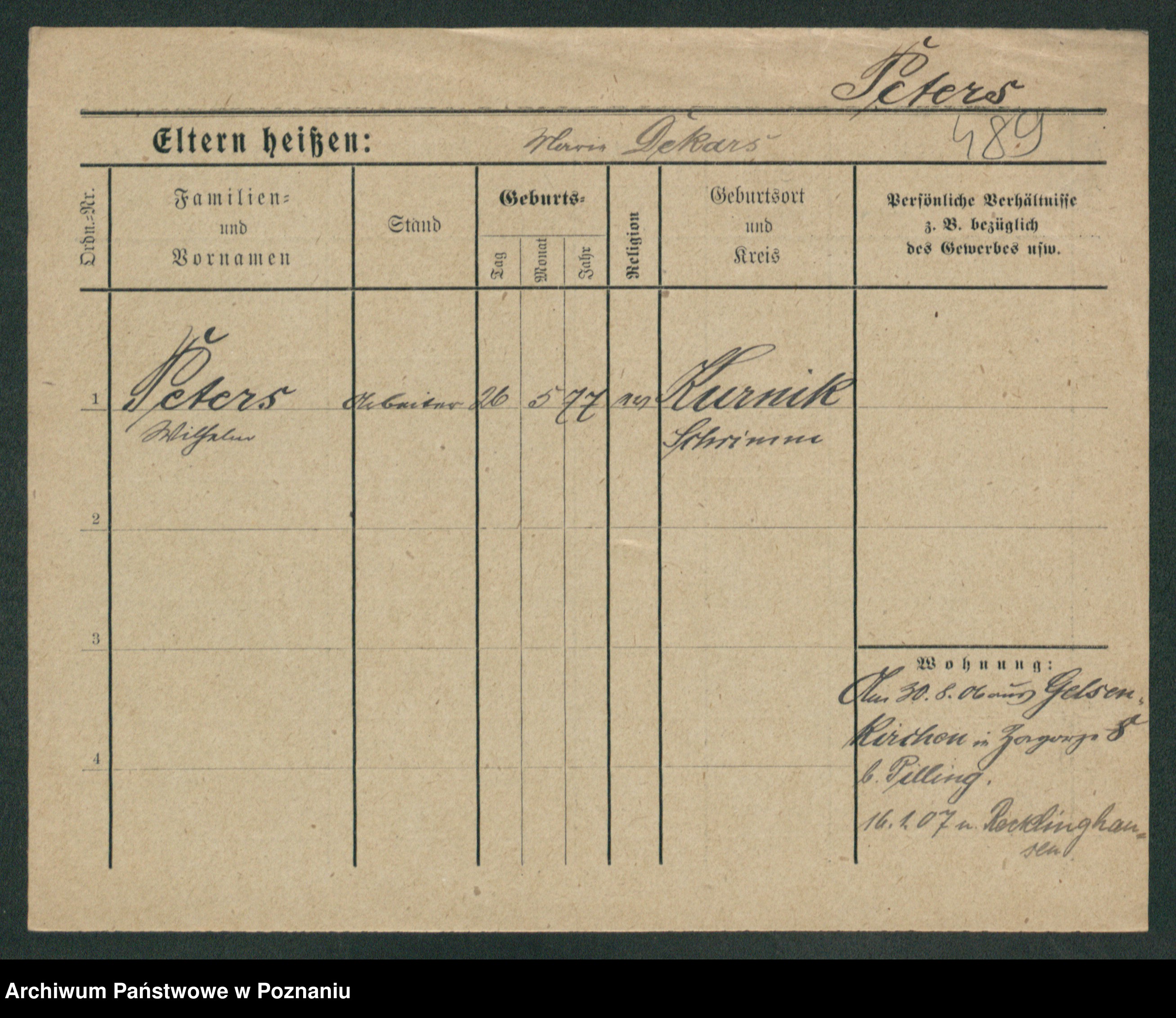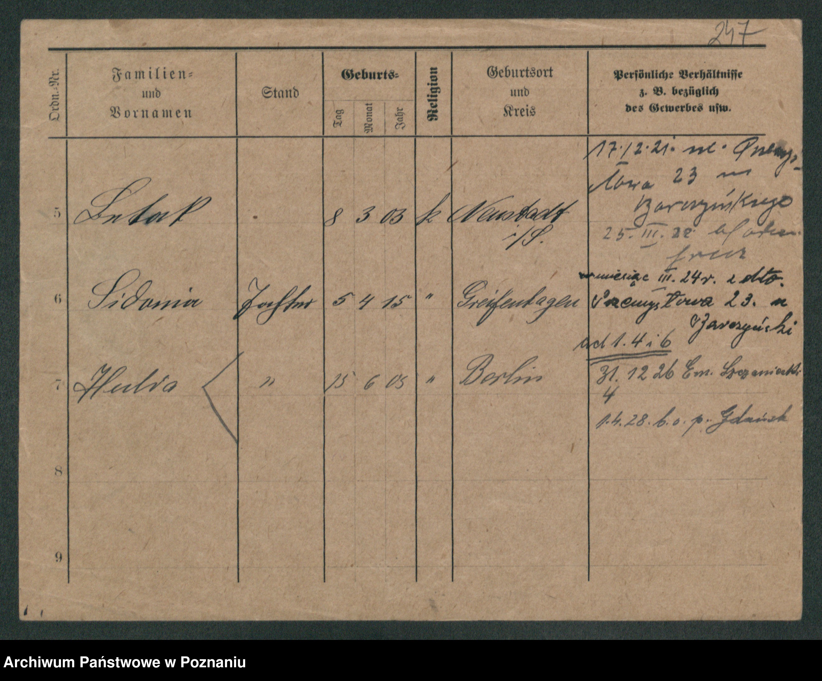 Podgląd karty osobowej dostępny jest po kliknięciu na nazwisko lub ikonkę karty. Można dokonywać powiększenia (ikony na górze) lub przechodzić między kolejnymi skanami (strzałki po bokach).