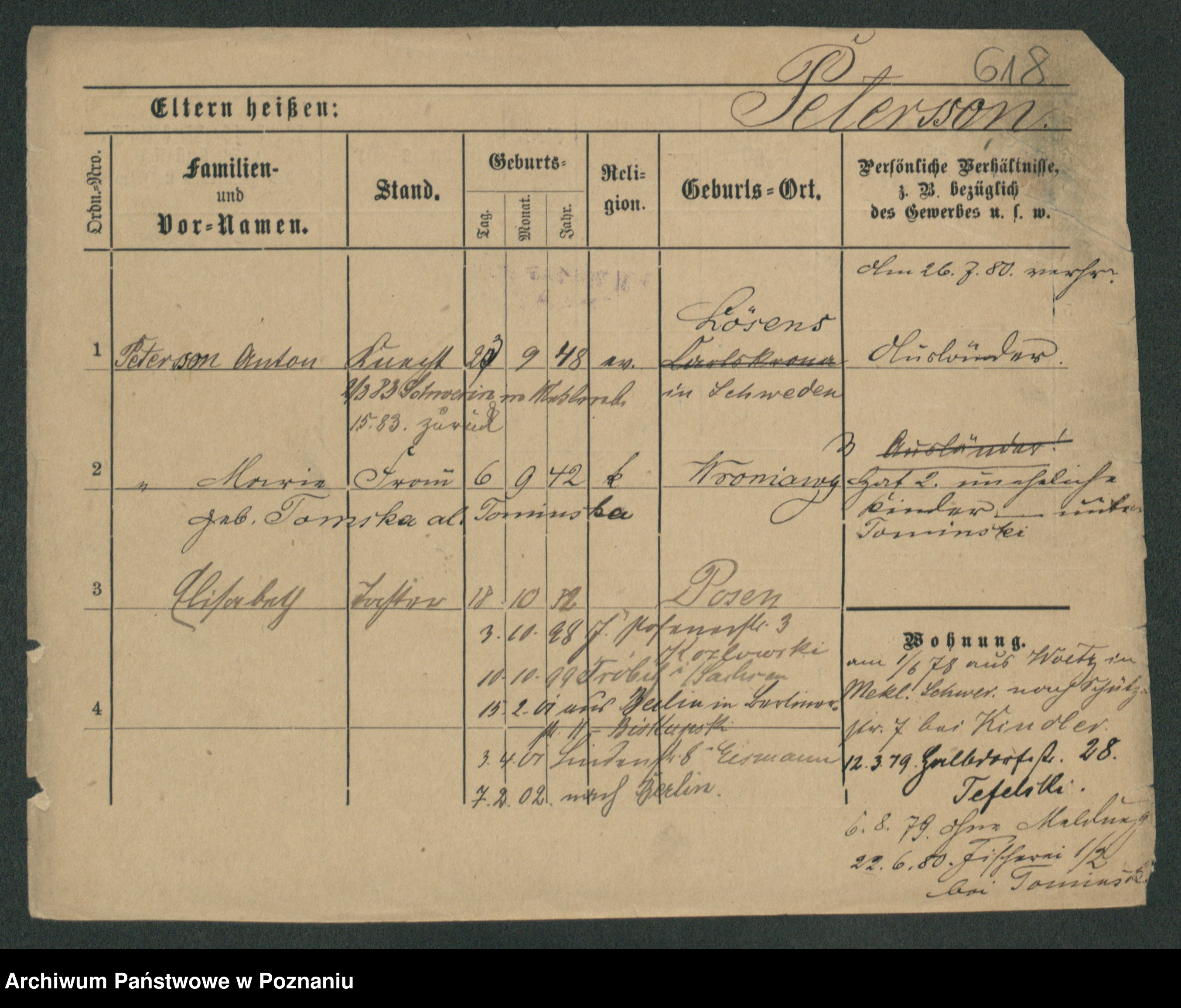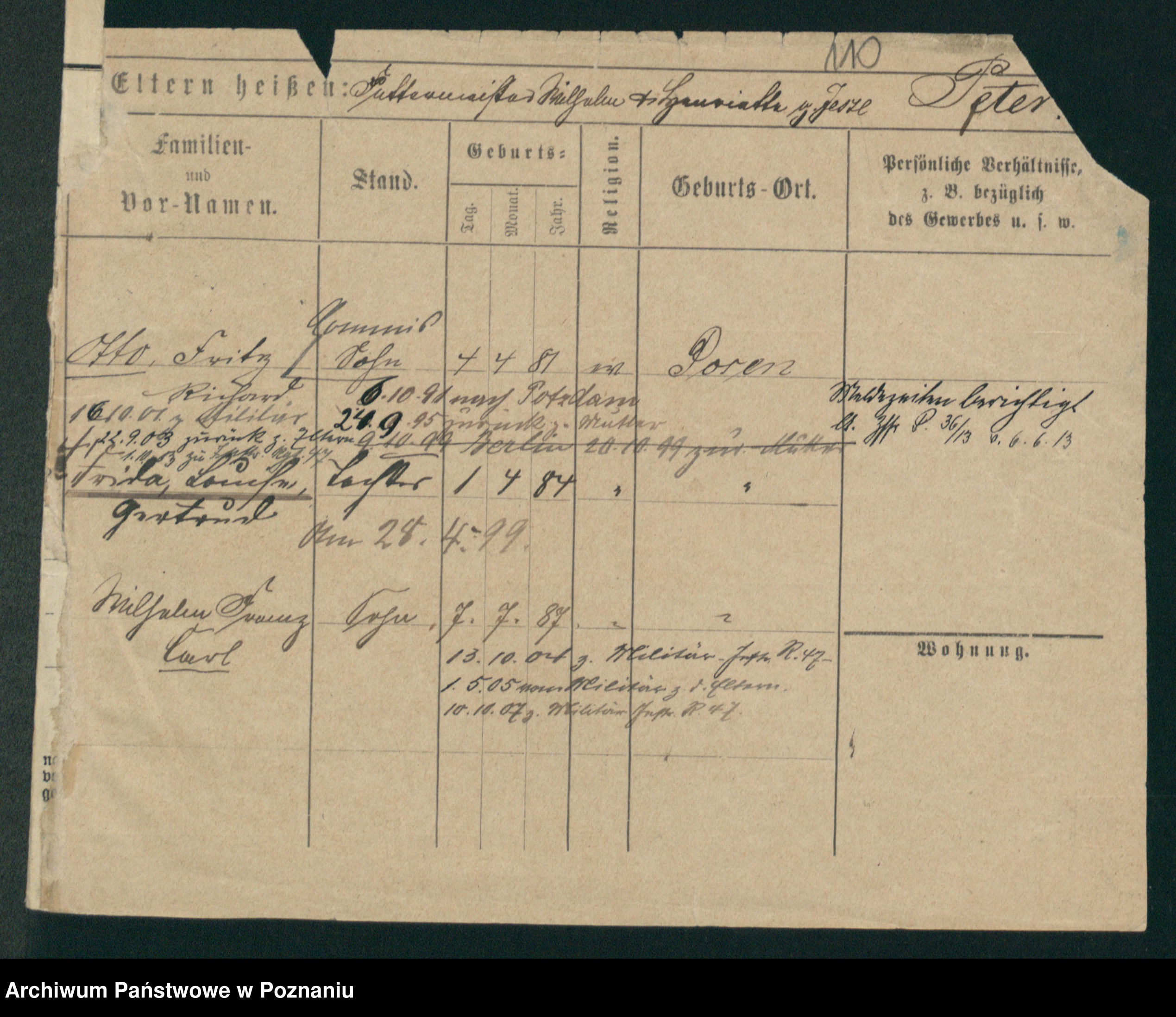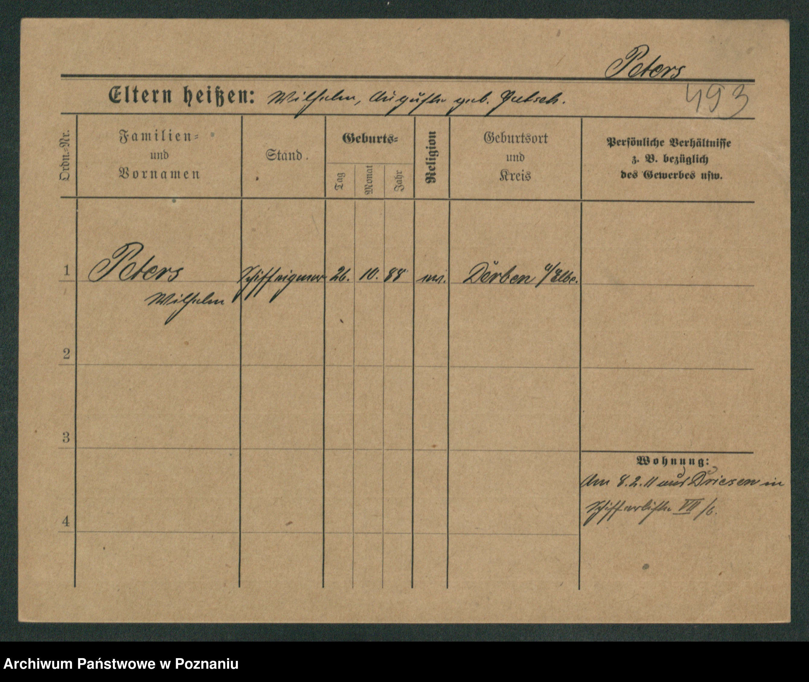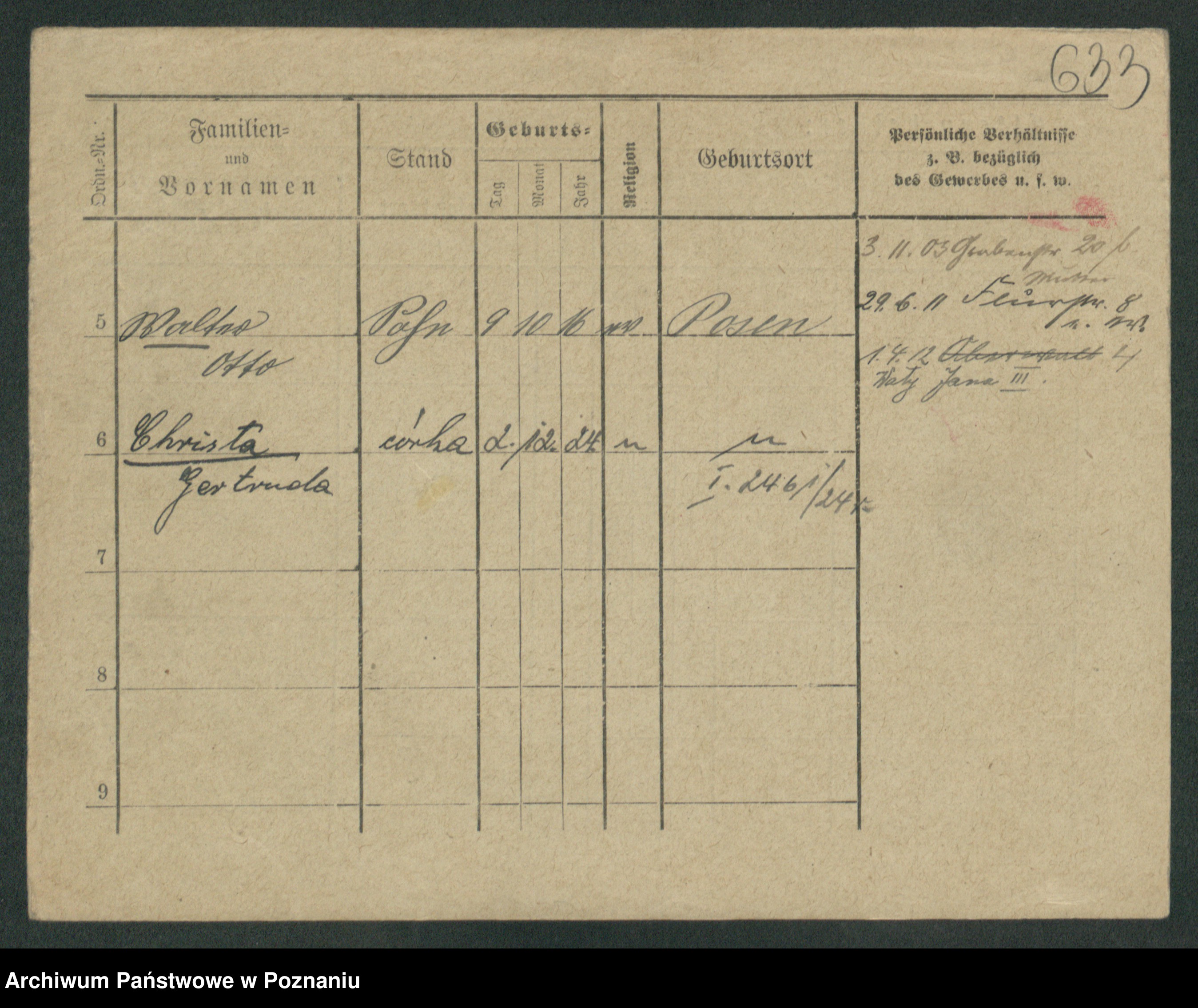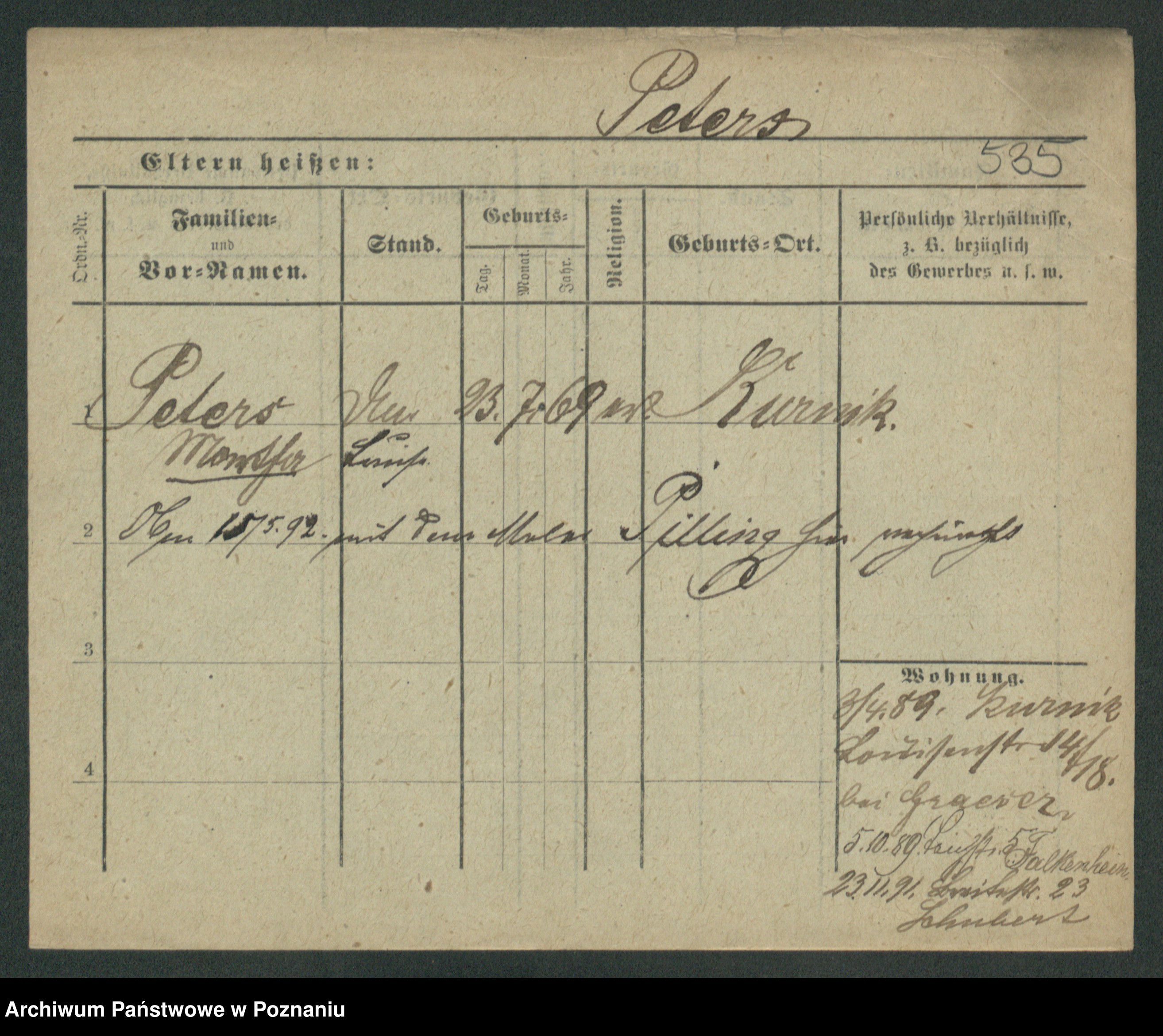 Podgląd karty osobowej dostępny jest po kliknięciu na nazwisko lub ikonkę karty. Można dokonywać powiększenia (ikony na górze) lub przechodzić między kolejnymi skanami (strzałki po bokach).