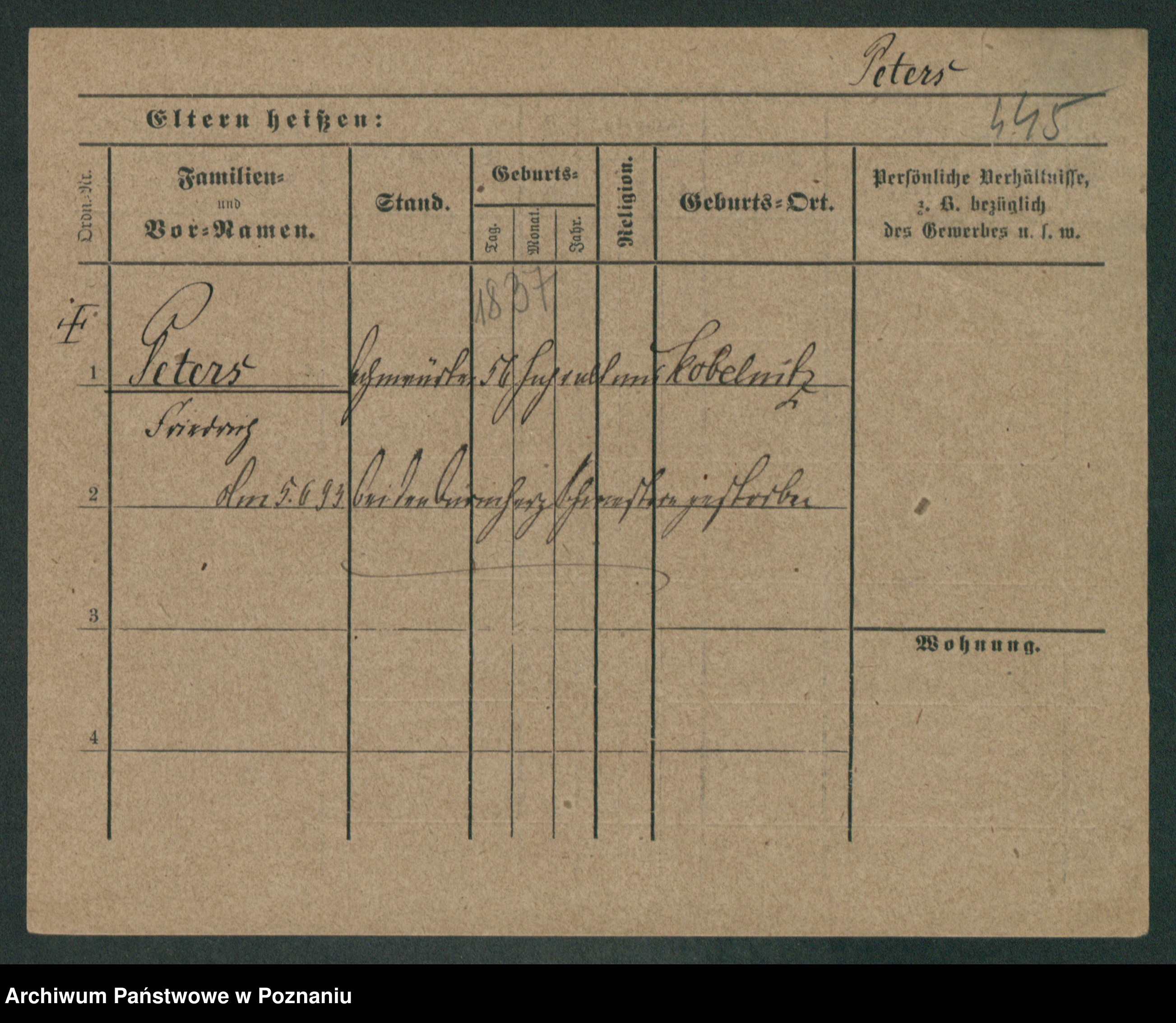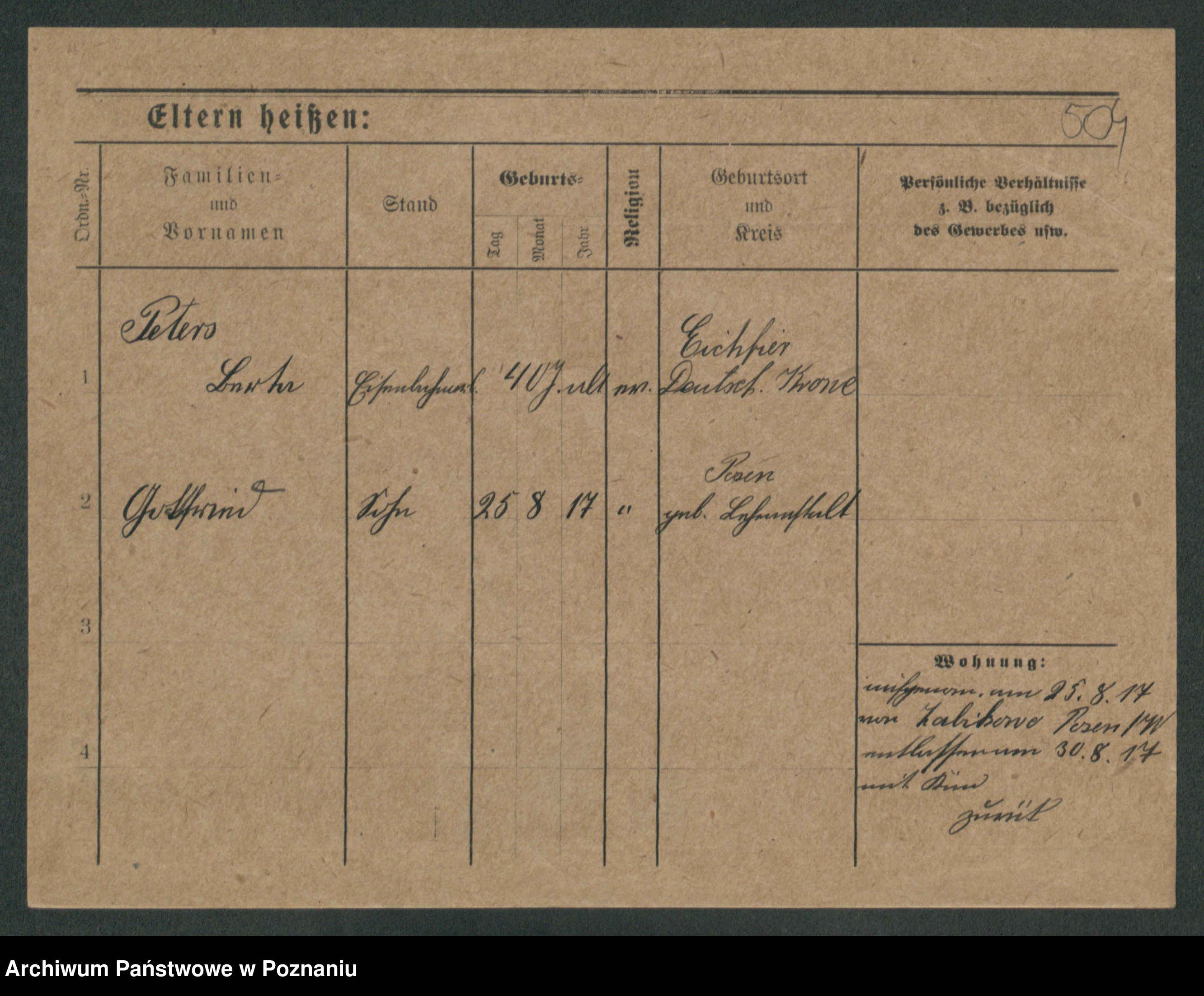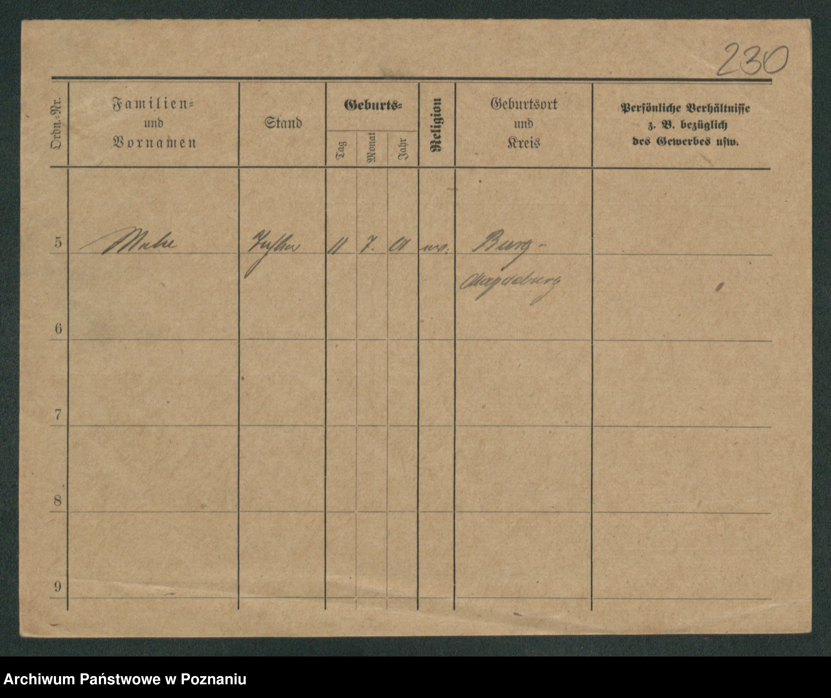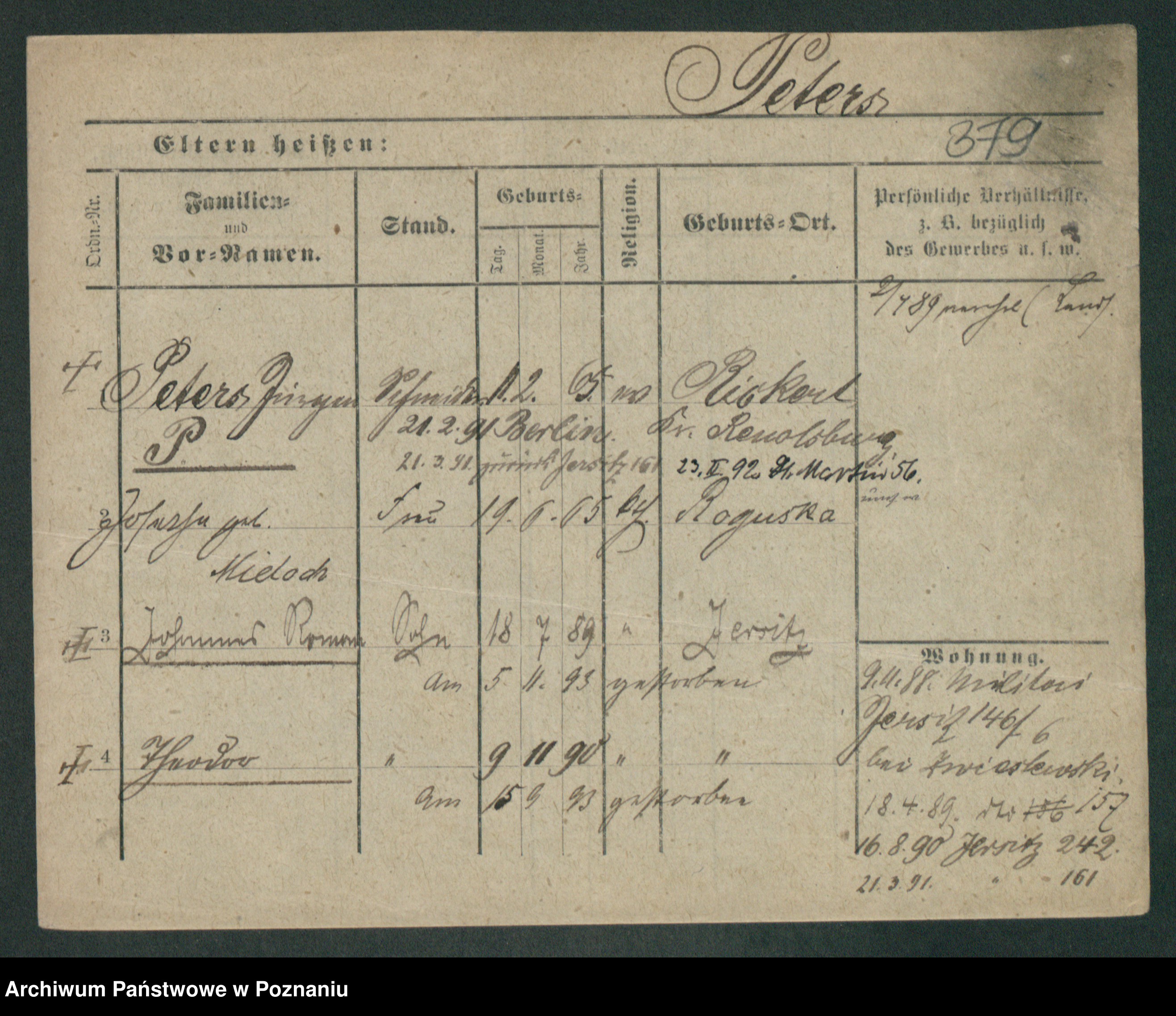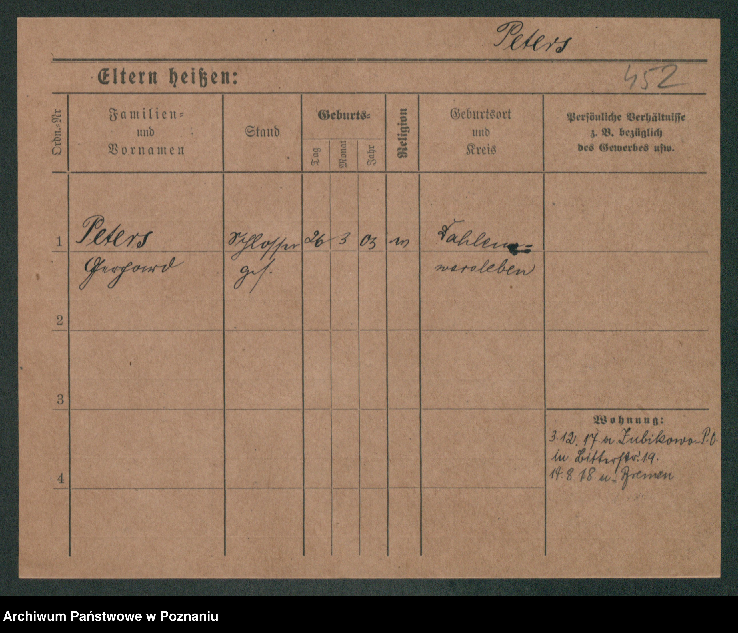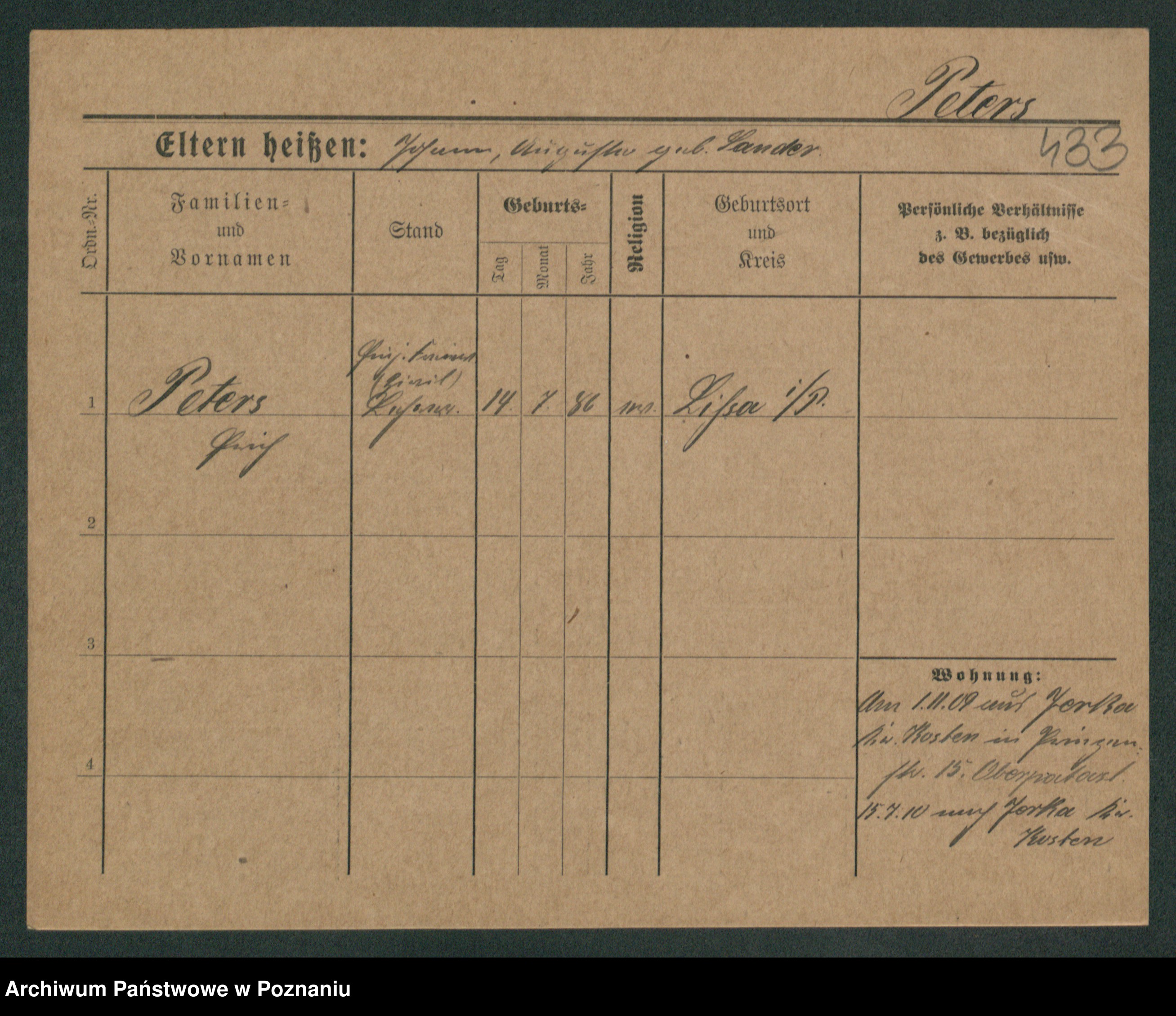 Podgląd karty osobowej dostępny jest po kliknięciu na nazwisko lub ikonkę karty. Można dokonywać powiększenia (ikony na górze) lub przechodzić między kolejnymi skanami (strzałki po bokach).
