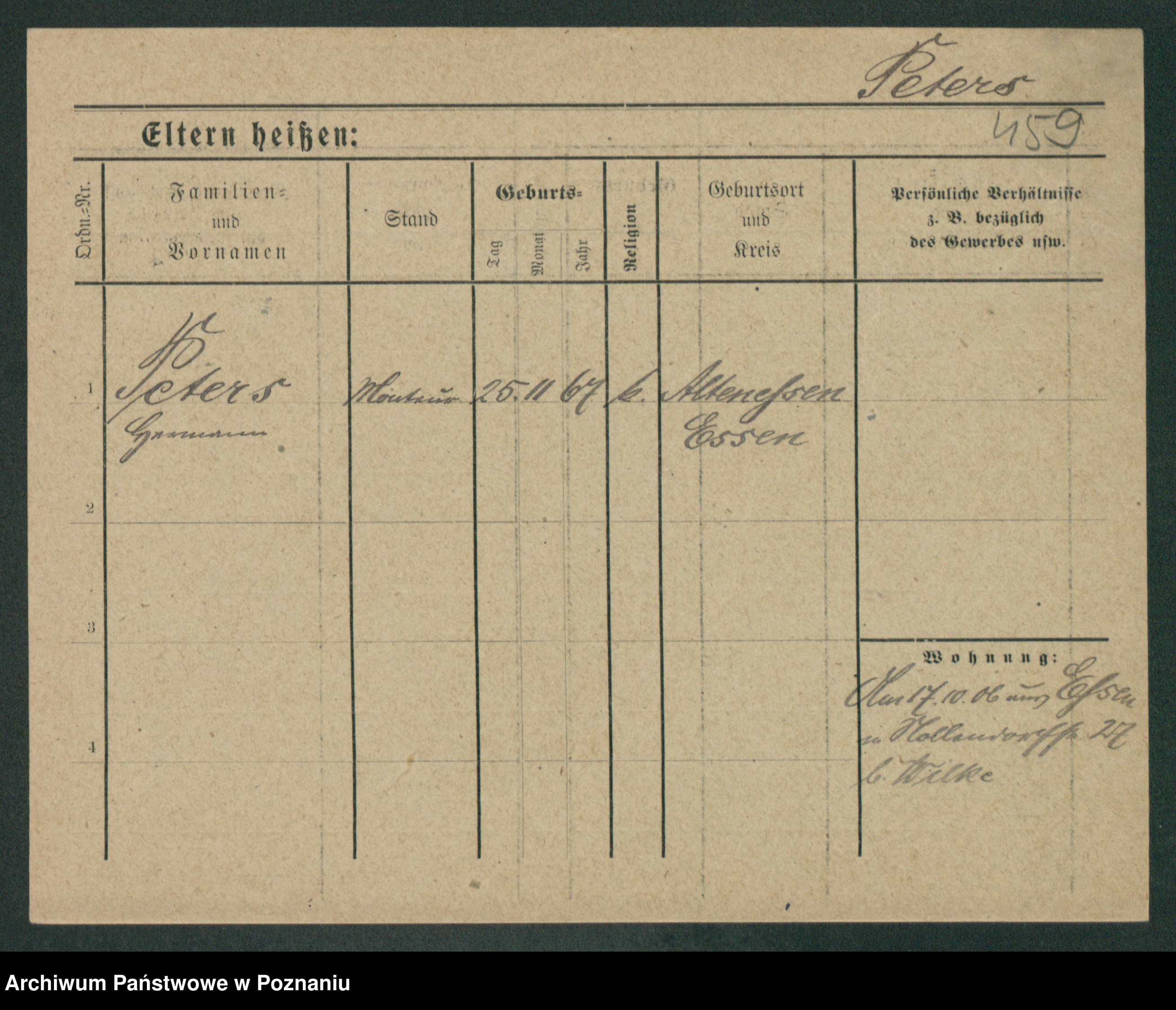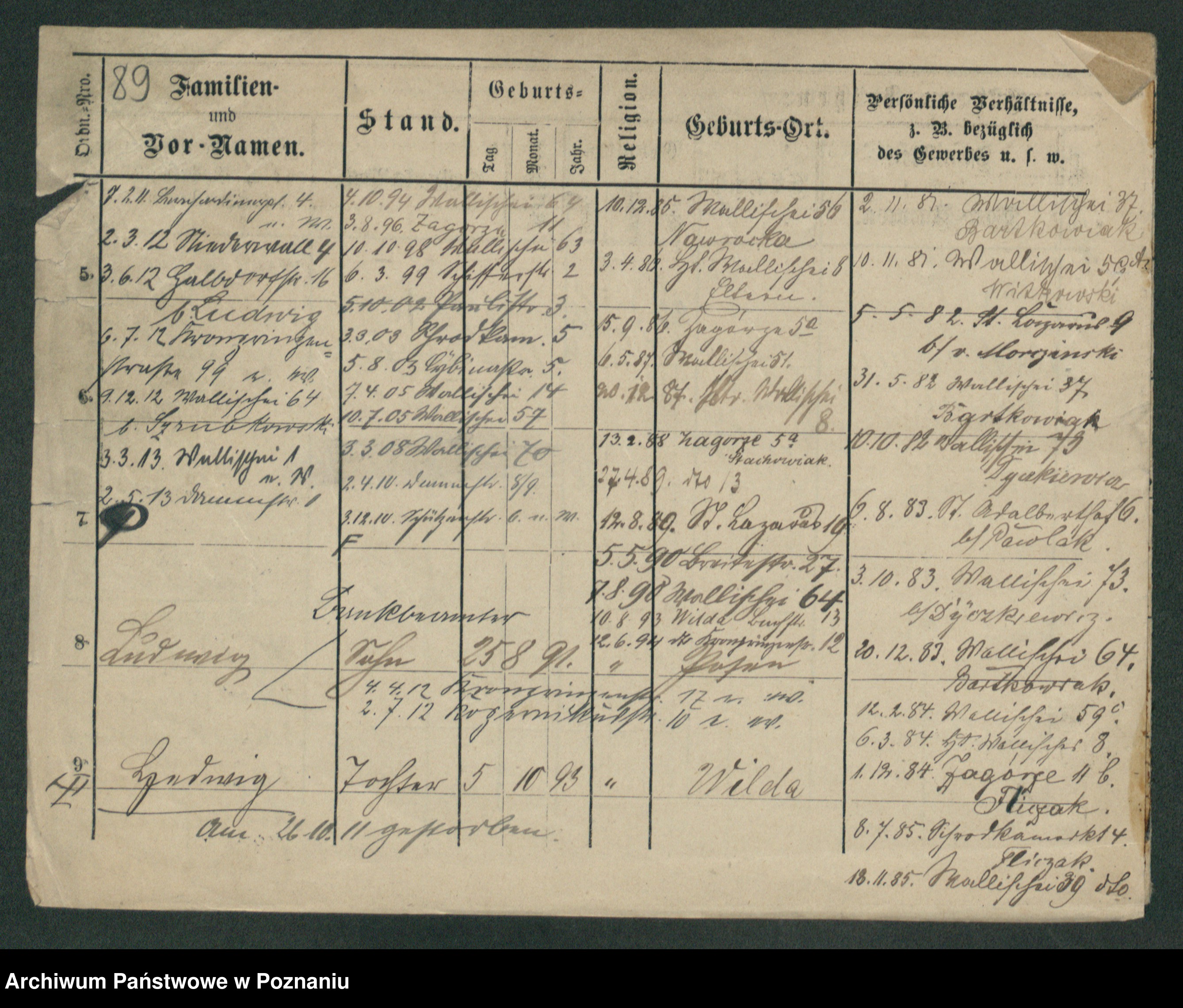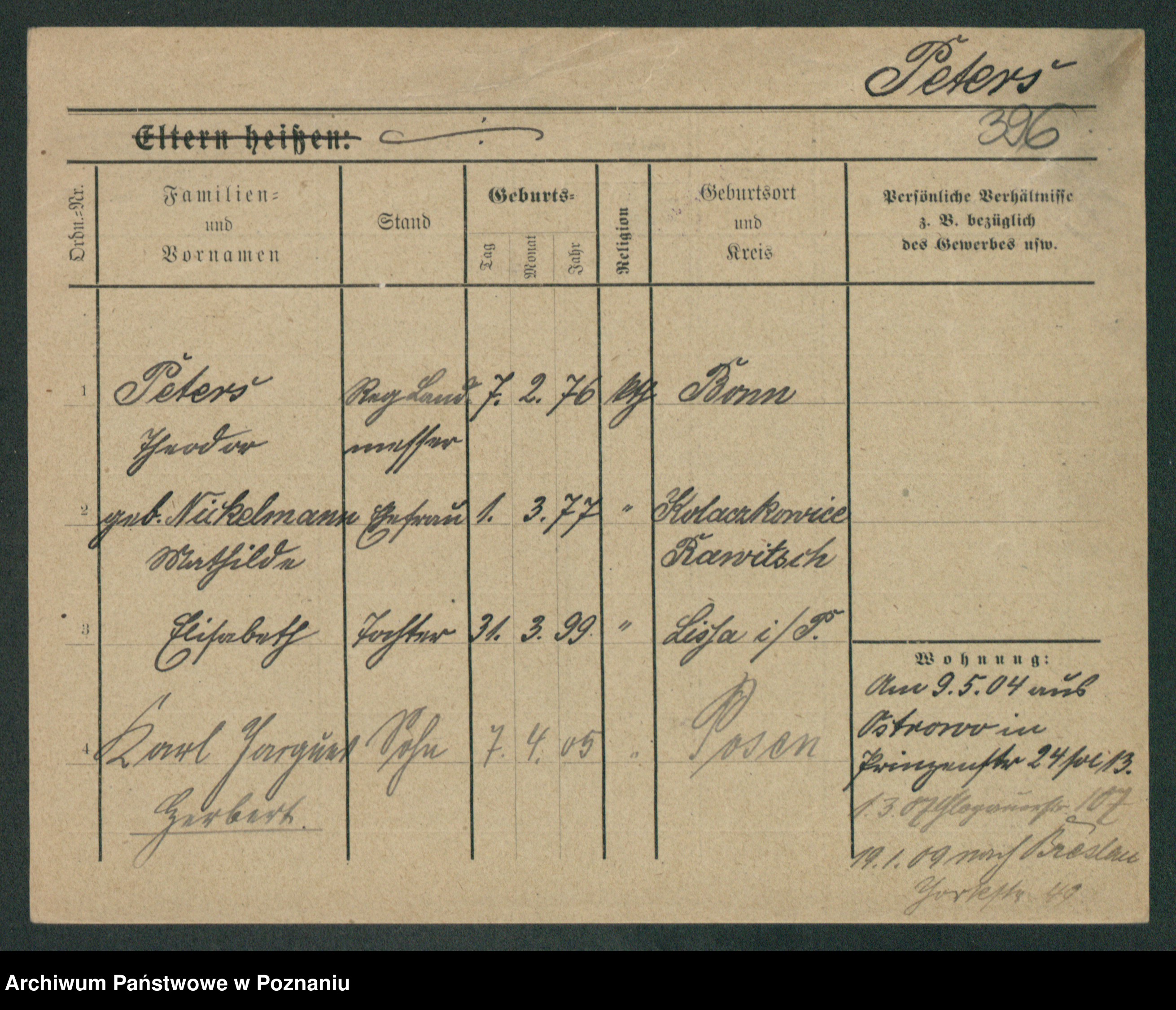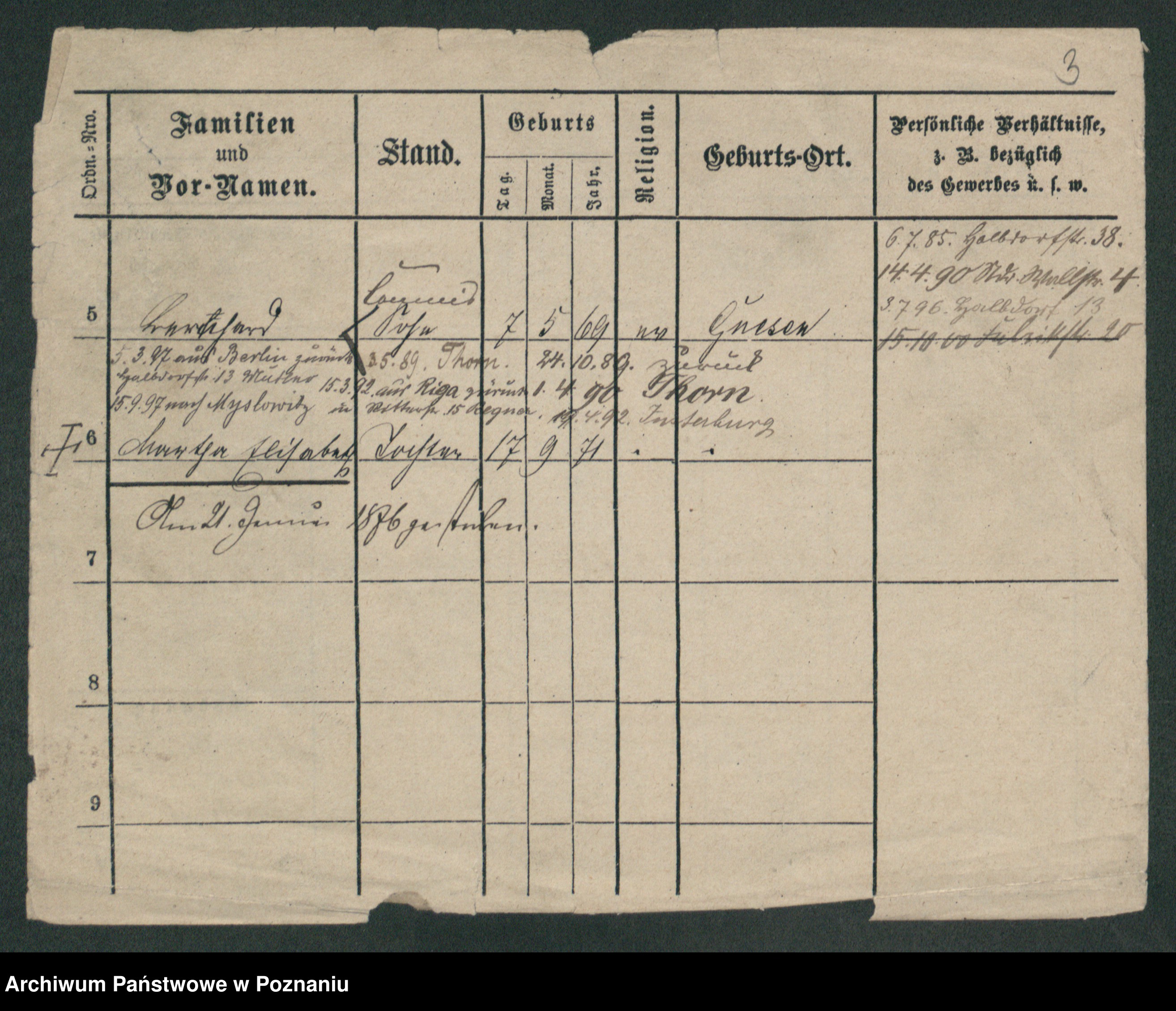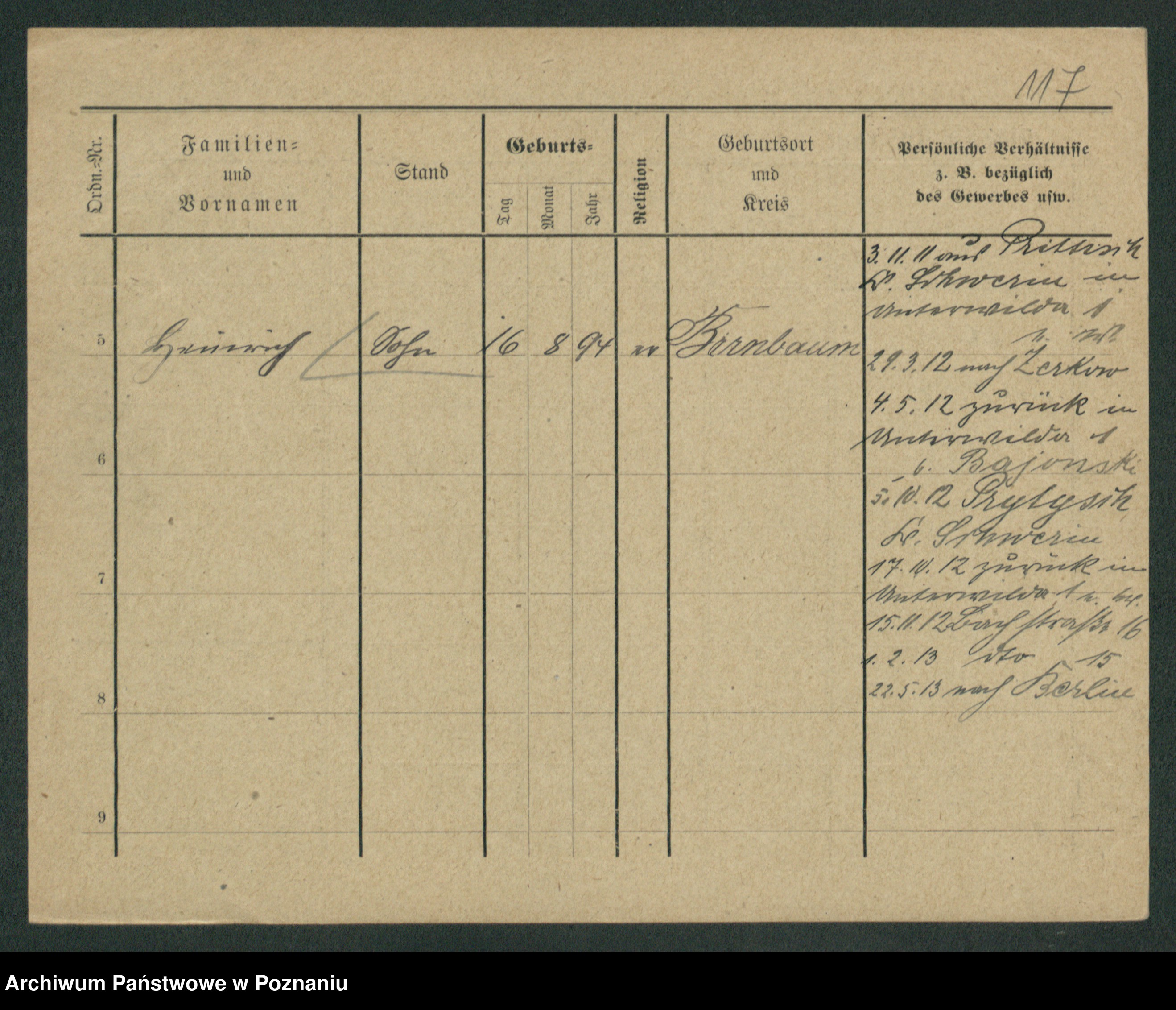 Podgląd karty osobowej dostępny jest po kliknięciu na nazwisko lub ikonkę karty. Można dokonywać powiększenia (ikony na górze) lub przechodzić między kolejnymi skanami (strzałki po bokach).