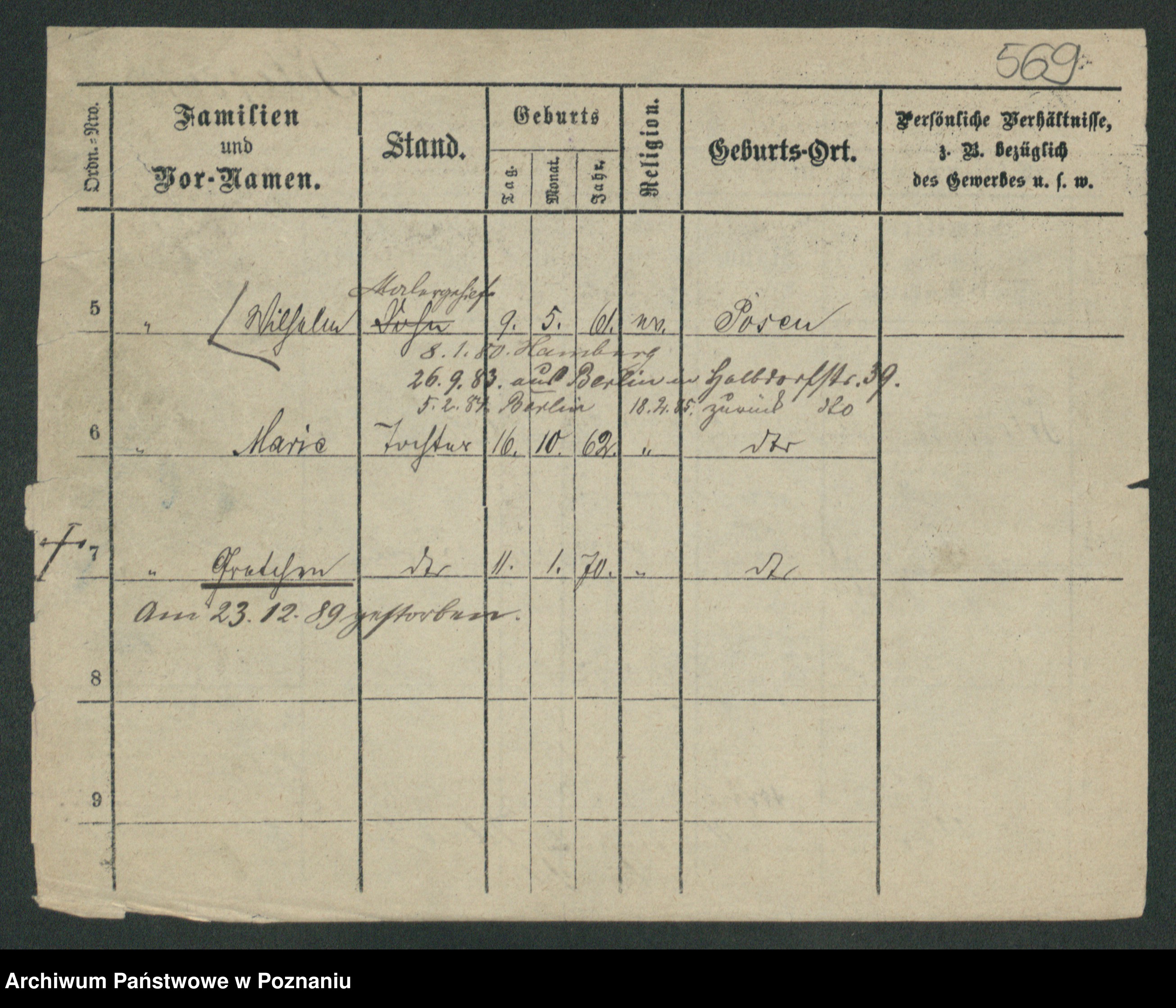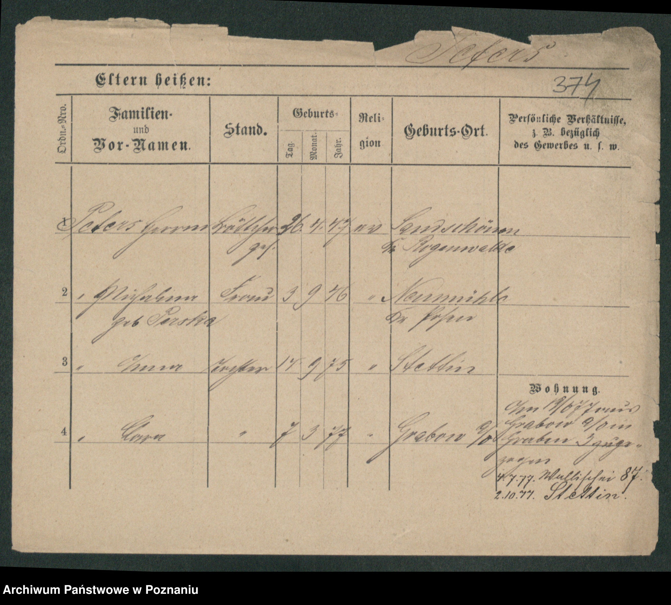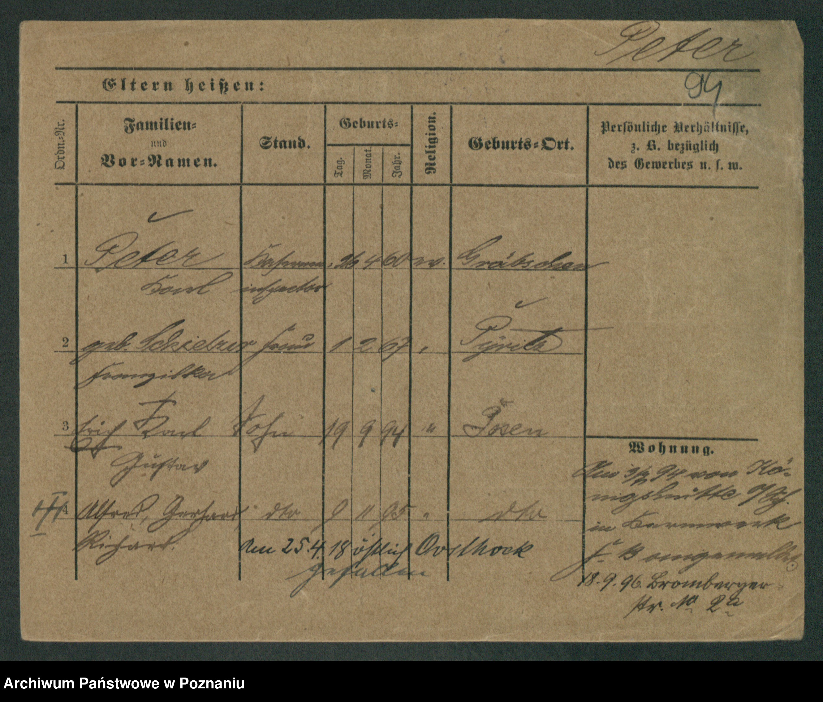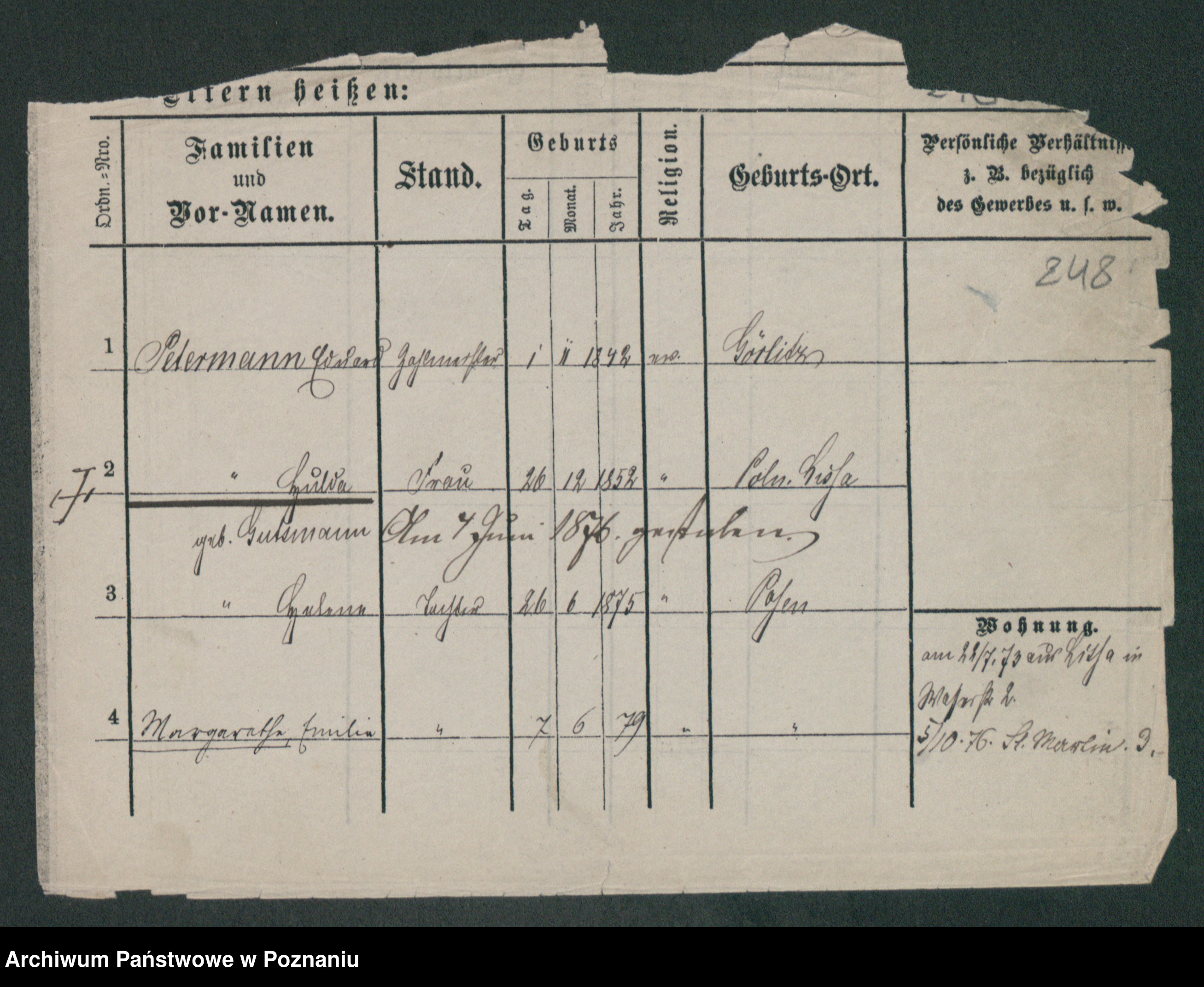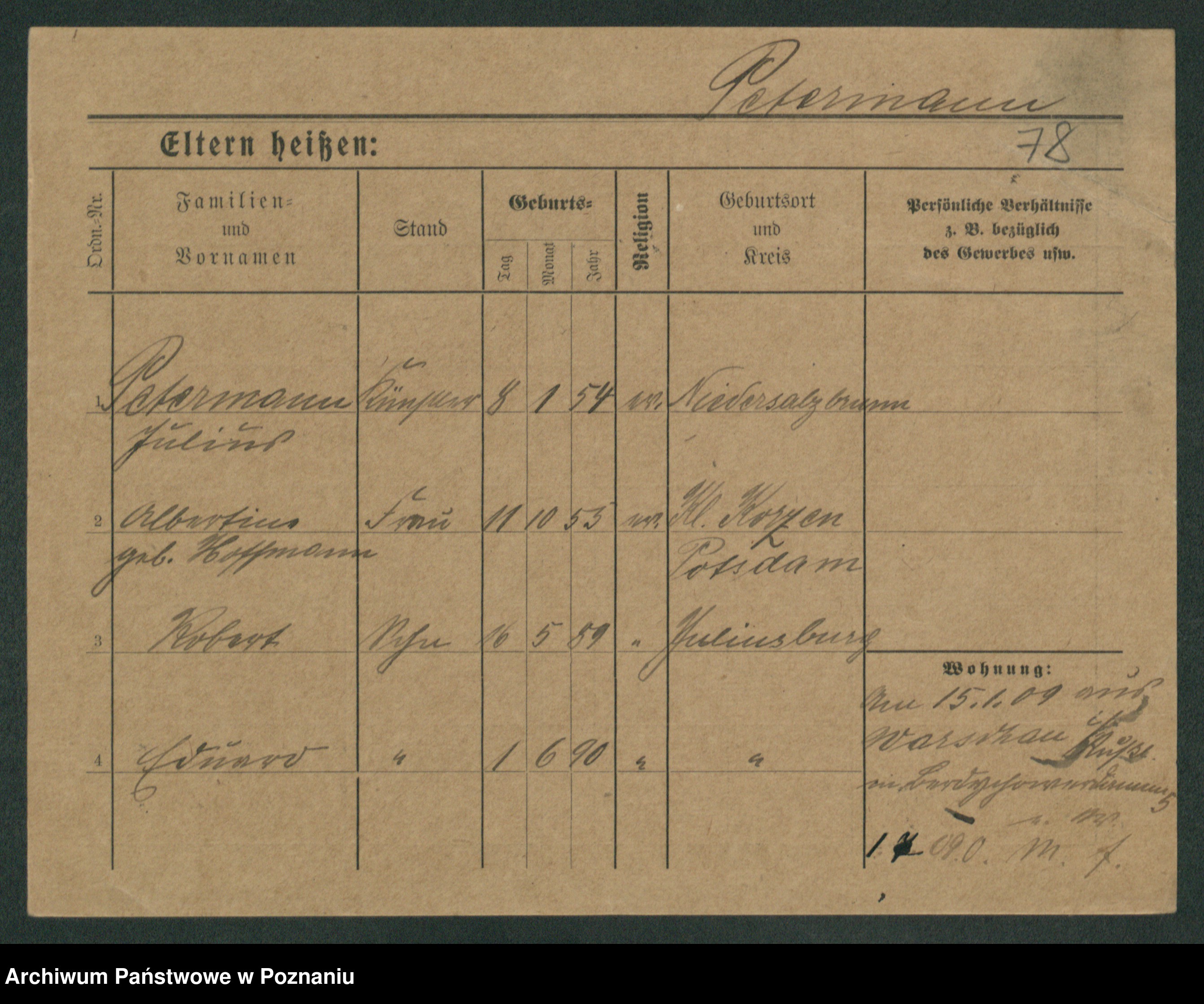 Podgląd karty osobowej dostępny jest po kliknięciu na nazwisko lub ikonkę karty. Można dokonywać powiększenia (ikony na górze) lub przechodzić między kolejnymi skanami (strzałki po bokach).