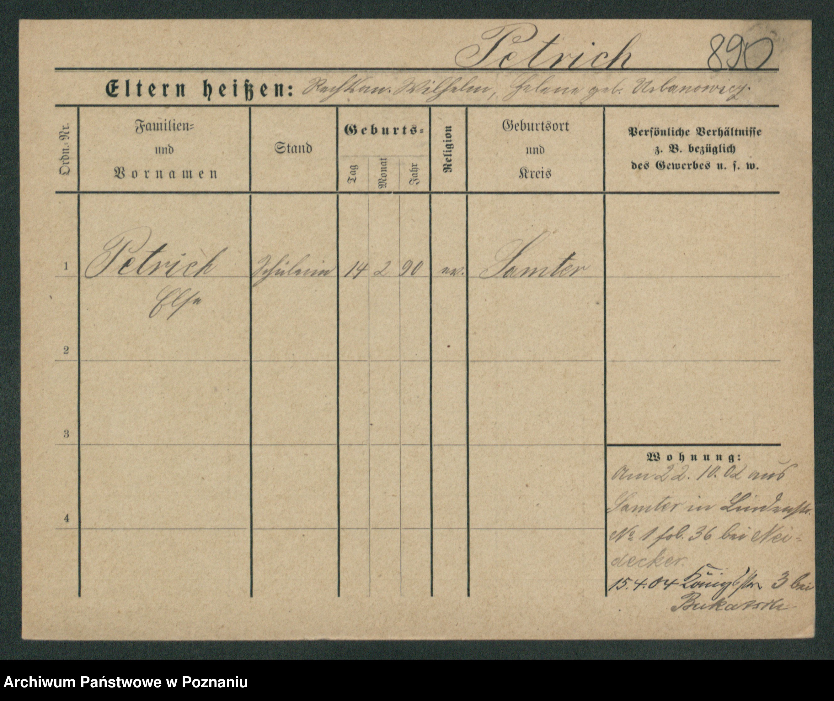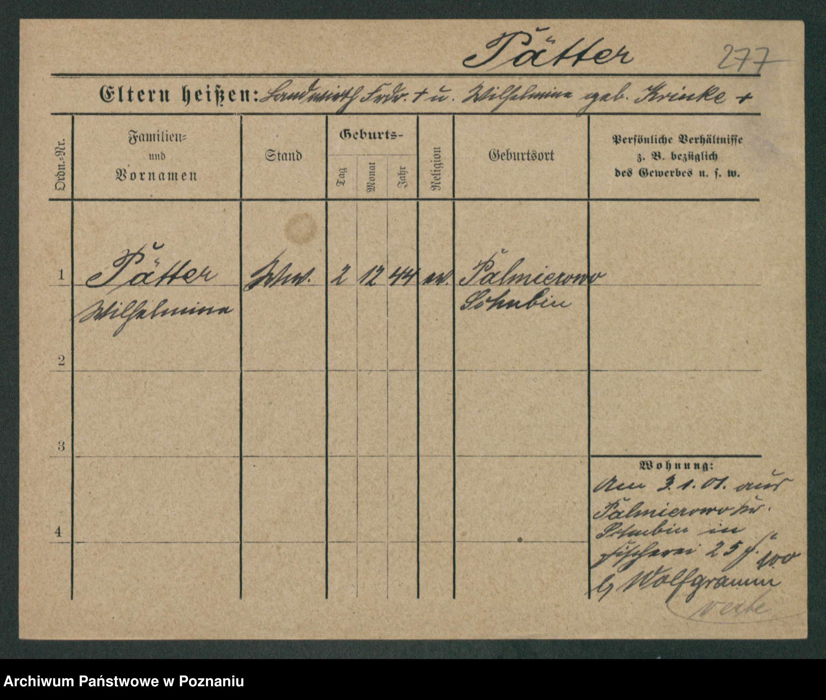Pett z.d. Riedel, Wilhelmine
