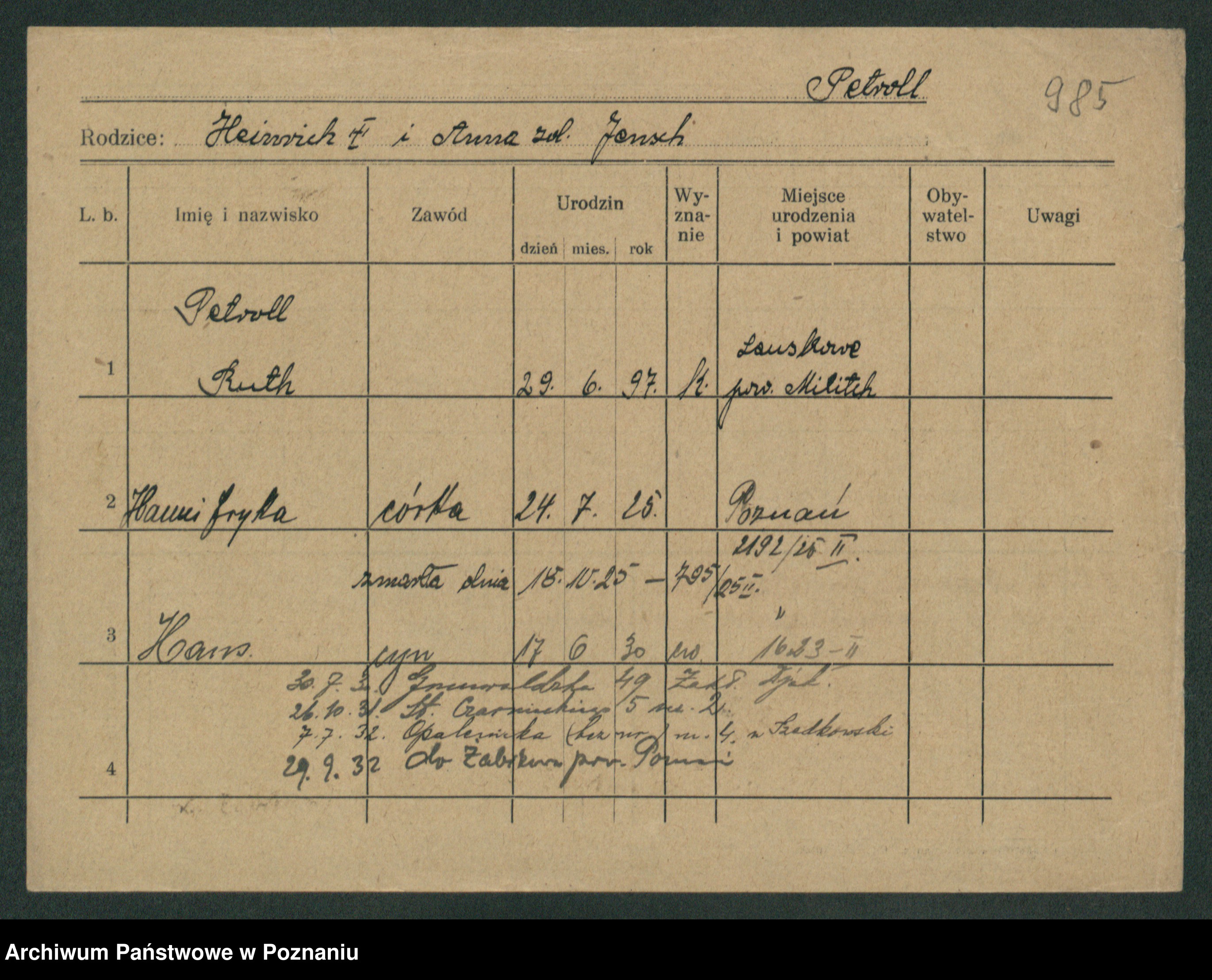 Petroll z.d. Nowak, Hulda