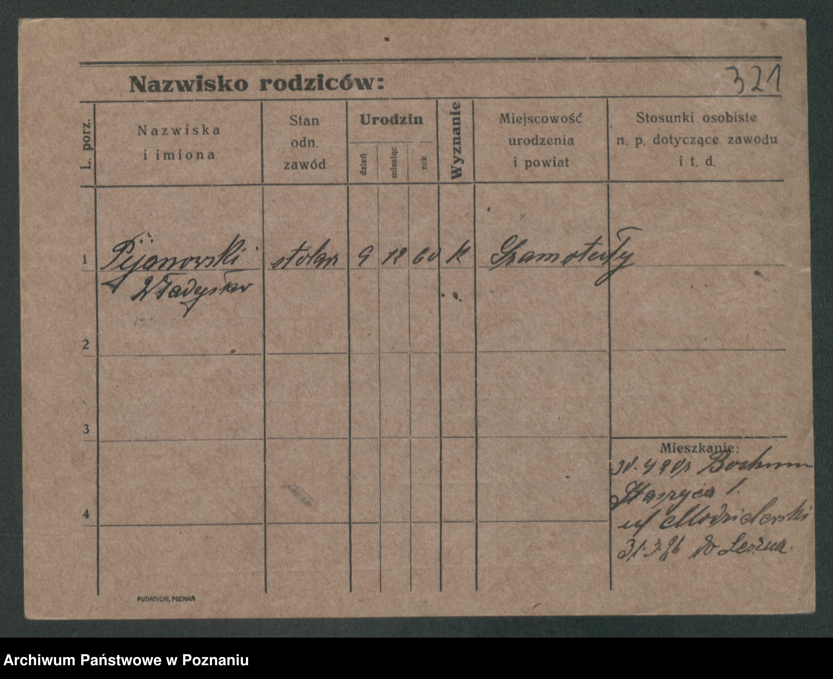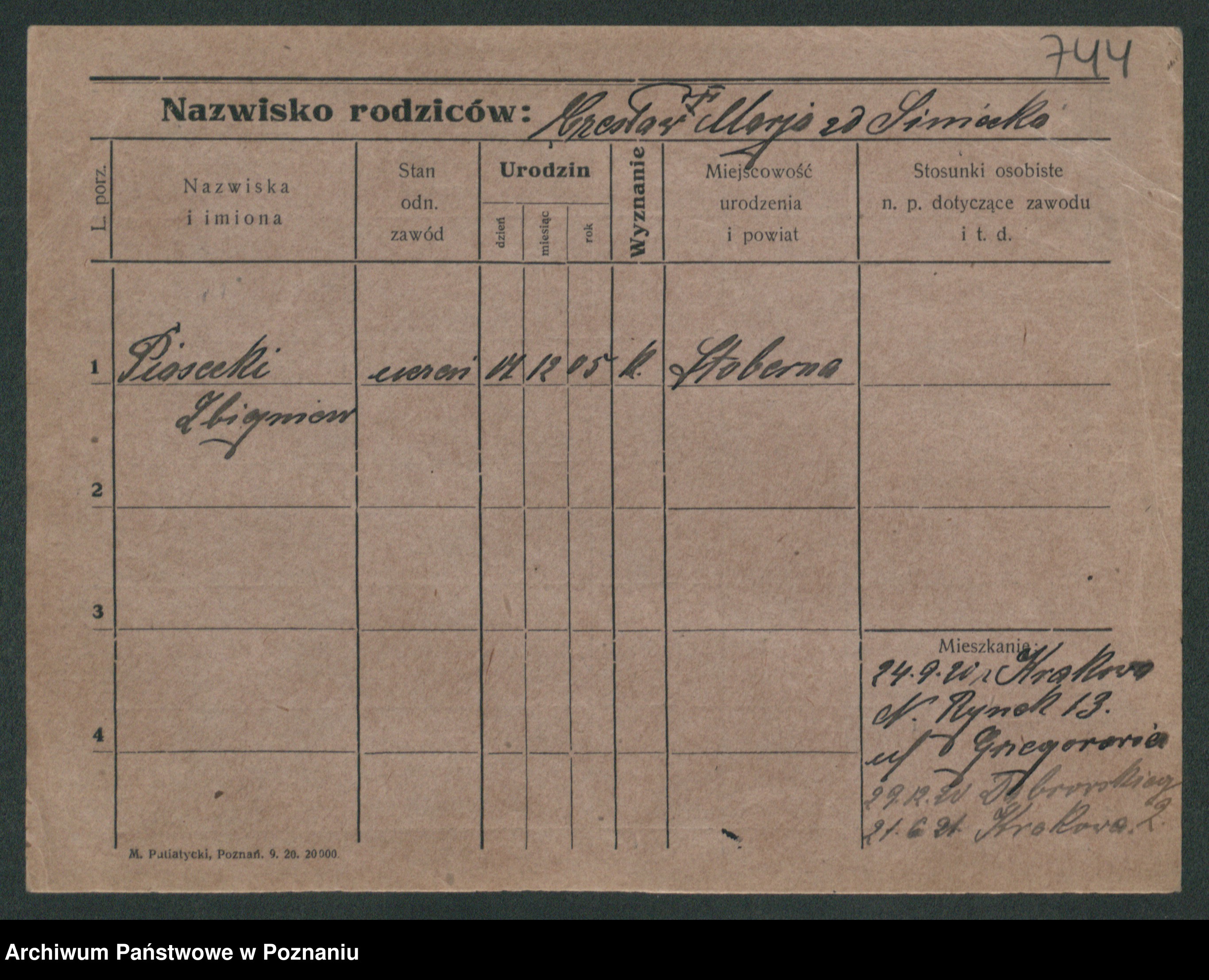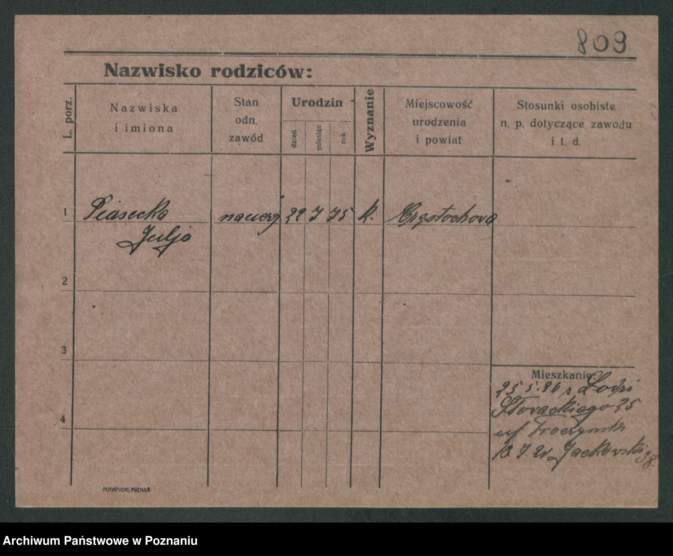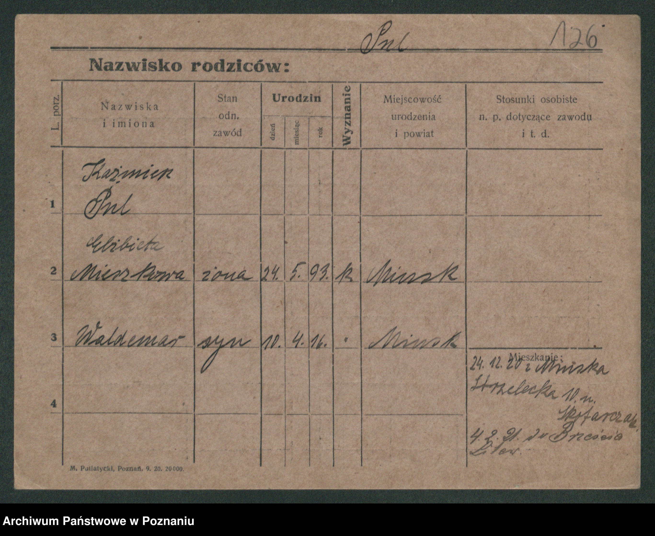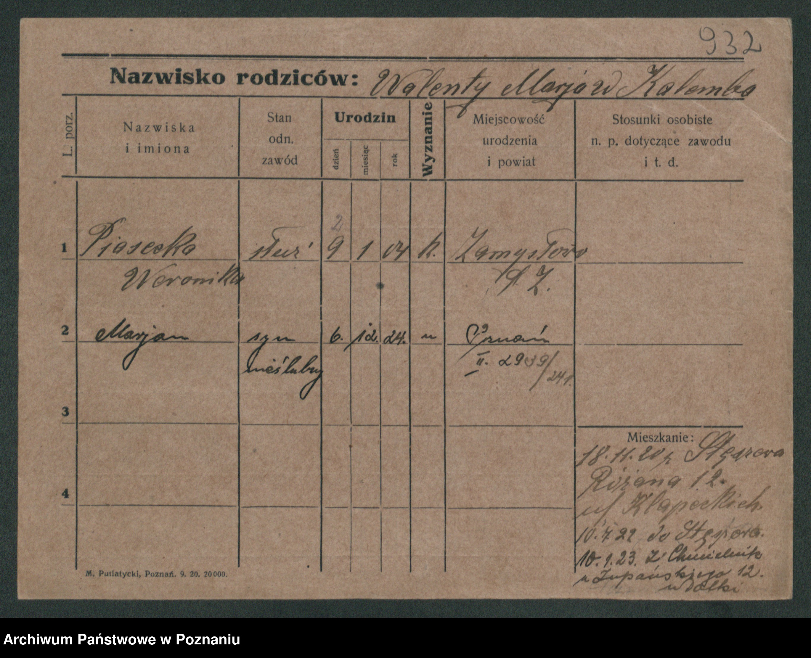Podgląd karty osobowej dostępny jest po kliknięciu na nazwisko lub ikonkę karty. Można dokonywać powiększenia (ikony na górze) lub przechodzić między kolejnymi skanami (strzałki po bokach).