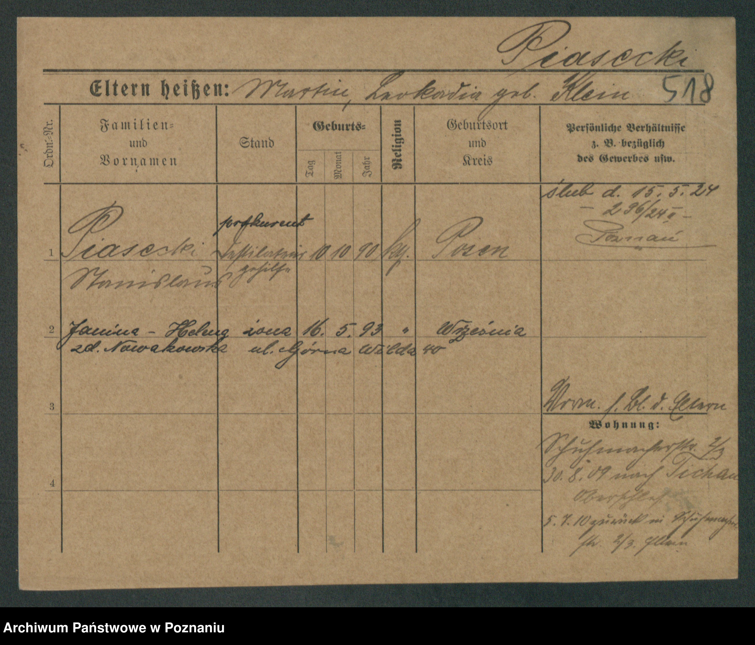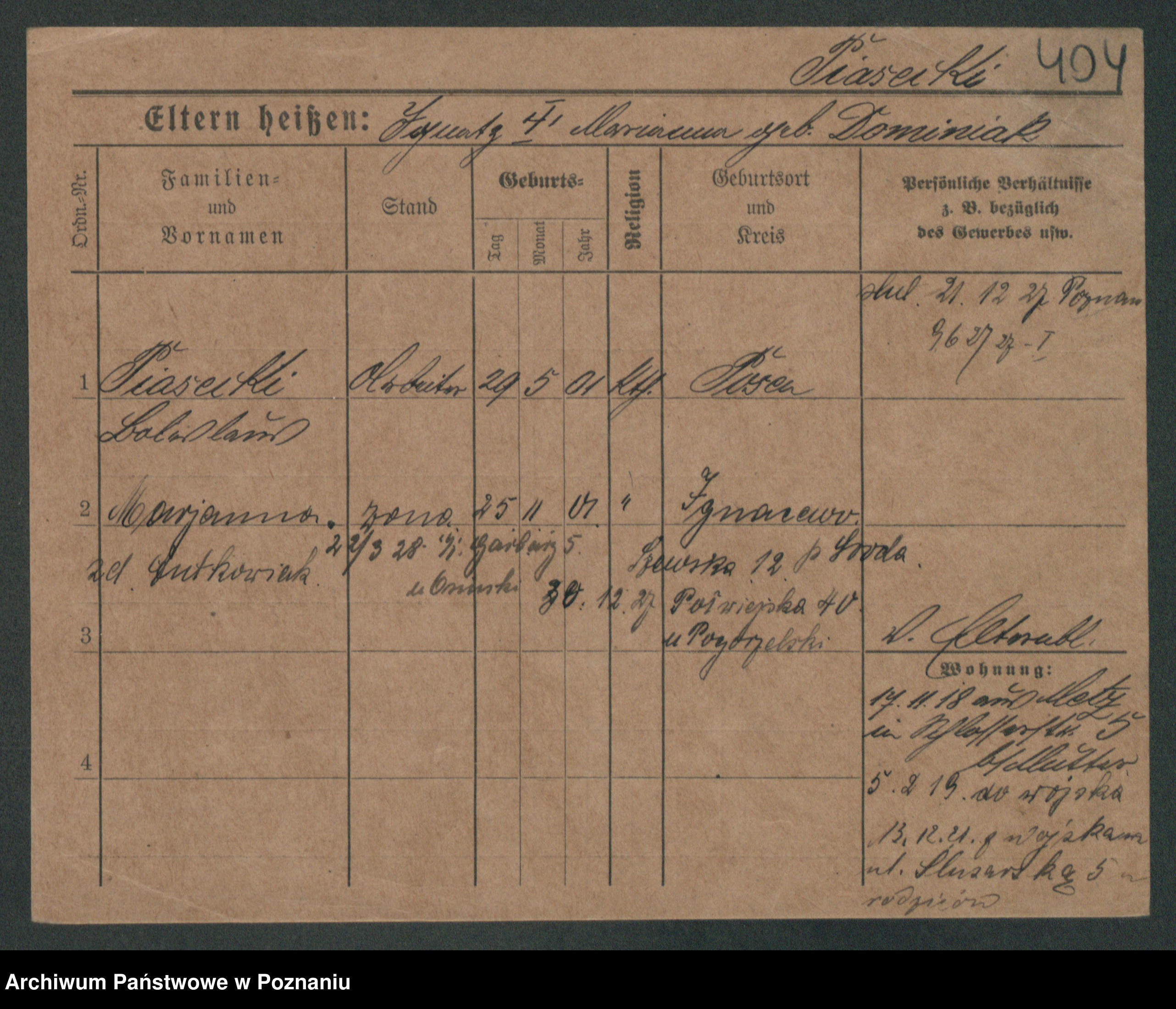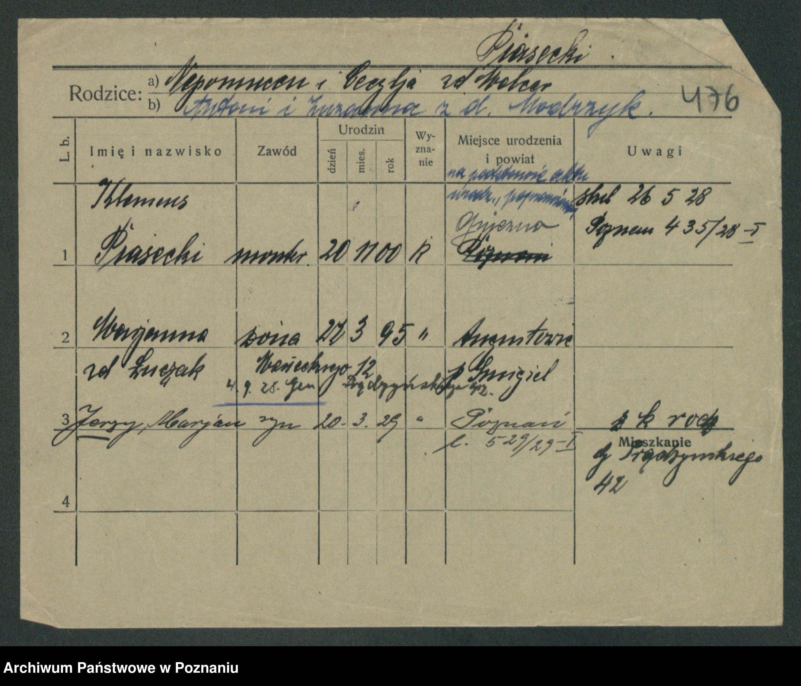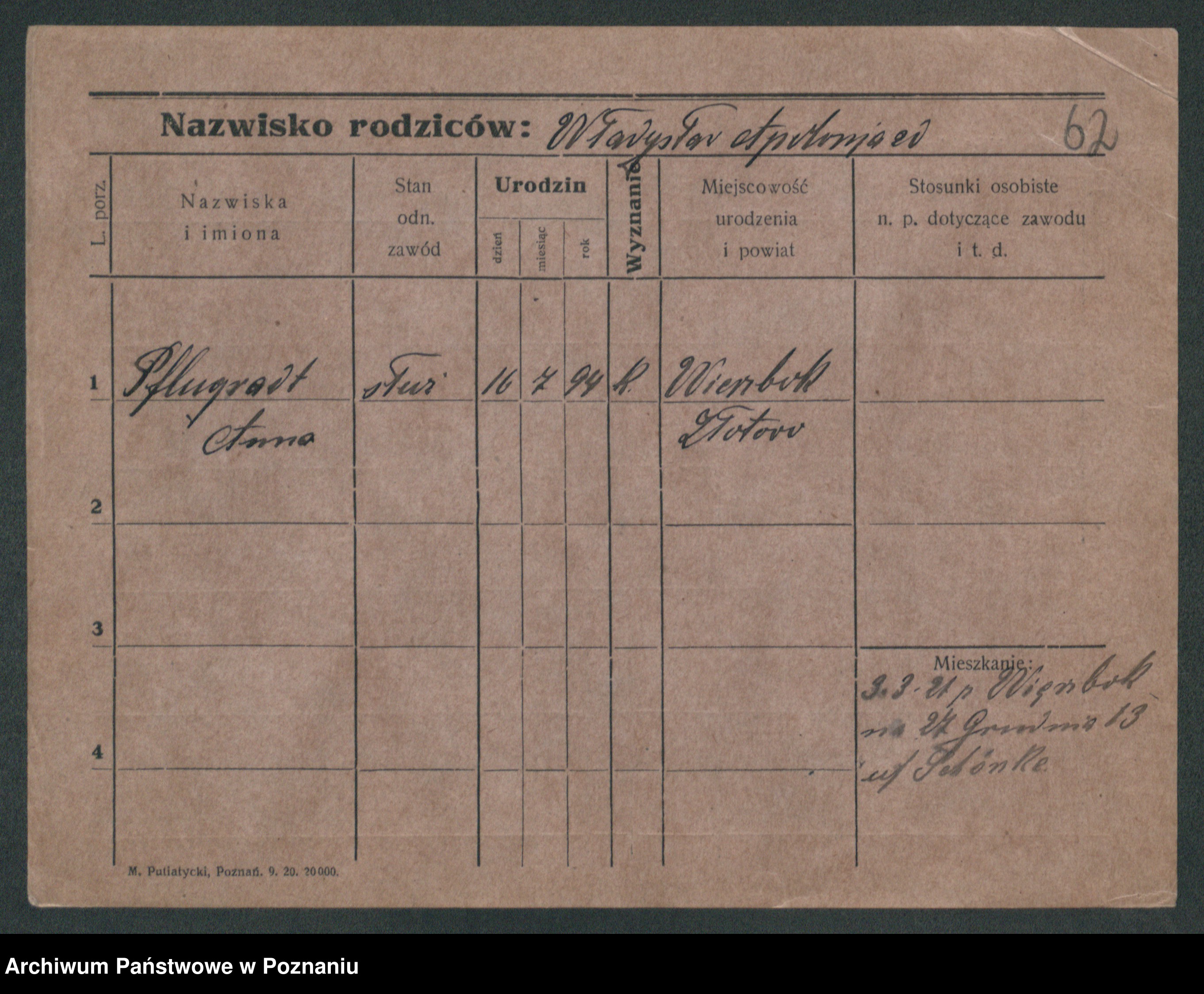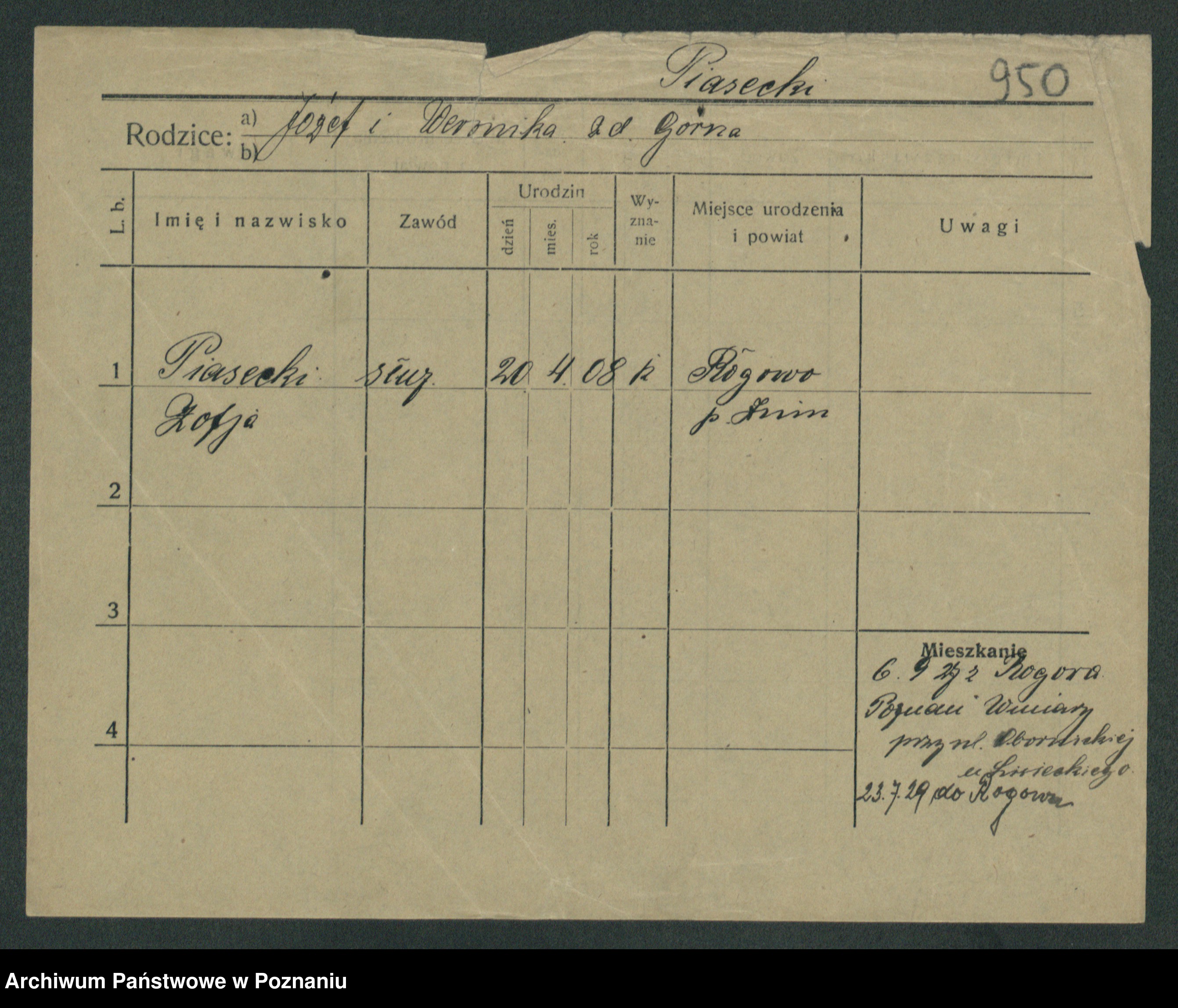 Podgląd karty osobowej dostępny jest po kliknięciu na nazwisko lub ikonkę karty. Można dokonywać powiększenia (ikony na górze) lub przechodzić między kolejnymi skanami (strzałki po bokach).