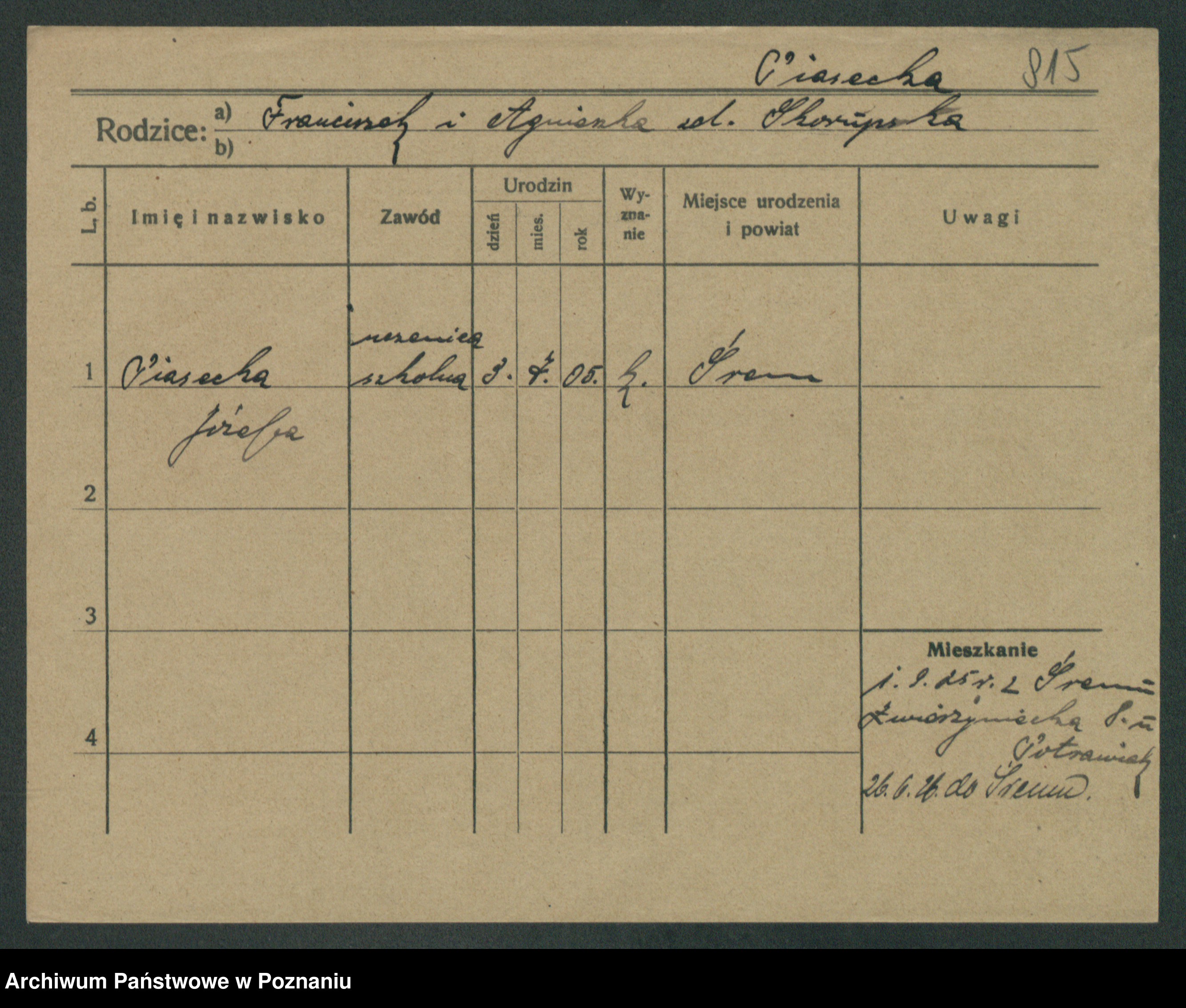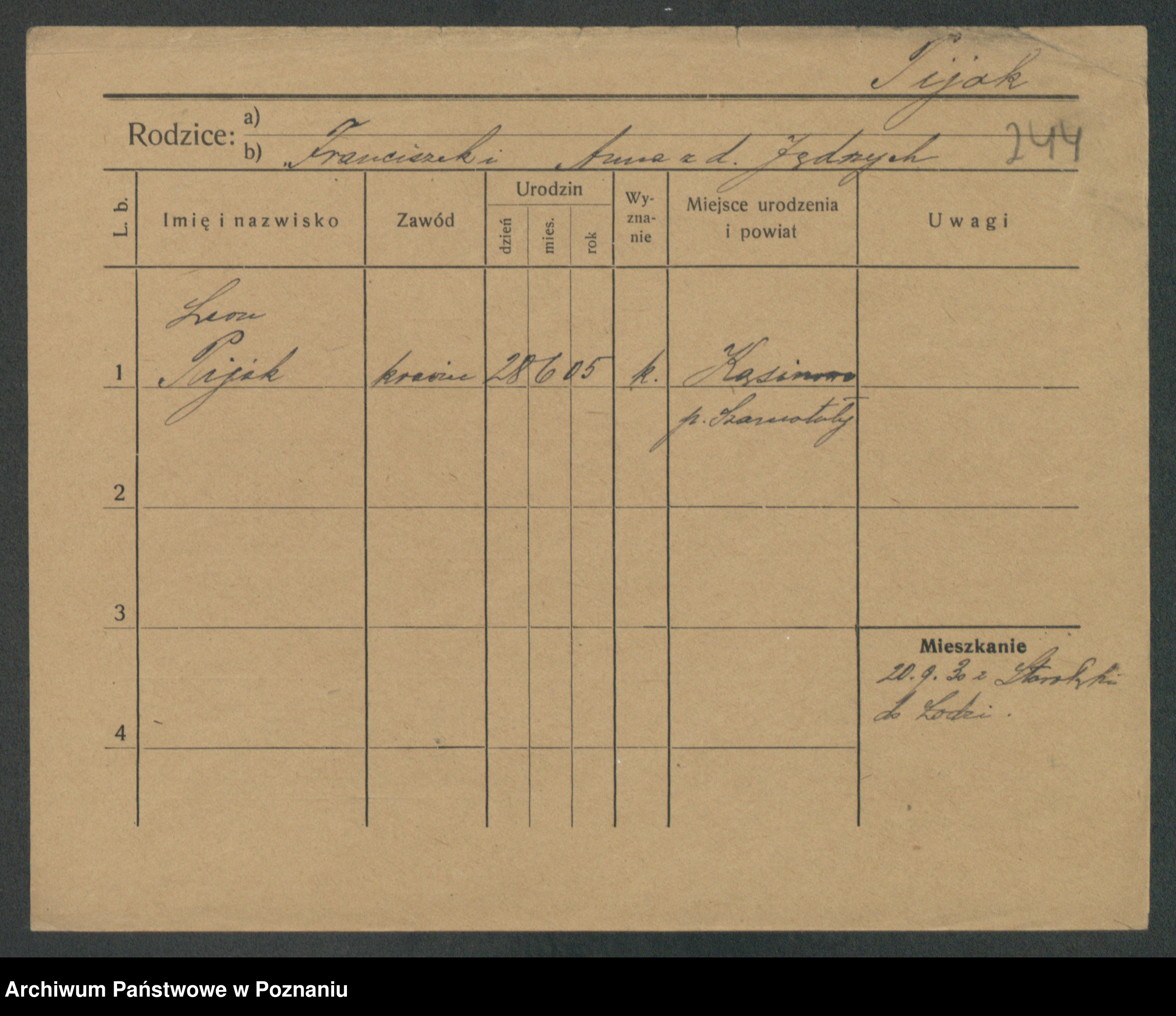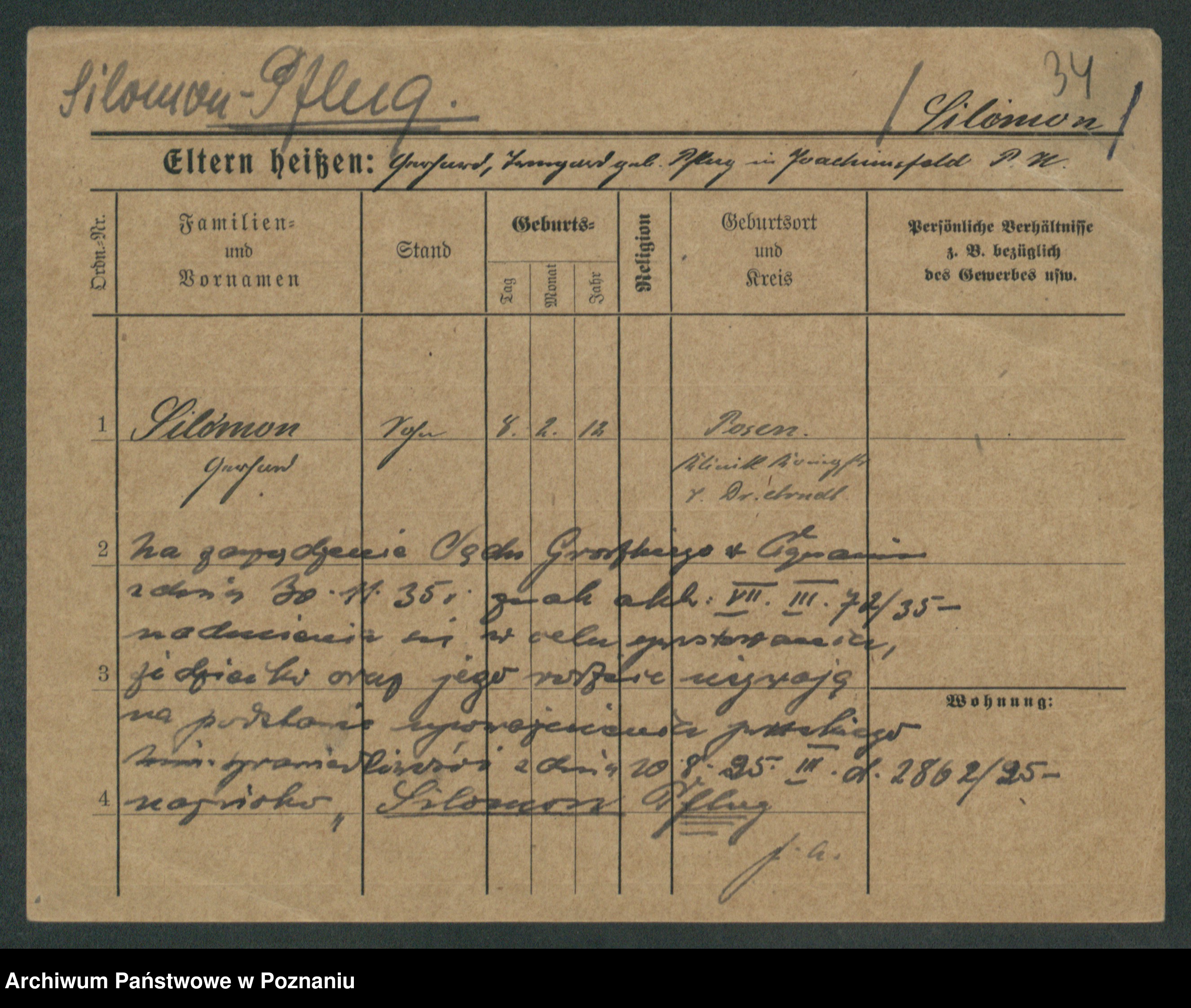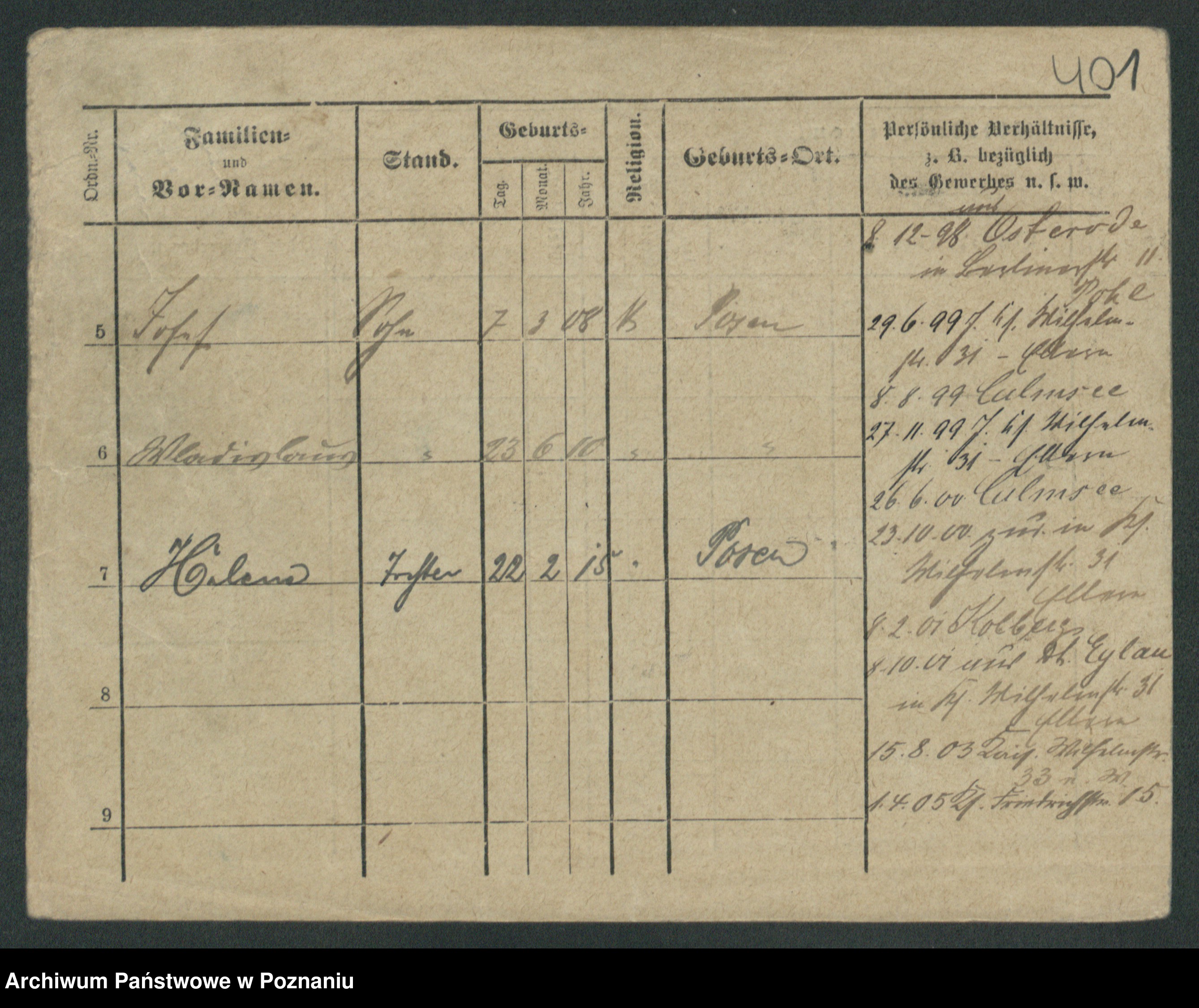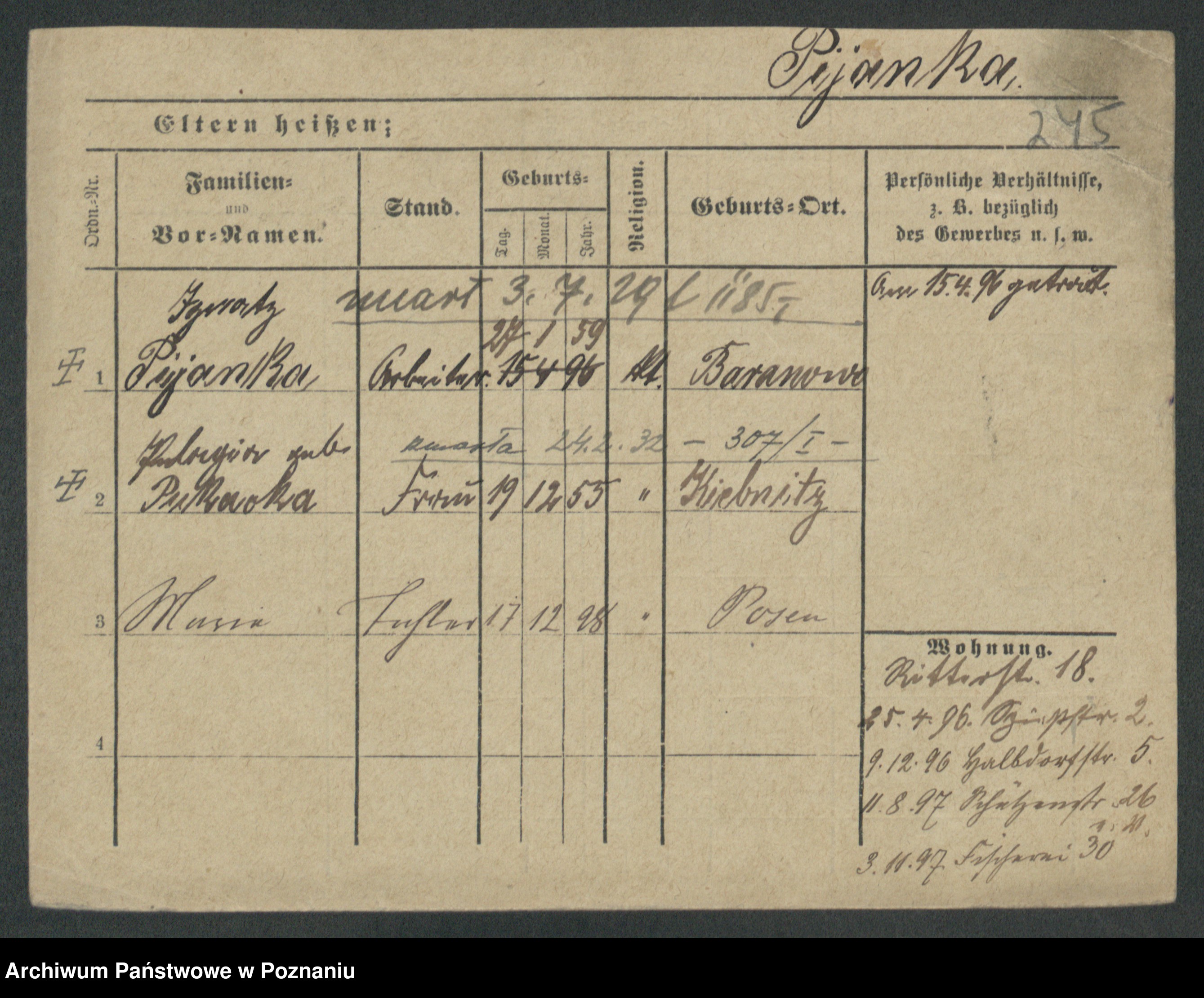 Podgląd karty osobowej dostępny jest po kliknięciu na nazwisko lub ikonkę karty. Można dokonywać powiększenia (ikony na górze) lub przechodzić między kolejnymi skanami (strzałki po bokach).