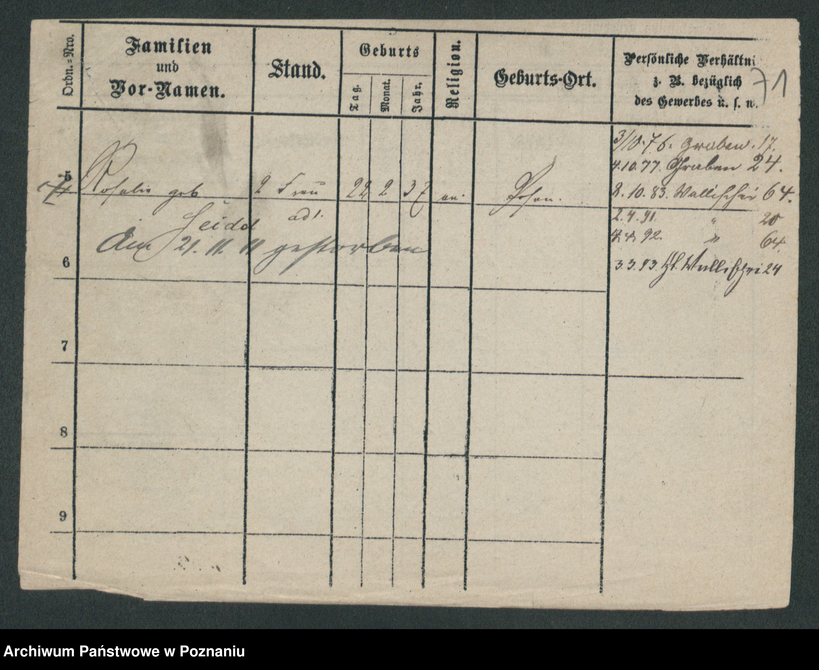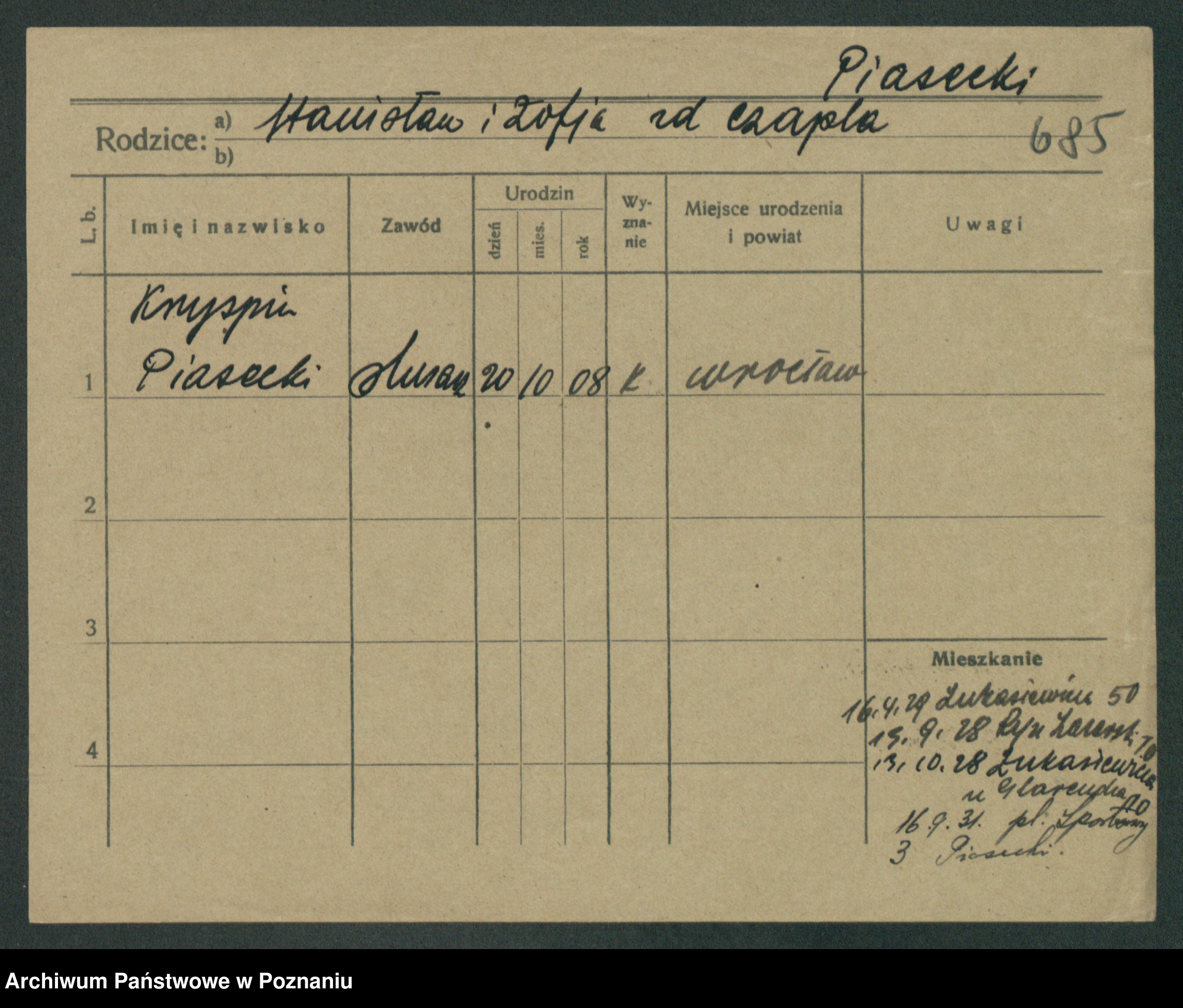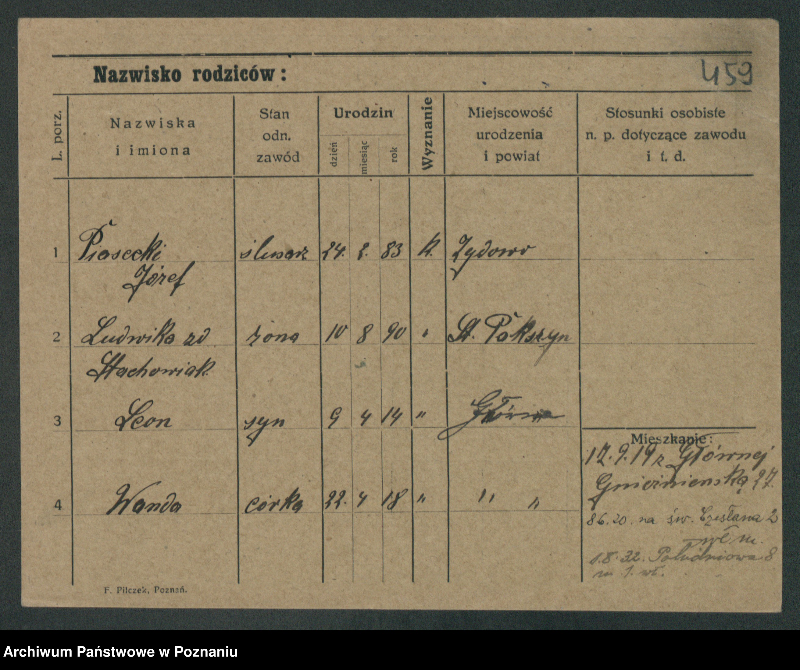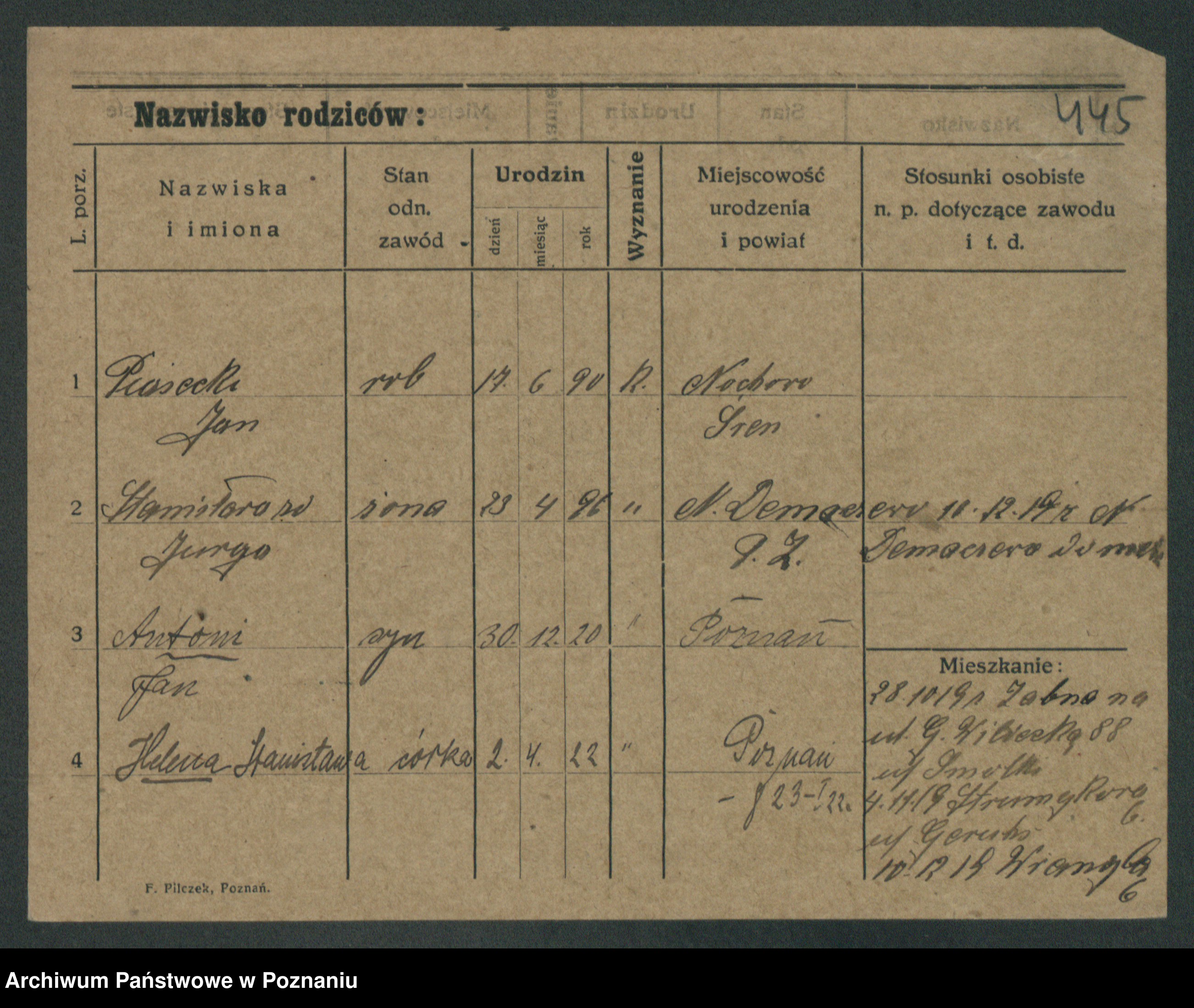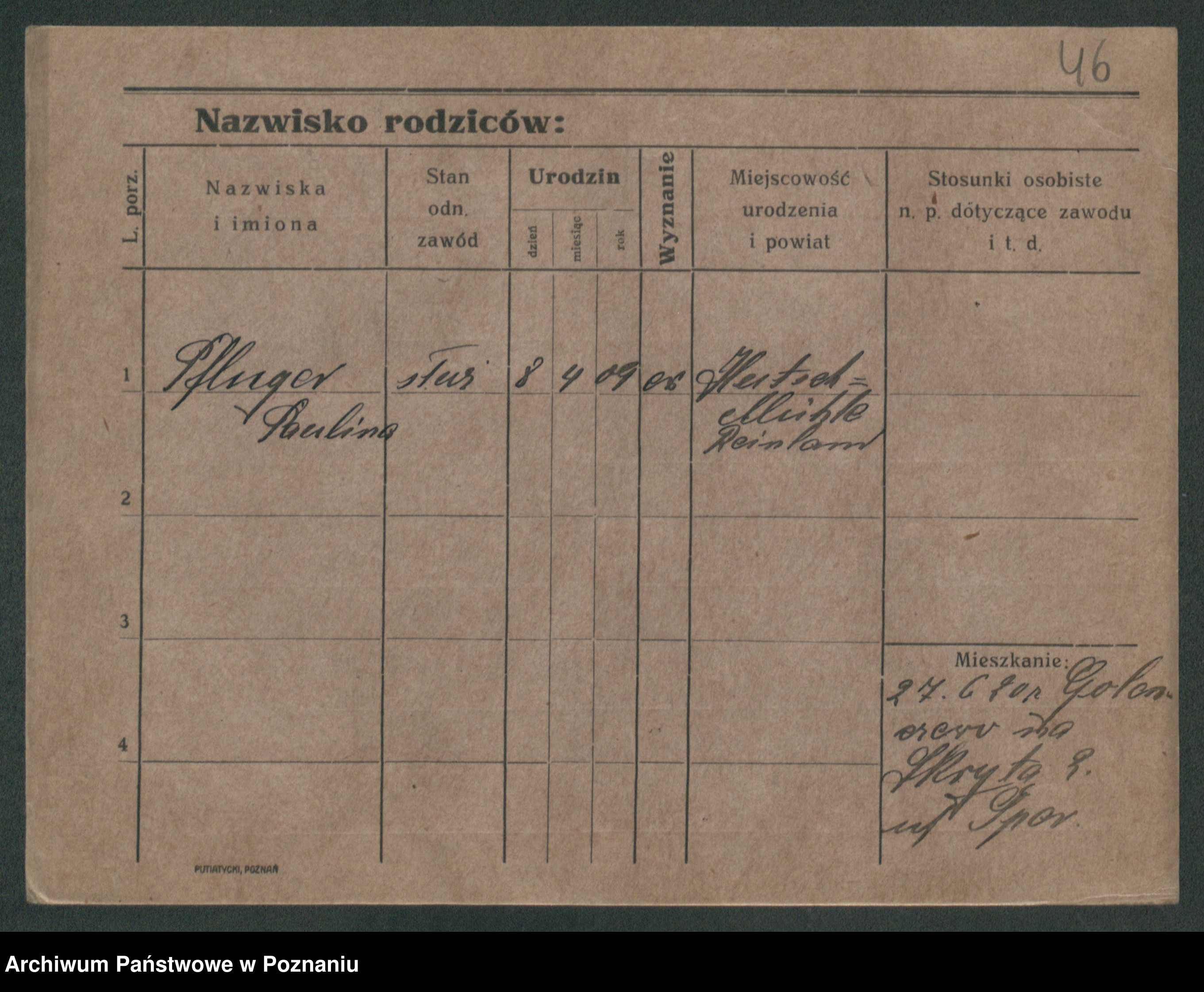 Podgląd karty osobowej dostępny jest po kliknięciu na nazwisko lub ikonkę karty. Można dokonywać powiększenia (ikony na górze) lub przechodzić między kolejnymi skanami (strzałki po bokach).