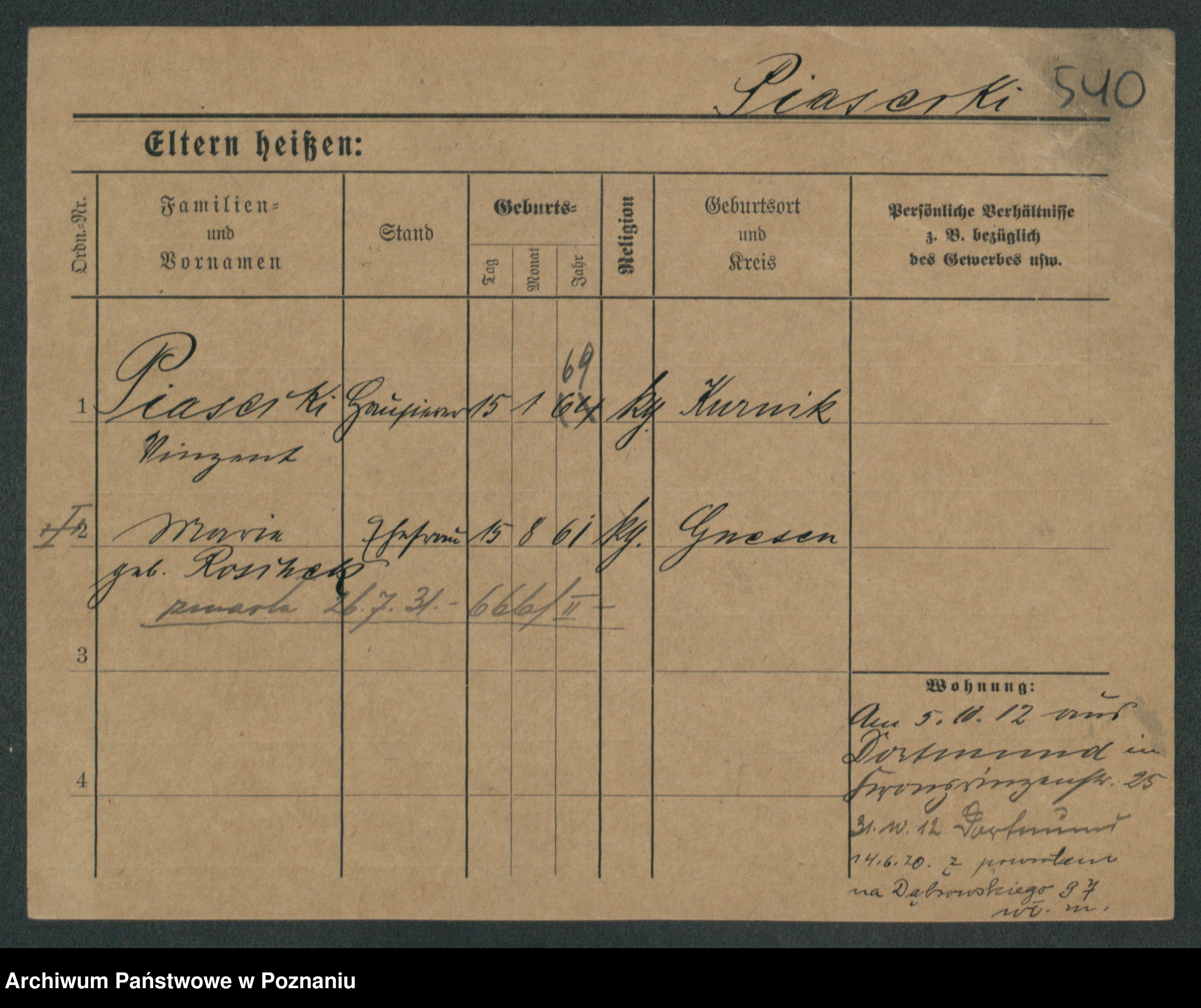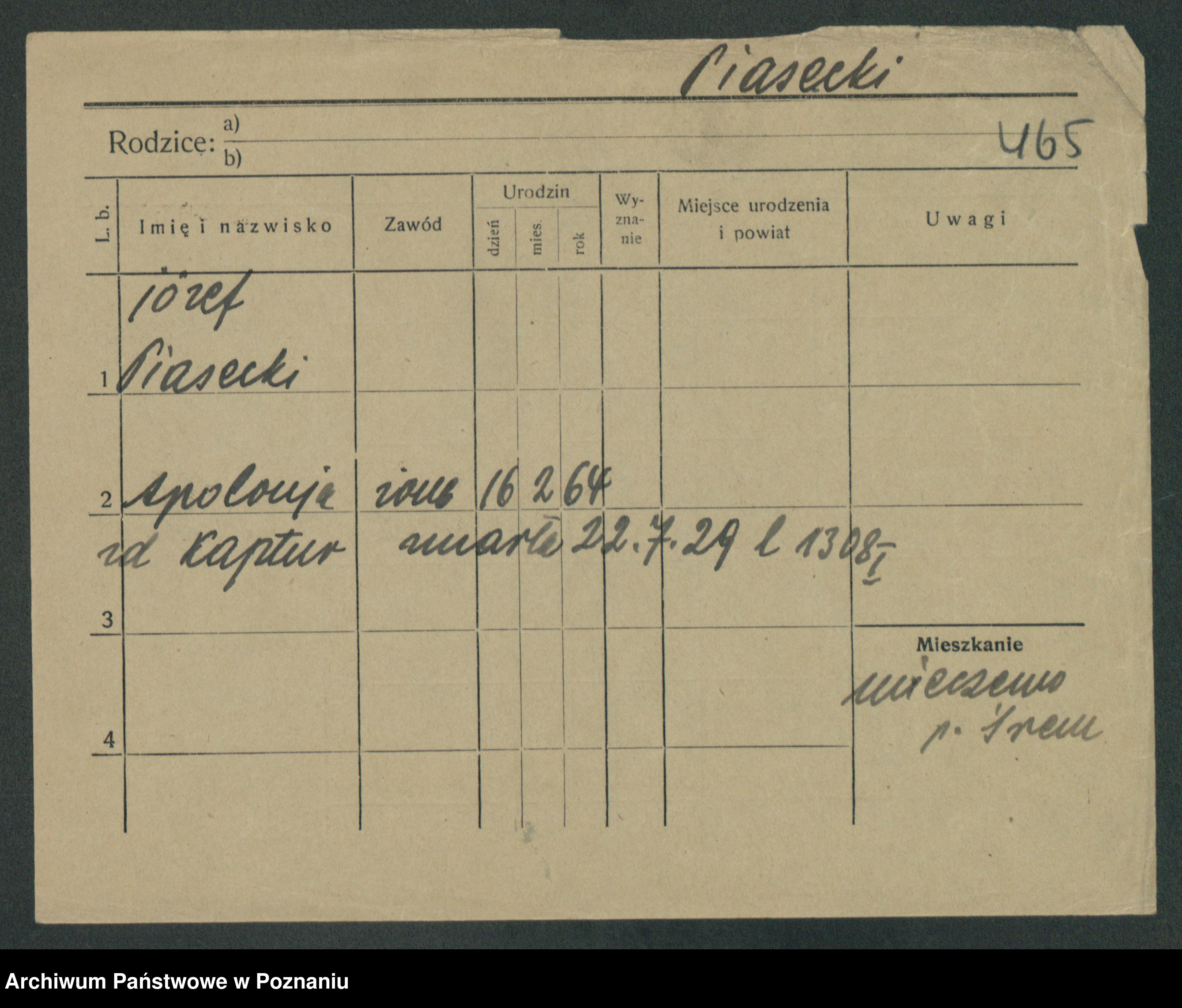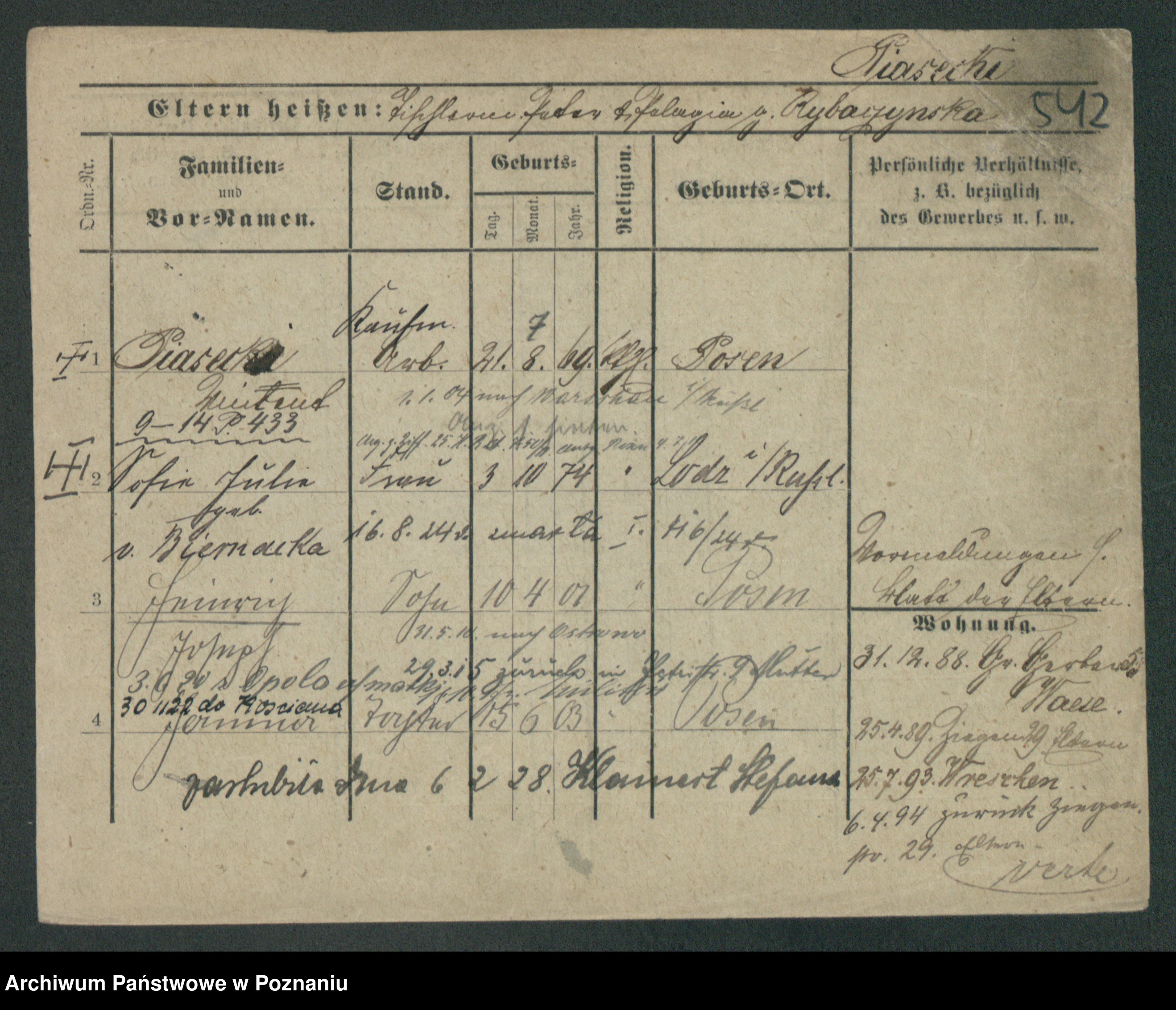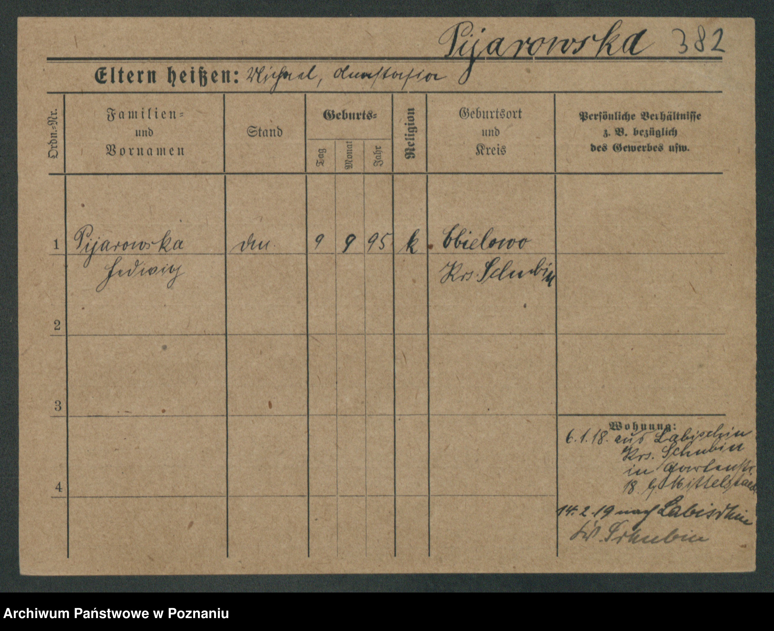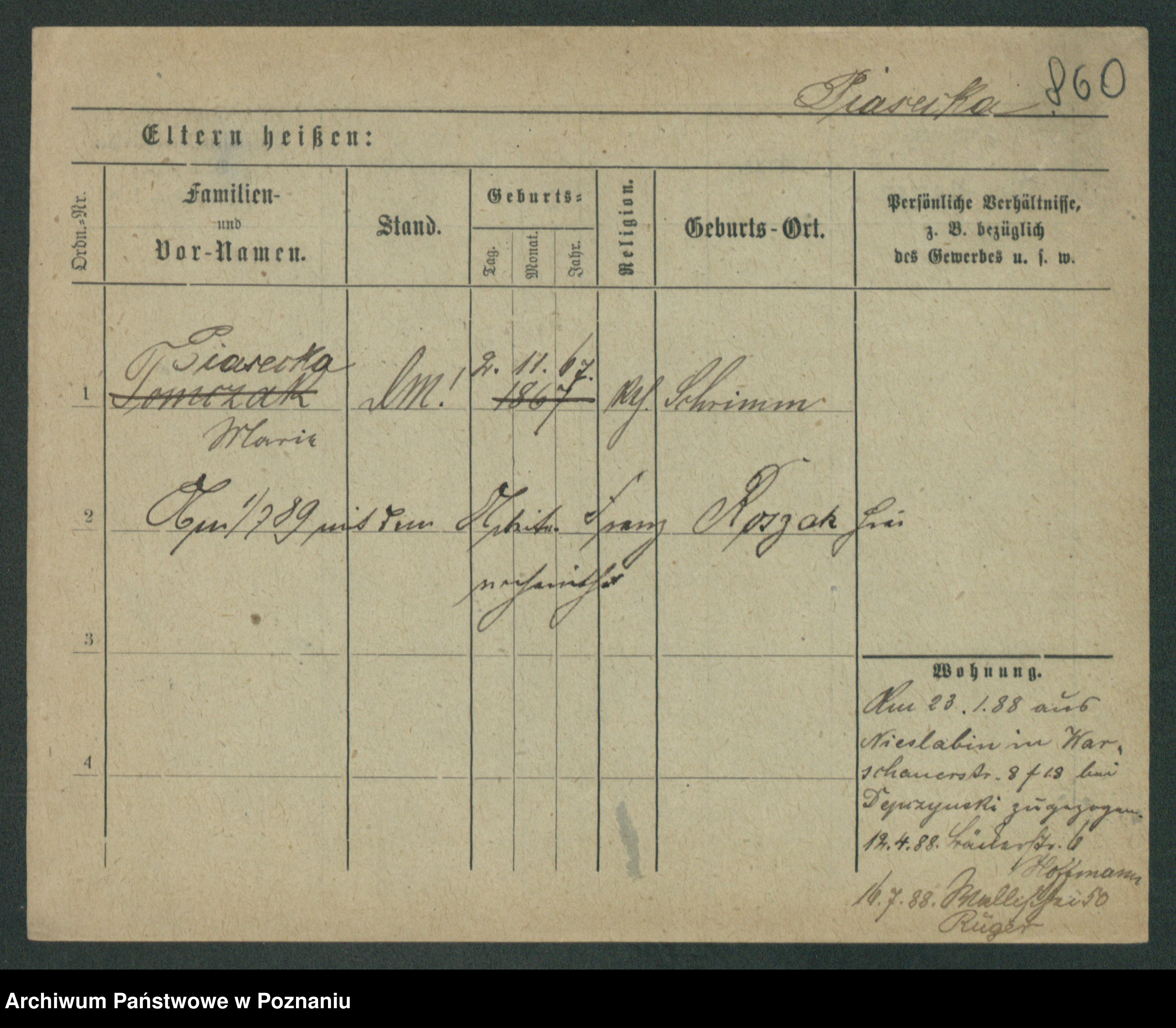 Podgląd karty osobowej dostępny jest po kliknięciu na nazwisko lub ikonkę karty. Można dokonywać powiększenia (ikony na górze) lub przechodzić między kolejnymi skanami (strzałki po bokach).
