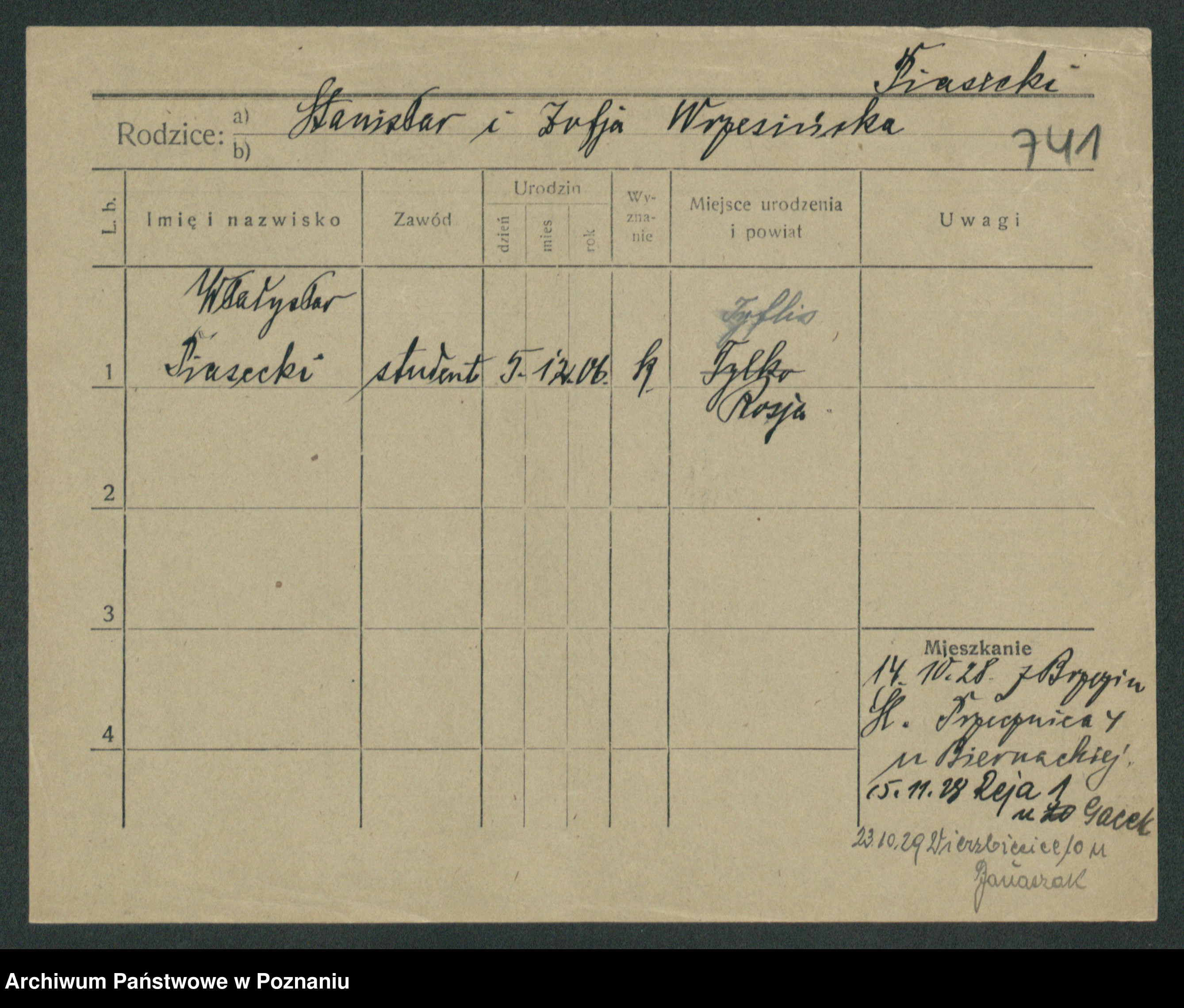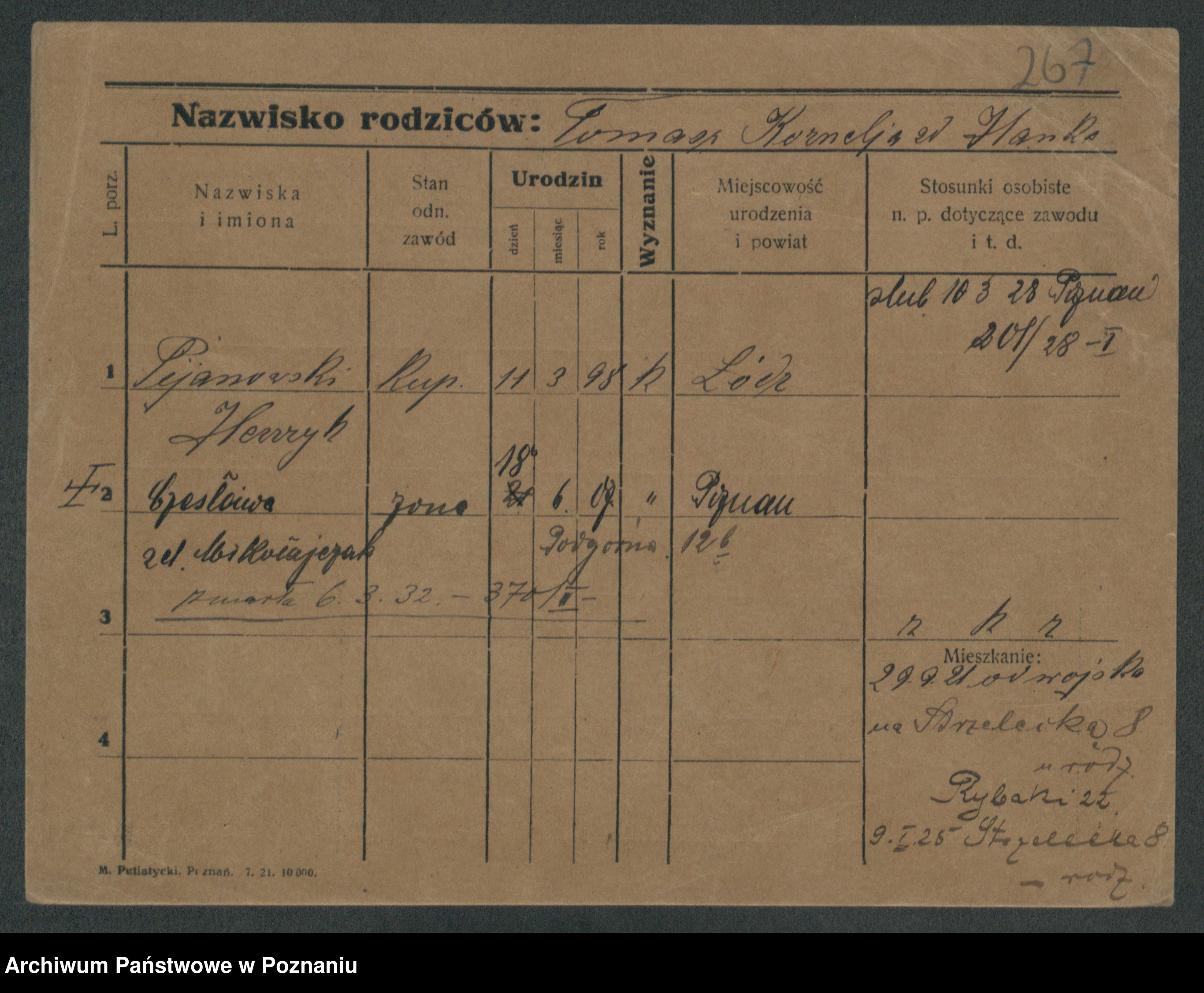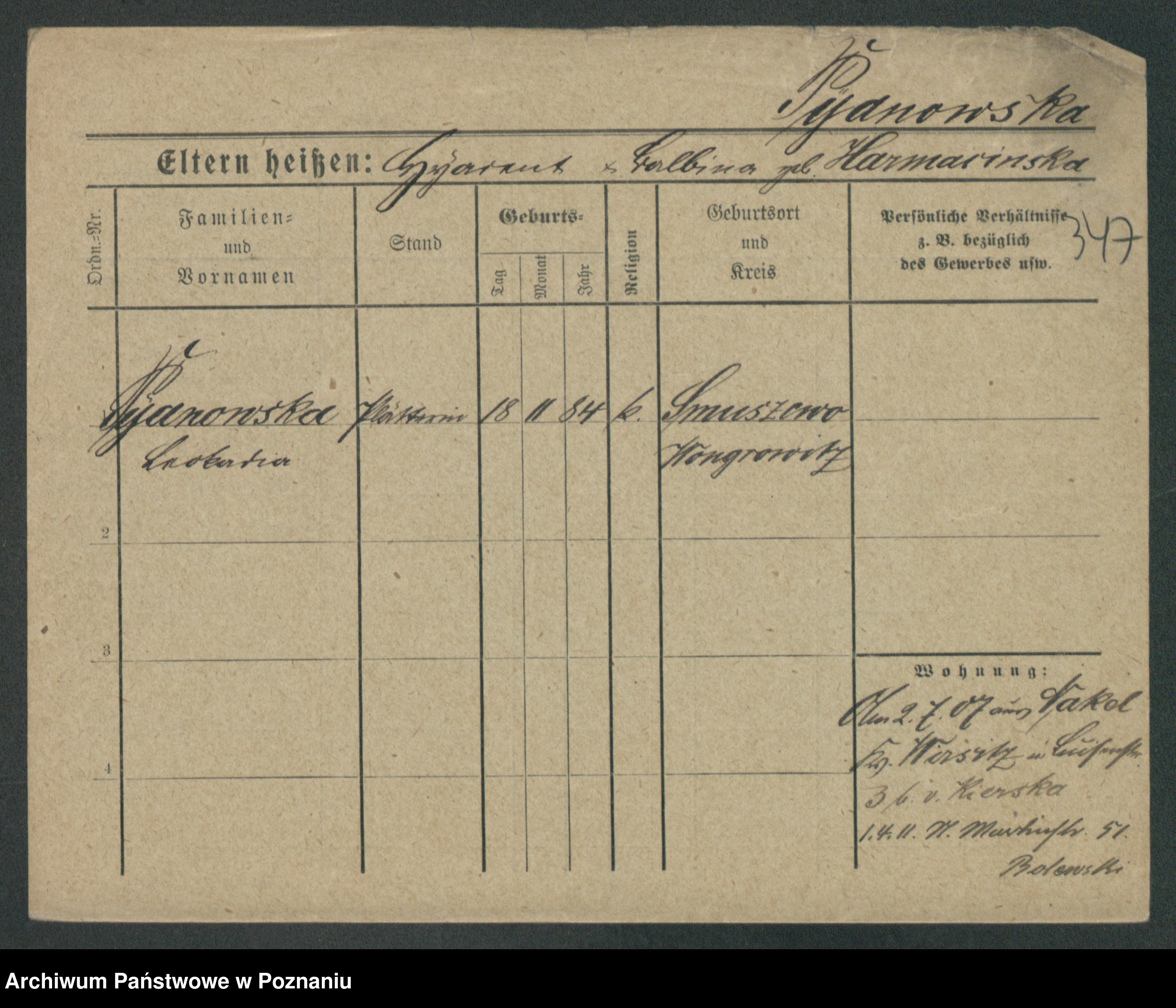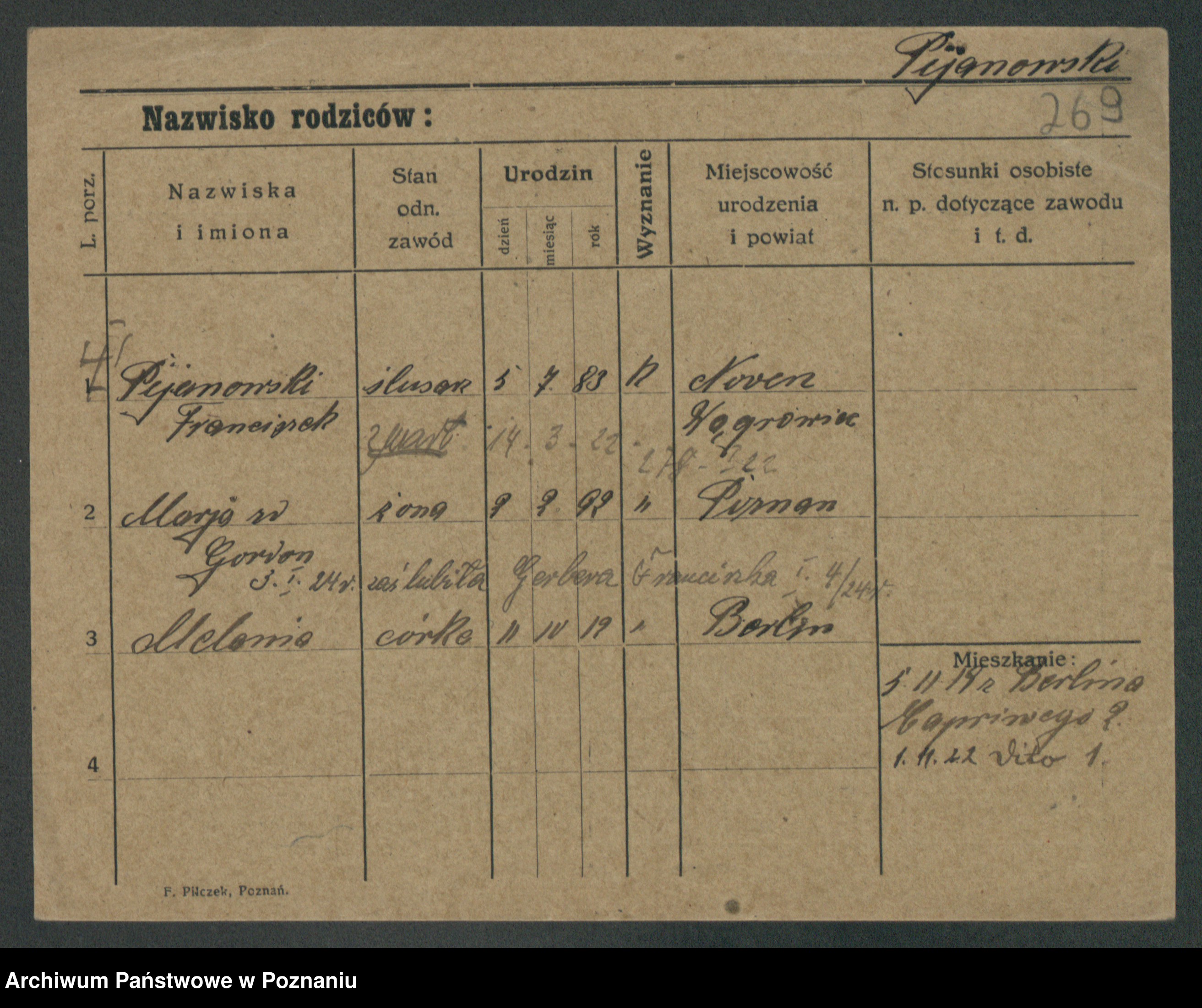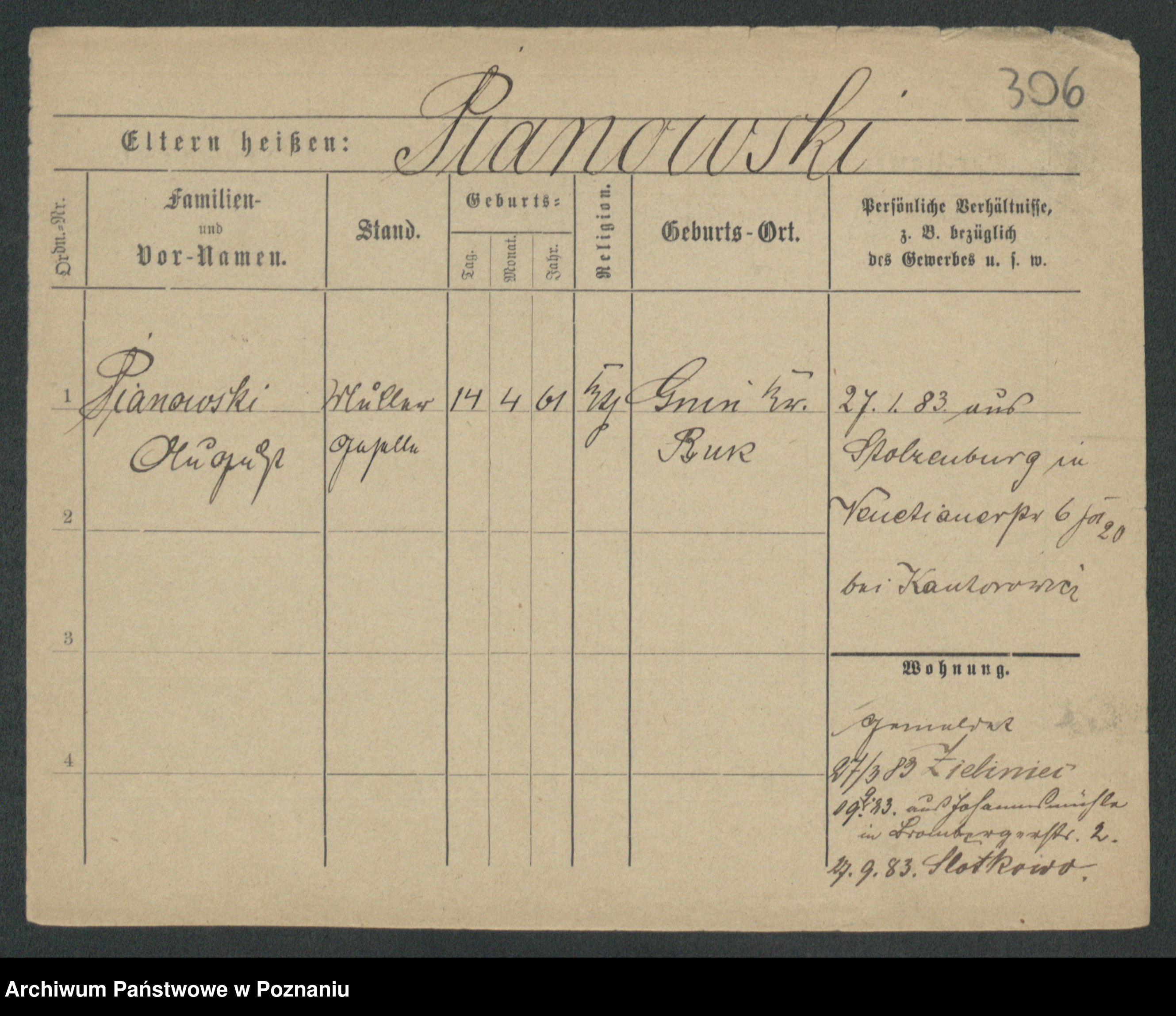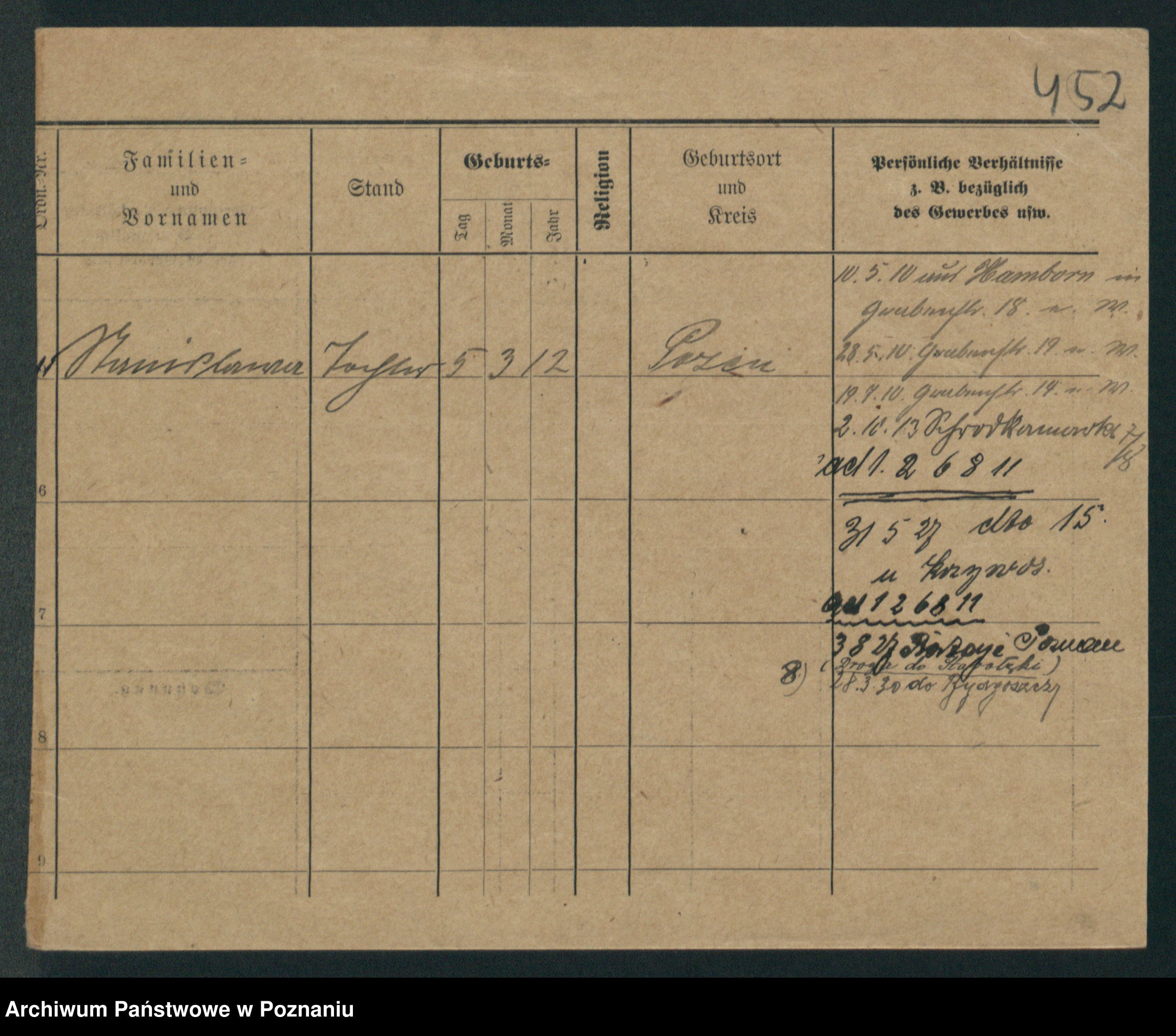 Podgląd karty osobowej dostępny jest po kliknięciu na nazwisko lub ikonkę karty. Można dokonywać powiększenia (ikony na górze) lub przechodzić między kolejnymi skanami (strzałki po bokach).
