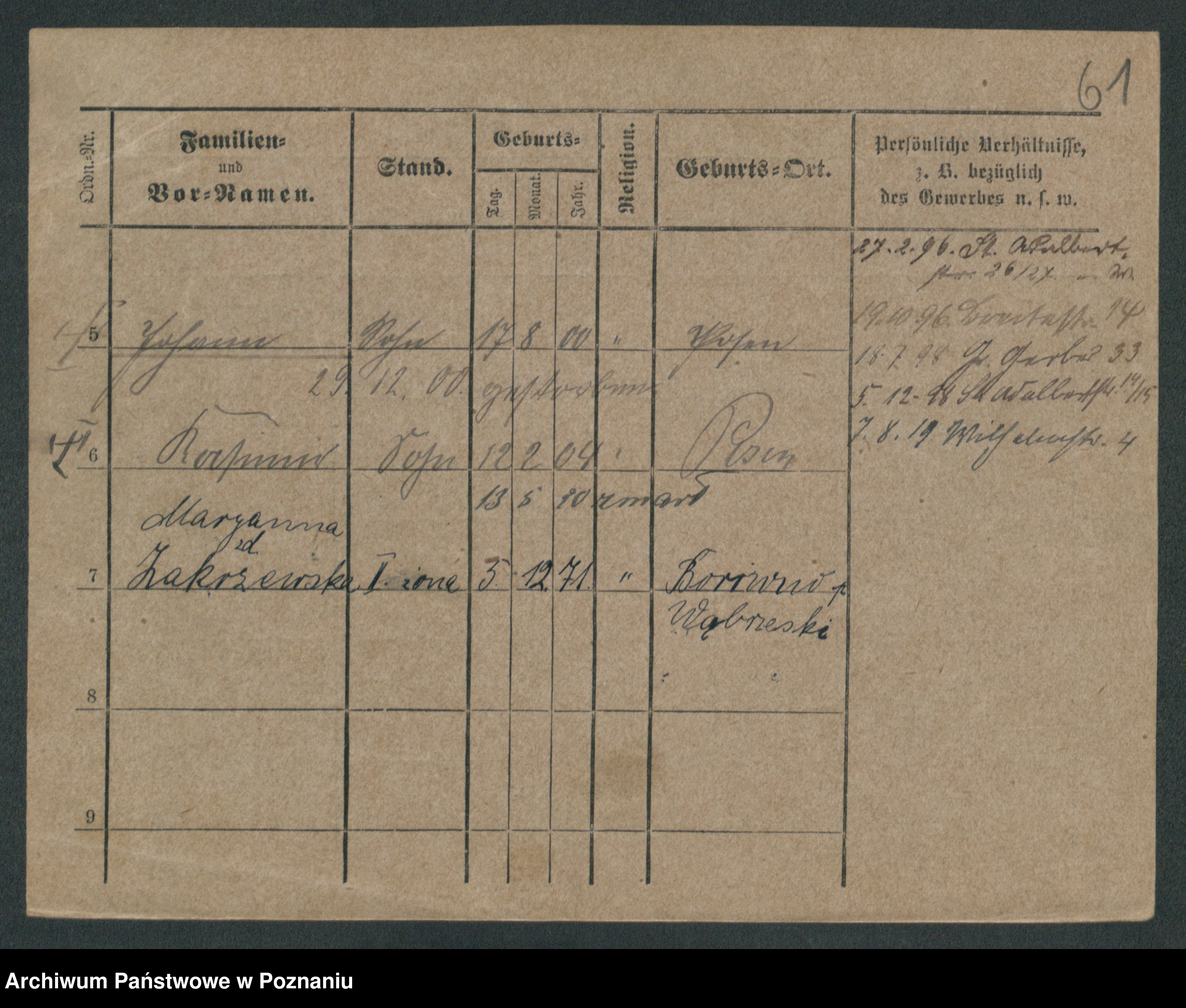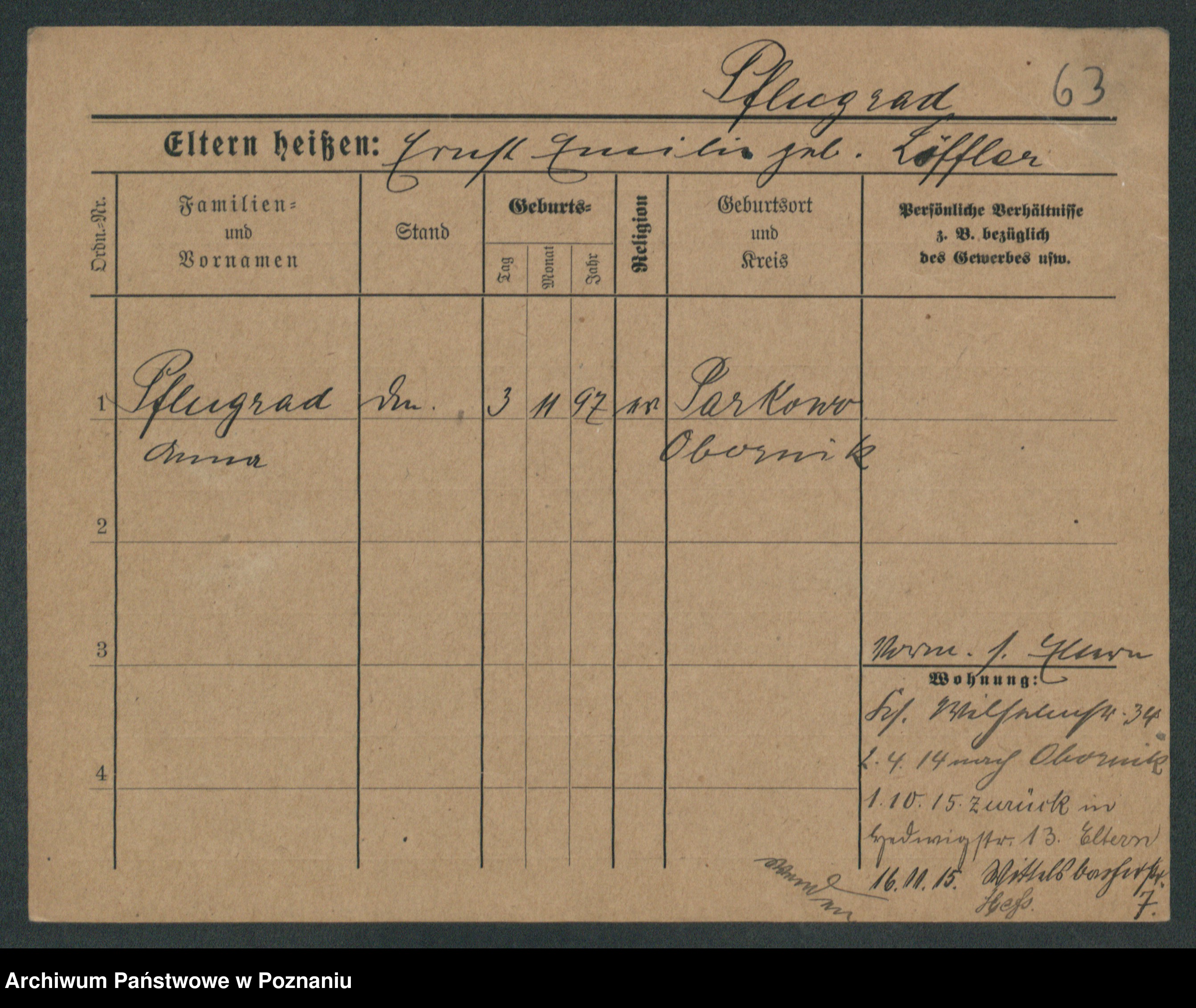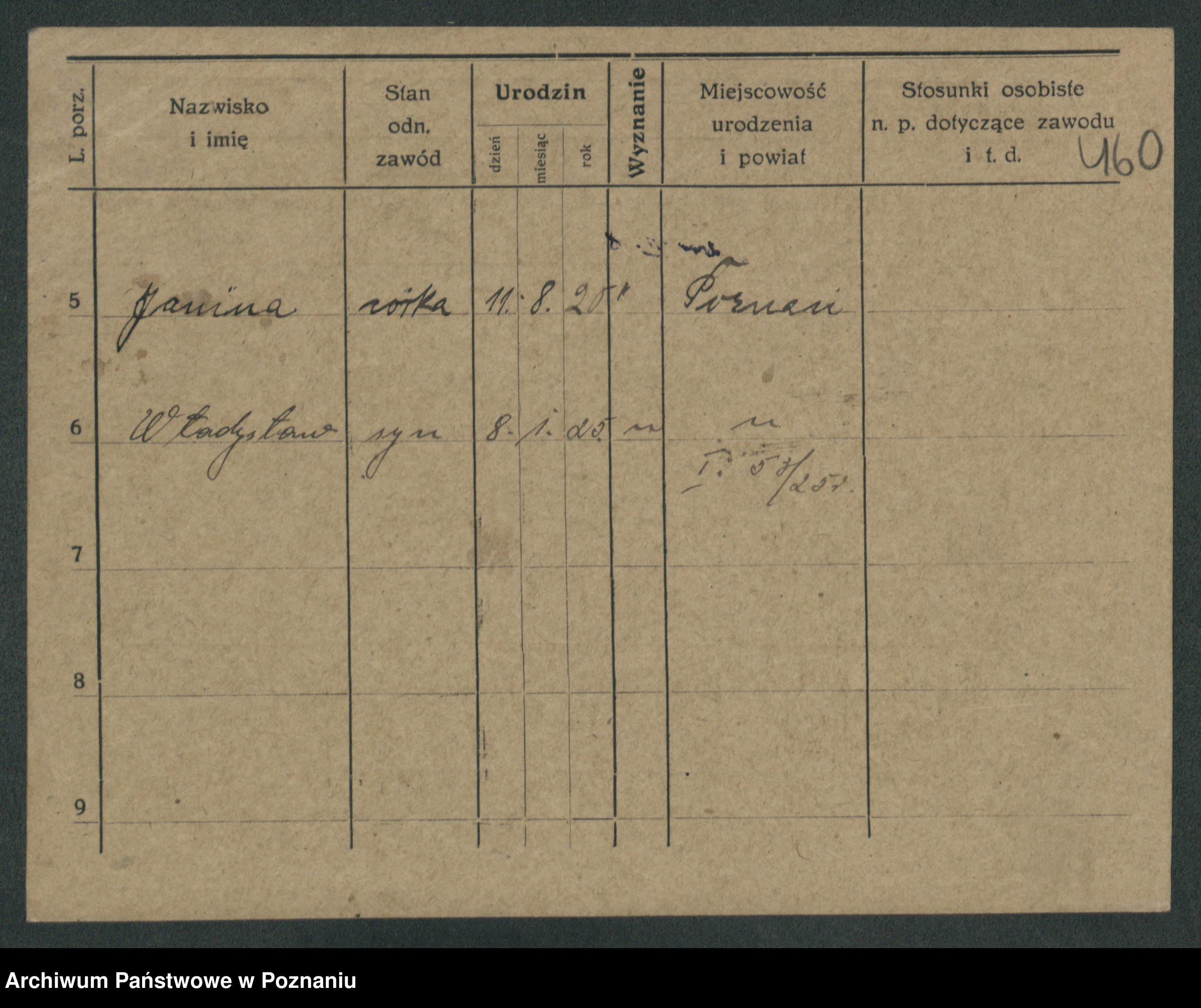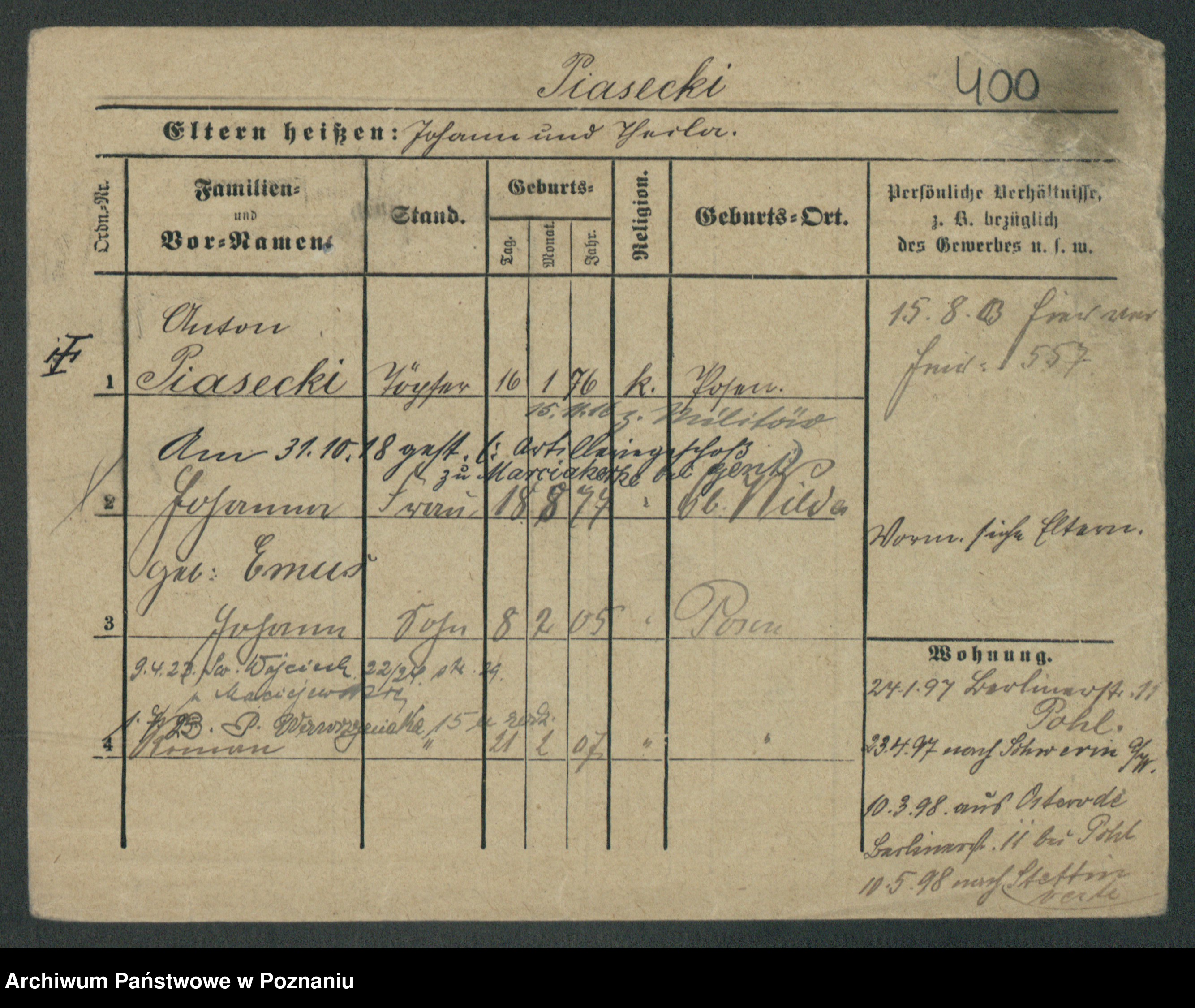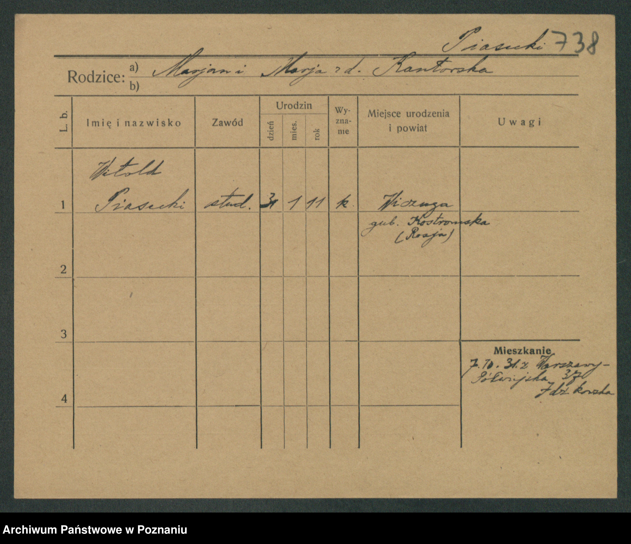 Podgląd karty osobowej dostępny jest po kliknięciu na nazwisko lub ikonkę karty. Można dokonywać powiększenia (ikony na górze) lub przechodzić między kolejnymi skanami (strzałki po bokach).