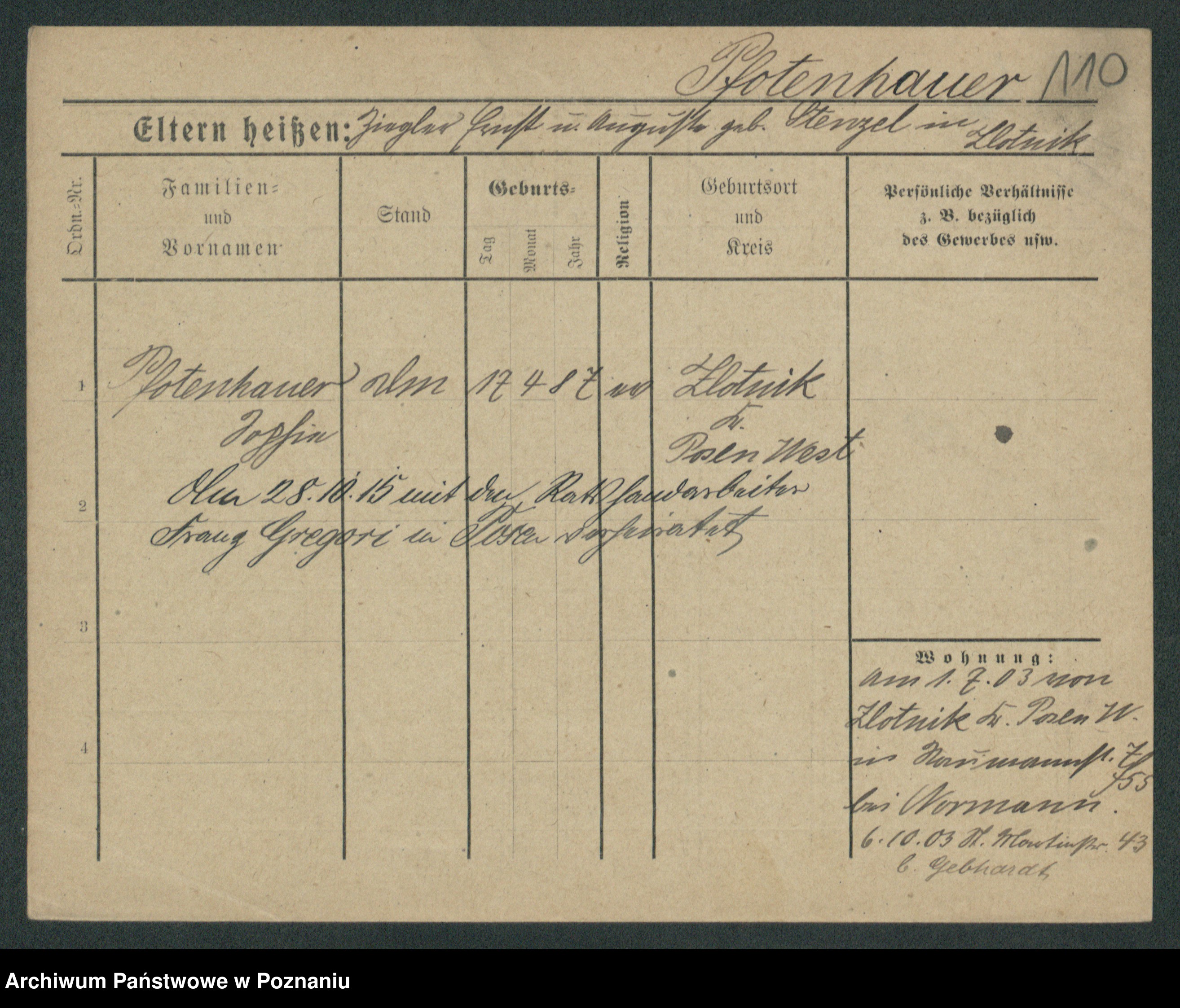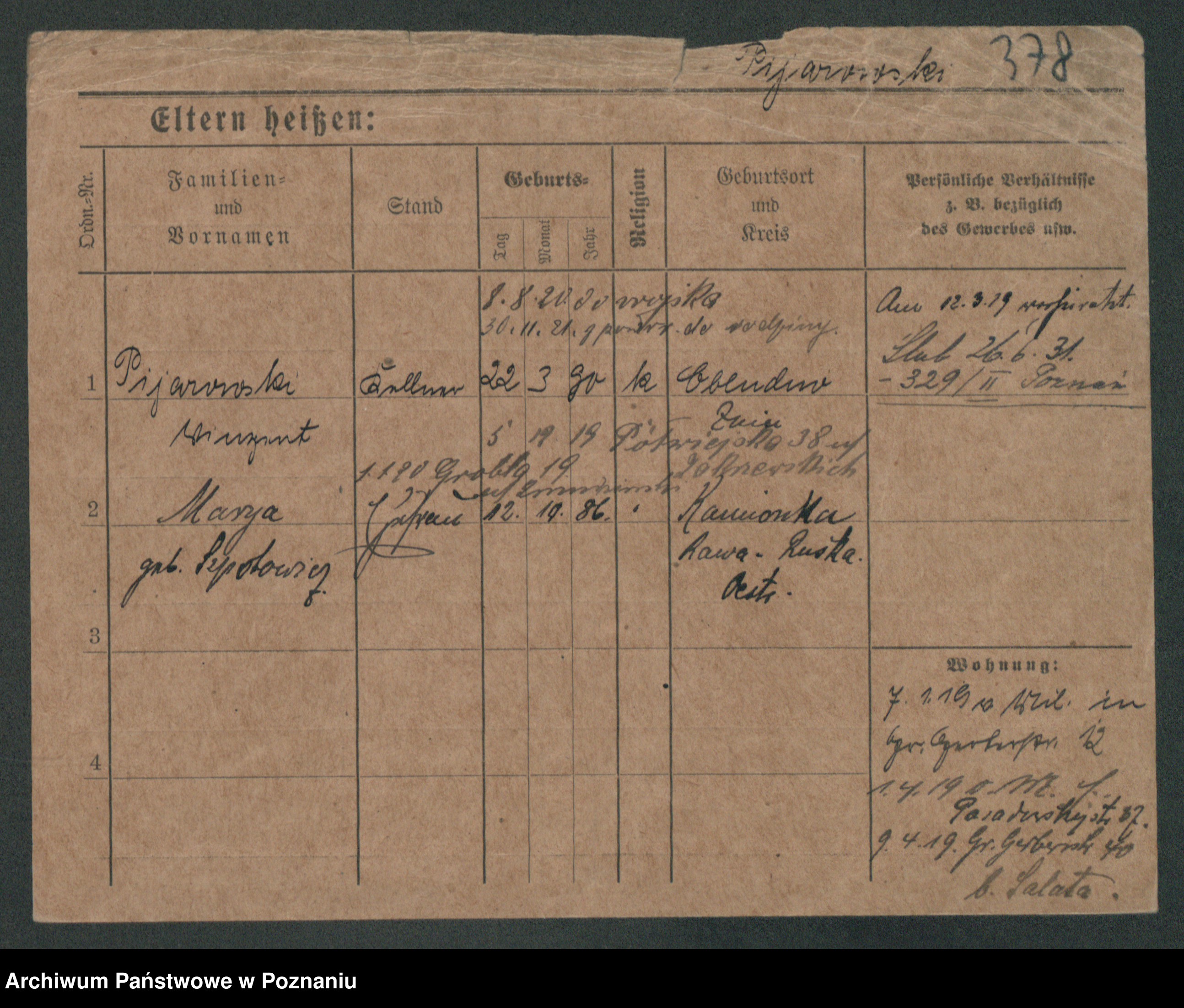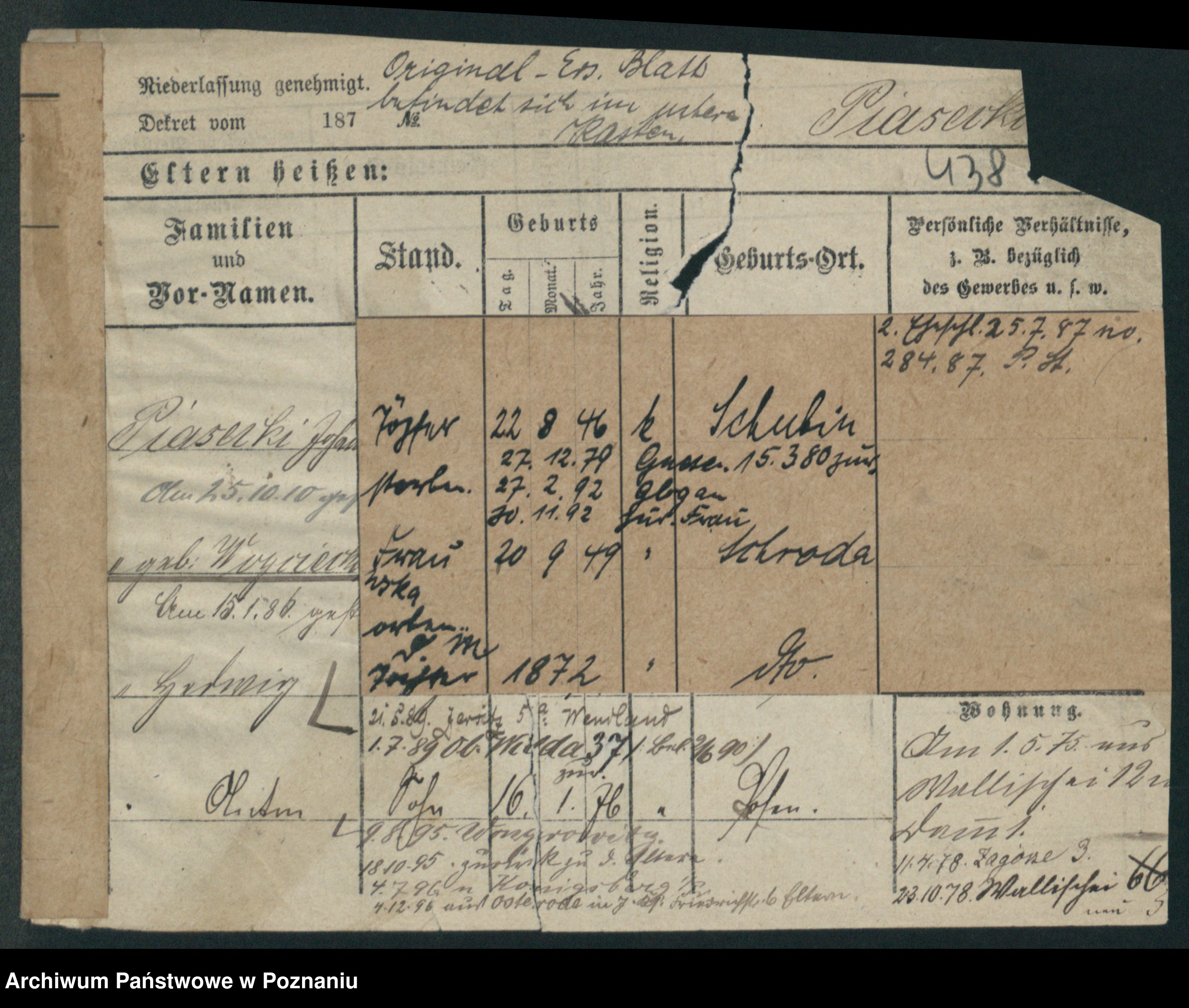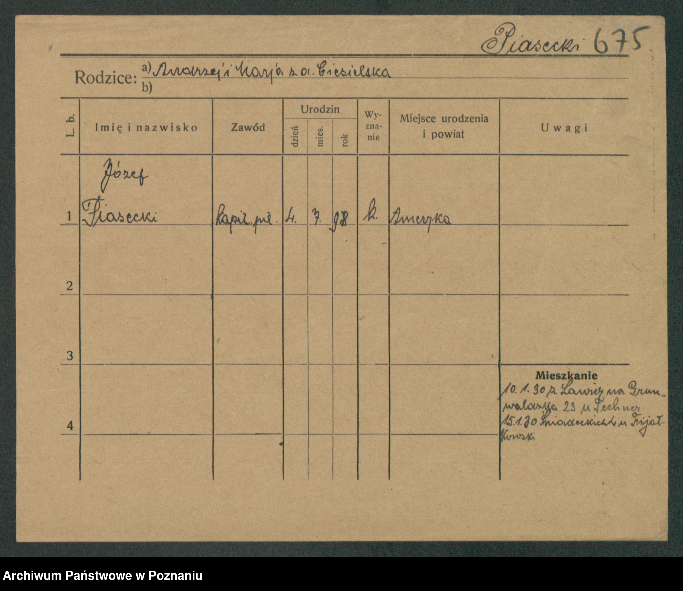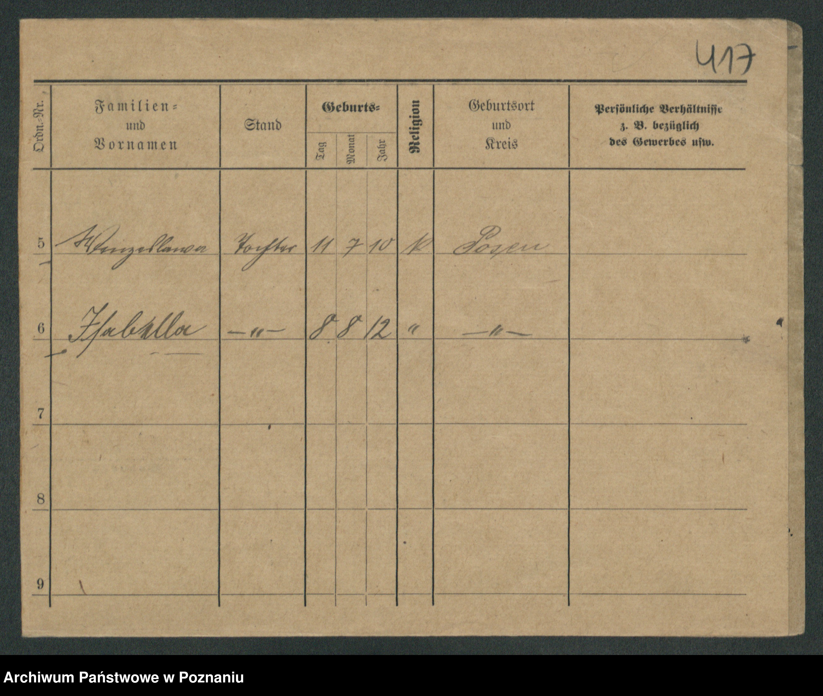 Podgląd karty osobowej dostępny jest po kliknięciu na nazwisko lub ikonkę karty. Można dokonywać powiększenia (ikony na górze) lub przechodzić między kolejnymi skanami (strzałki po bokach).