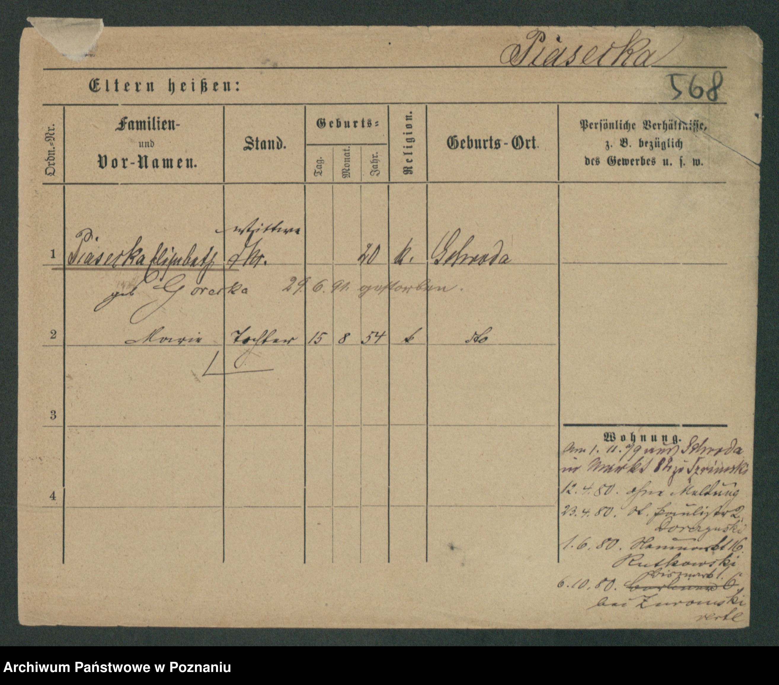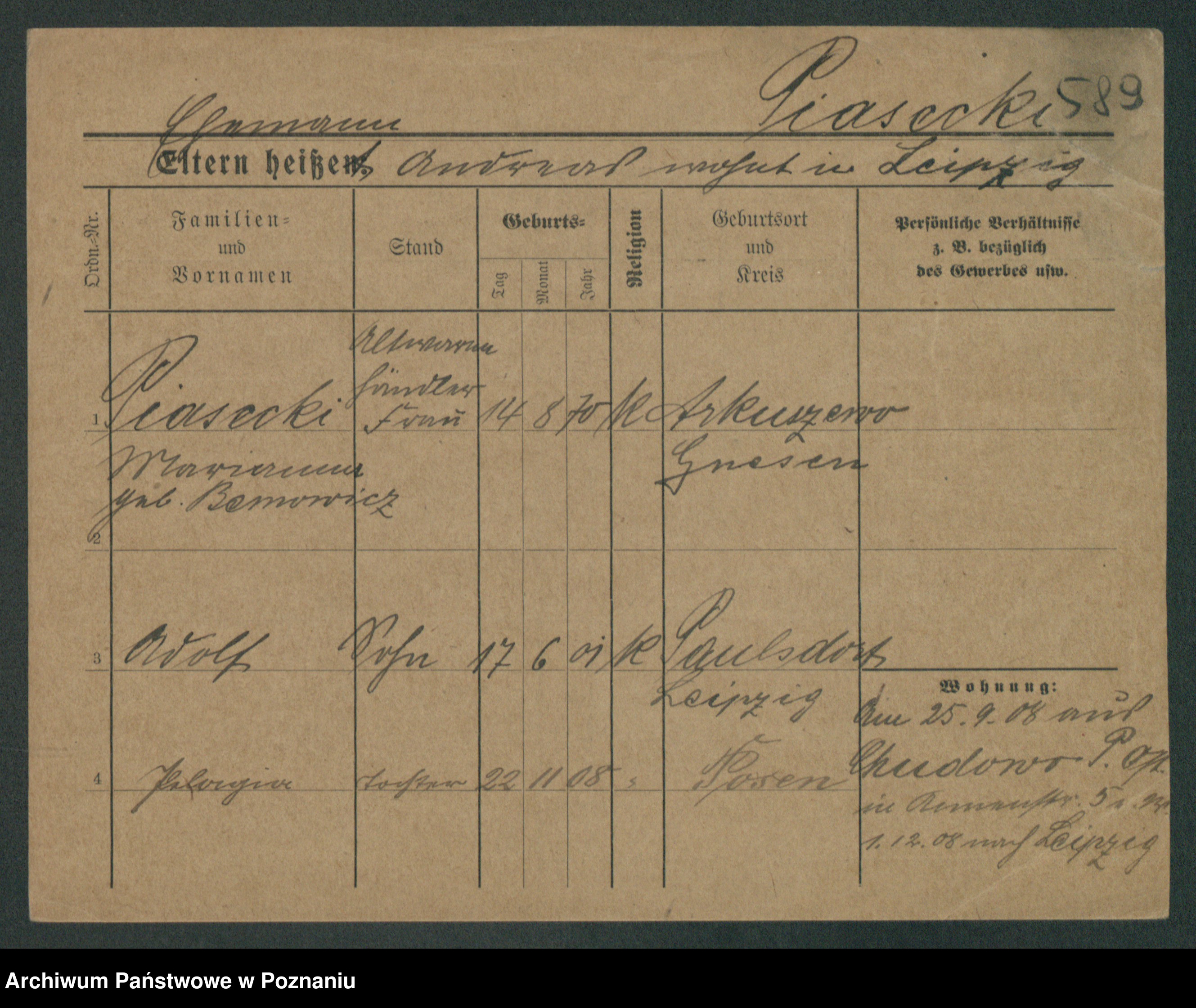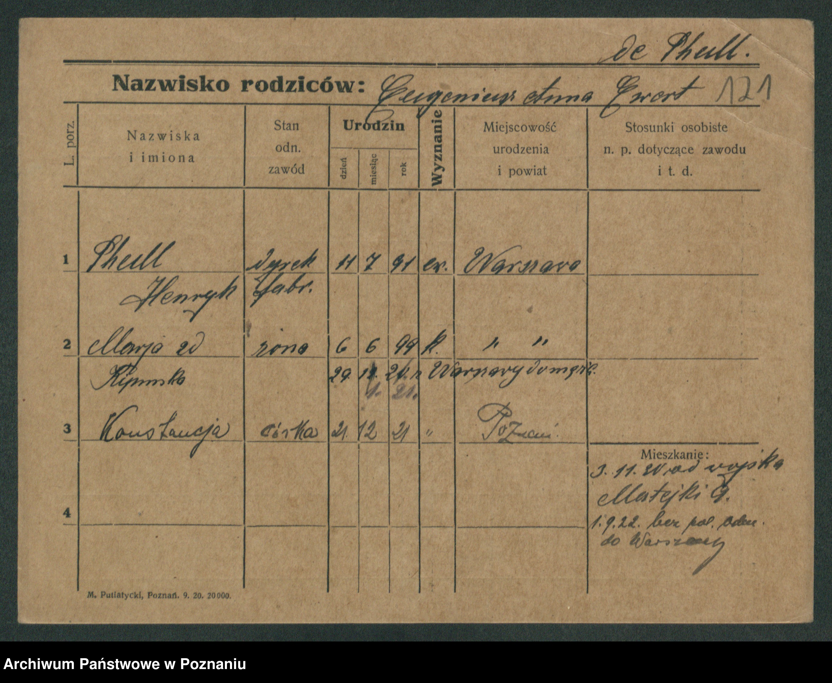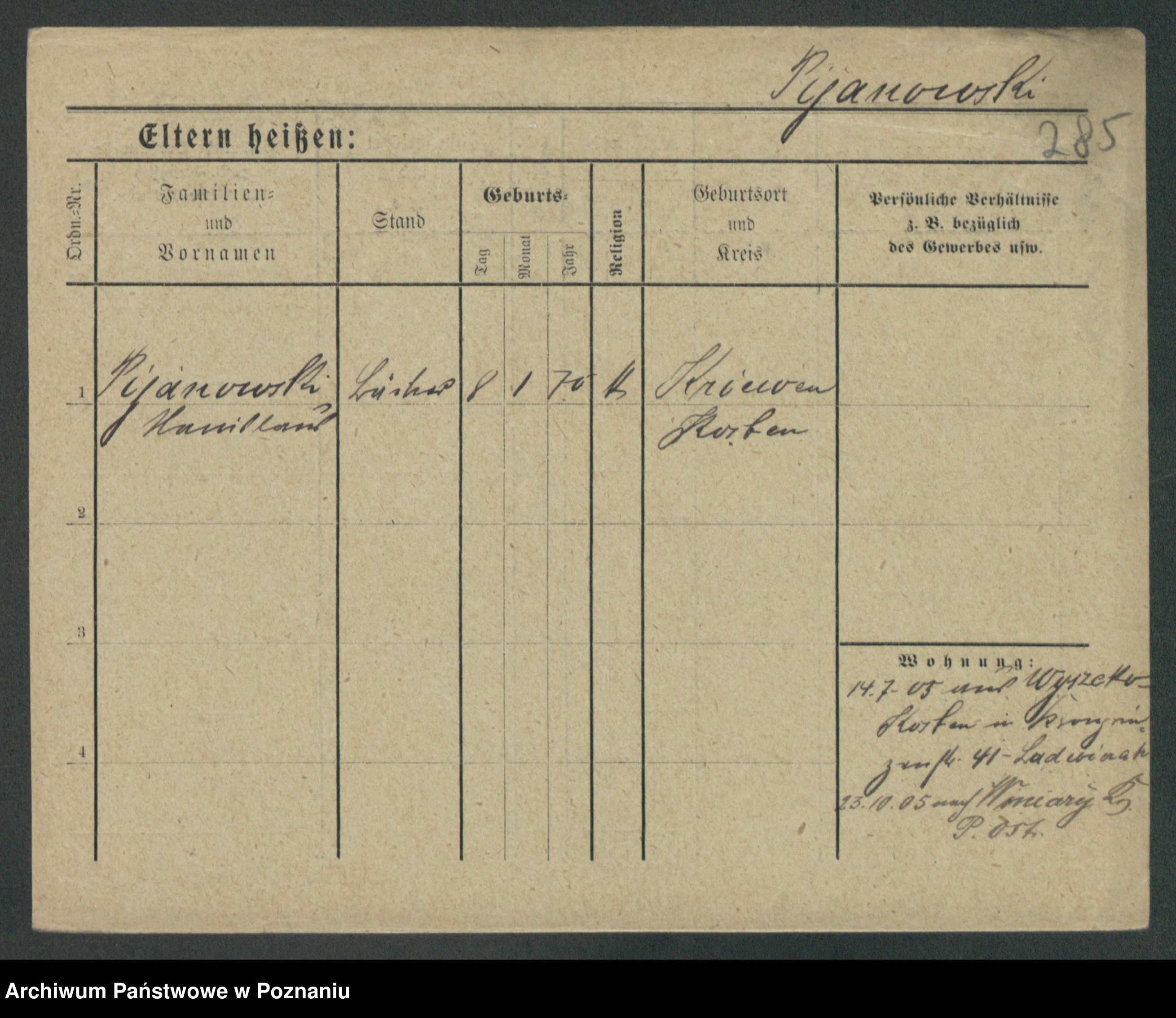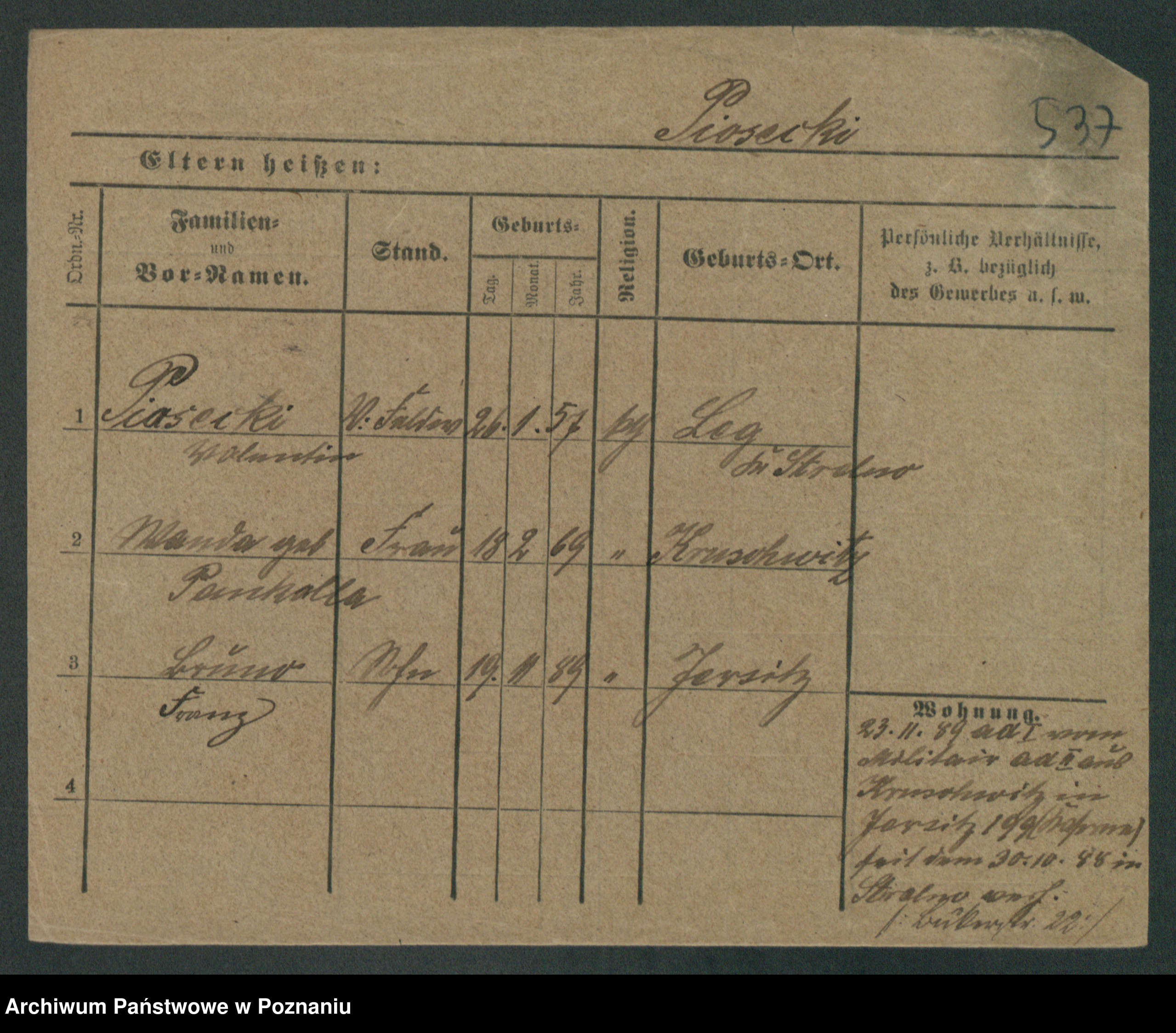 Podgląd karty osobowej dostępny jest po kliknięciu na nazwisko lub ikonkę karty. Można dokonywać powiększenia (ikony na górze) lub przechodzić między kolejnymi skanami (strzałki po bokach).