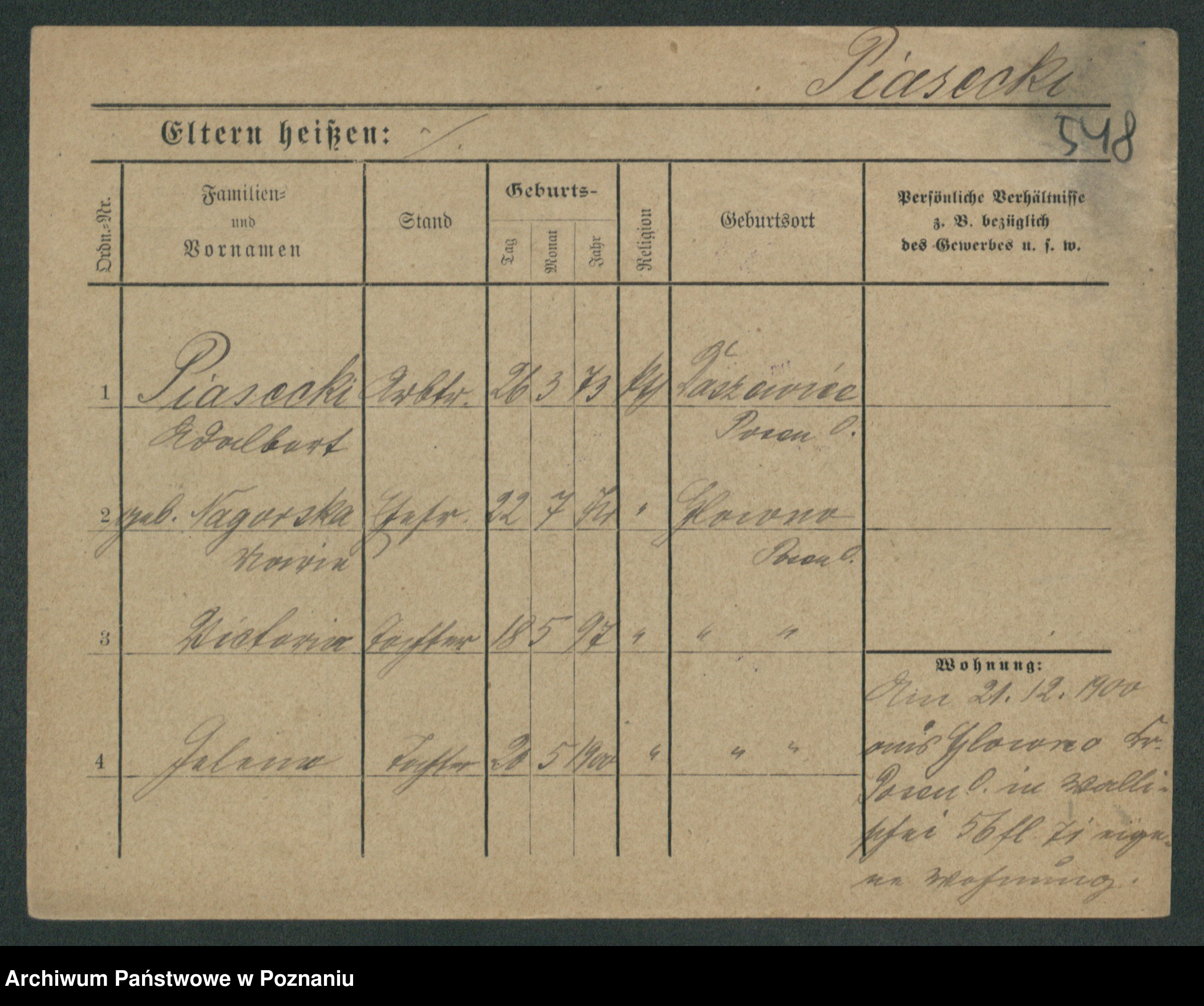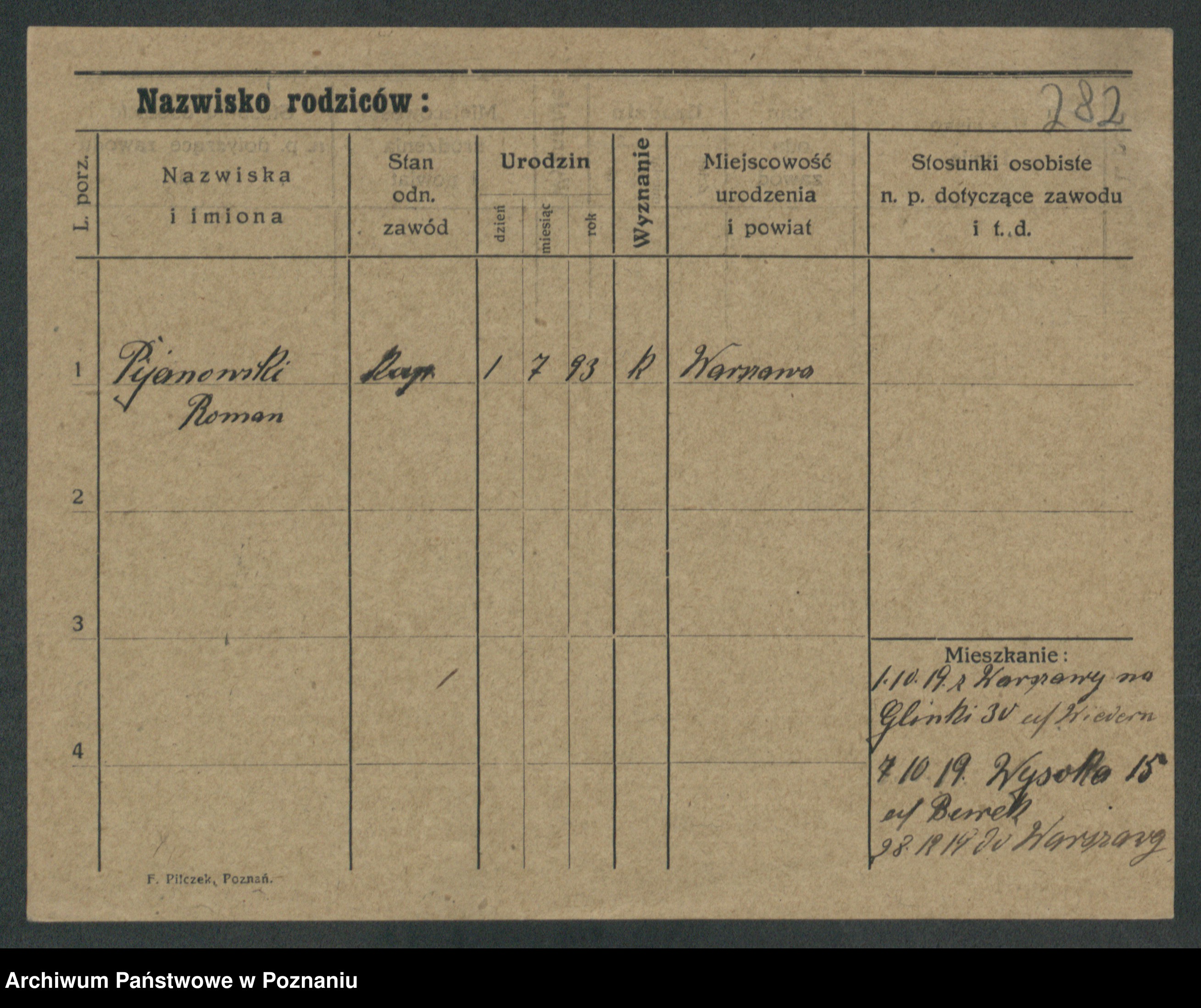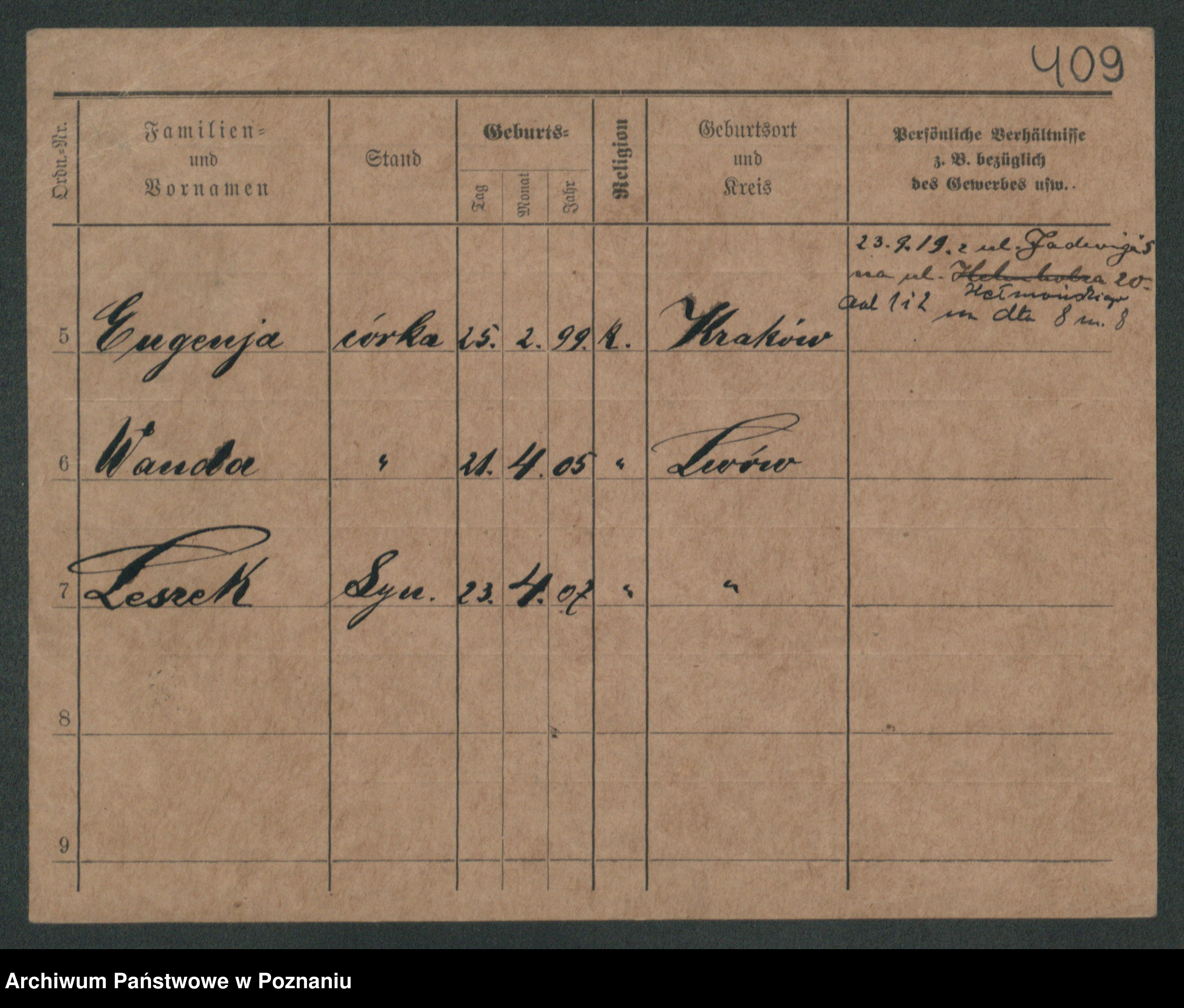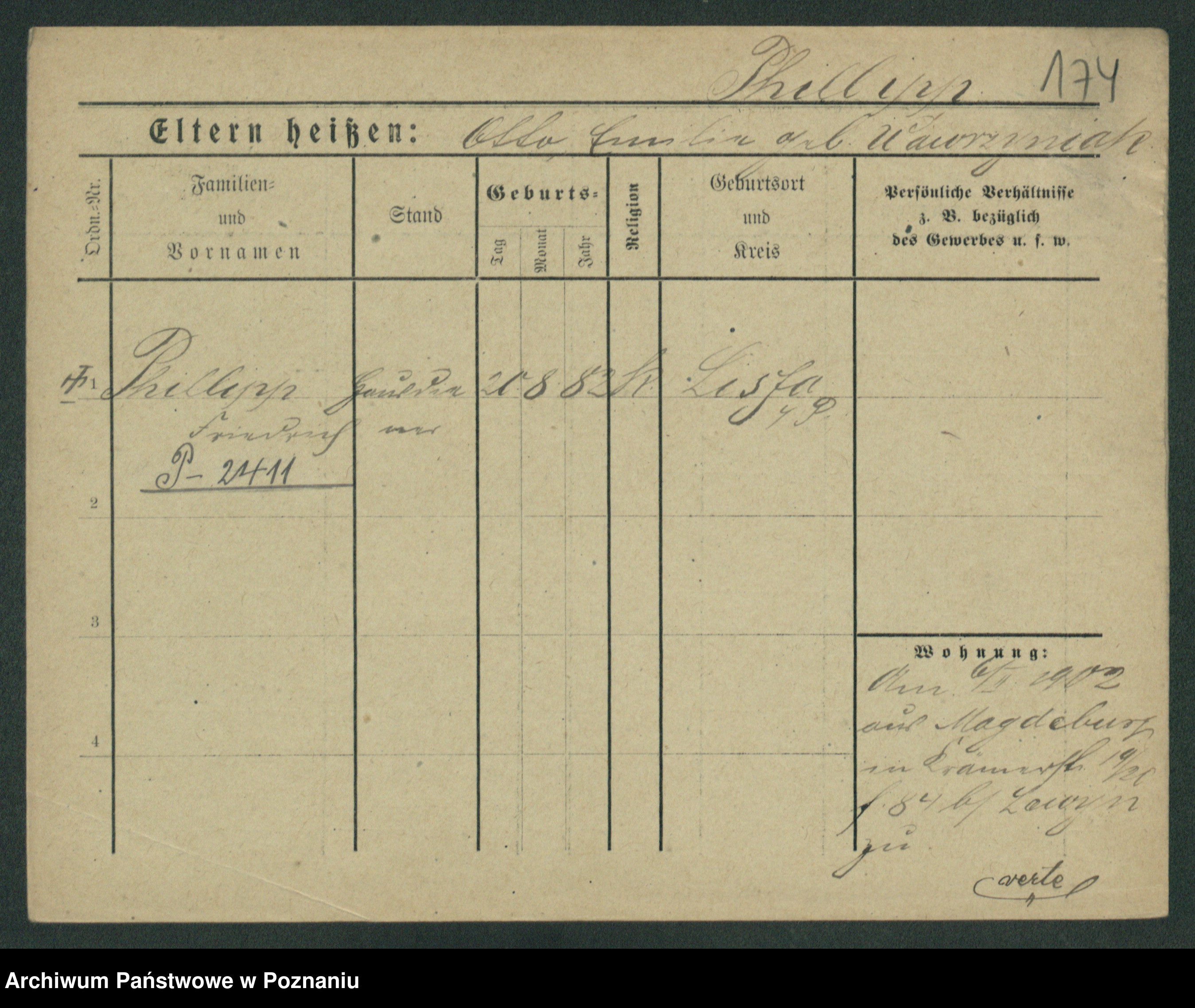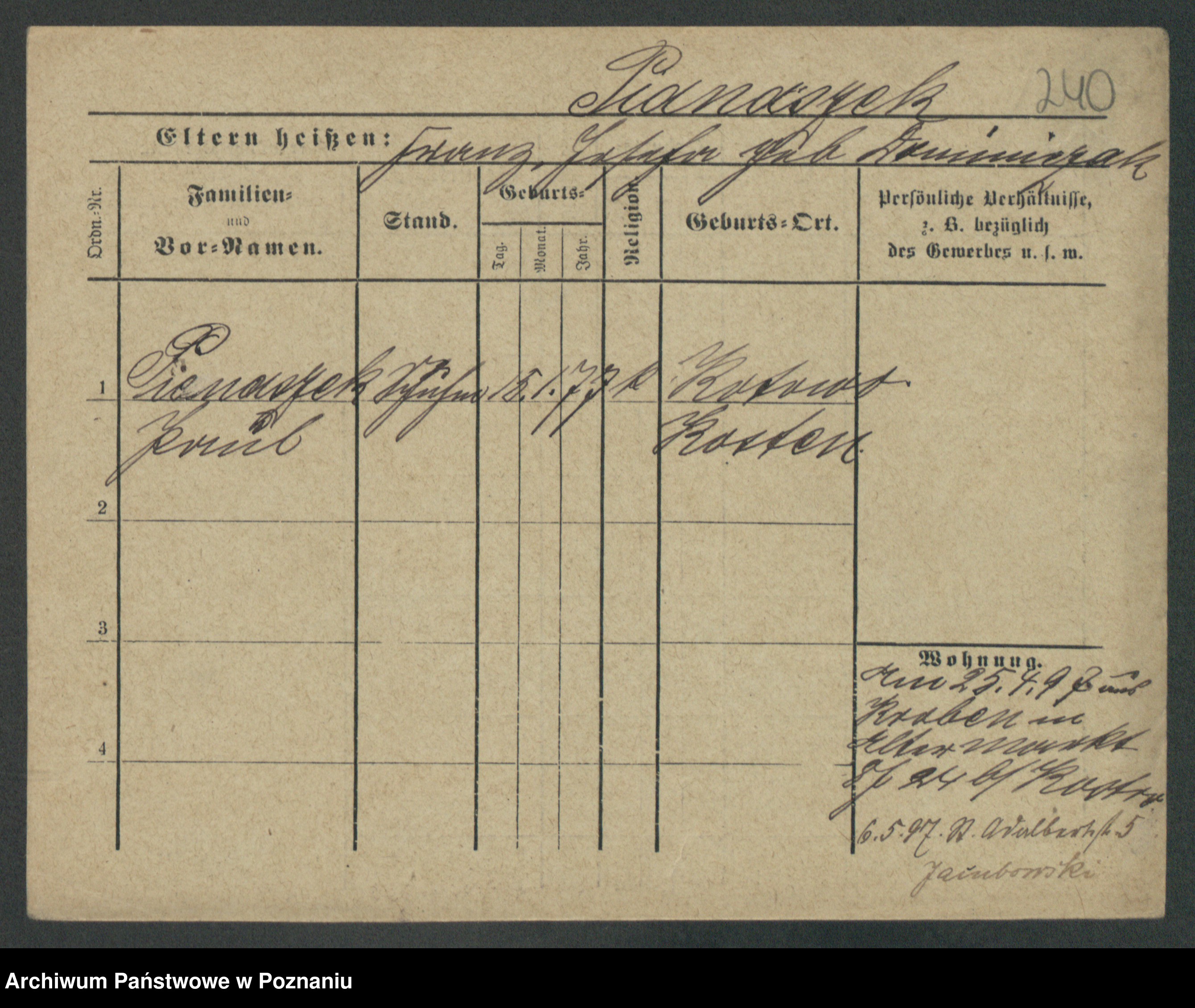 Podgląd karty osobowej dostępny jest po kliknięciu na nazwisko lub ikonkę karty. Można dokonywać powiększenia (ikony na górze) lub przechodzić między kolejnymi skanami (strzałki po bokach).