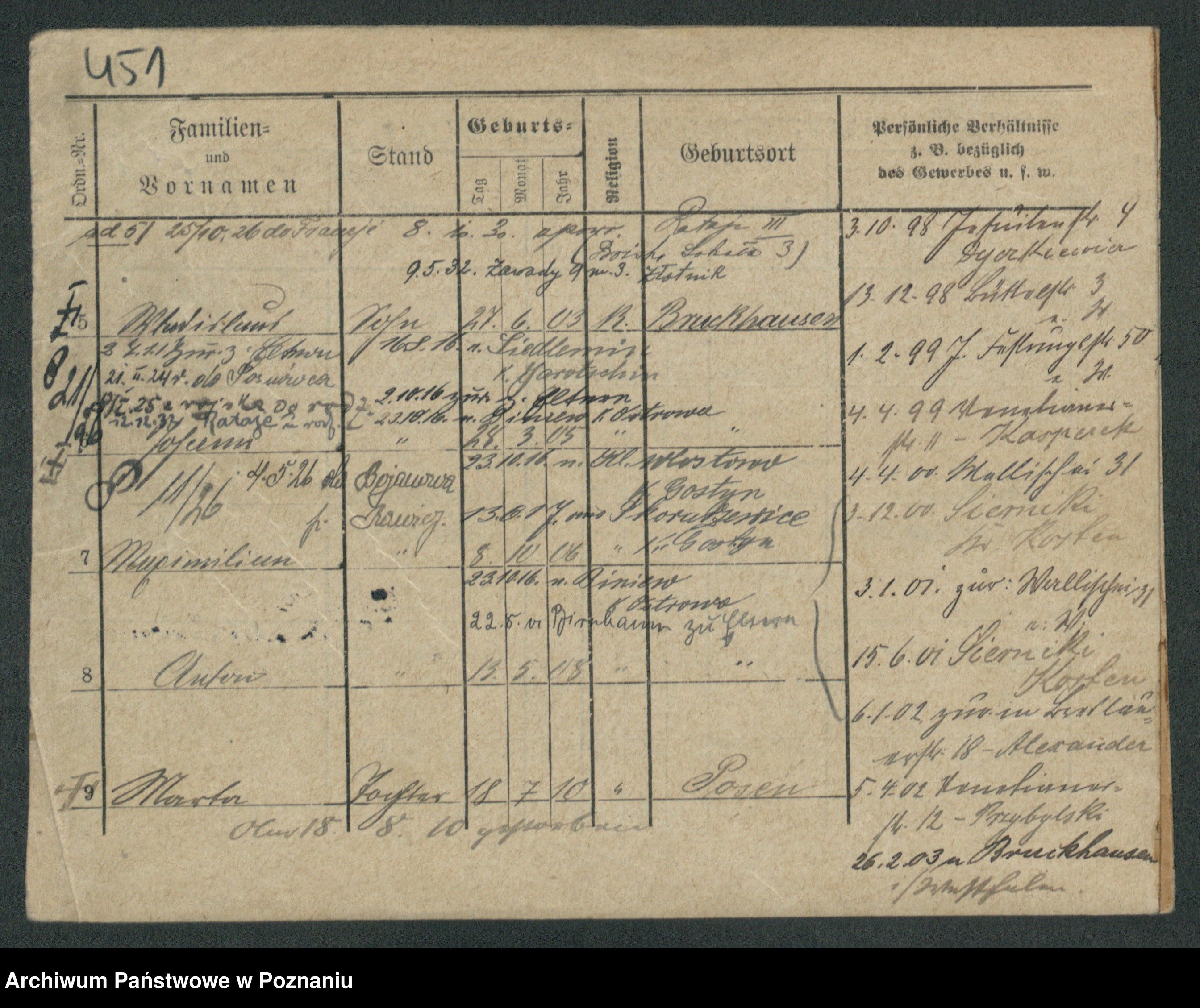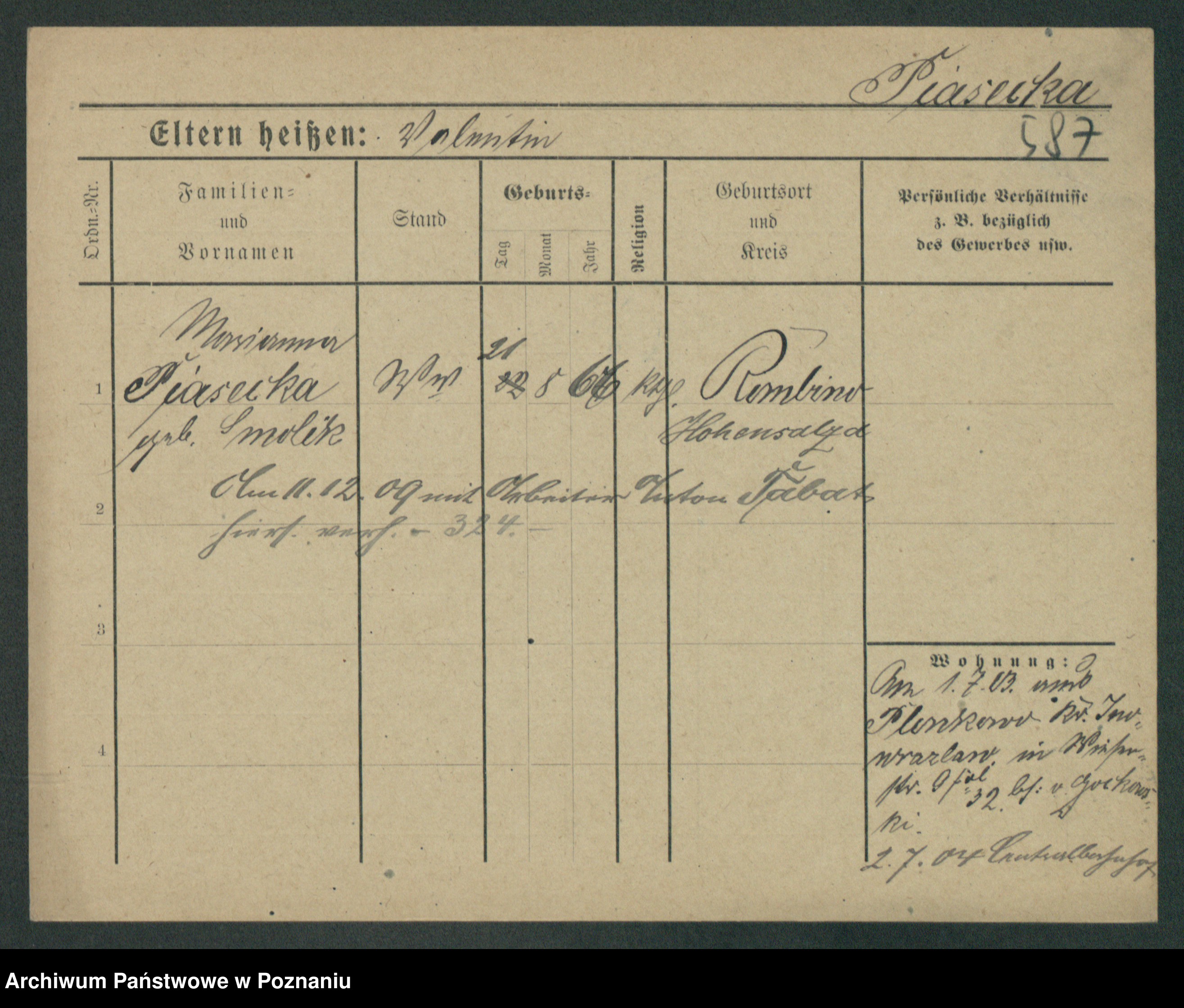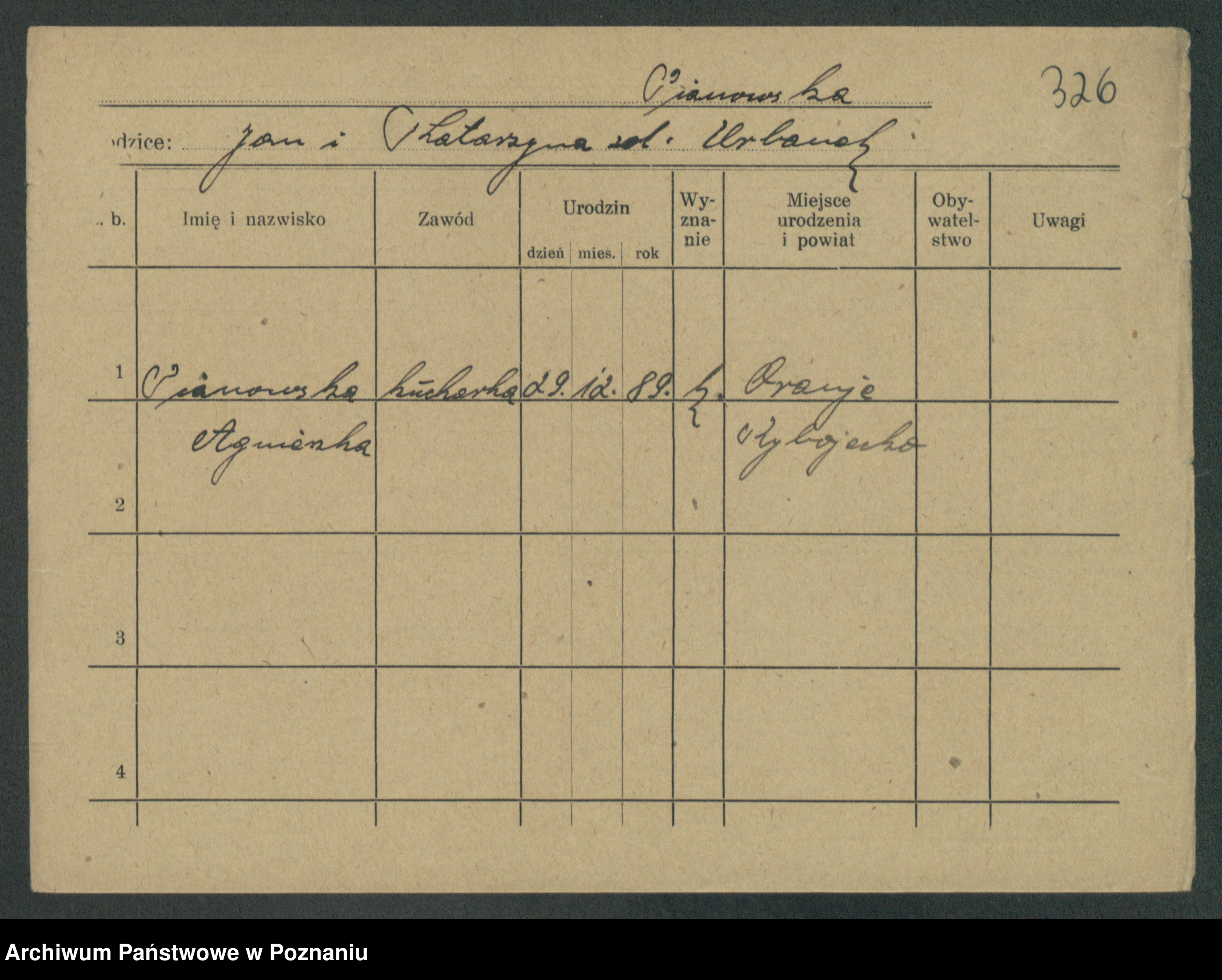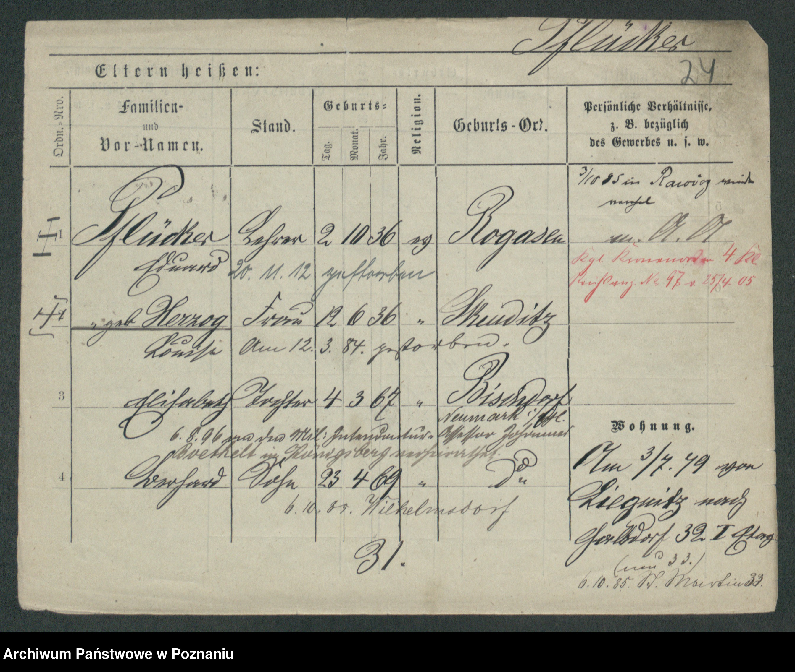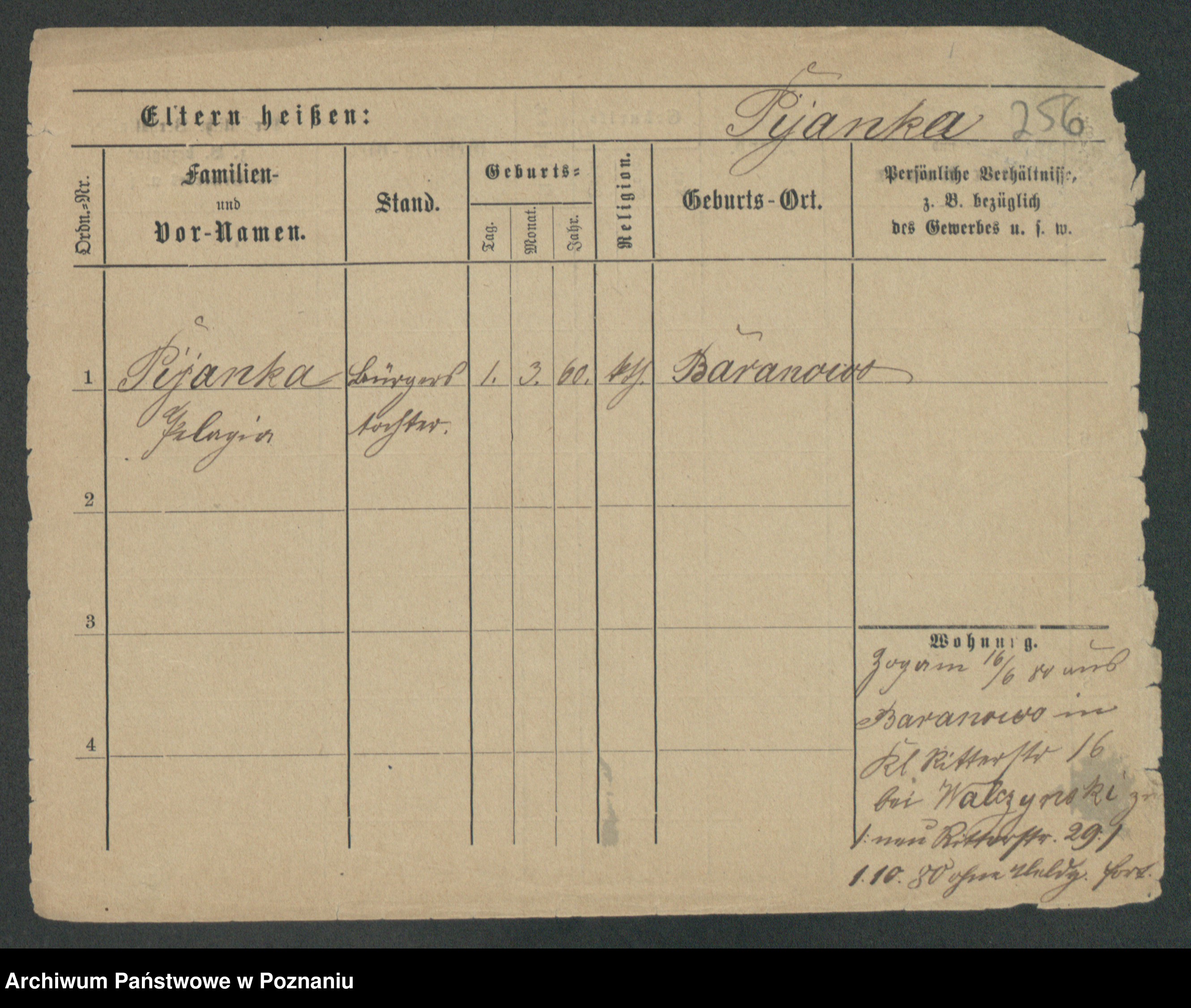 Podgląd karty osobowej dostępny jest po kliknięciu na nazwisko lub ikonkę karty. Można dokonywać powiększenia (ikony na górze) lub przechodzić między kolejnymi skanami (strzałki po bokach).