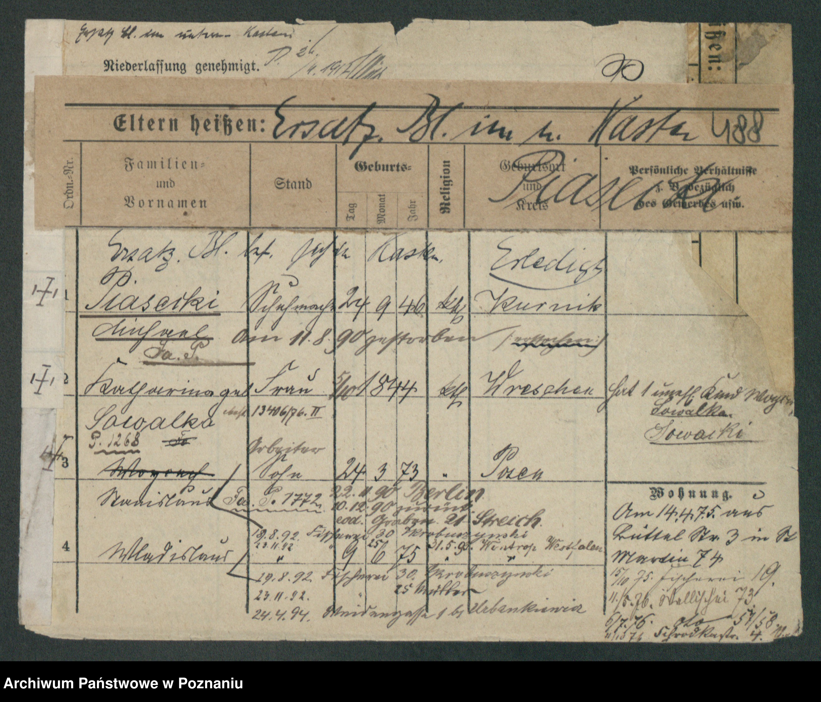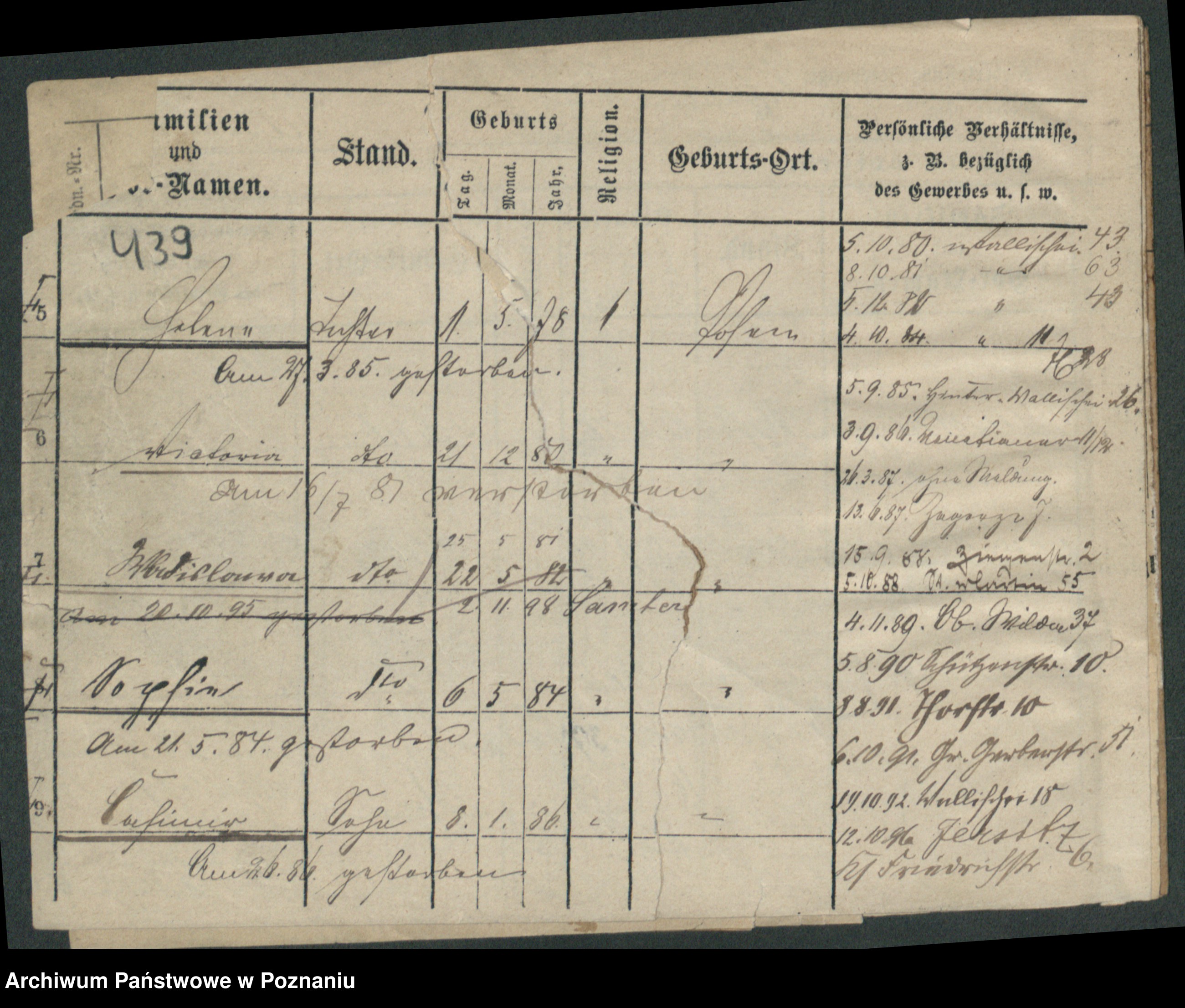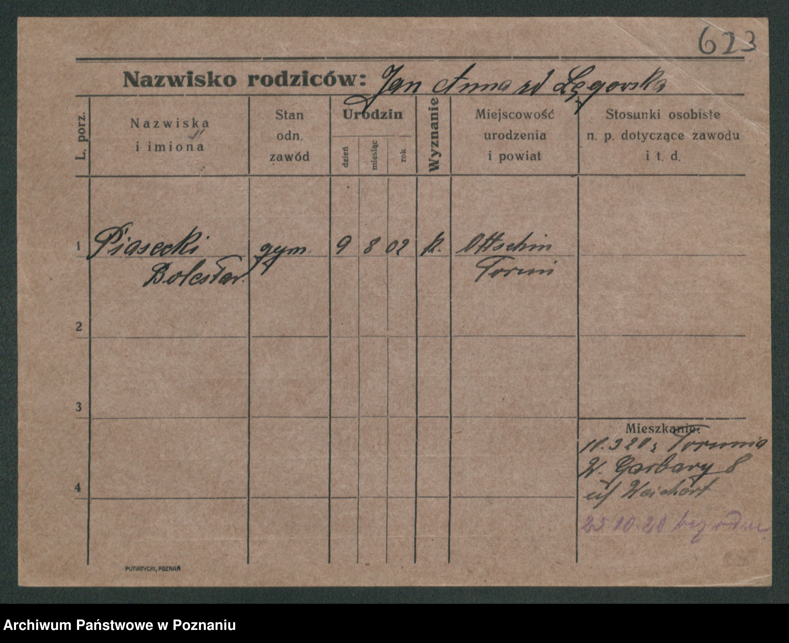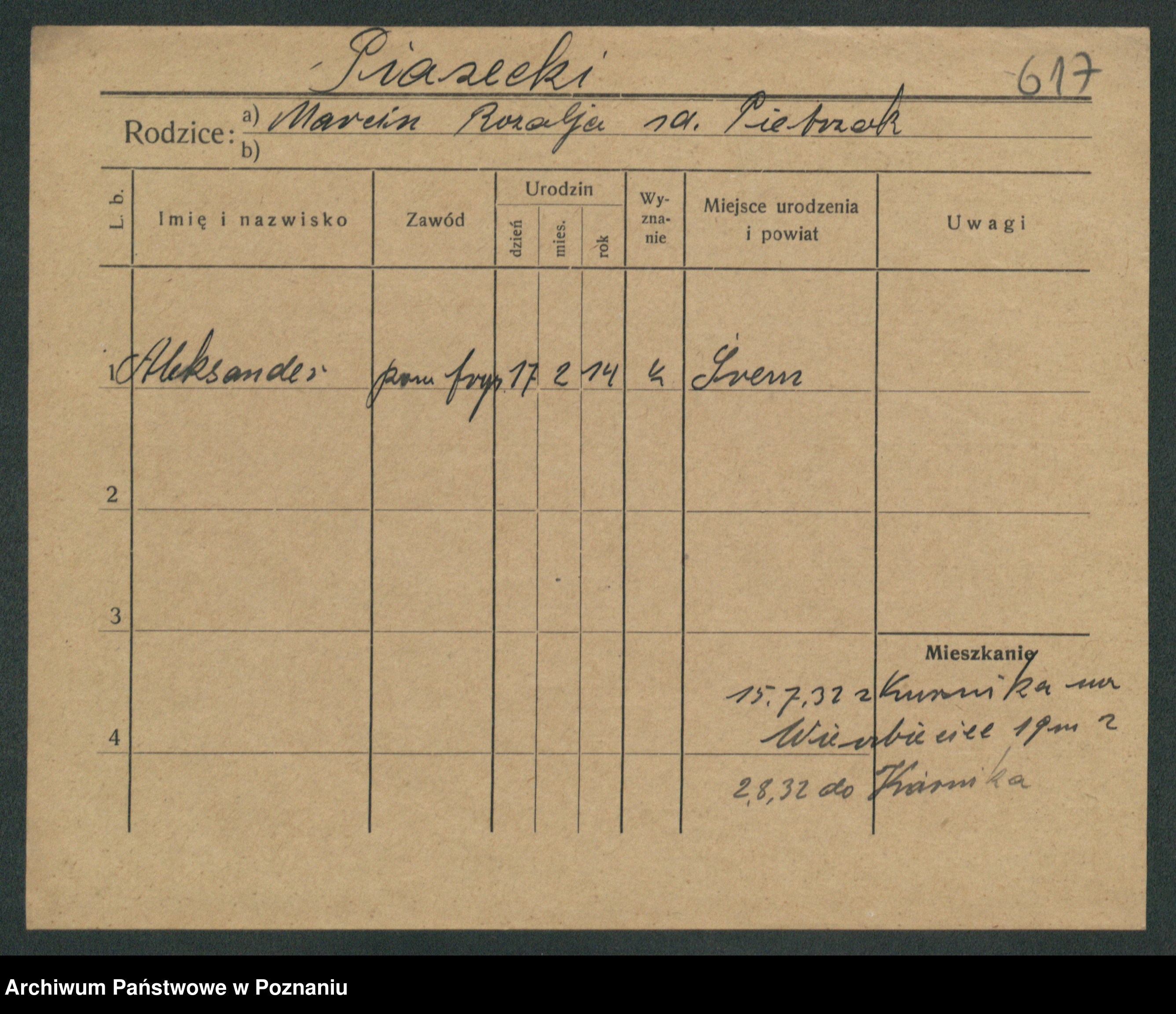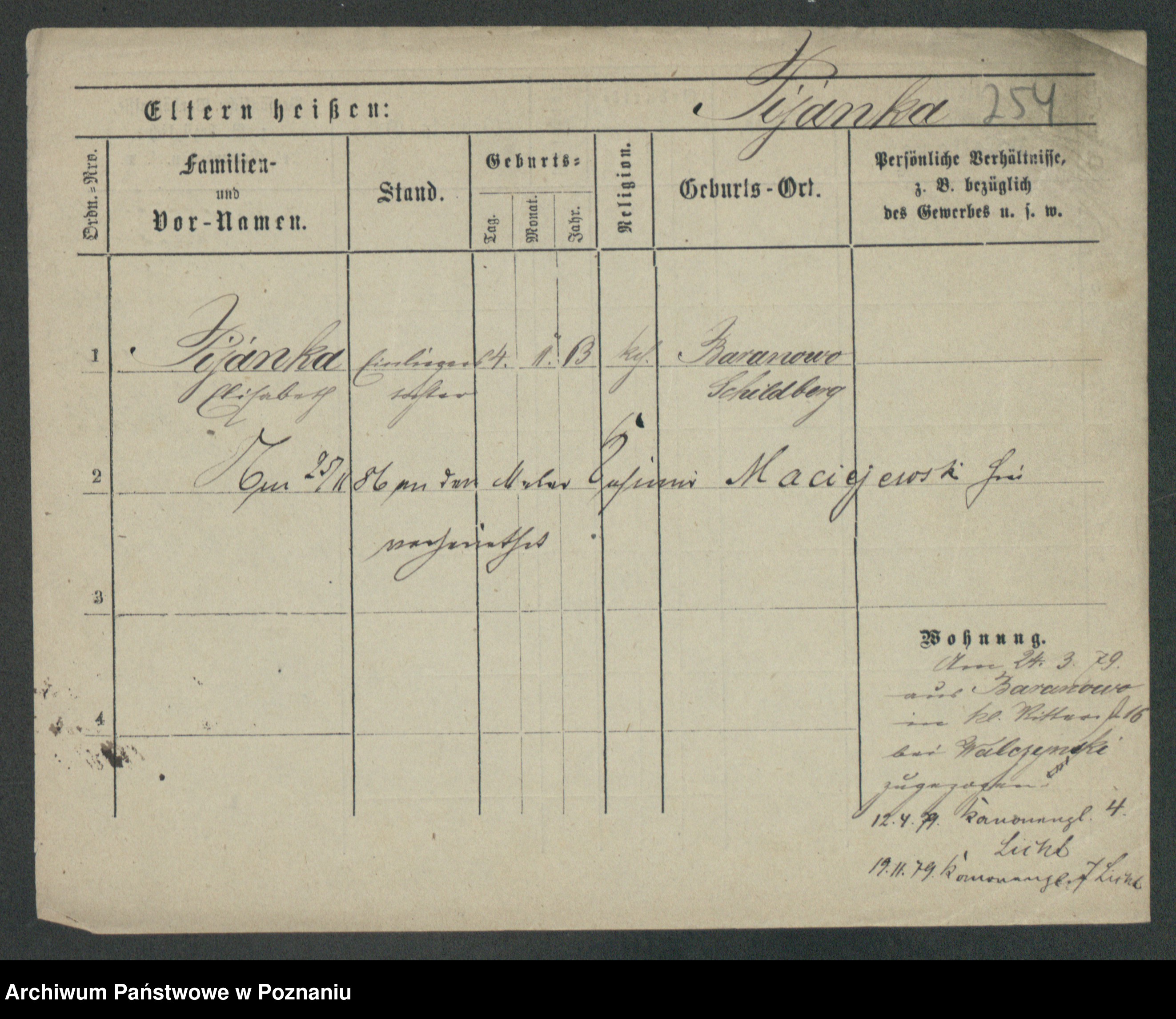 Podgląd karty osobowej dostępny jest po kliknięciu na nazwisko lub ikonkę karty. Można dokonywać powiększenia (ikony na górze) lub przechodzić między kolejnymi skanami (strzałki po bokach).