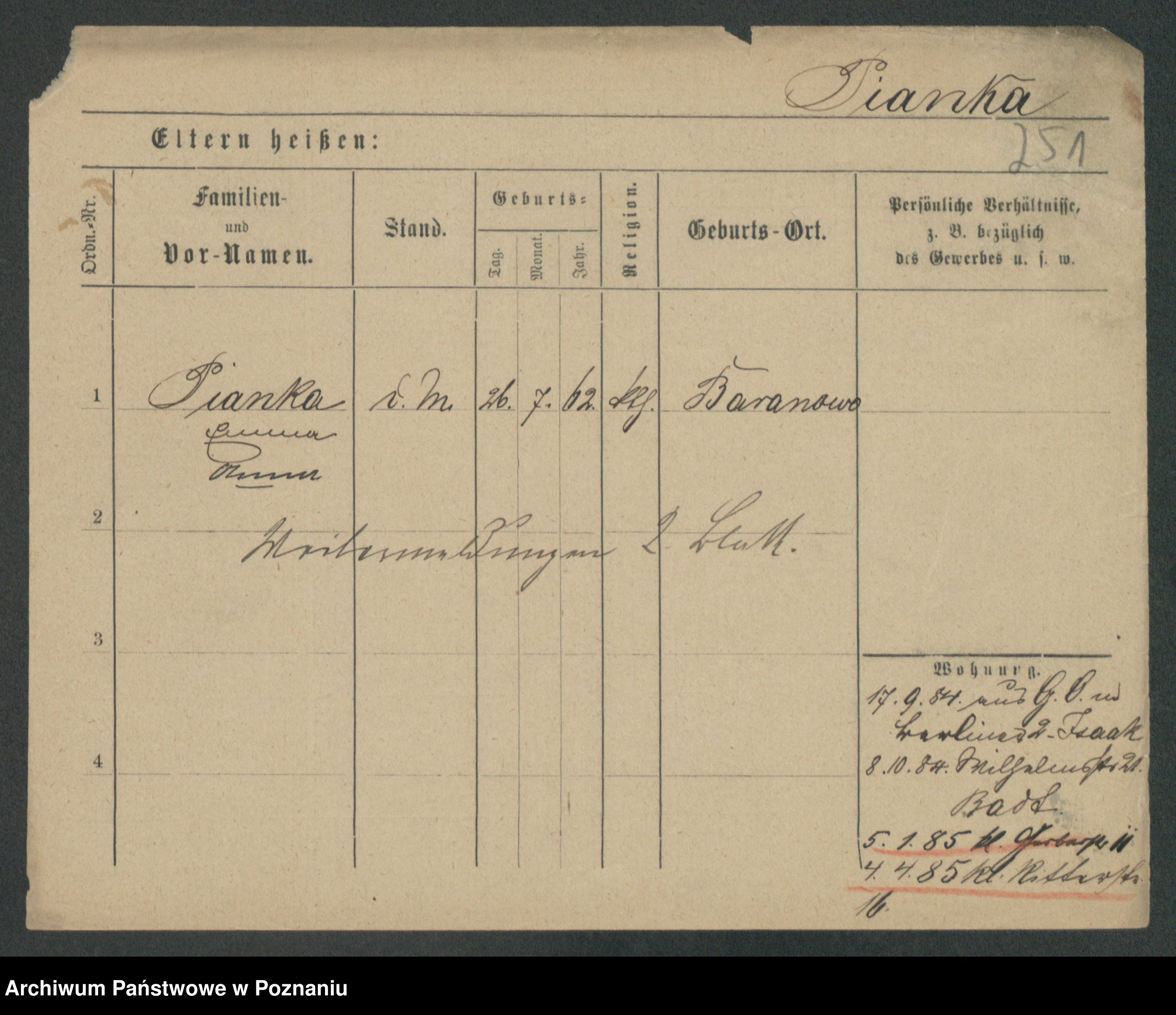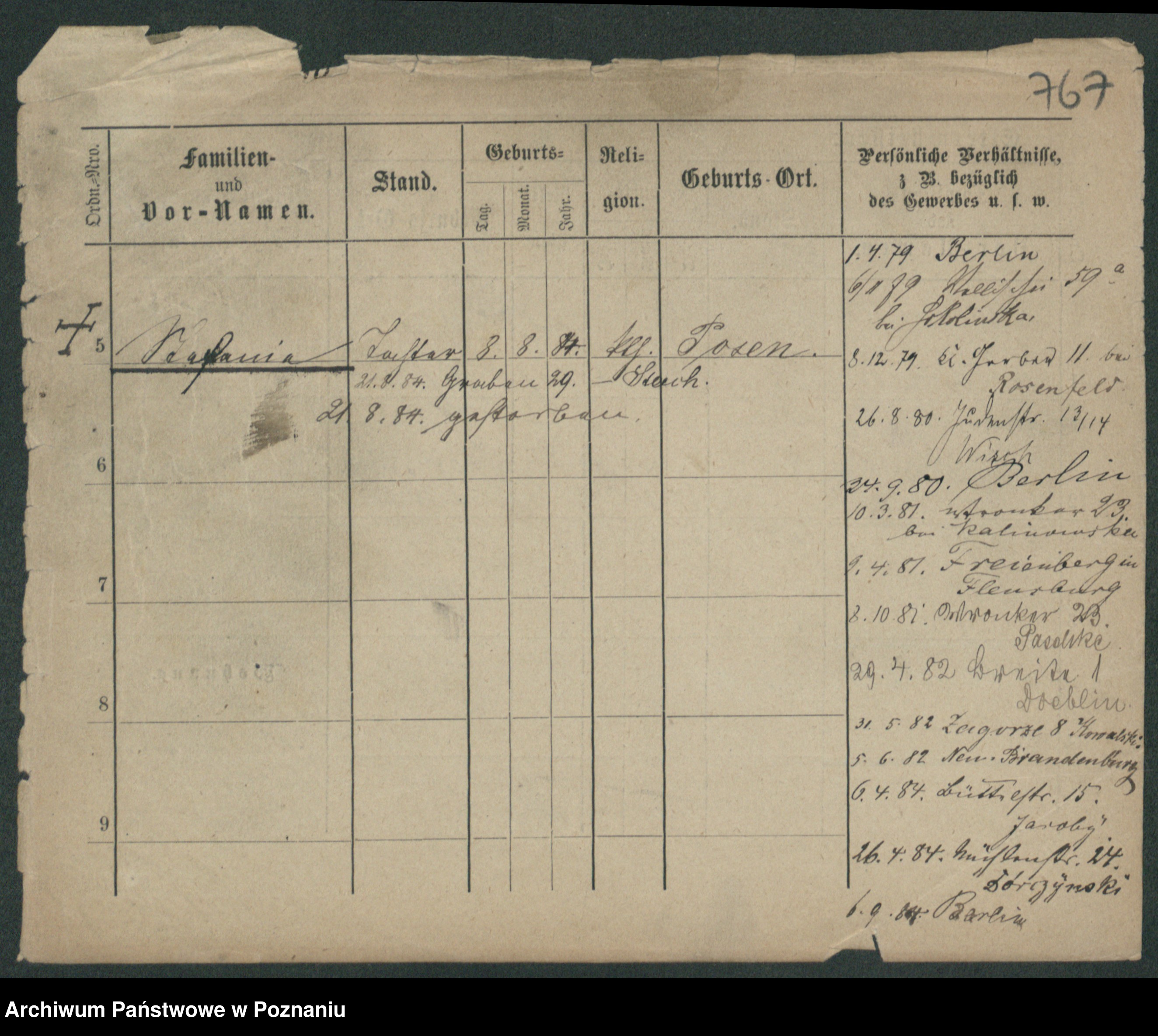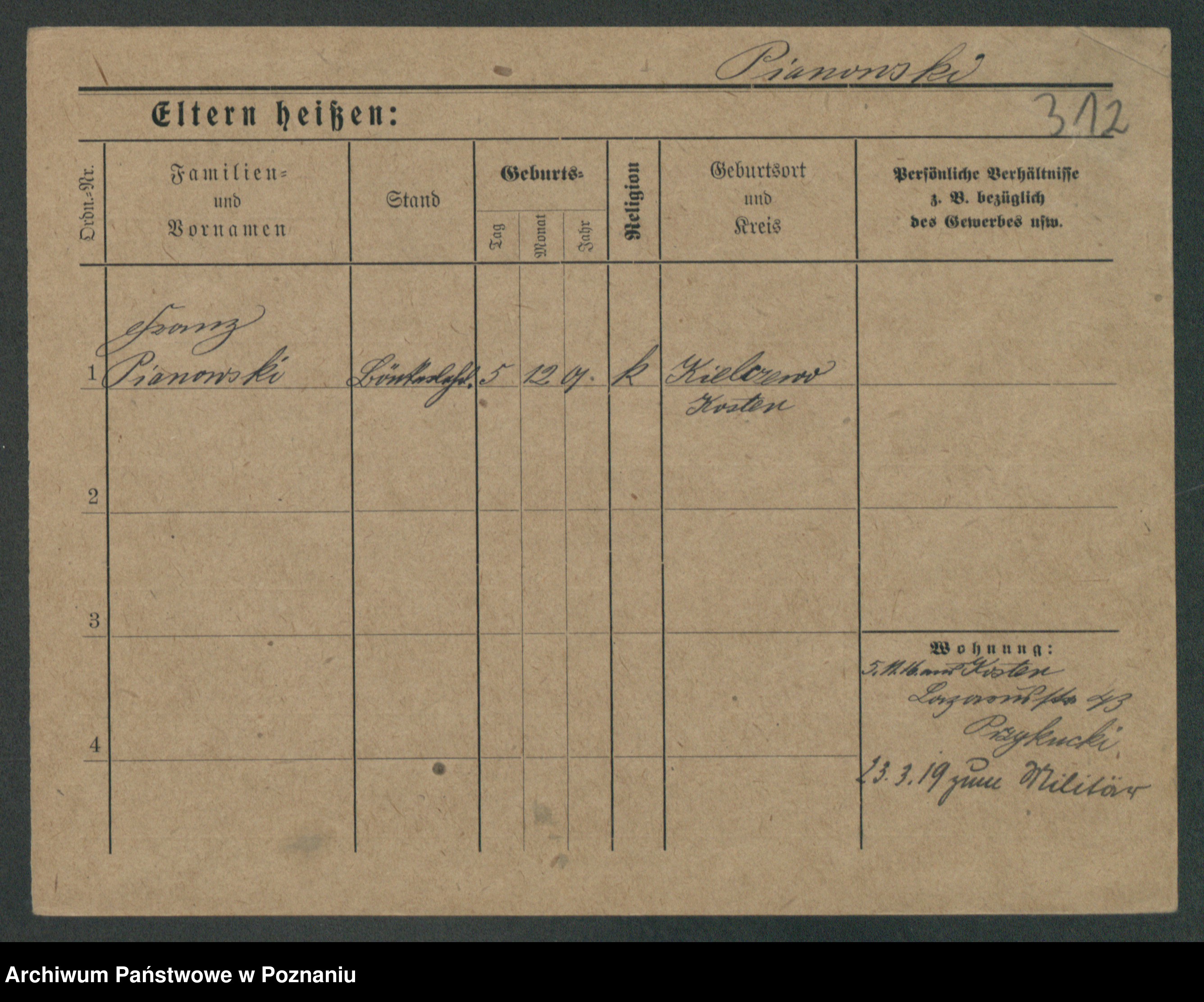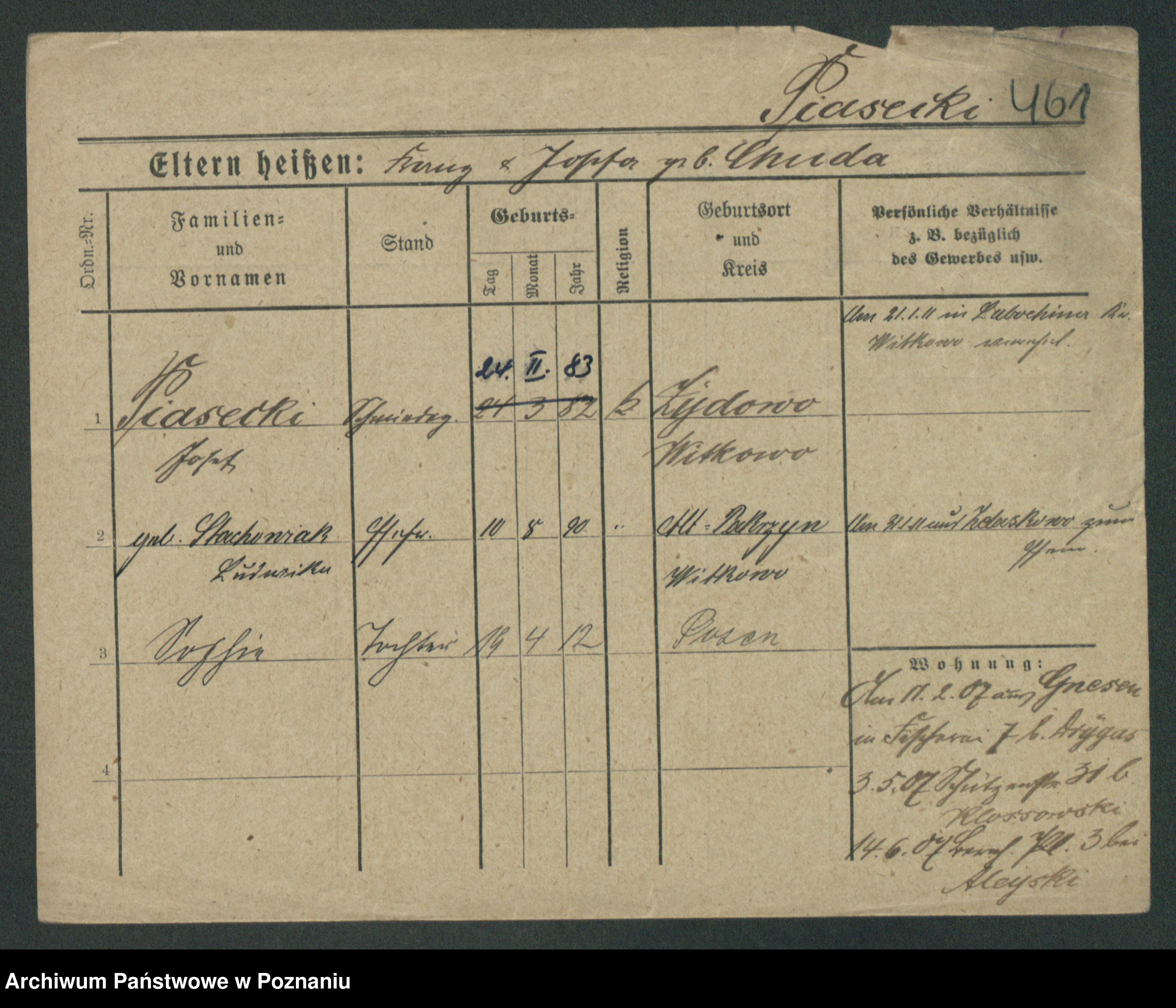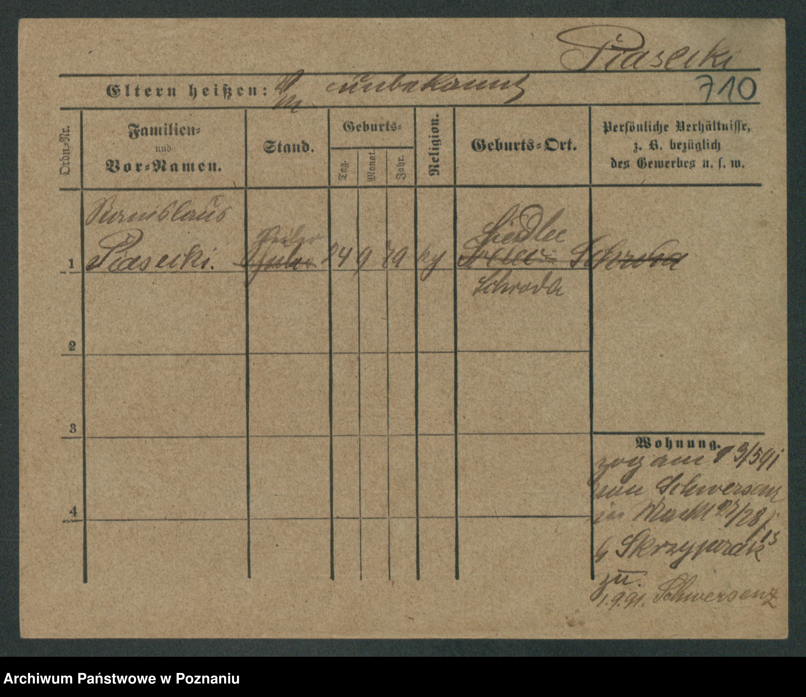 Podgląd karty osobowej dostępny jest po kliknięciu na nazwisko lub ikonkę karty. Można dokonywać powiększenia (ikony na górze) lub przechodzić między kolejnymi skanami (strzałki po bokach).