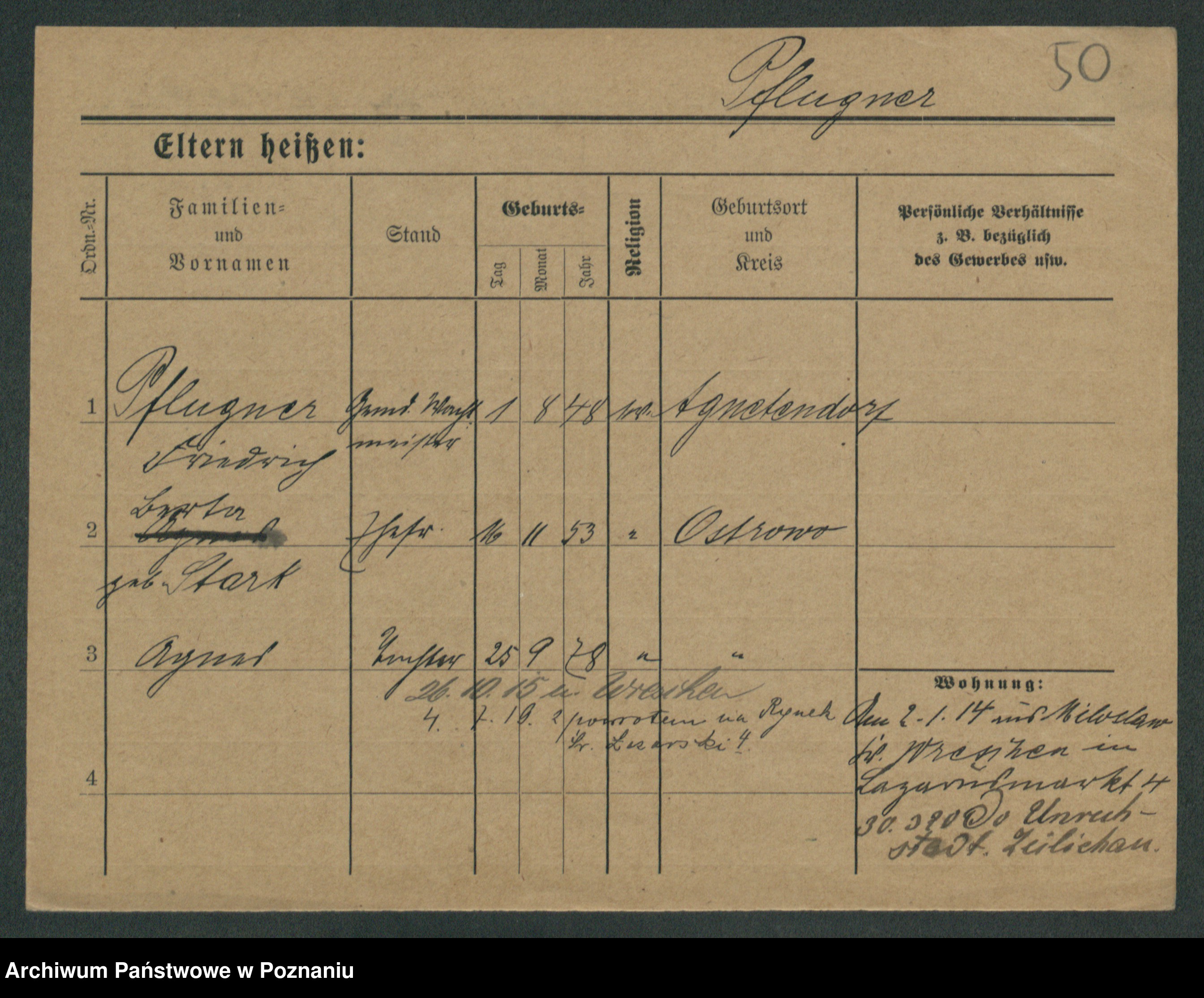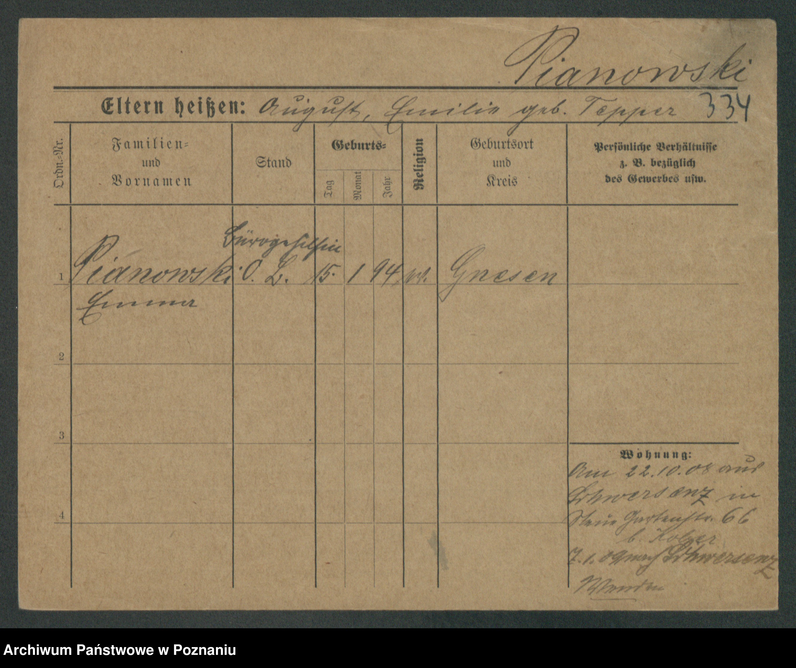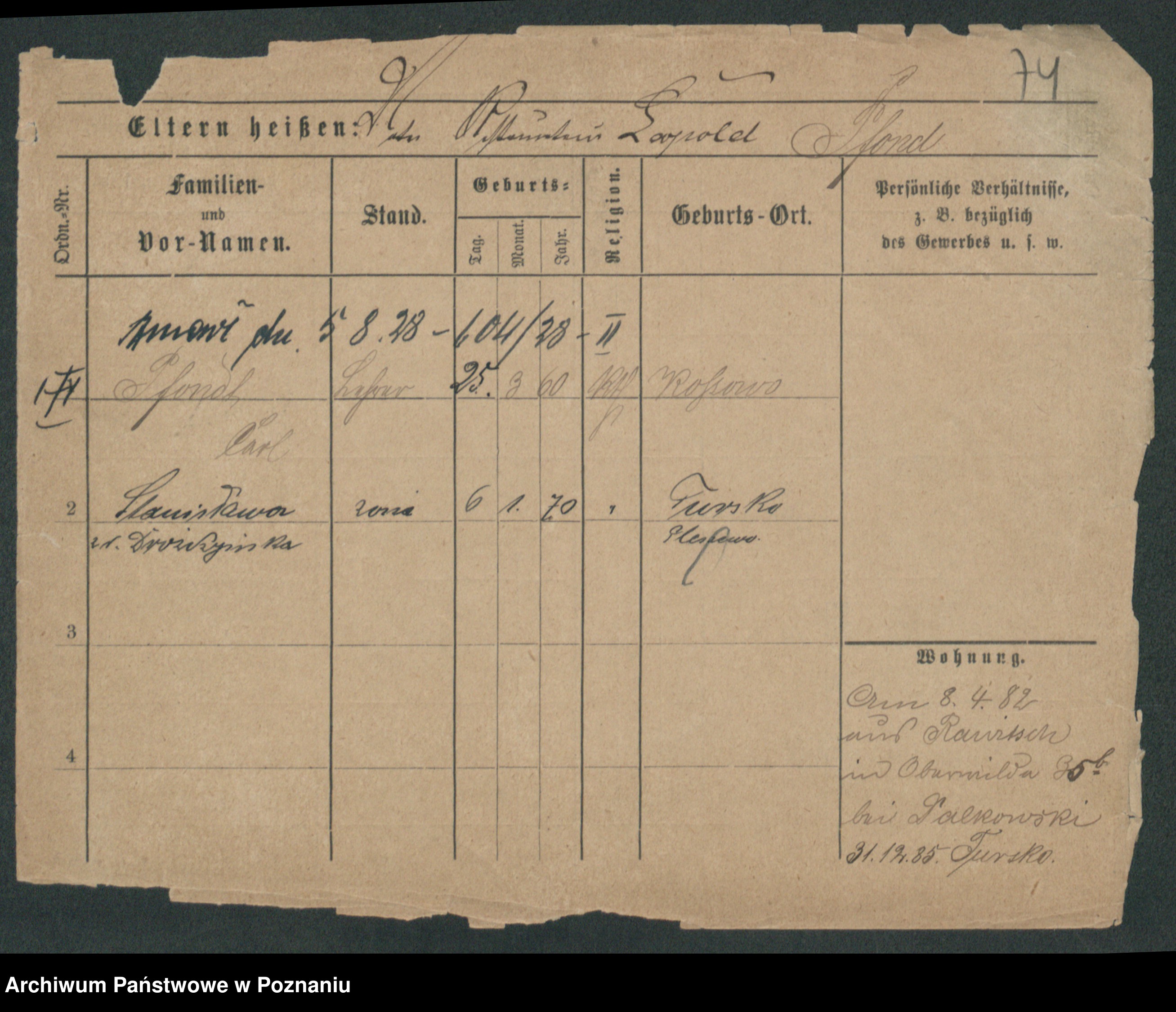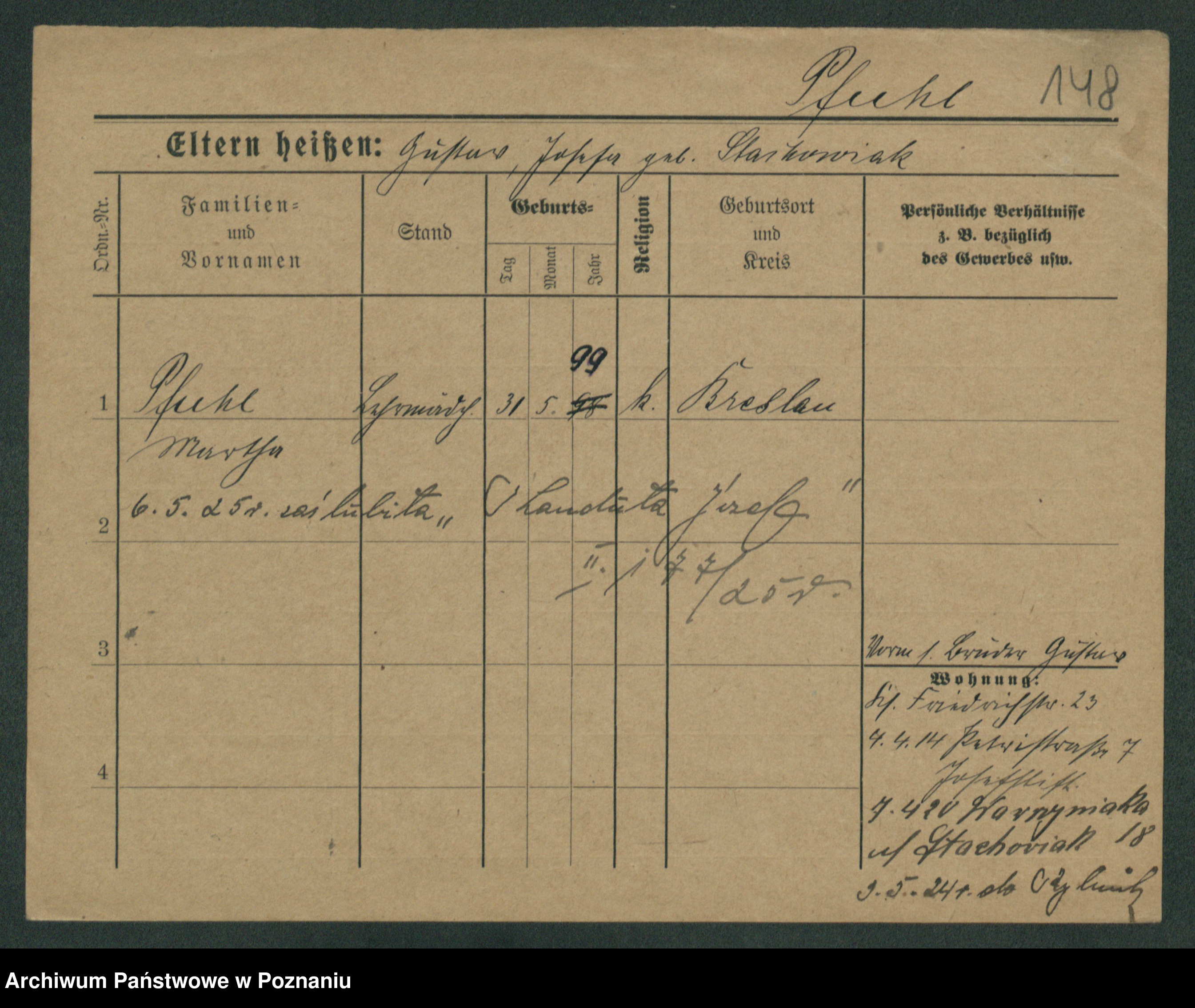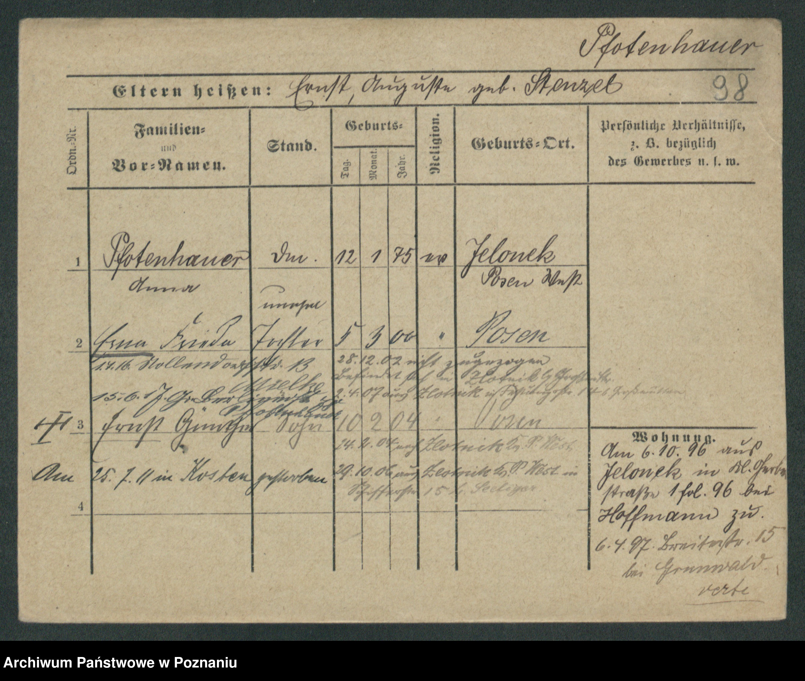 Podgląd karty osobowej dostępny jest po kliknięciu na nazwisko lub ikonkę karty. Można dokonywać powiększenia (ikony na górze) lub przechodzić między kolejnymi skanami (strzałki po bokach).