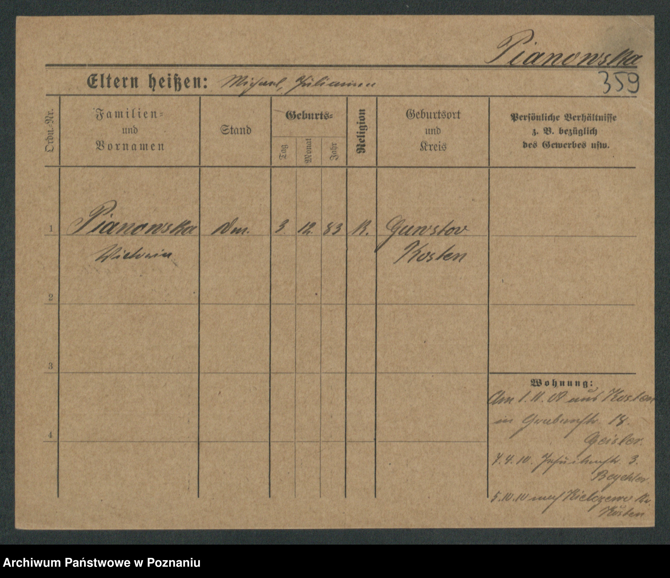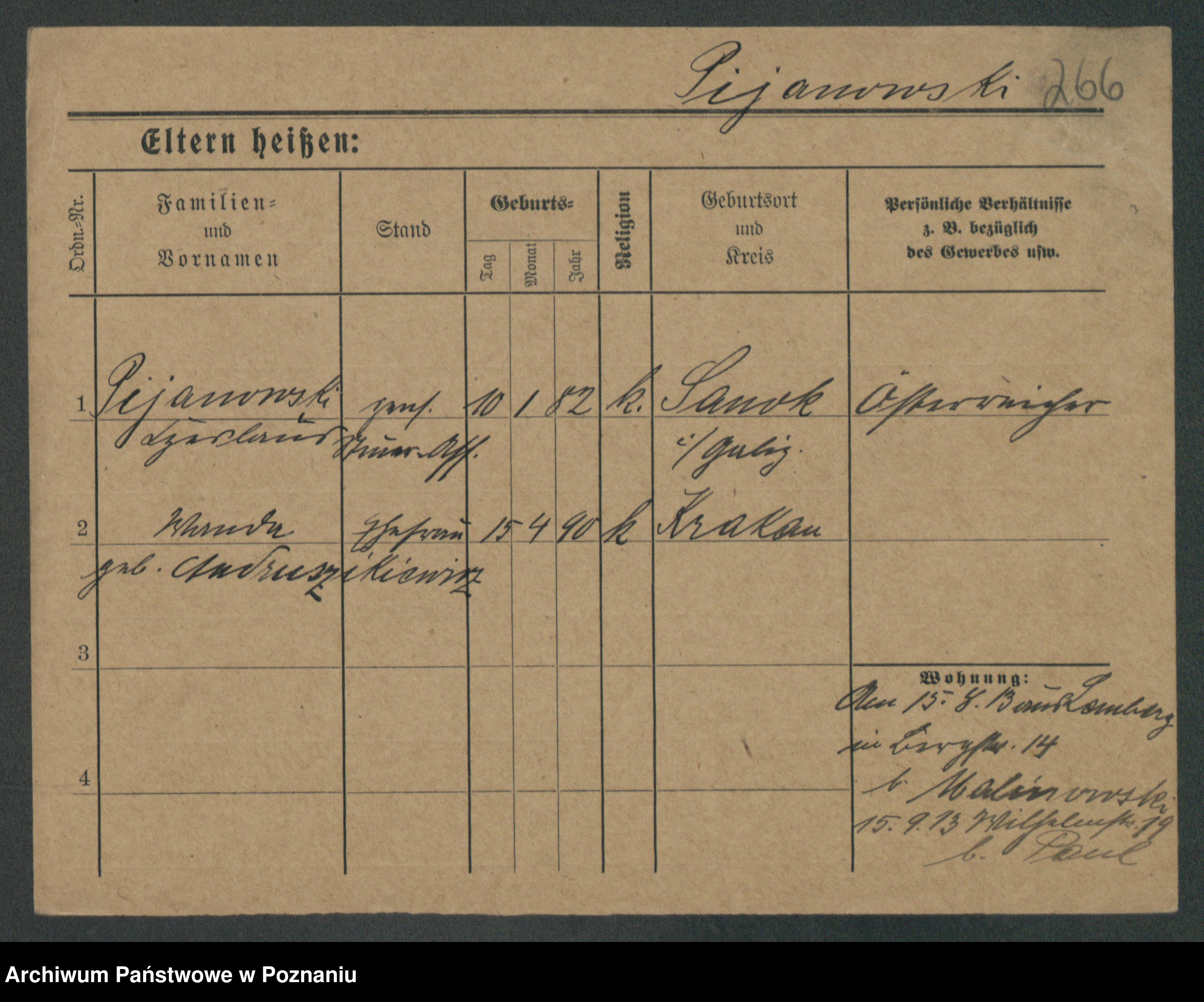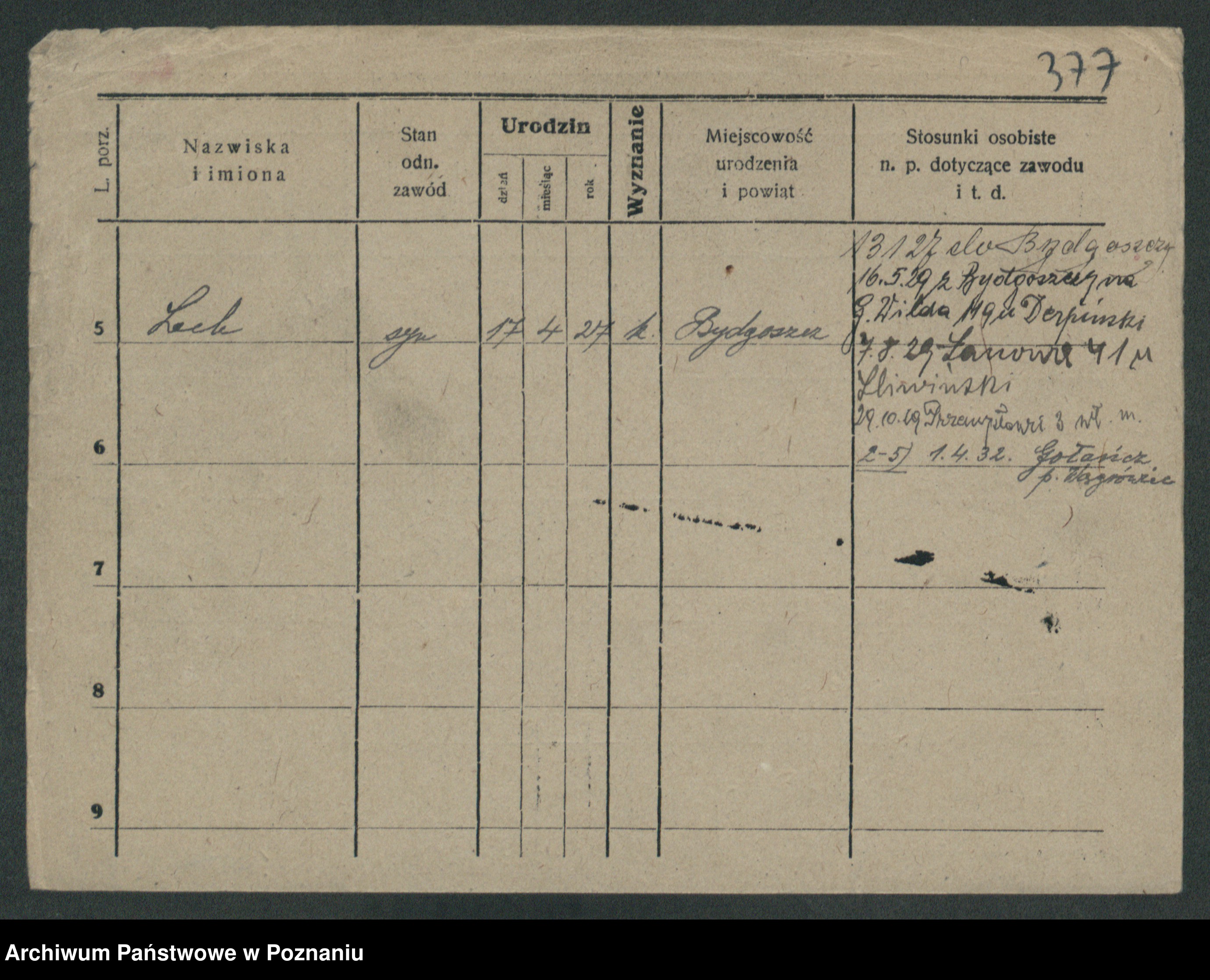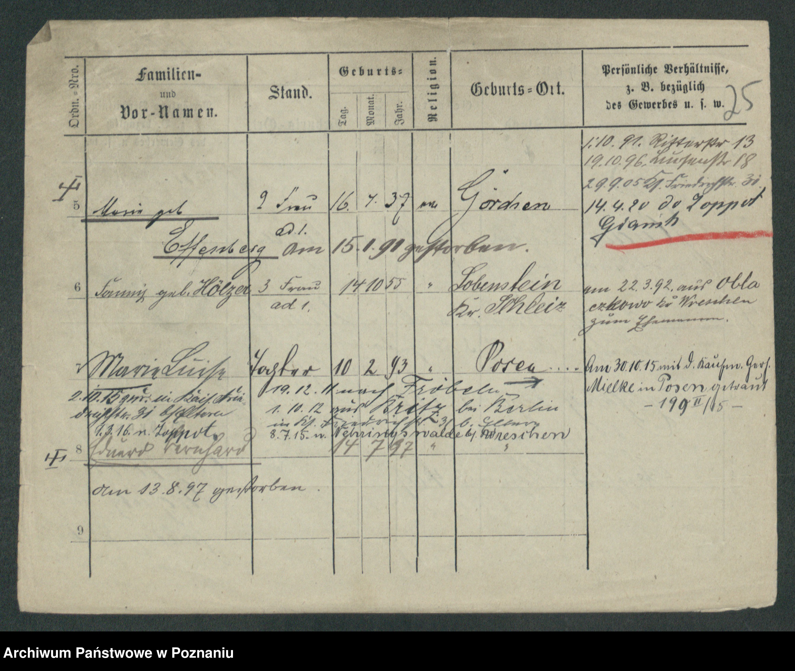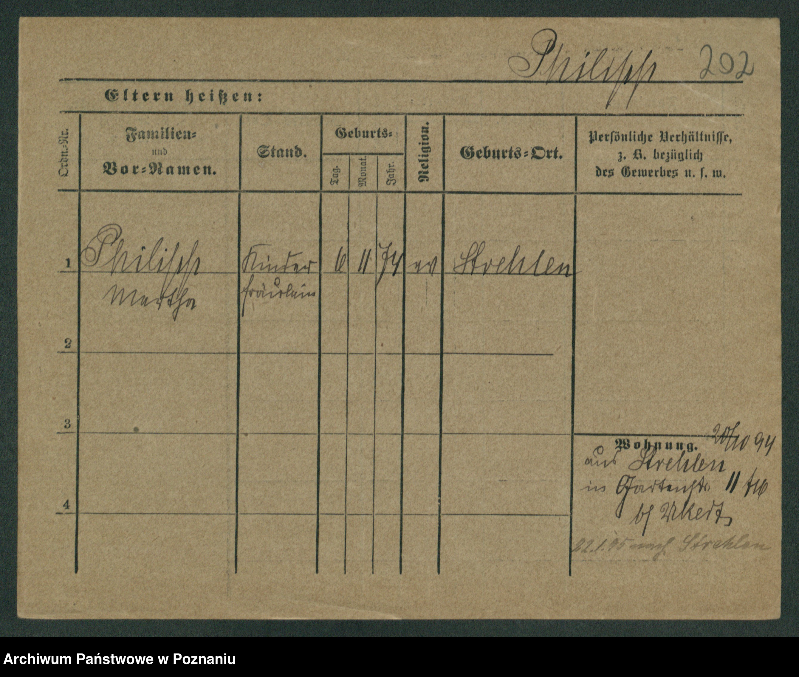 Podgląd karty osobowej dostępny jest po kliknięciu na nazwisko lub ikonkę karty. Można dokonywać powiększenia (ikony na górze) lub przechodzić między kolejnymi skanami (strzałki po bokach).