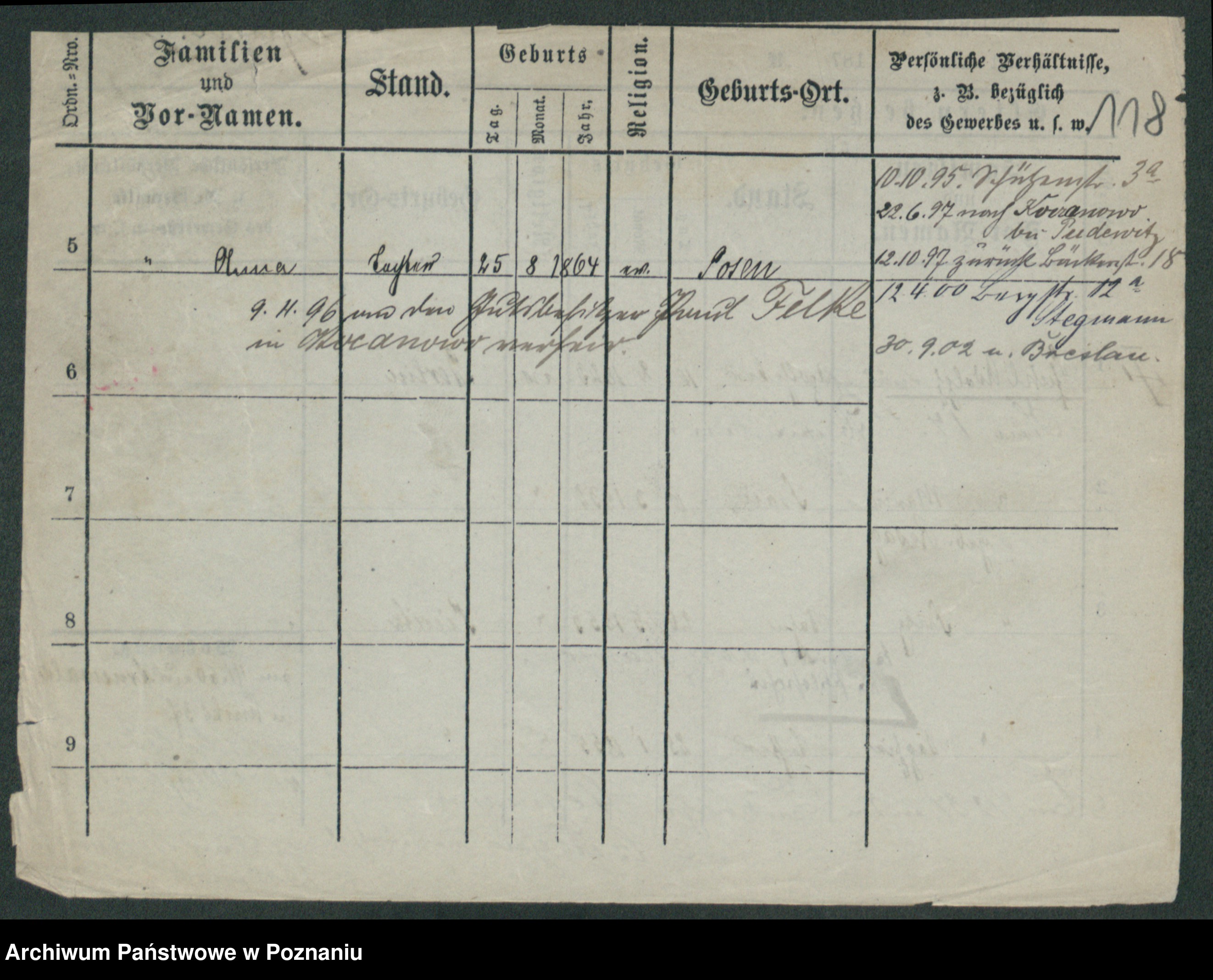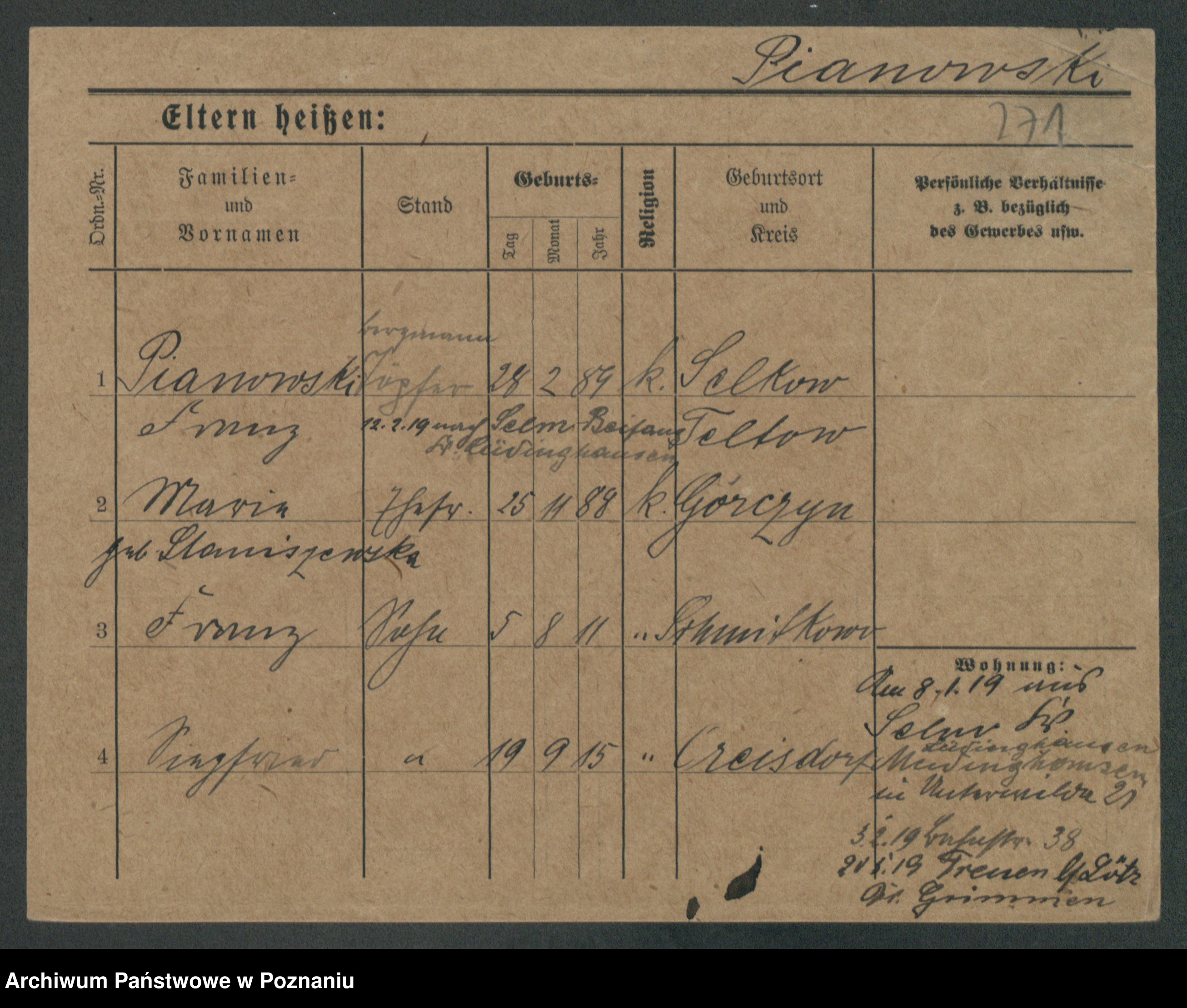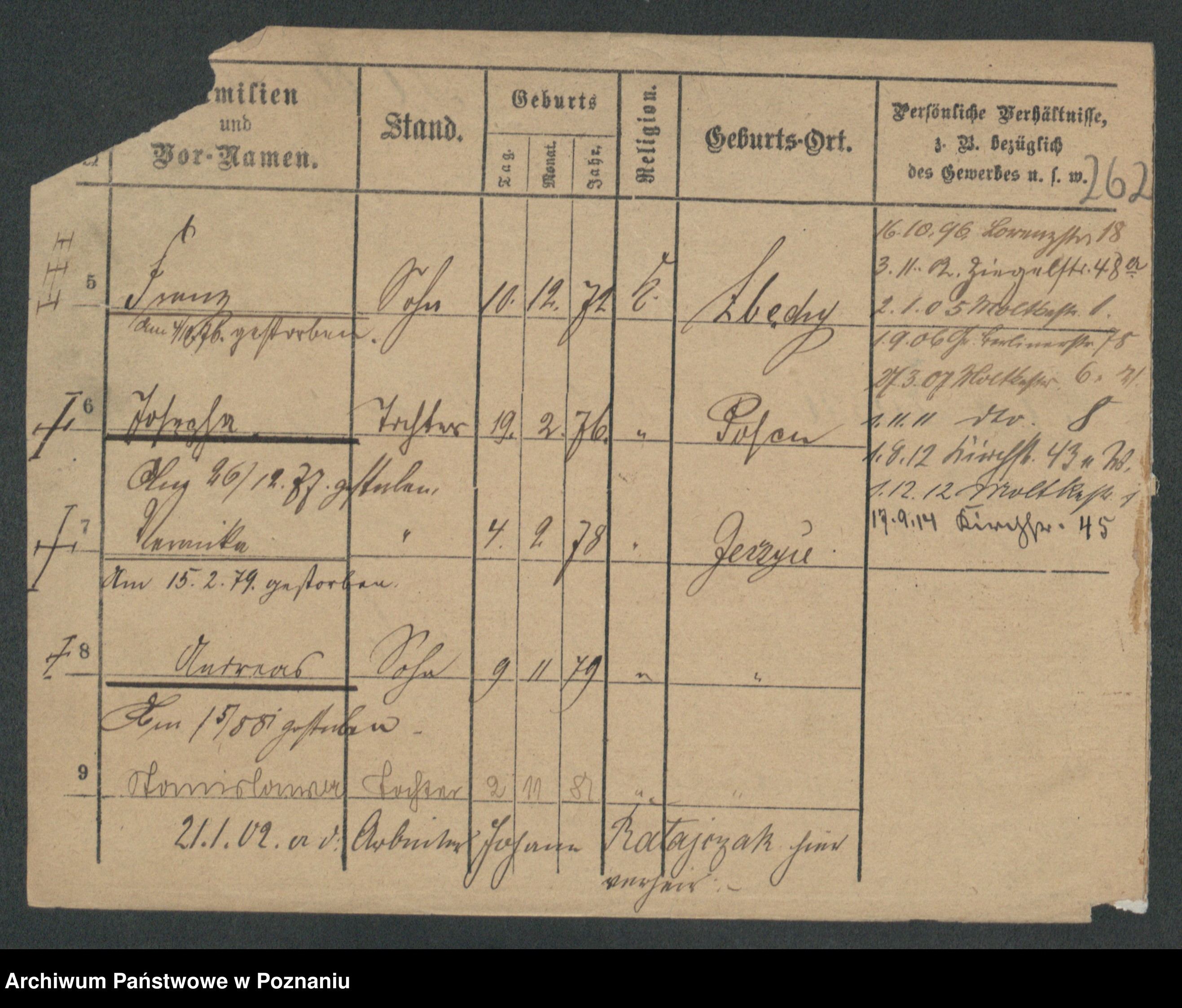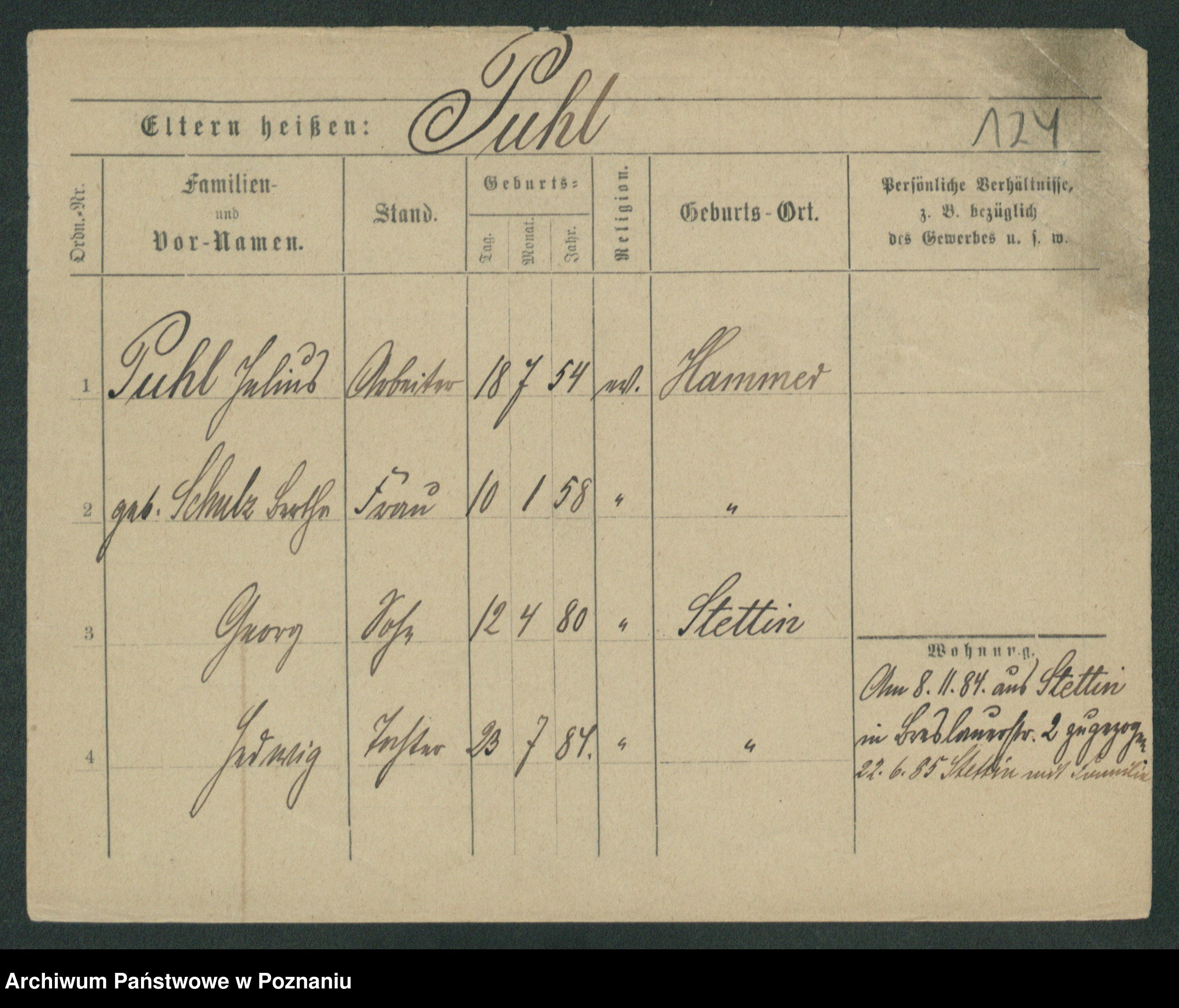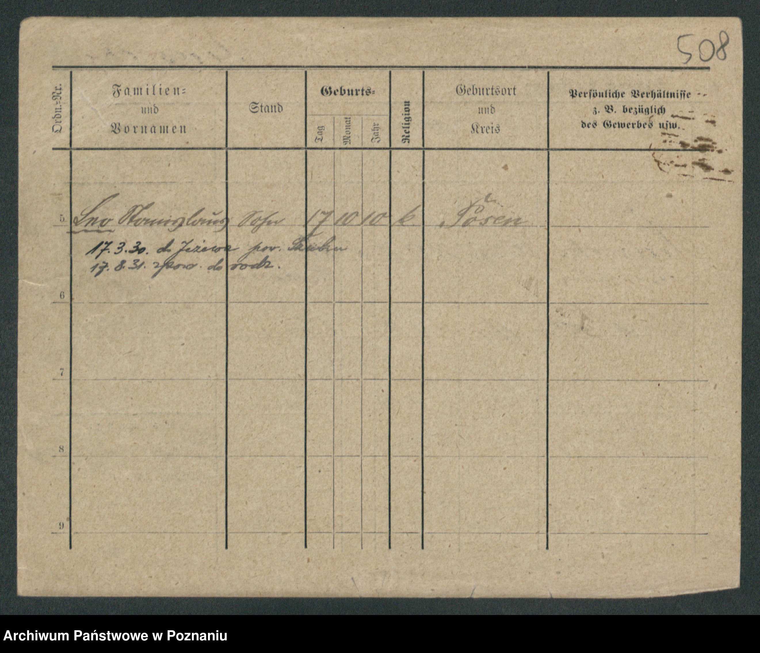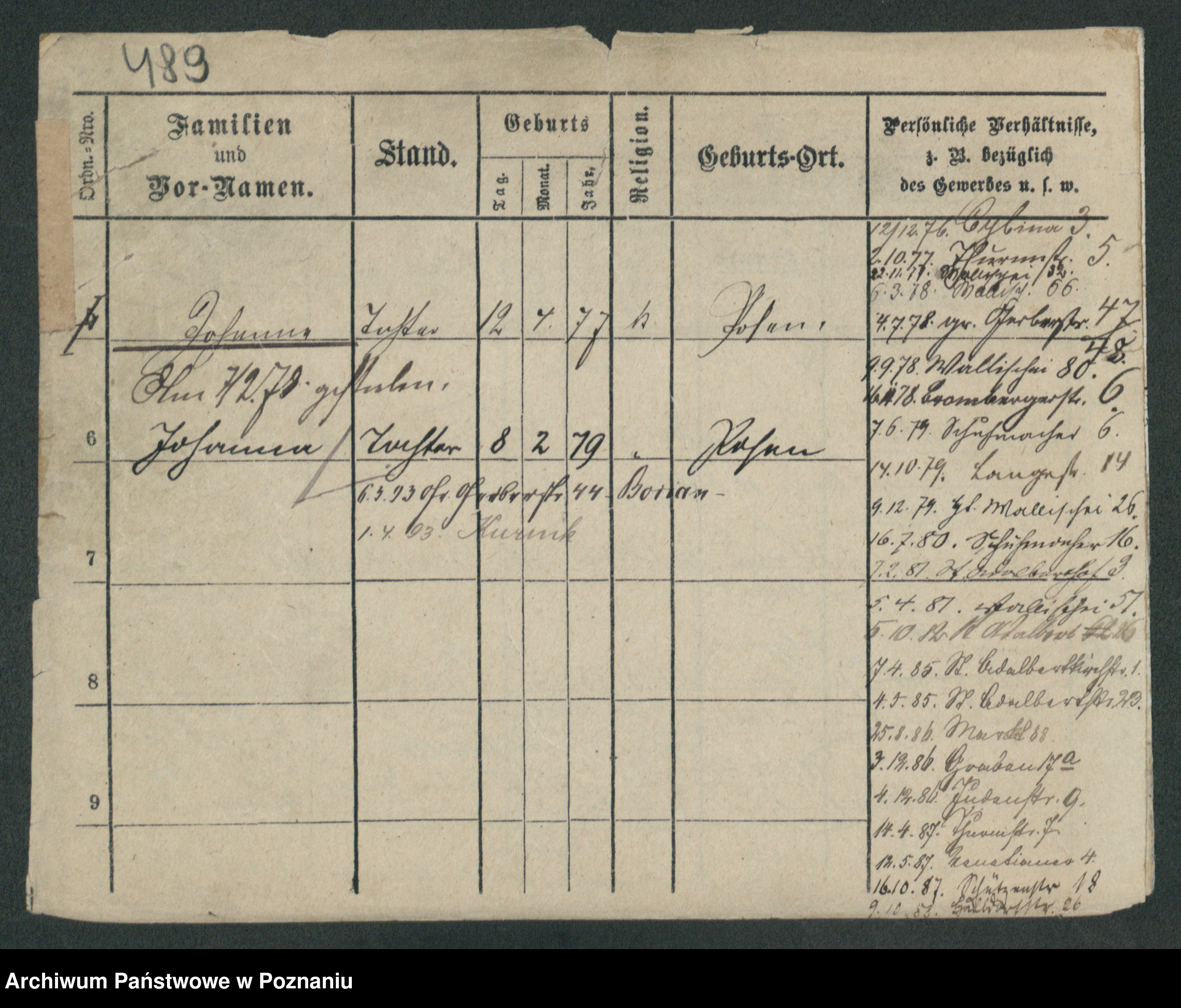 Podgląd karty osobowej dostępny jest po kliknięciu na nazwisko lub ikonkę karty. Można dokonywać powiększenia (ikony na górze) lub przechodzić między kolejnymi skanami (strzałki po bokach).