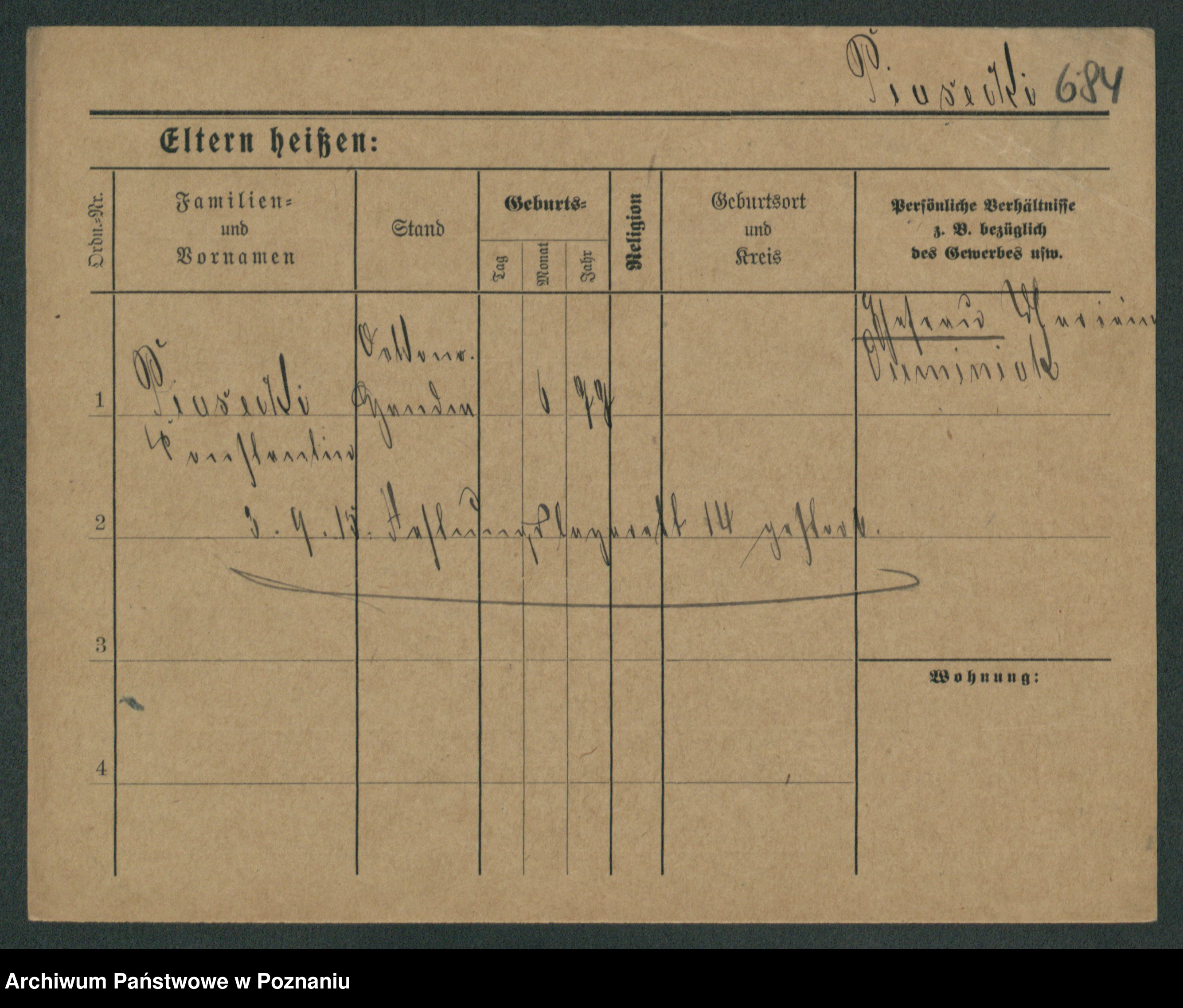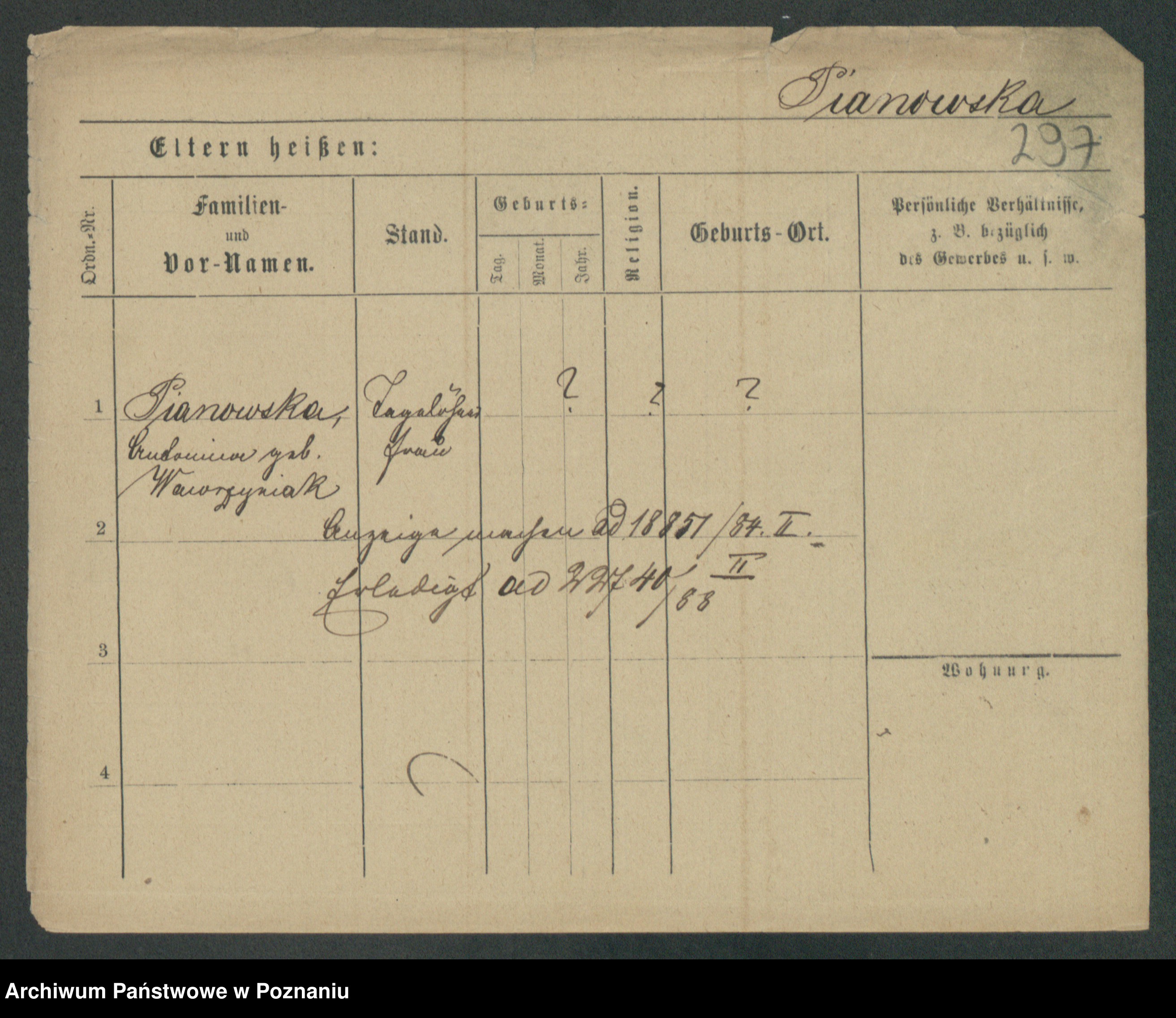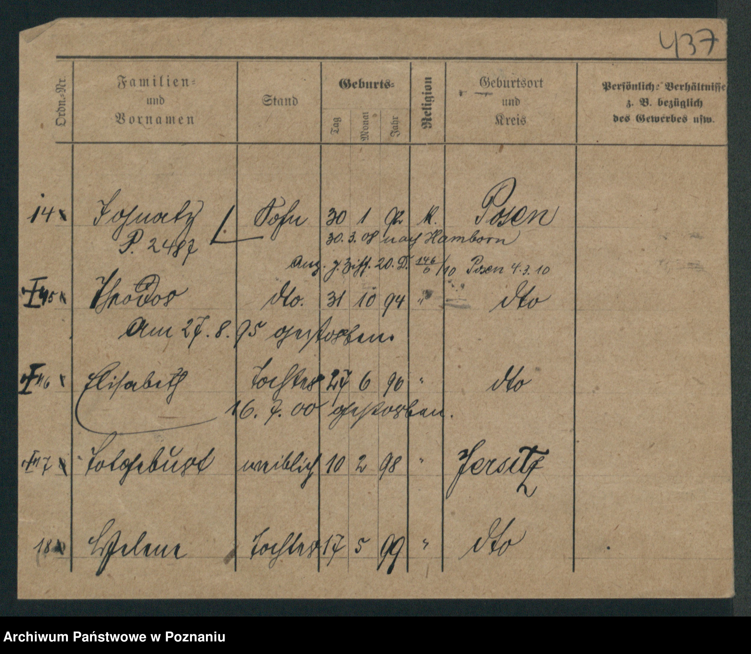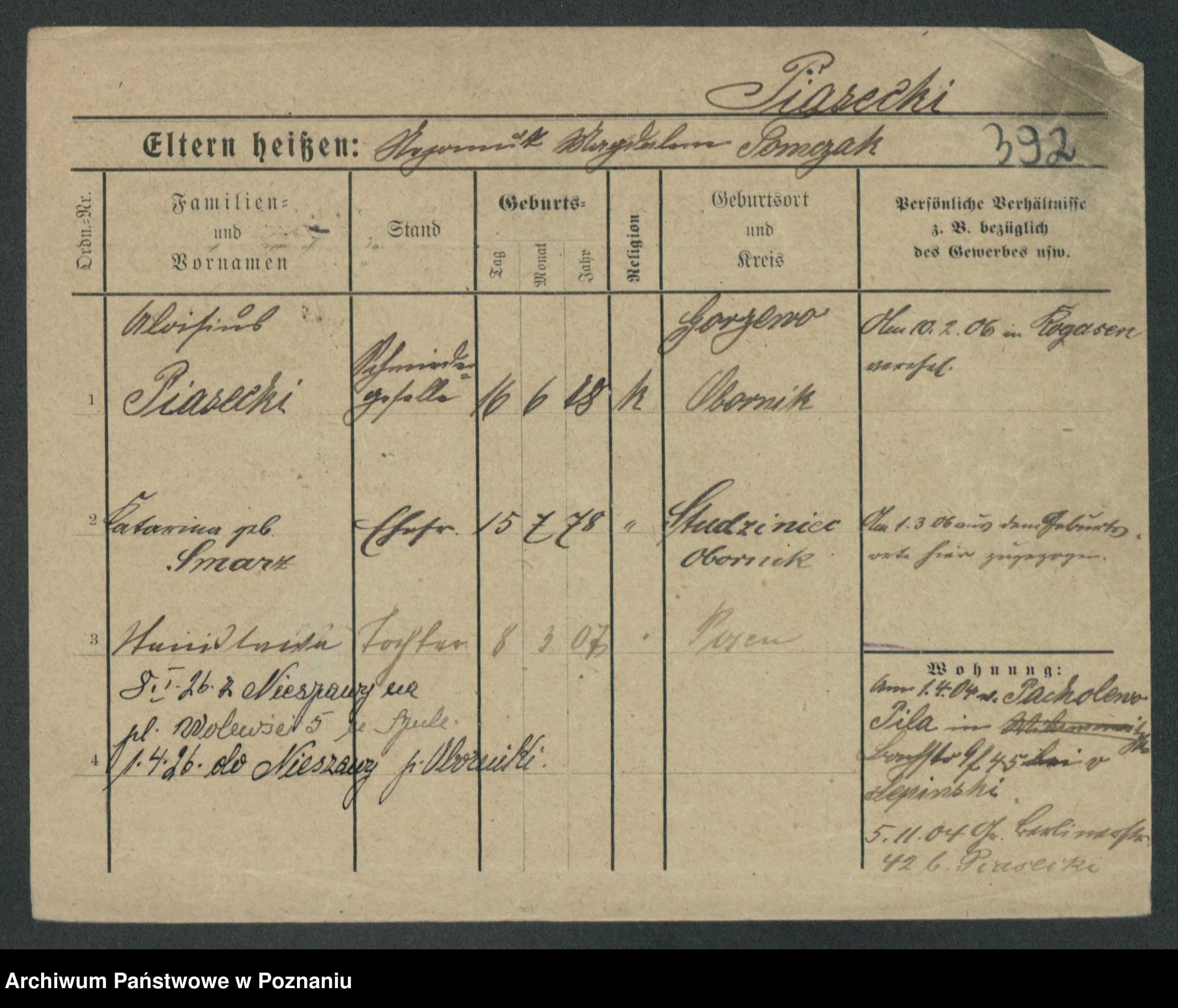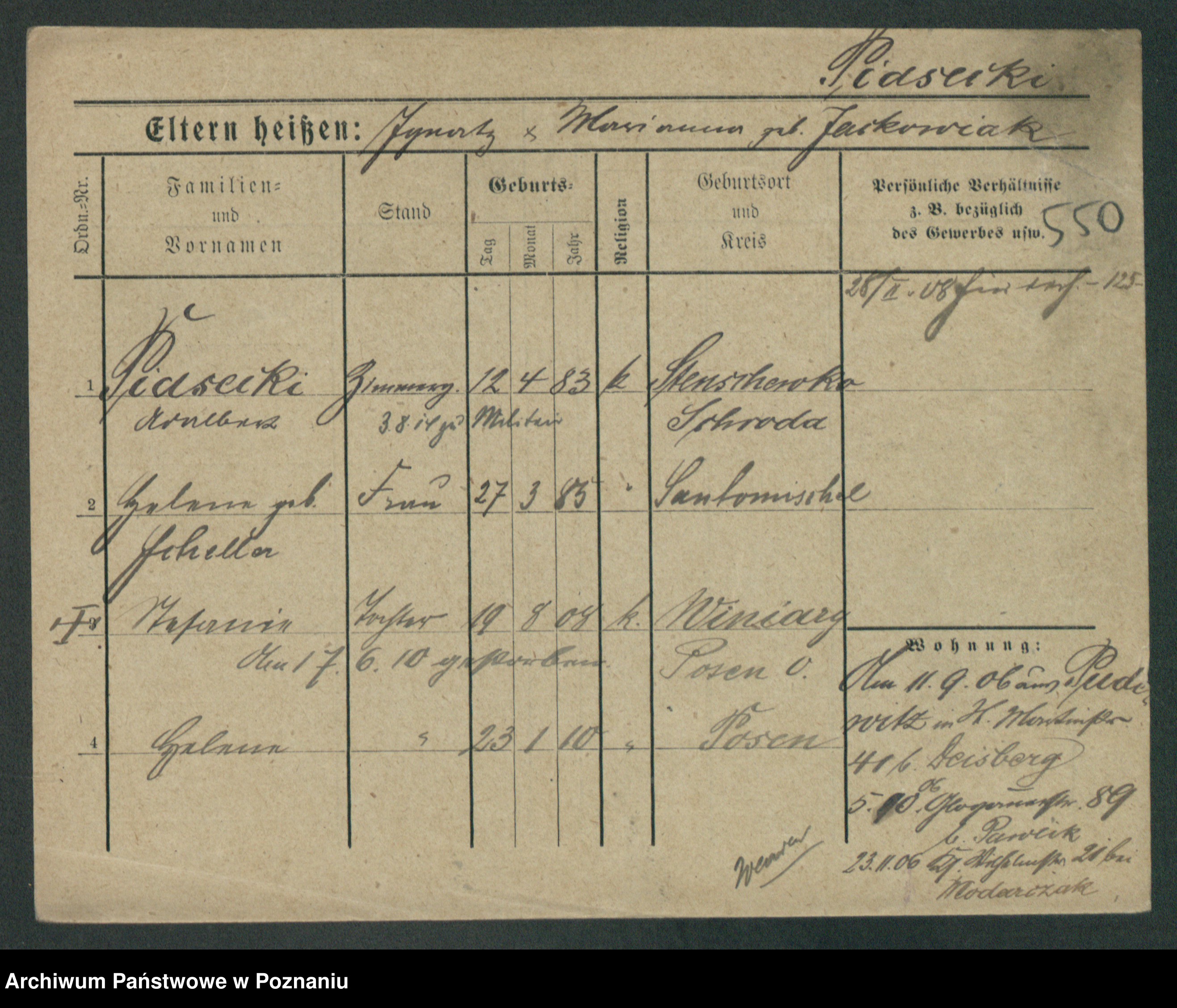Podgląd karty osobowej dostępny jest po kliknięciu na nazwisko lub ikonkę karty. Można dokonywać powiększenia (ikony na górze) lub przechodzić między kolejnymi skanami (strzałki po bokach).