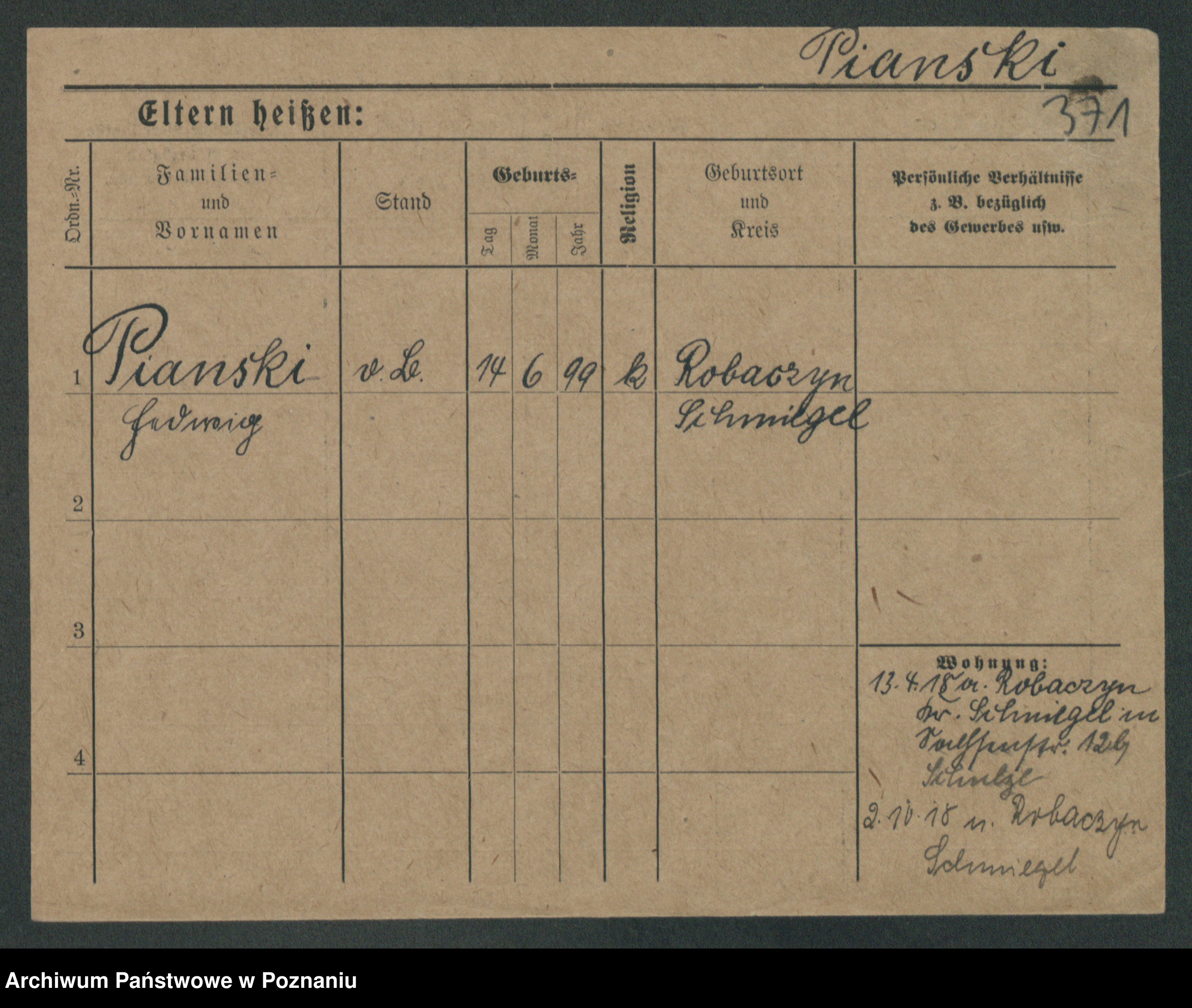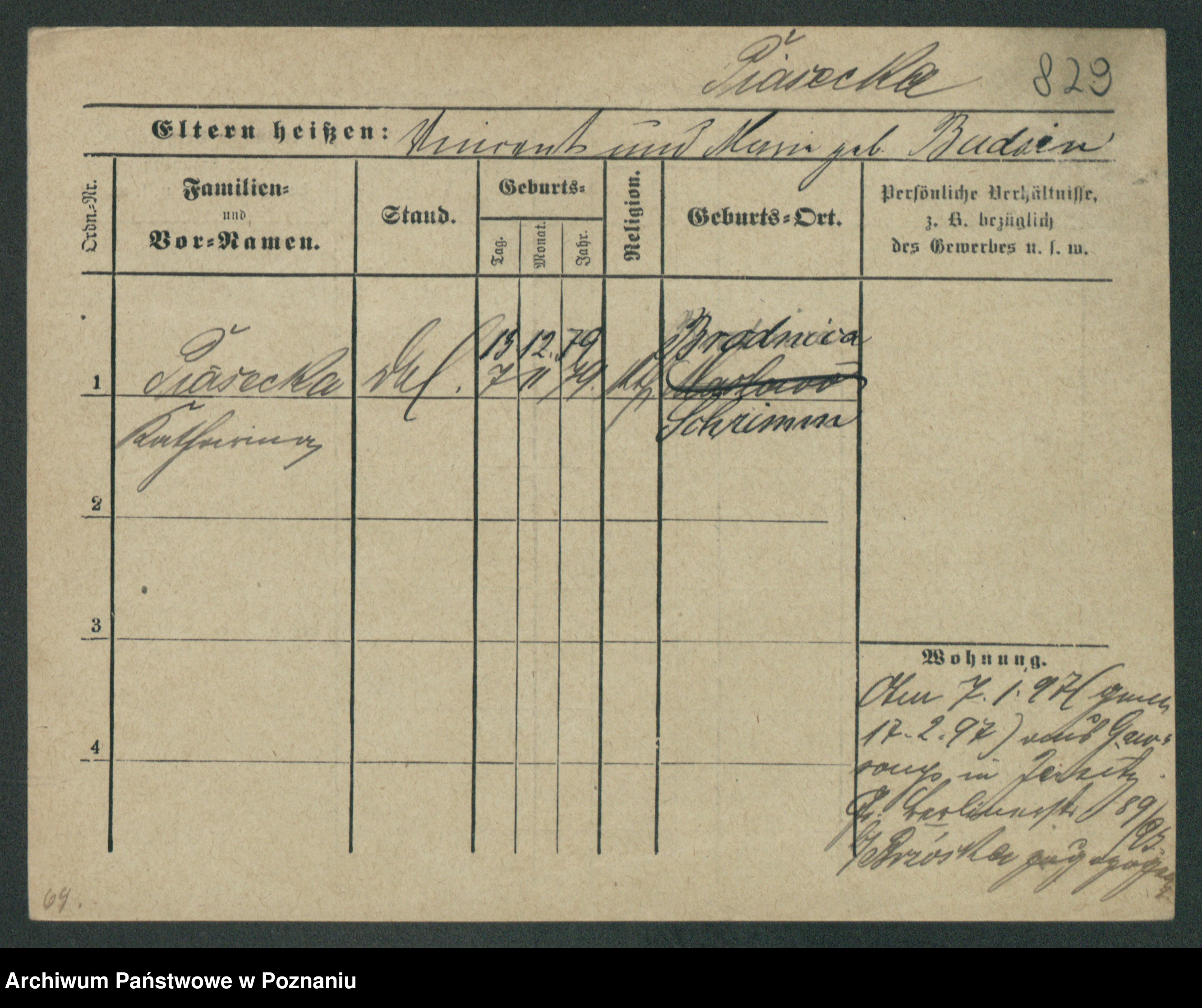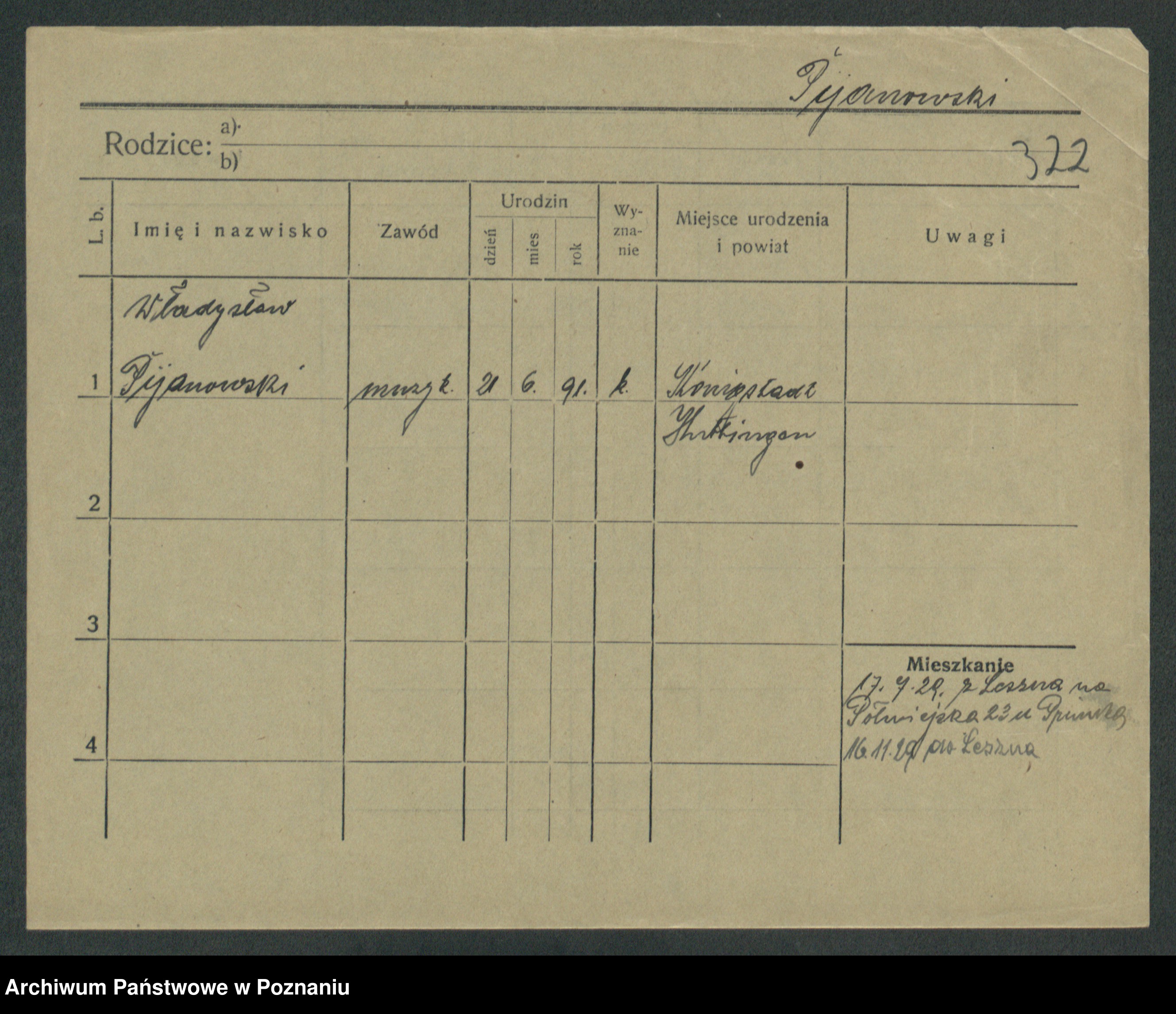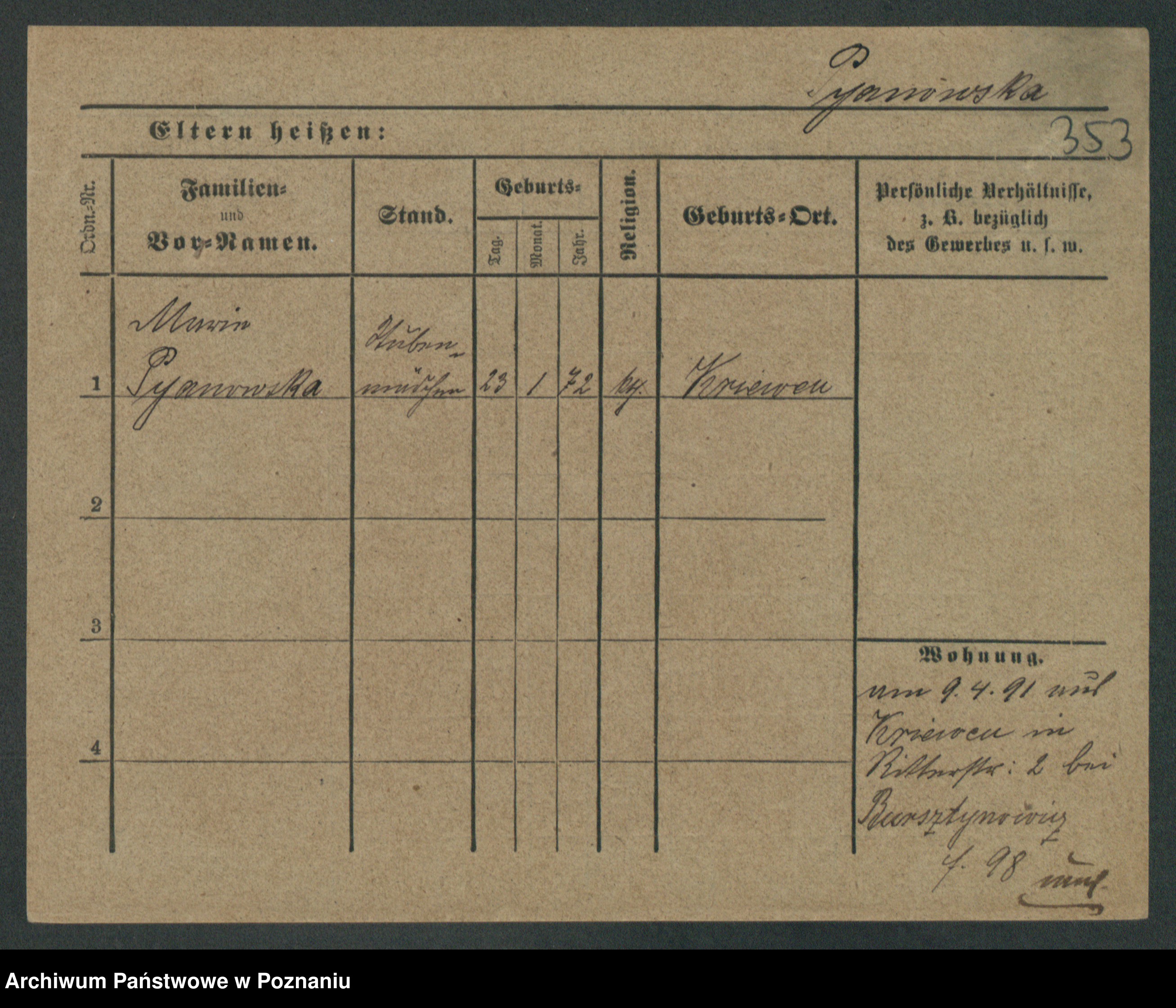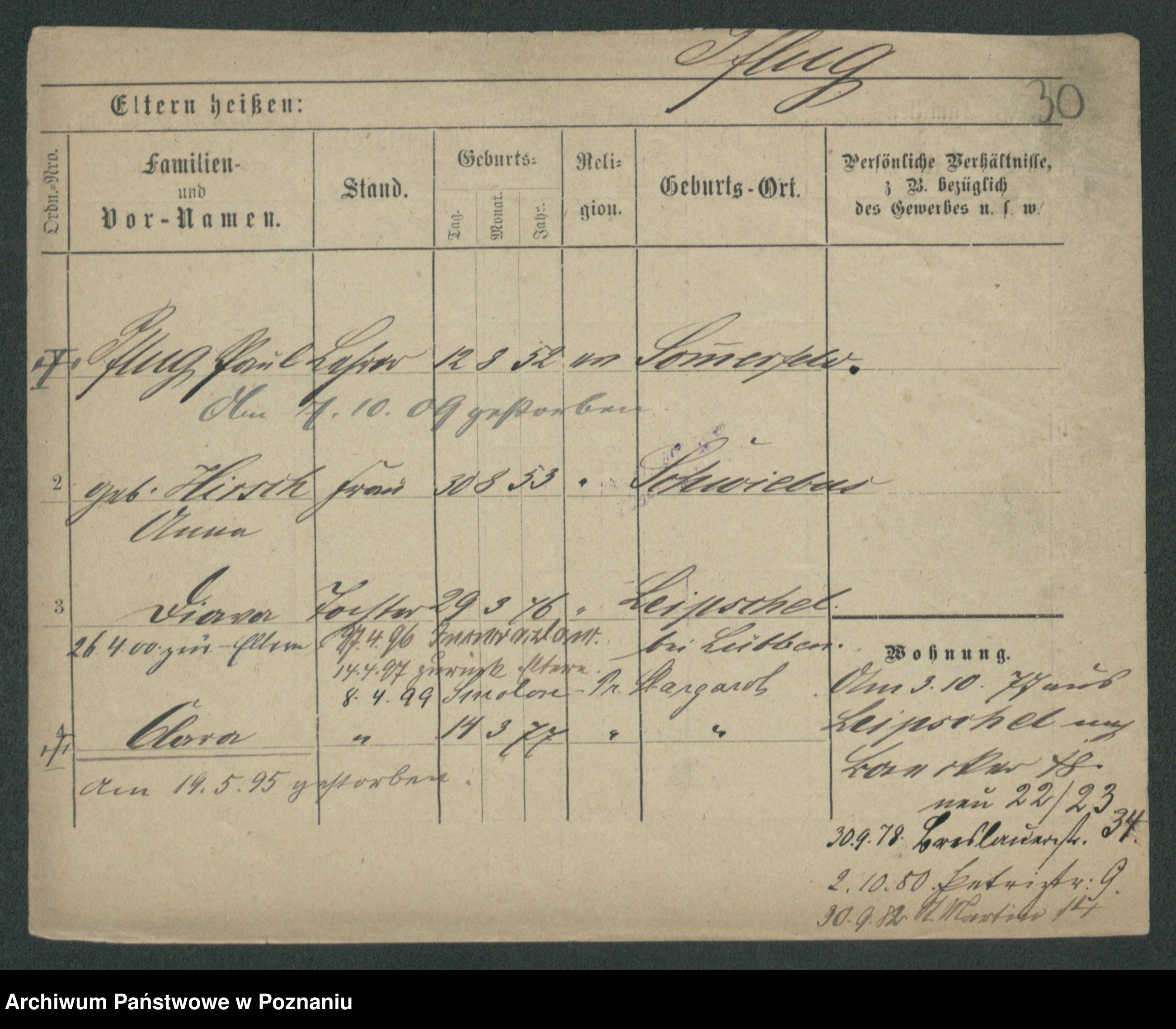 Podgląd karty osobowej dostępny jest po kliknięciu na nazwisko lub ikonkę karty. Można dokonywać powiększenia (ikony na górze) lub przechodzić między kolejnymi skanami (strzałki po bokach).
