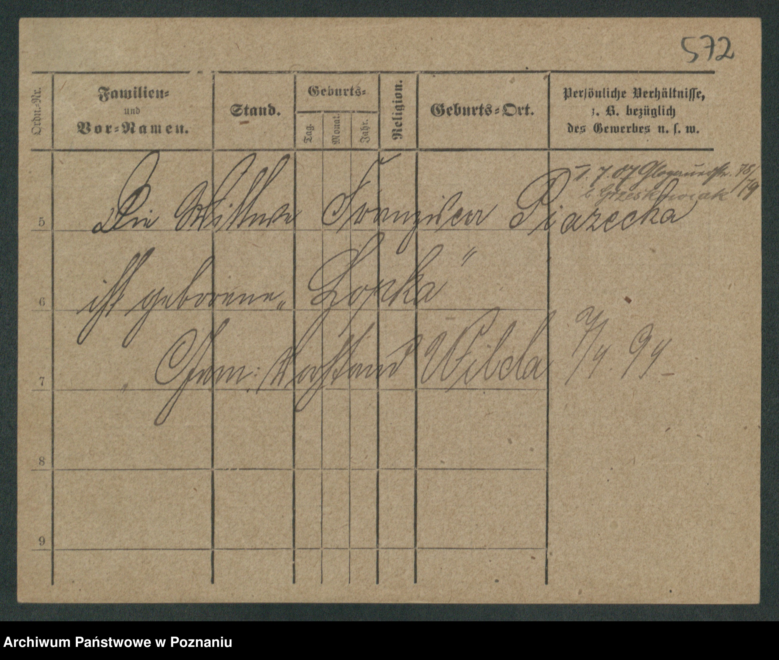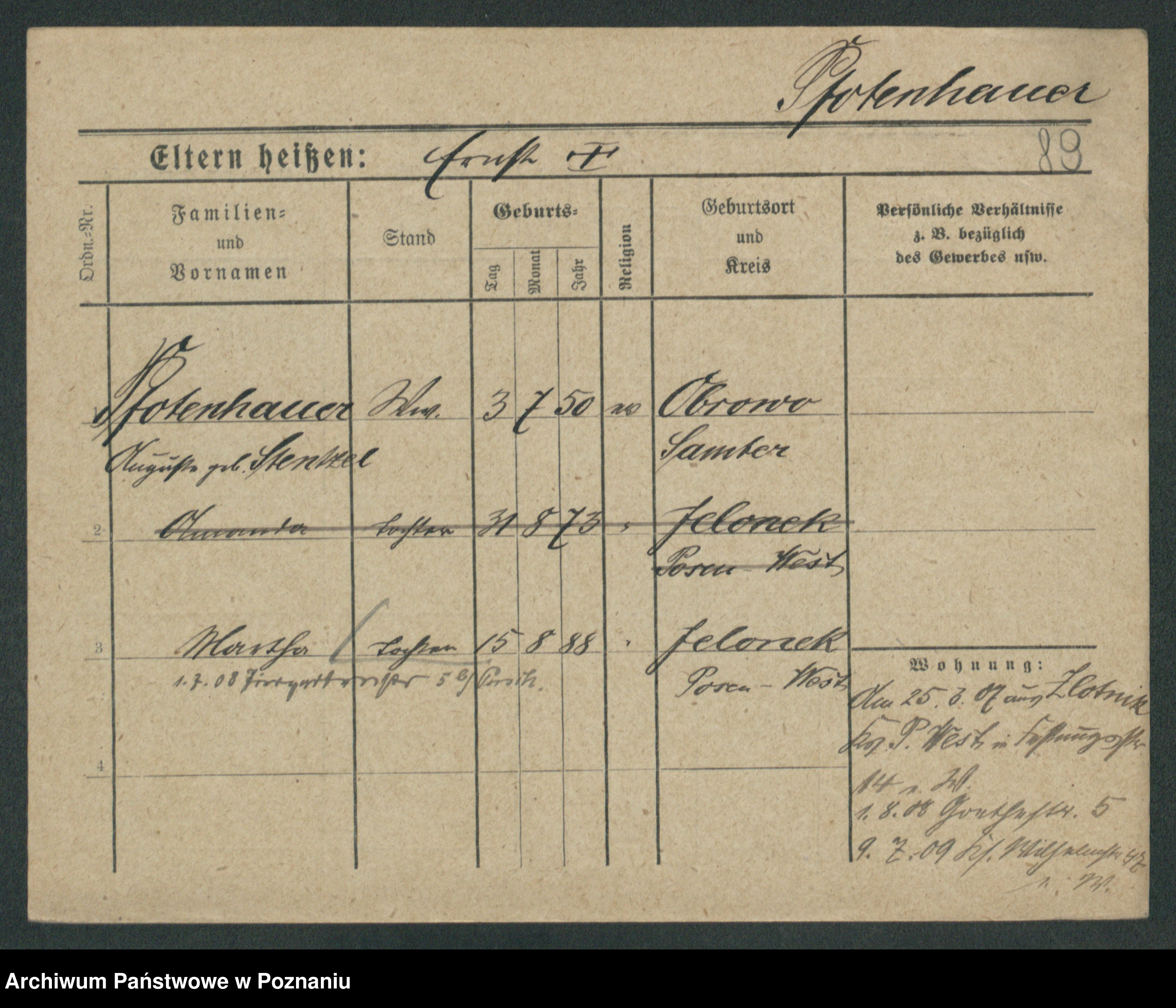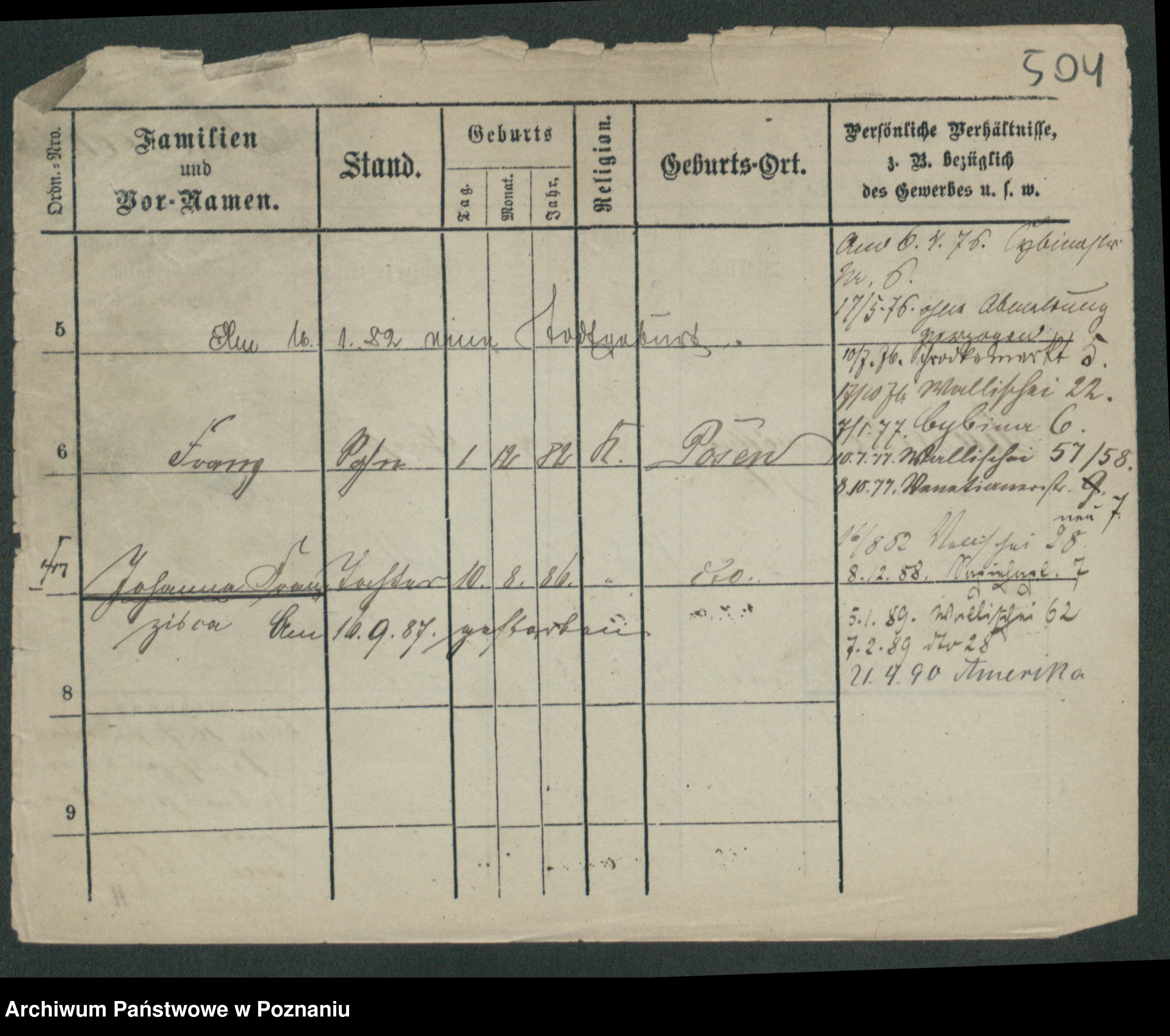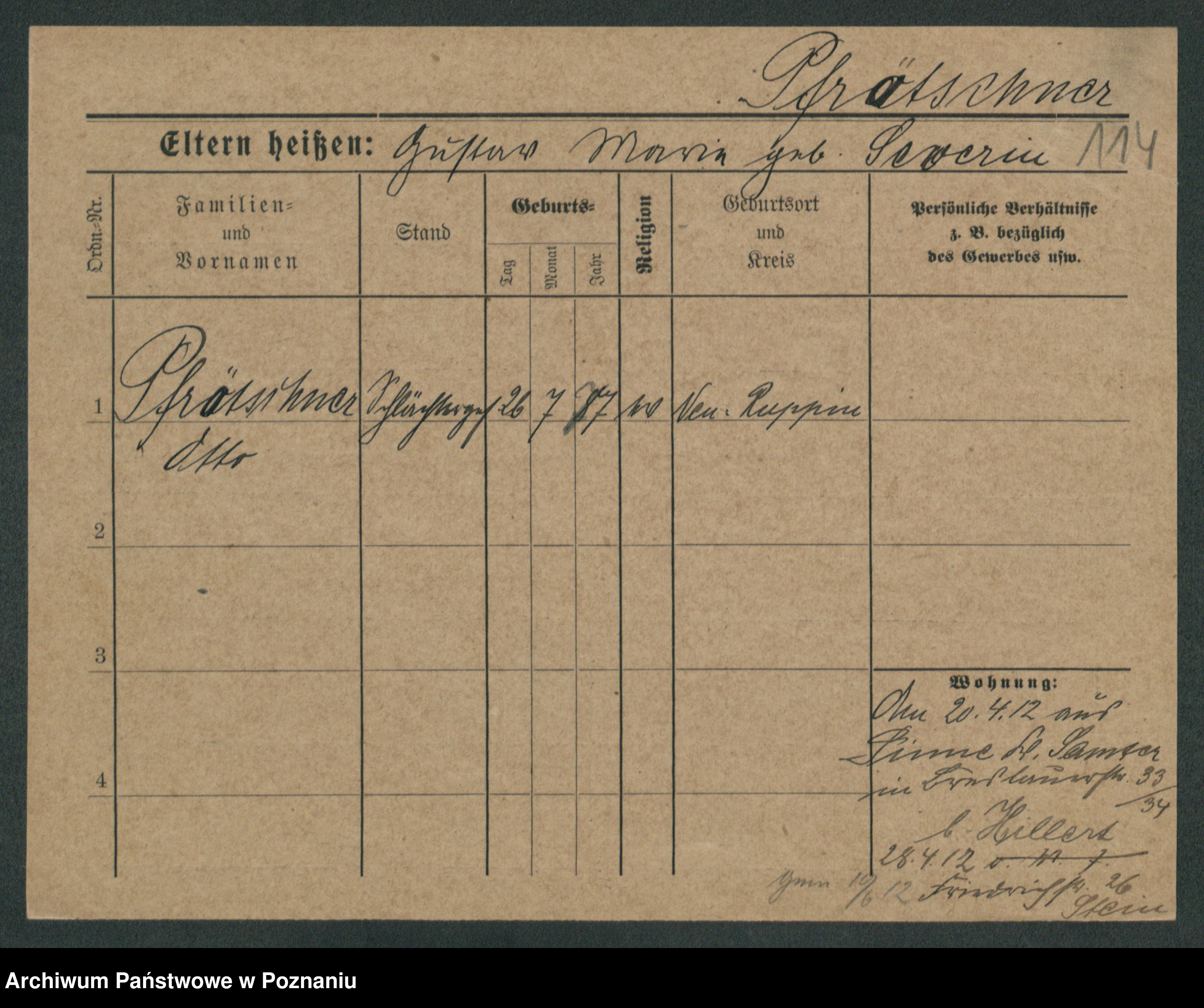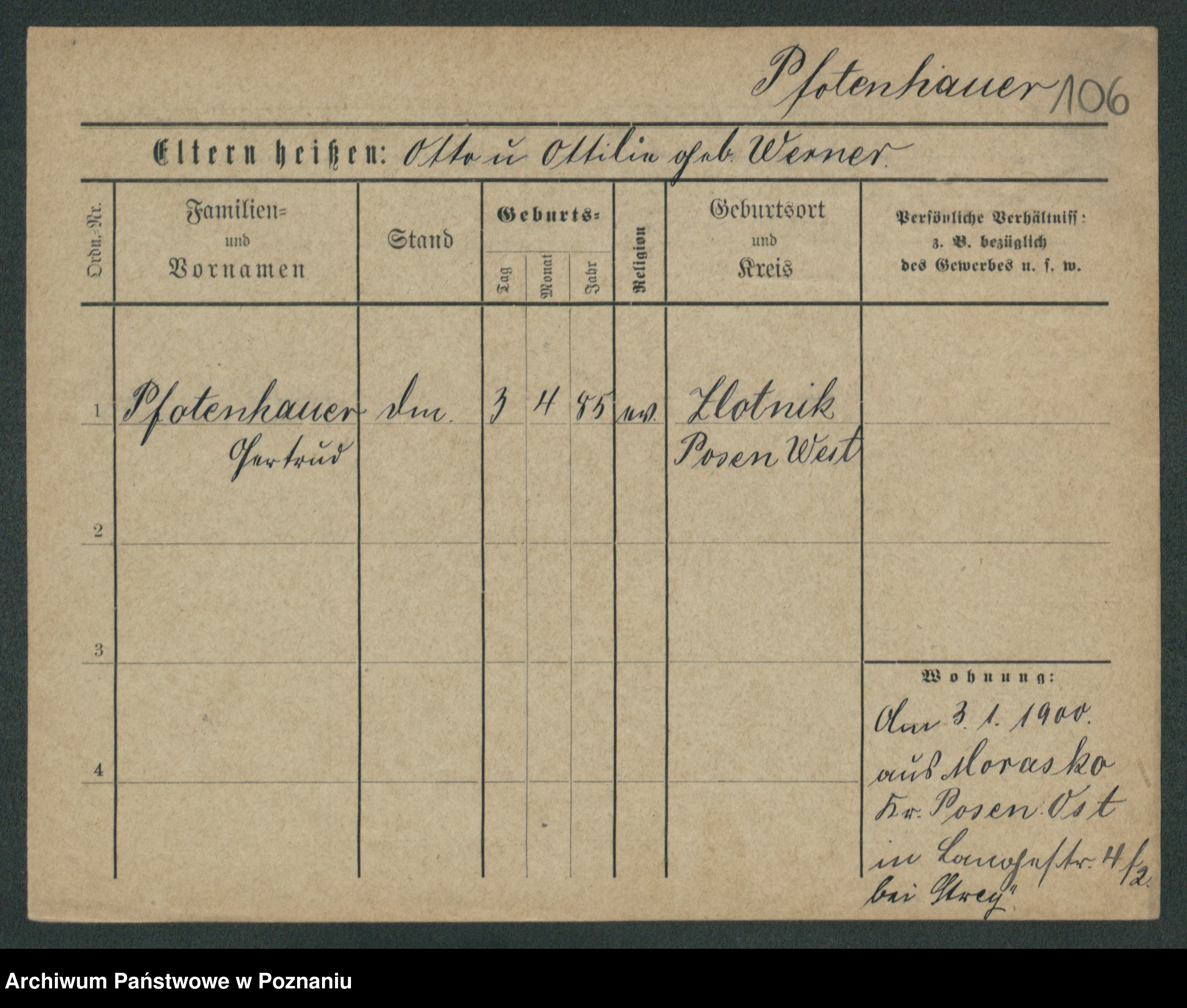 Podgląd karty osobowej dostępny jest po kliknięciu na nazwisko lub ikonkę karty. Można dokonywać powiększenia (ikony na górze) lub przechodzić między kolejnymi skanami (strzałki po bokach).